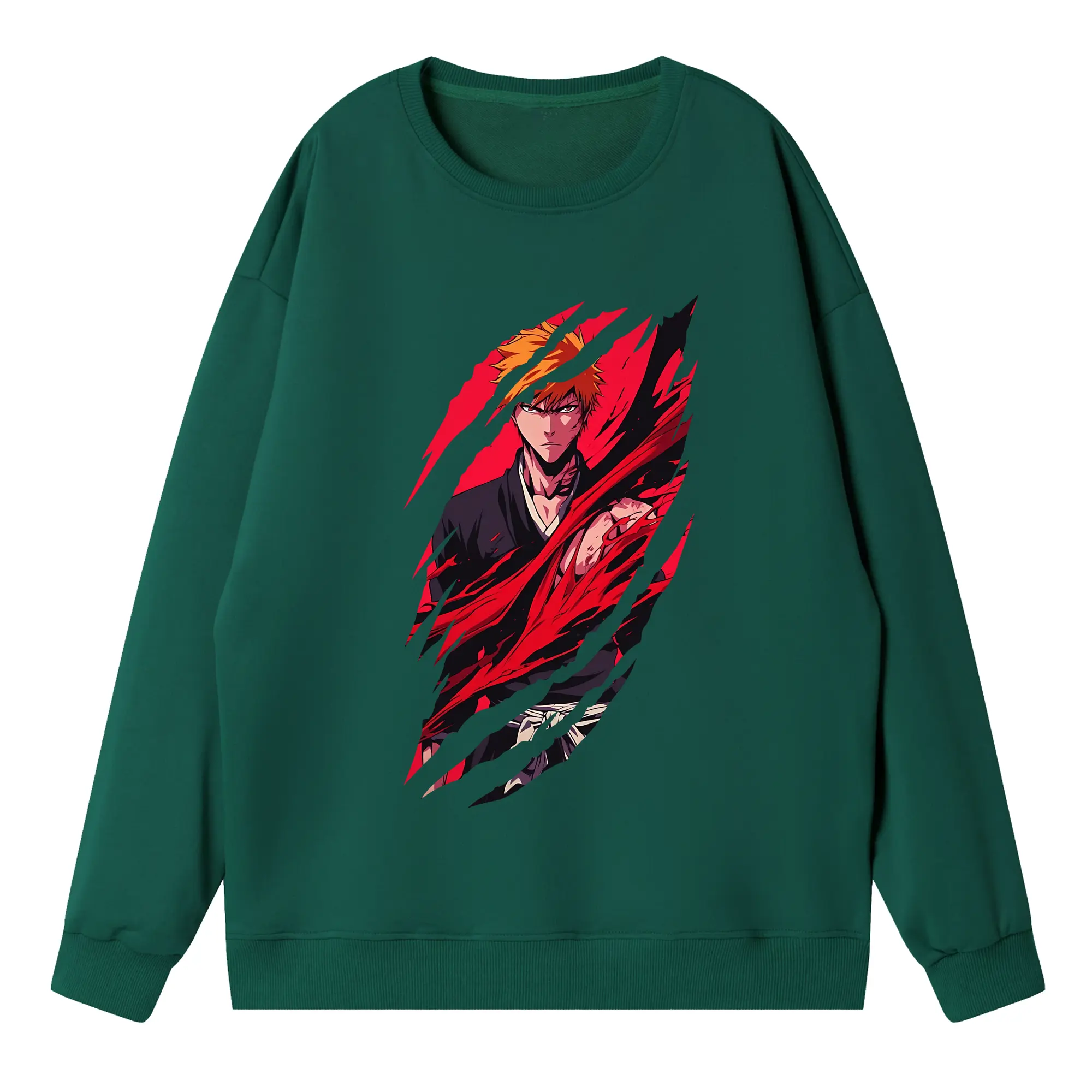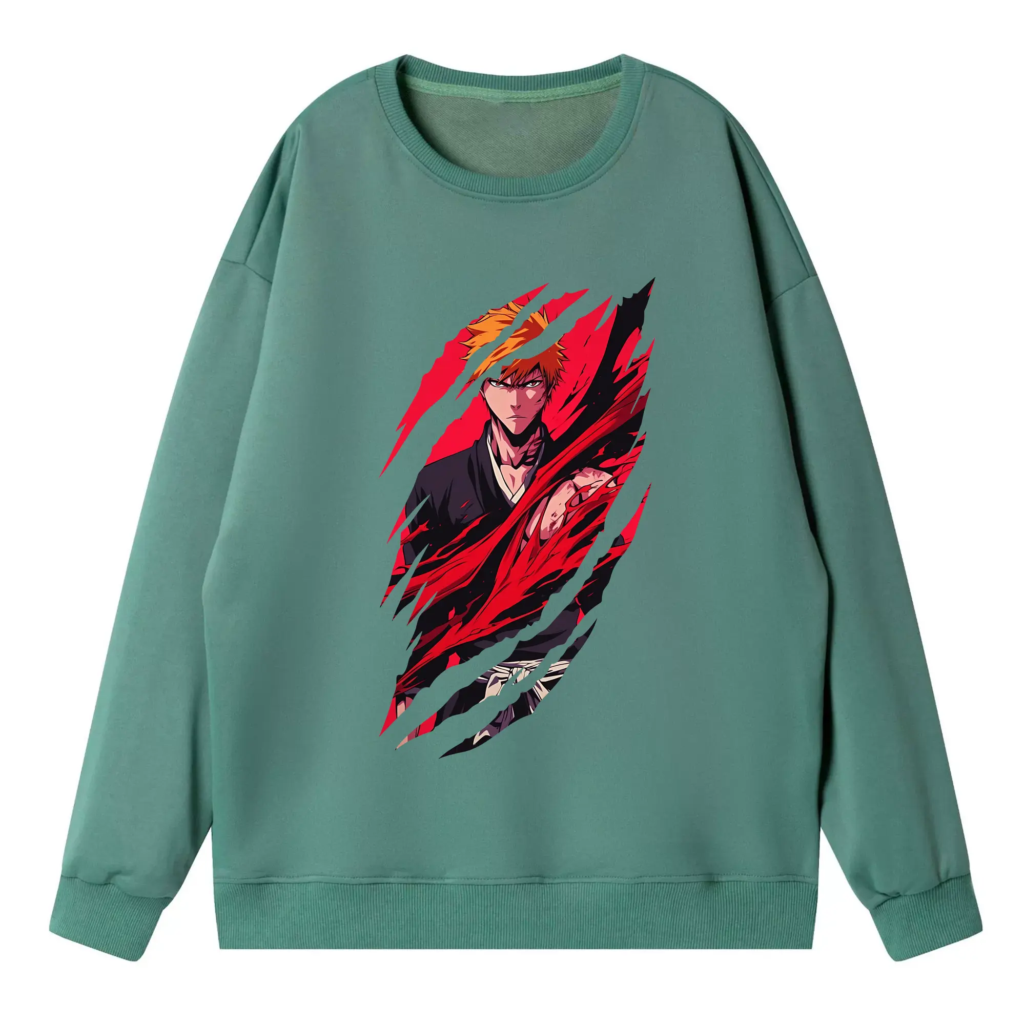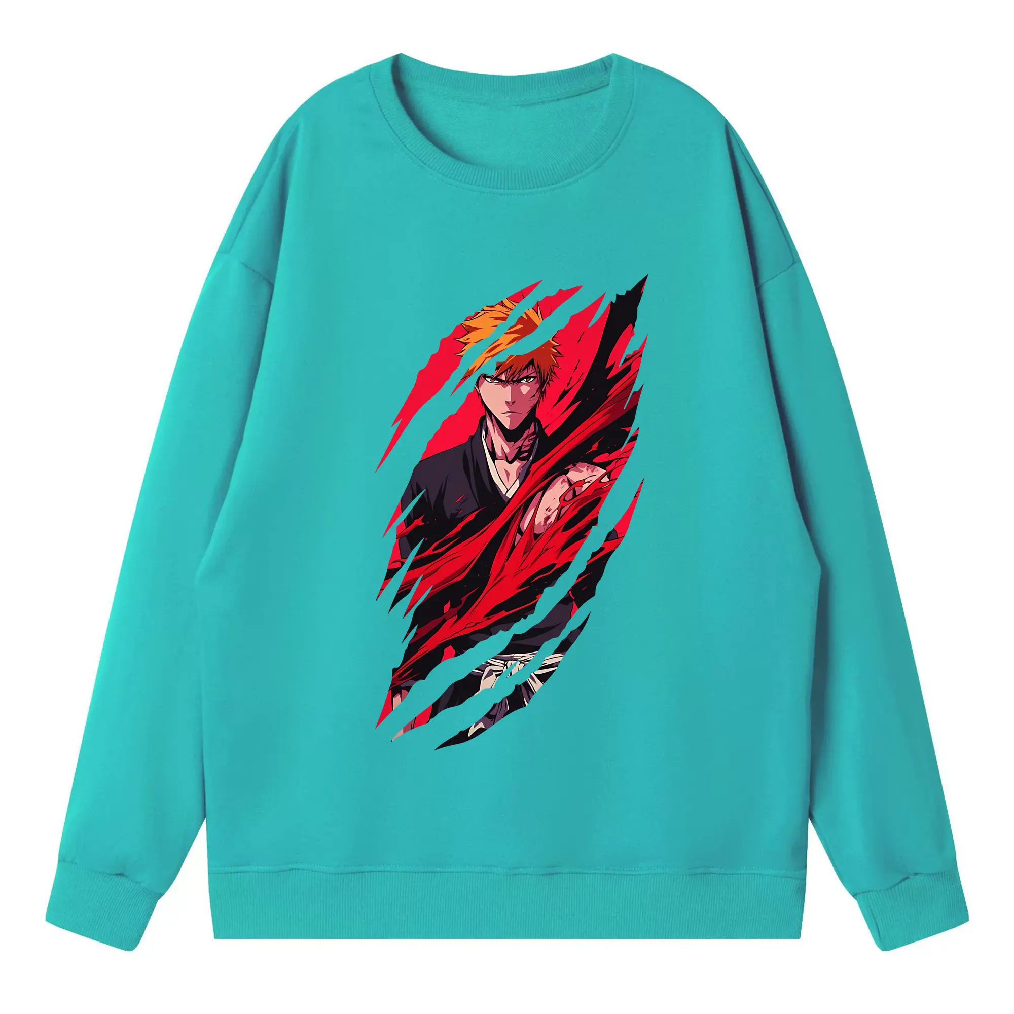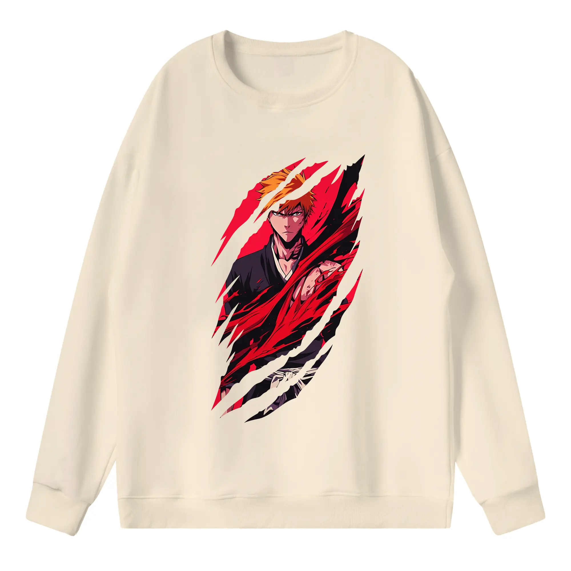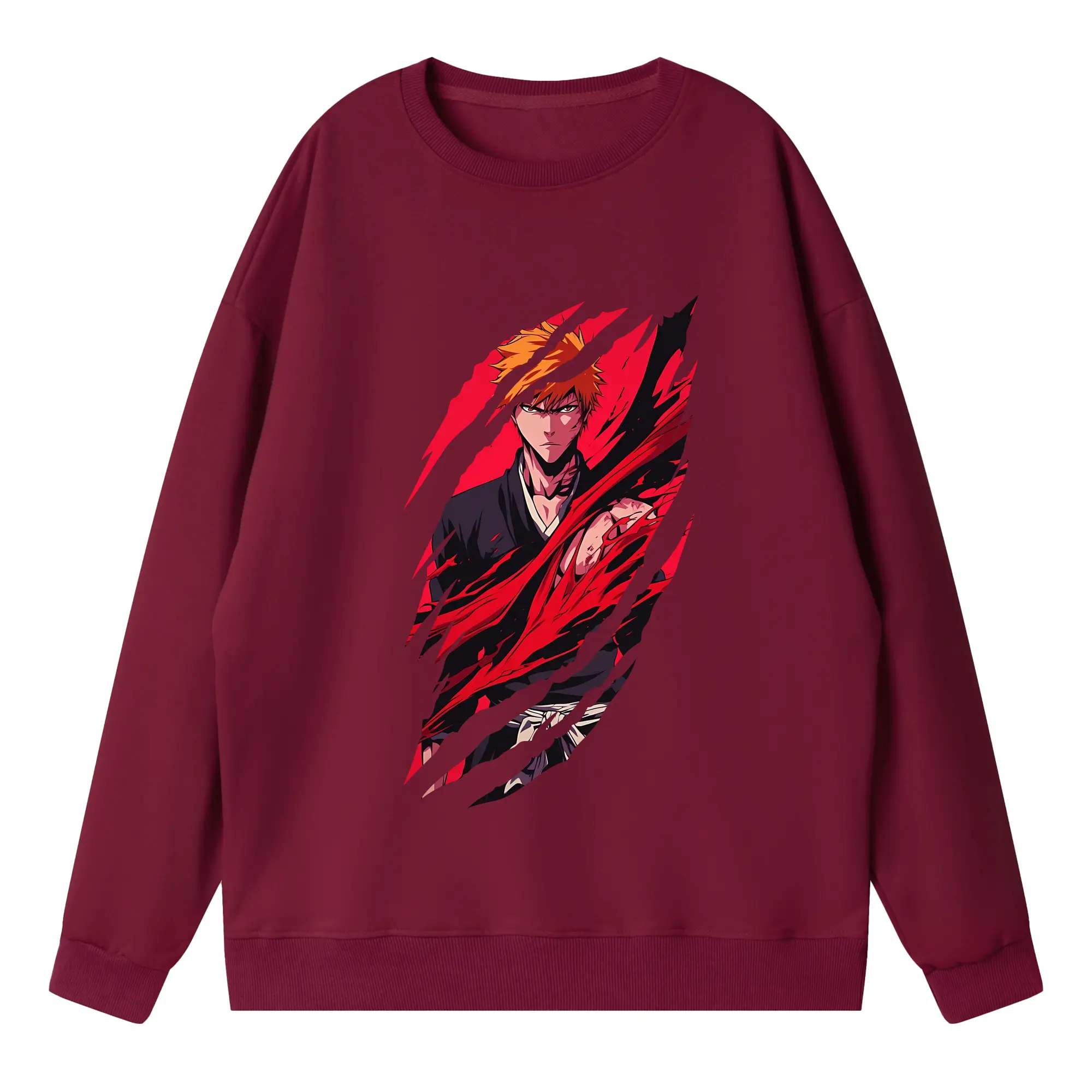ブリーチ グッズ 黒崎 一護 - 高品質 クルーネック スウェット ・ コットン59% ポリエステル41% ・ ユニセックス 長袖 トレーナー ・ カジュアル デイリー スポーツ 散歩用