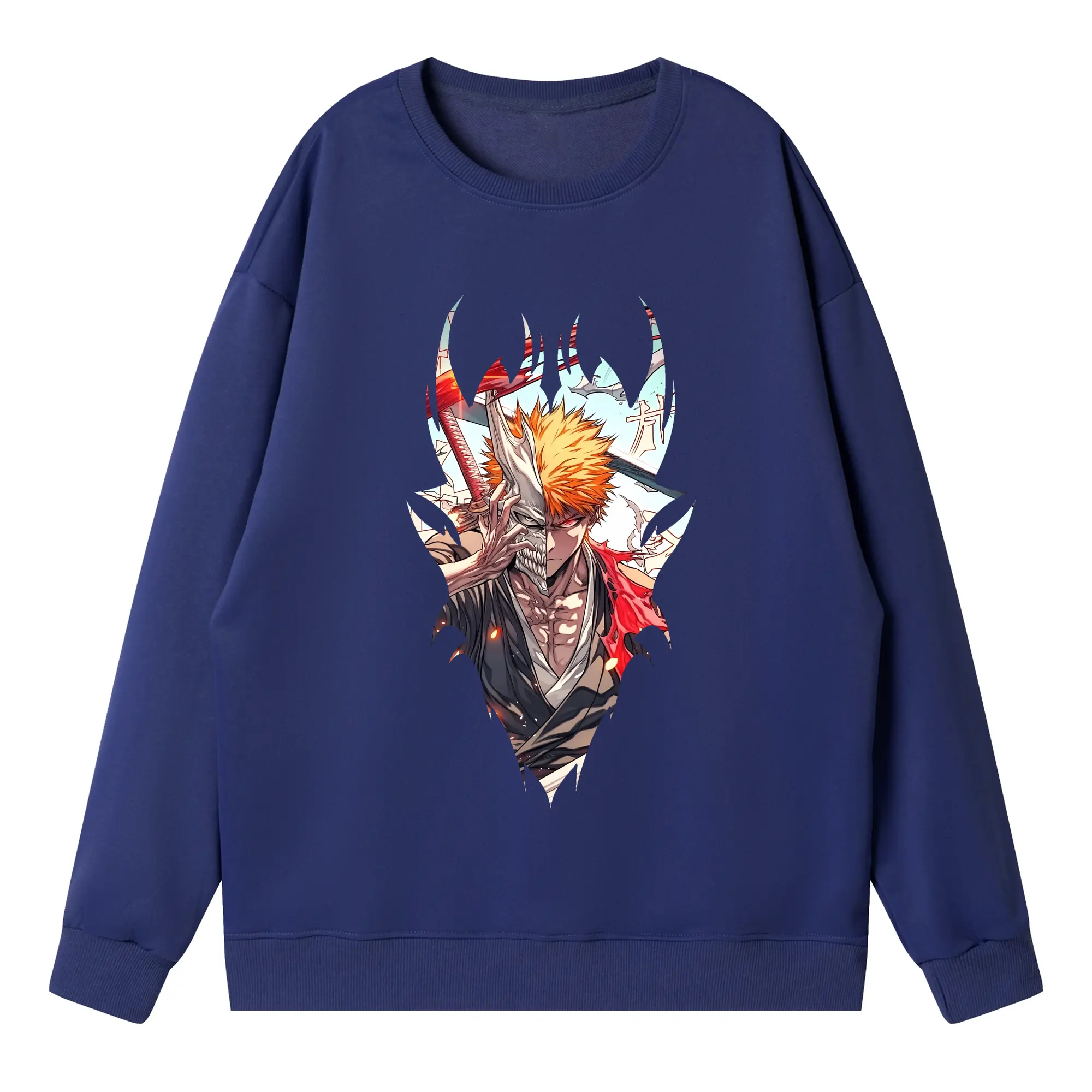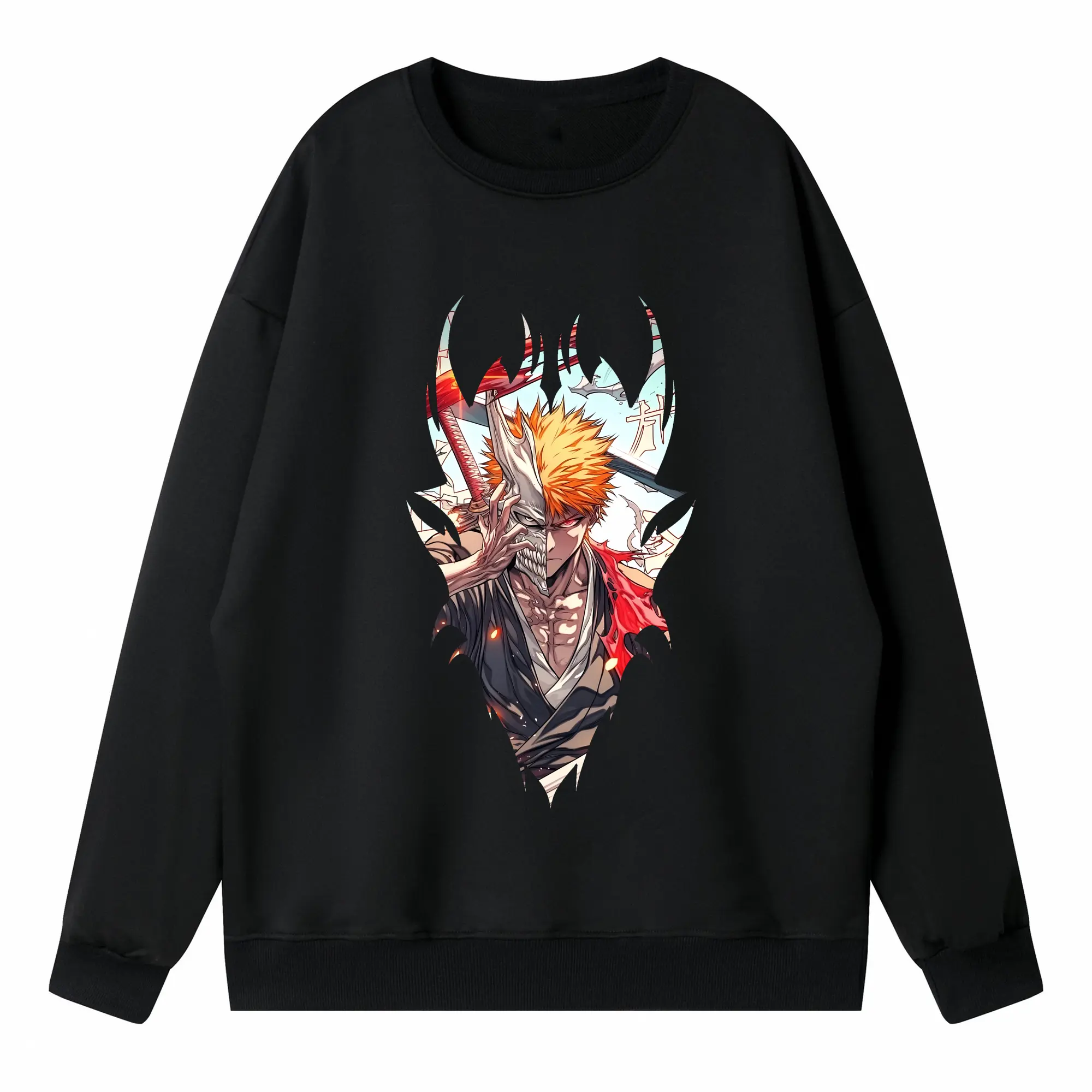 ブリーチ グッズ 黒崎 一護 - 高品質 クルーネック スウェット ・ コットン59% ポリエステル41% ・ ユニセックス 長袖 トレーナー ・ カジュアル デイリー スポーツ 散歩用