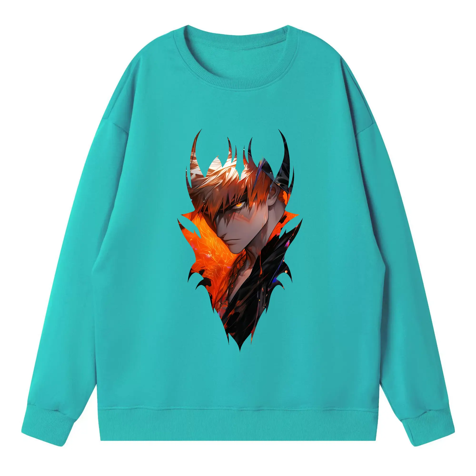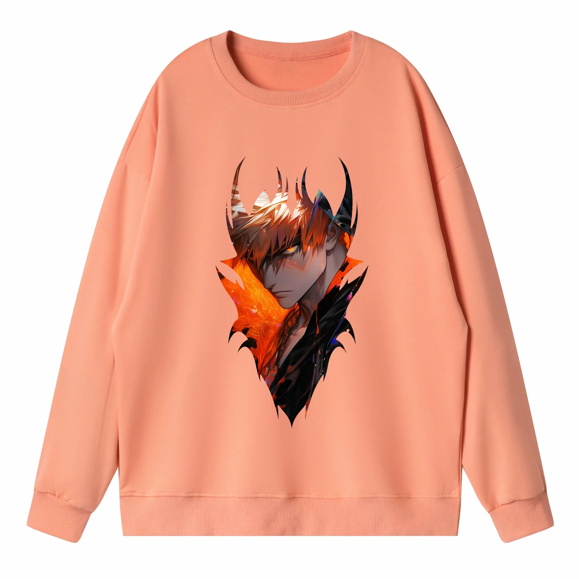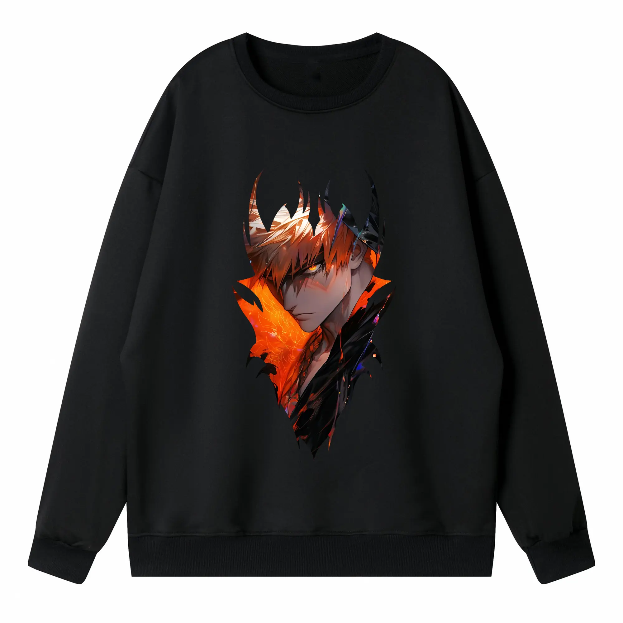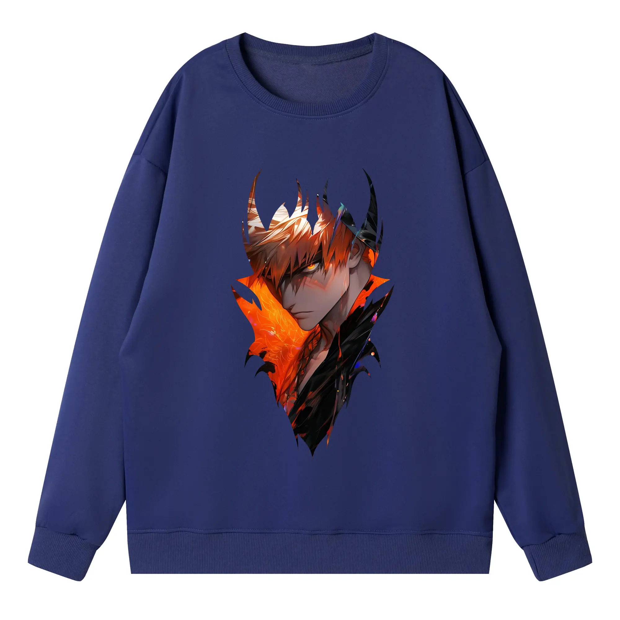 ブリーチ グッズ 黒崎 一護 - 高品質 クルーネック スウェット ・ コットン59% ポリエステル41% ・ ユニセックス 長袖 トレーナー ・ カジュアル デイリー スポーツ 散歩用