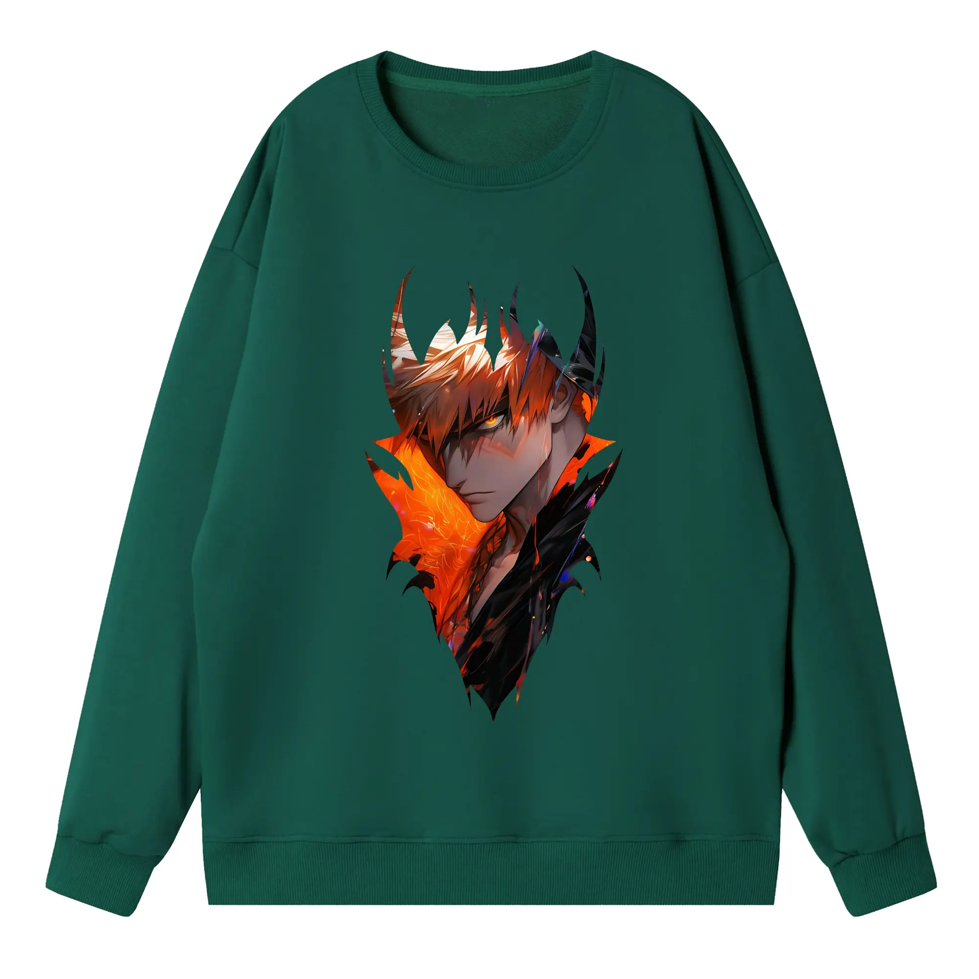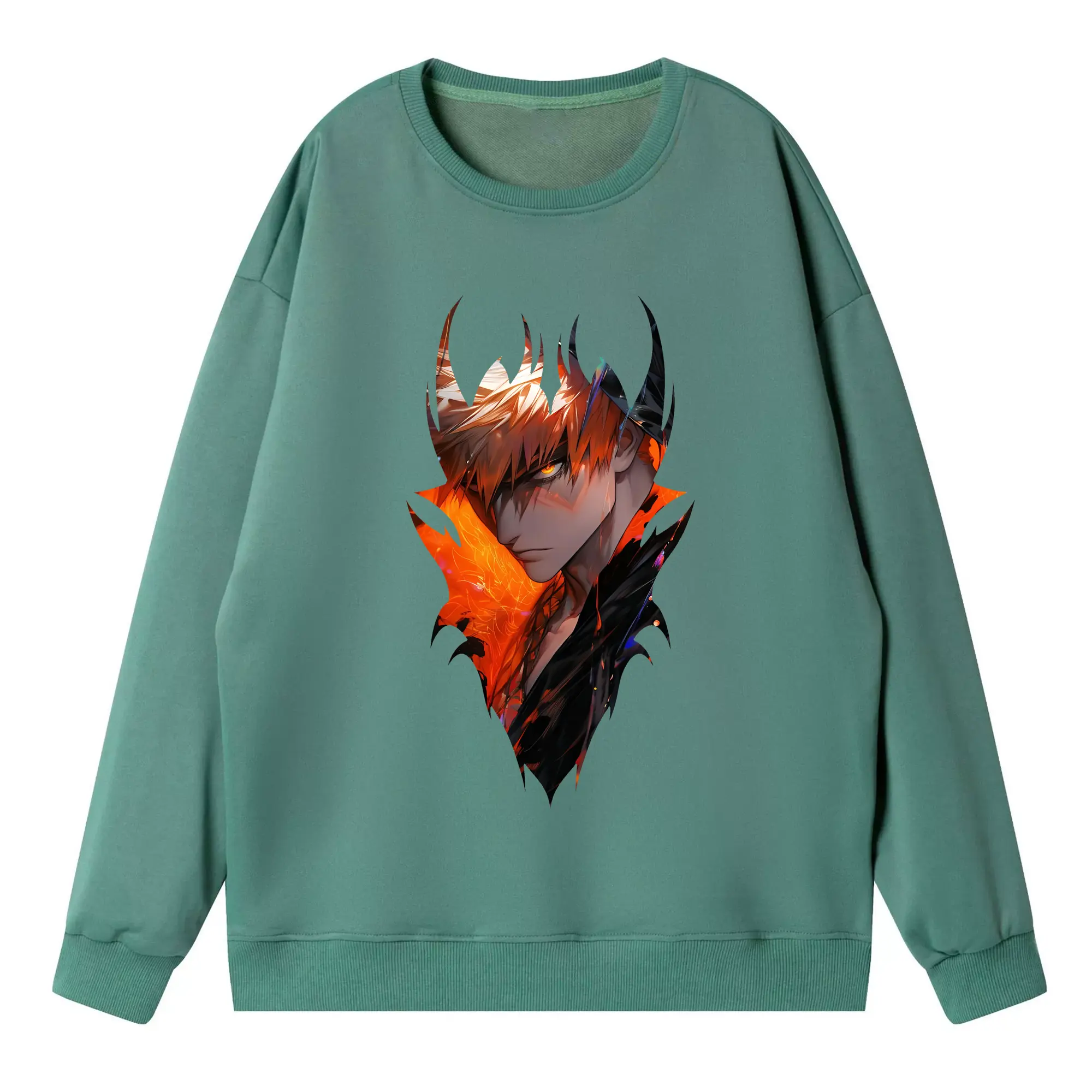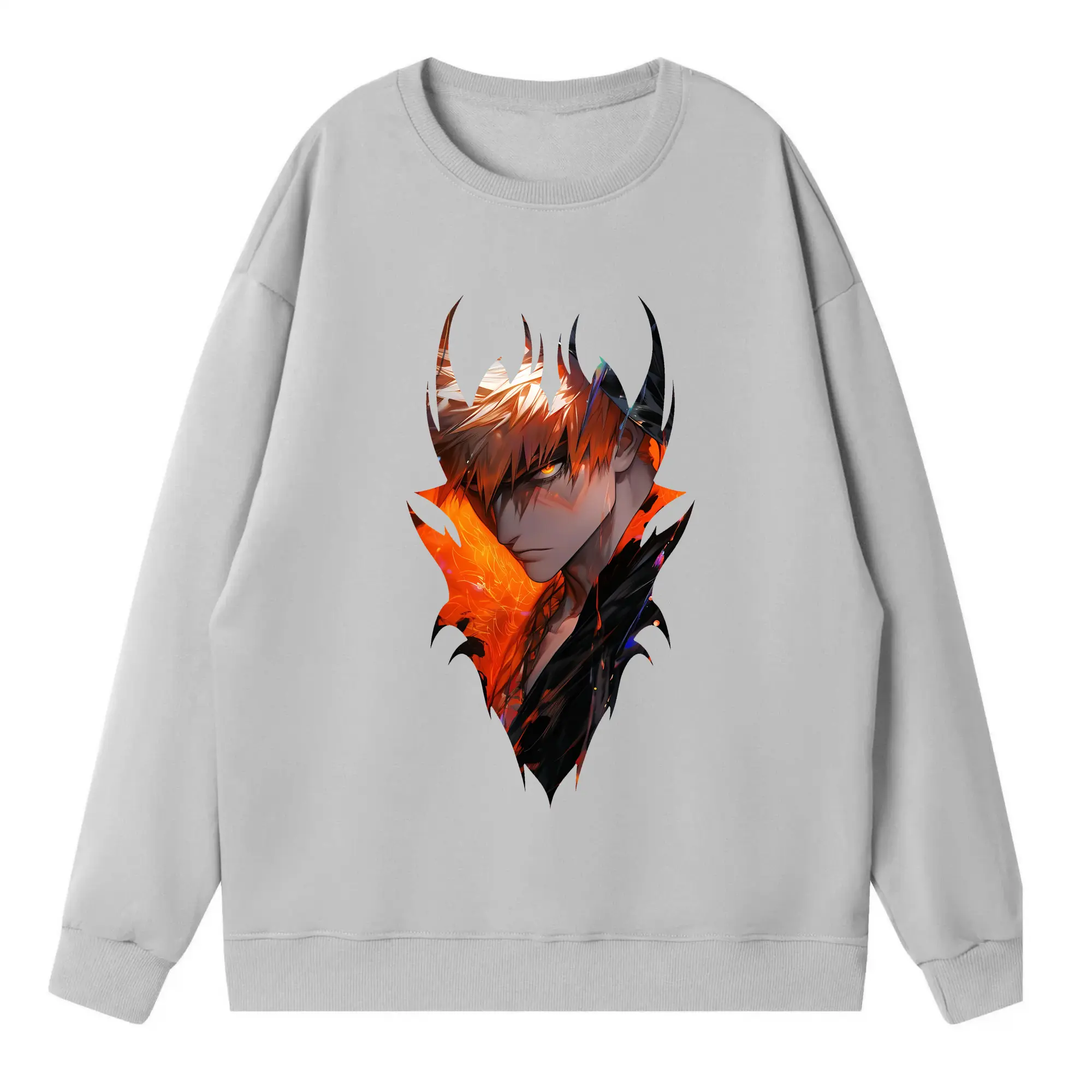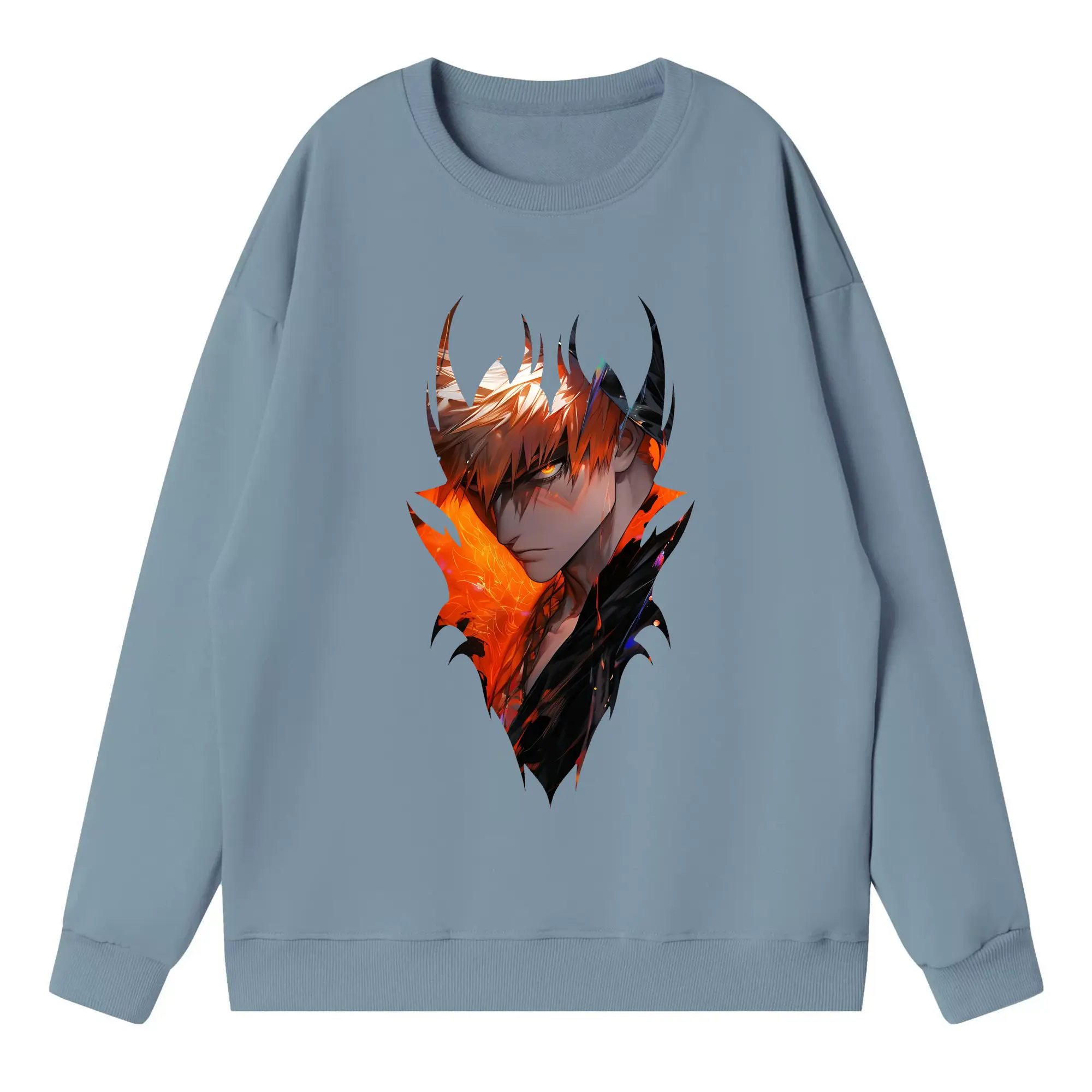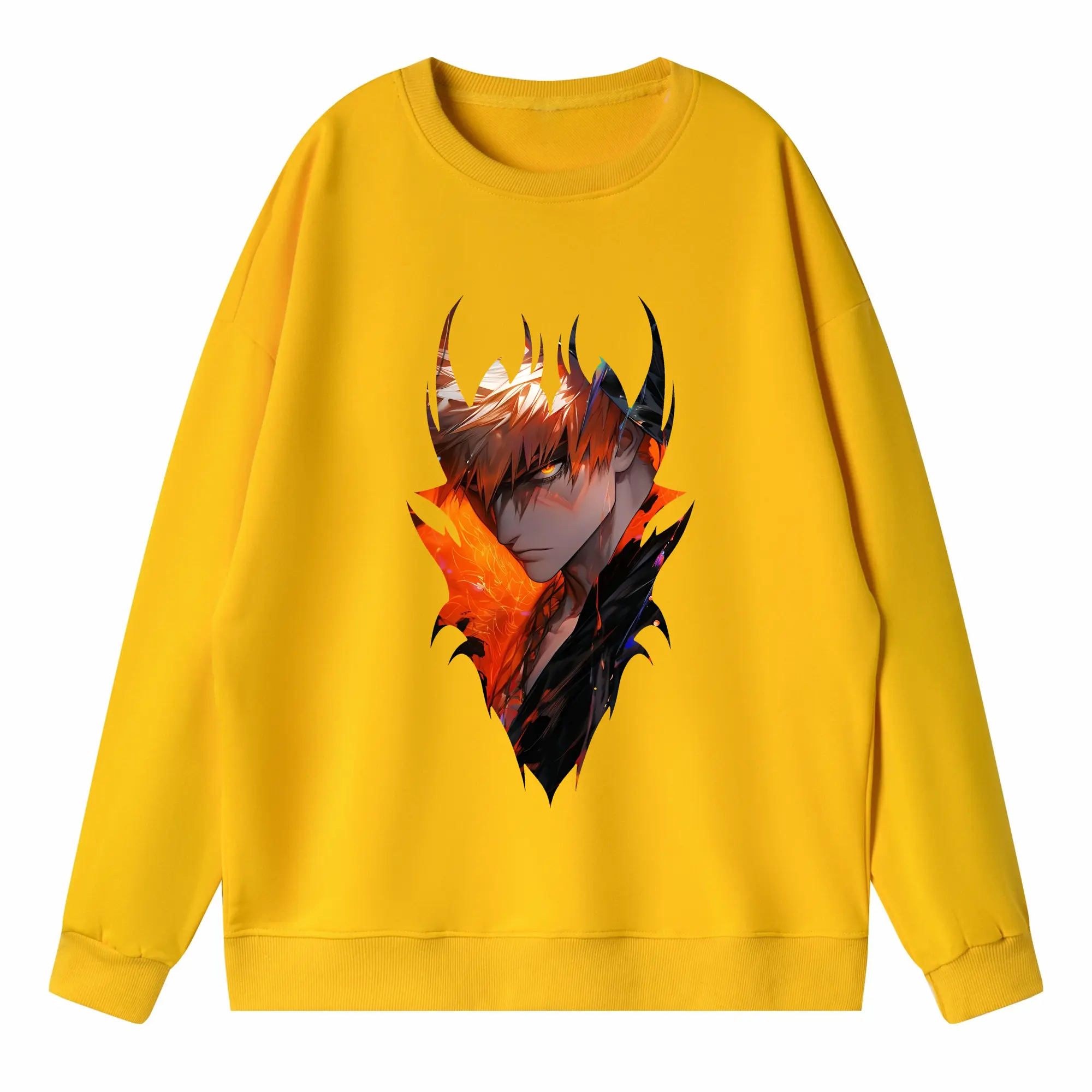 ブリーチ グッズ 黒崎 一護 - 高品質 クルーネック スウェット ・ コットン59% ポリエステル41% ・ ユニセックス 長袖 トレーナー ・ カジュアル デイリー スポーツ 散歩用