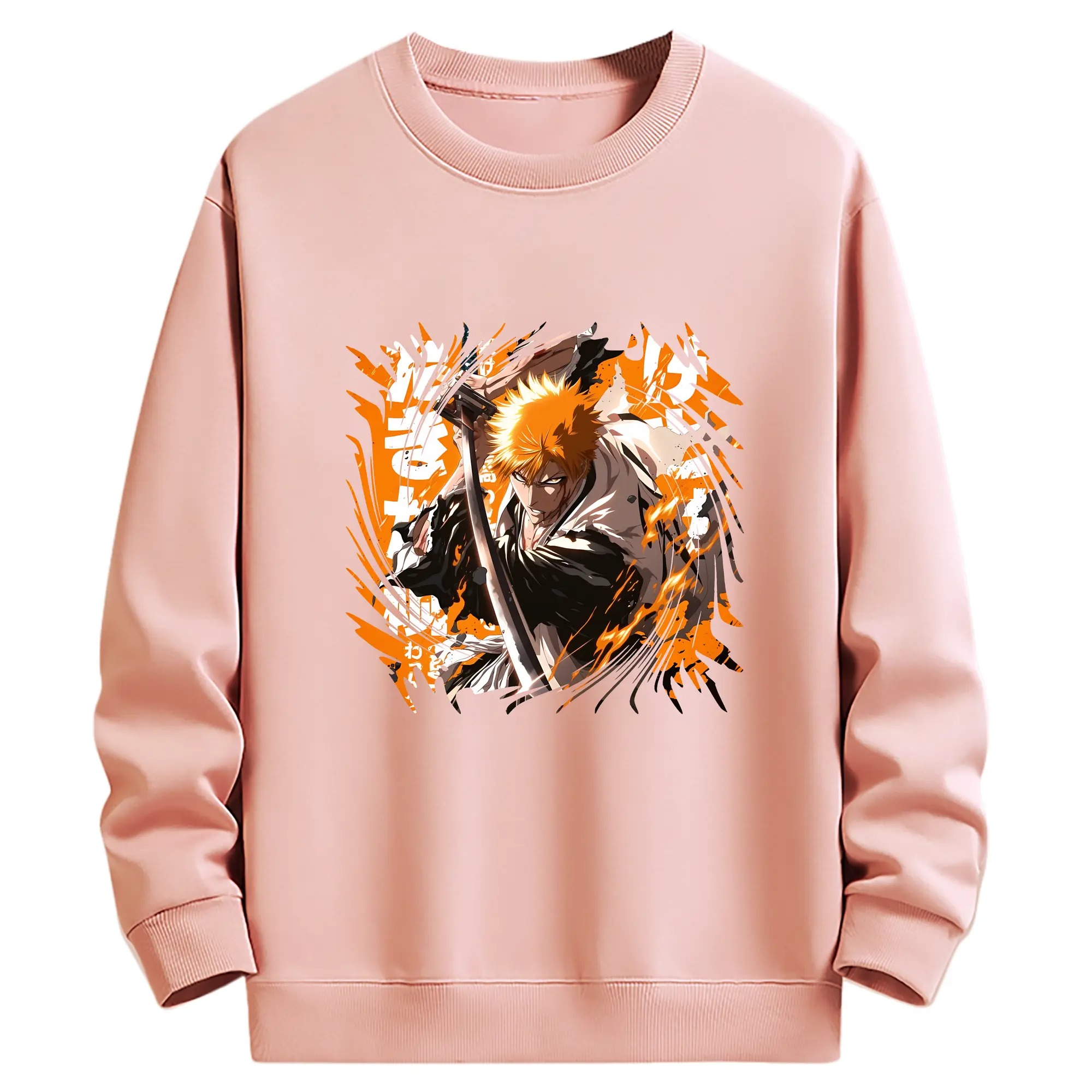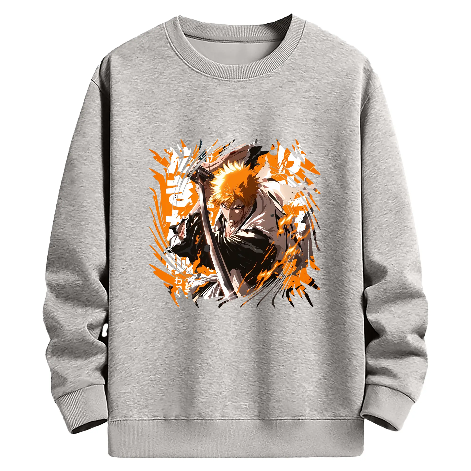 ブリーチ グッズ 黒崎 一護 - 高品質 クルーネック スウェット ・ コットン59% ポリエステル41% ・ ユニセックス 長袖 トレーナー ・ カジュアル デイリー スポーツ 散歩用