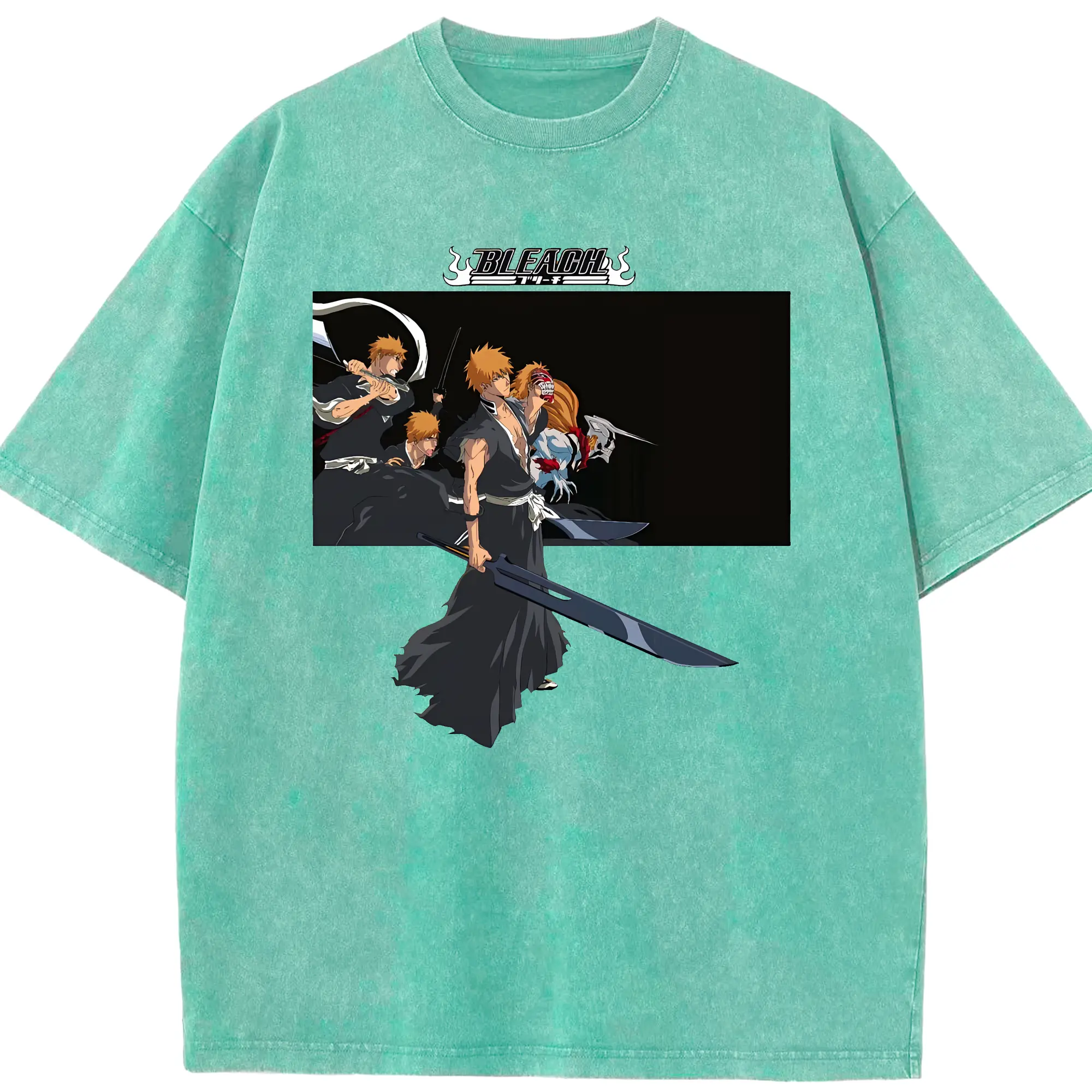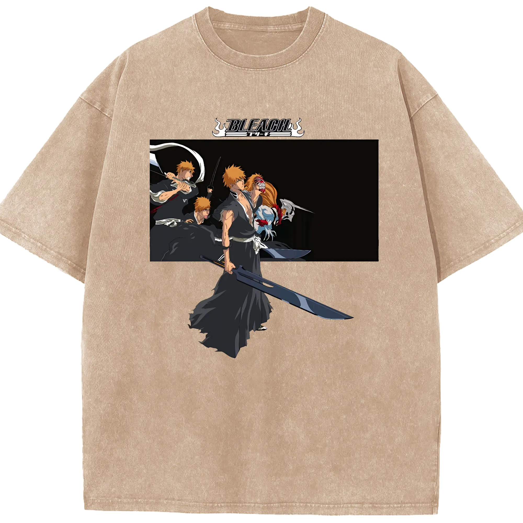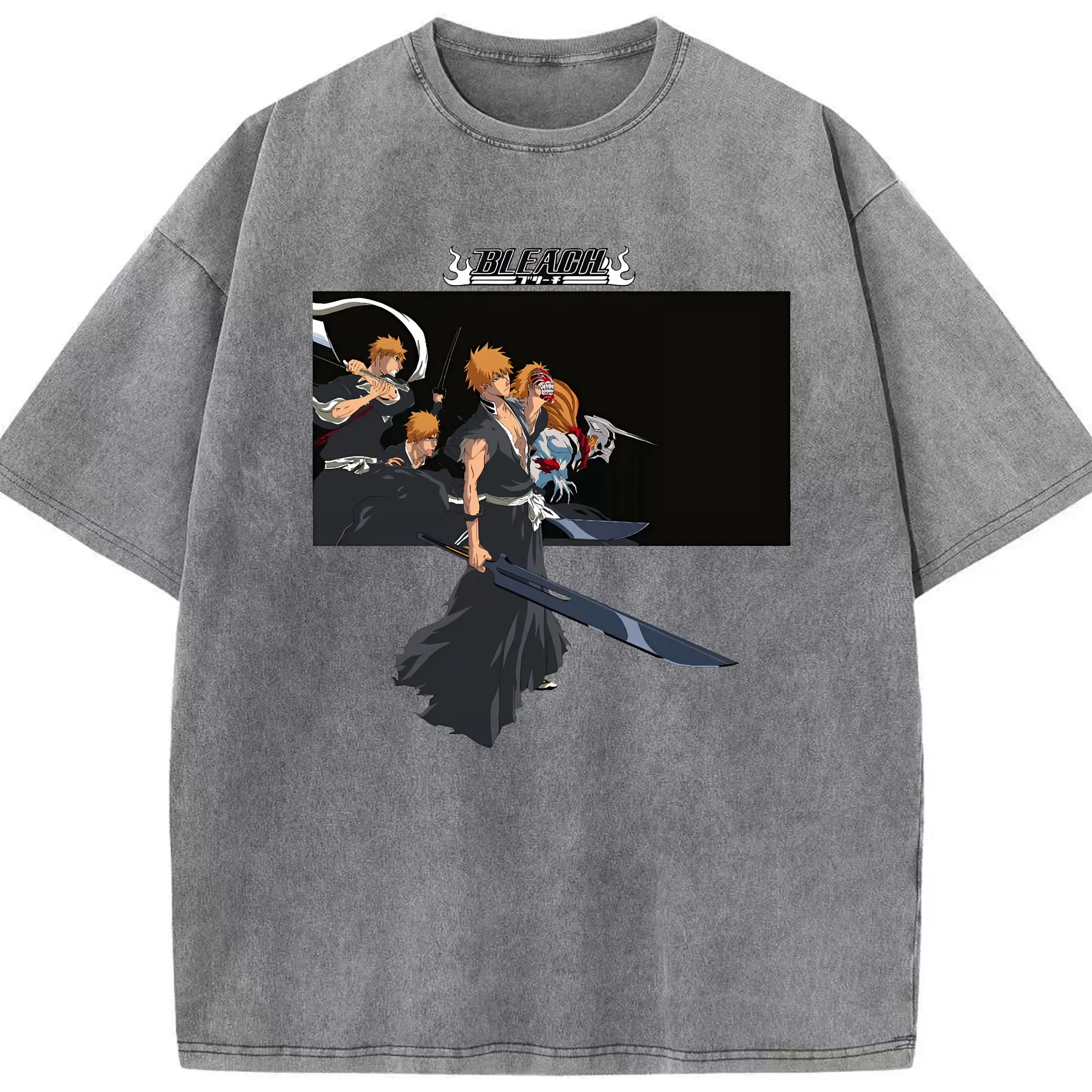 ブリーチ グッズ 黒崎 一護 - 綿100% ヴィンテージ風 半袖Tシャツ ・ 背面プリント ・ 柔らか肌触り ・ 通気性 快適 ・ スポーツ カジュアル 外出用