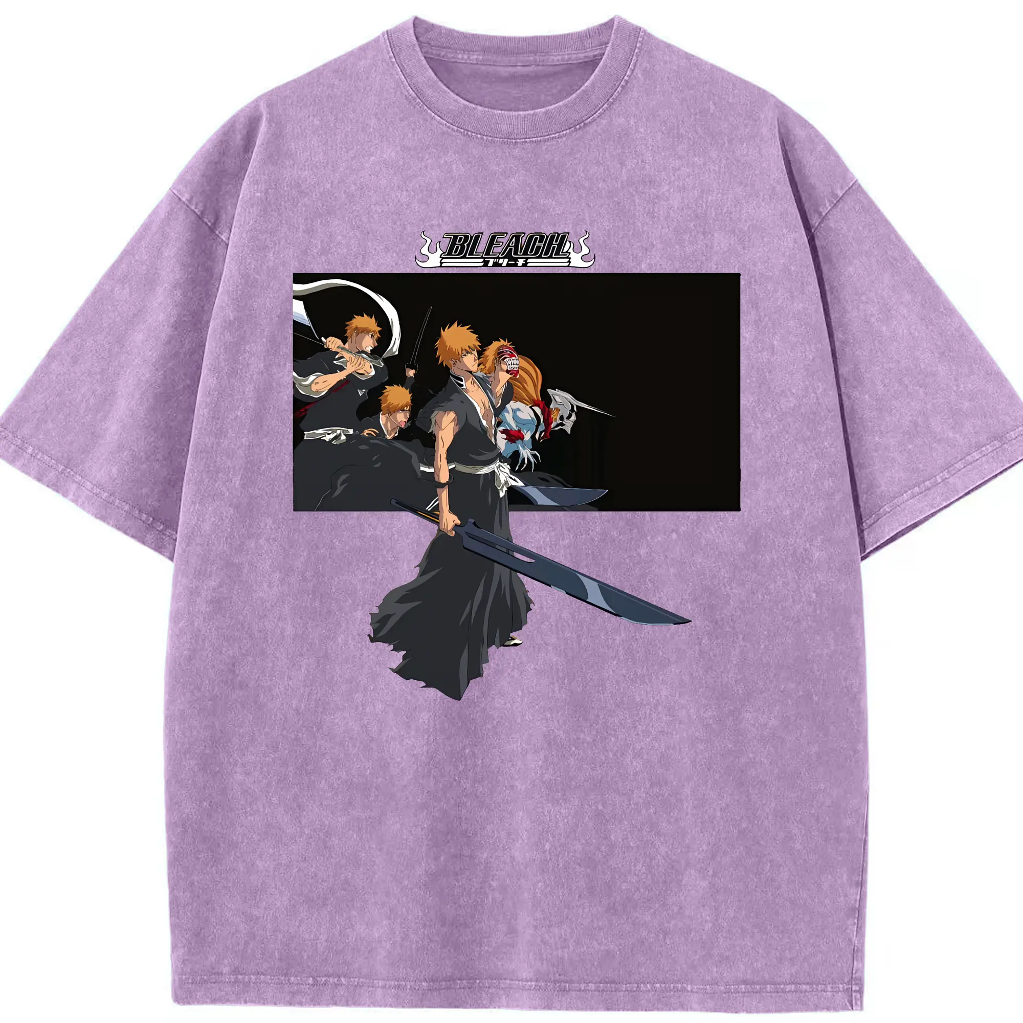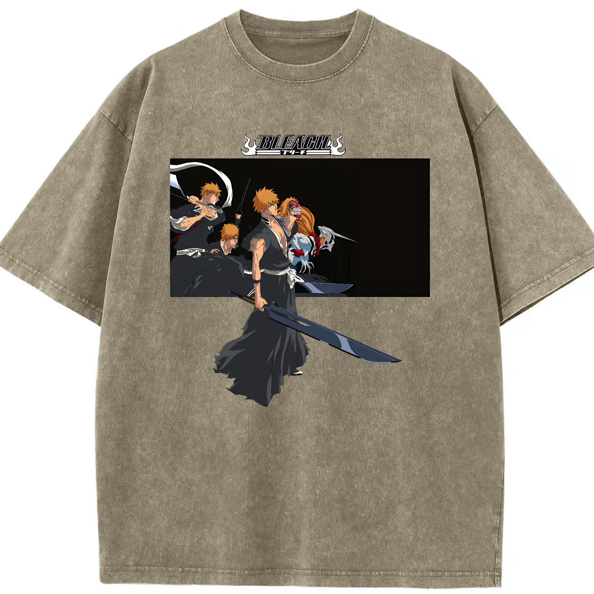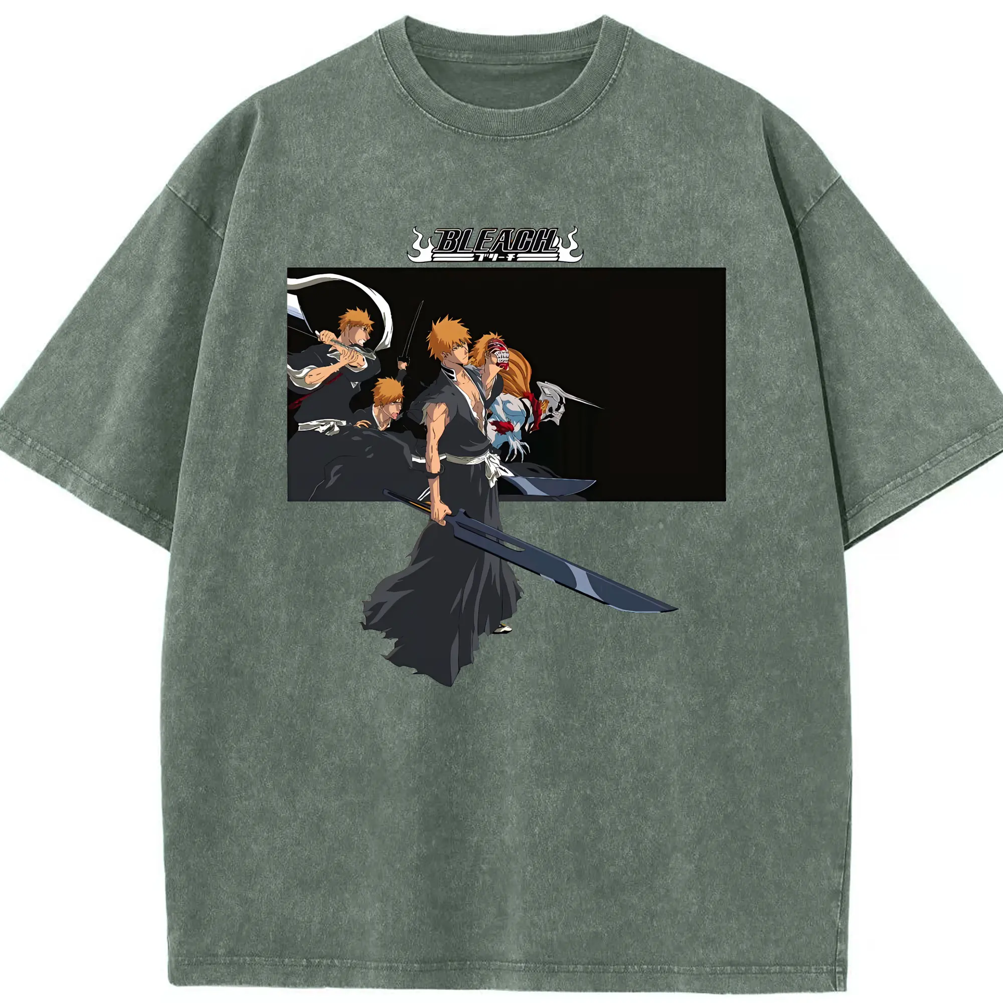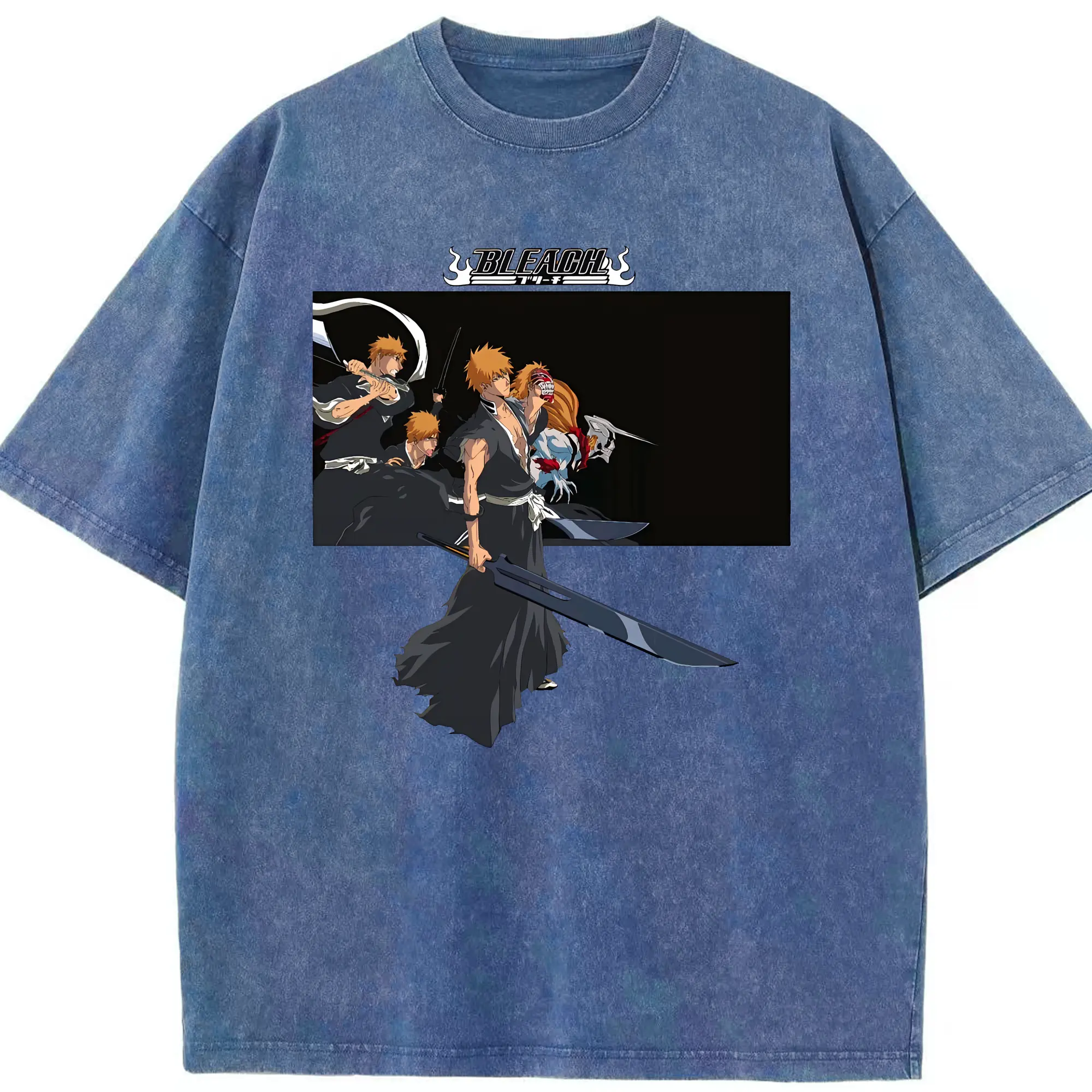 ブリーチ グッズ 黒崎 一護 - 綿100% ヴィンテージ風 半袖Tシャツ ・ 背面プリント ・ 柔らか肌触り ・ 通気性 快適 ・ スポーツ カジュアル 外出用