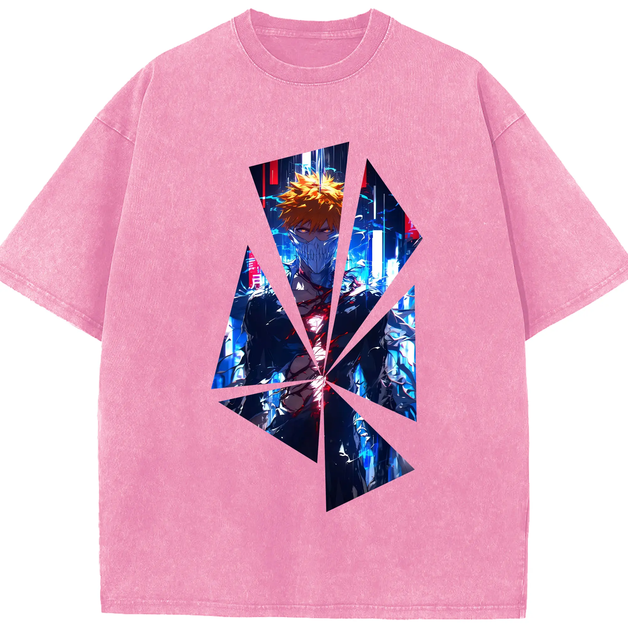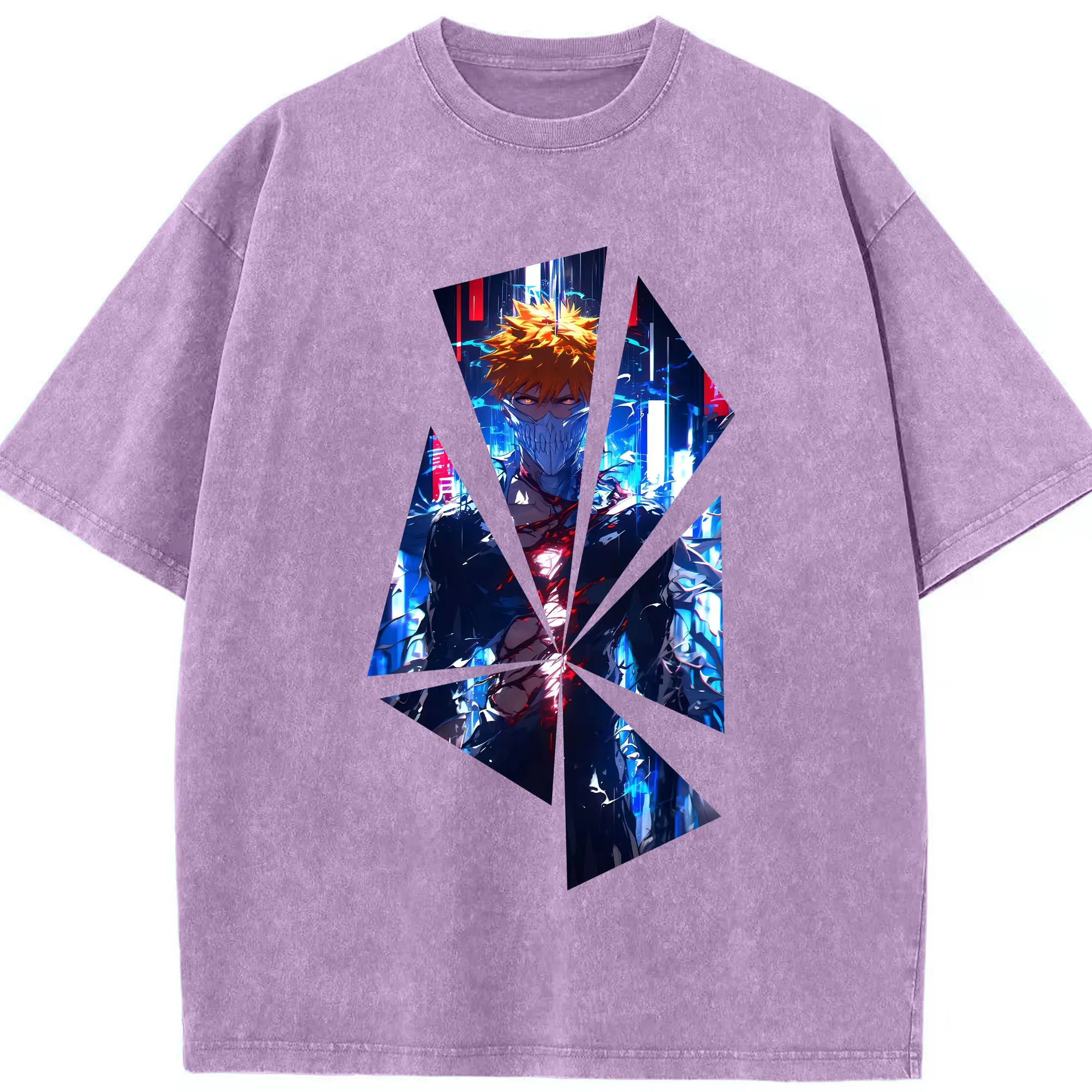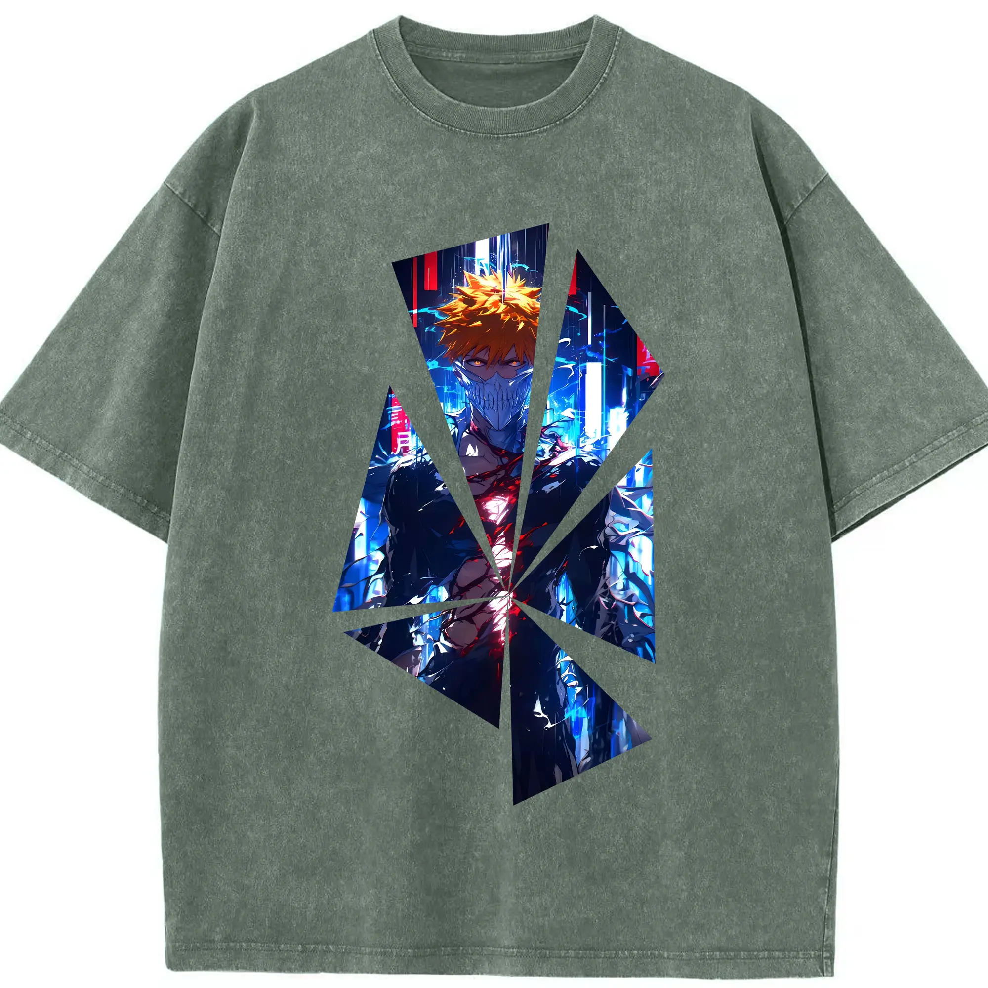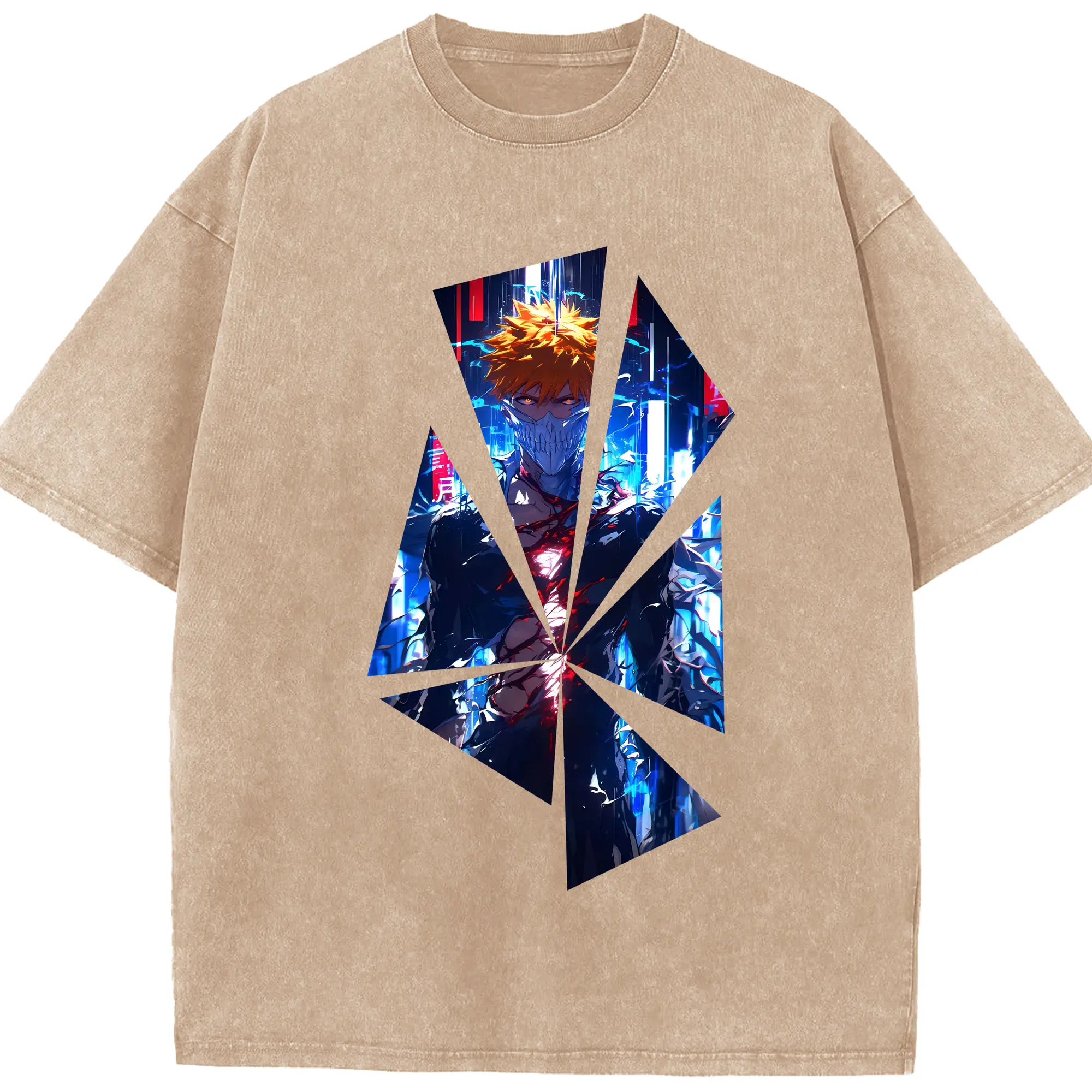 ブリーチ グッズ 黒崎 一護 - 綿100% ヴィンテージ風 半袖Tシャツ ・ 背面プリント ・ 柔らか肌触り ・ 通気性 快適 ・ スポーツ カジュアル 外出用