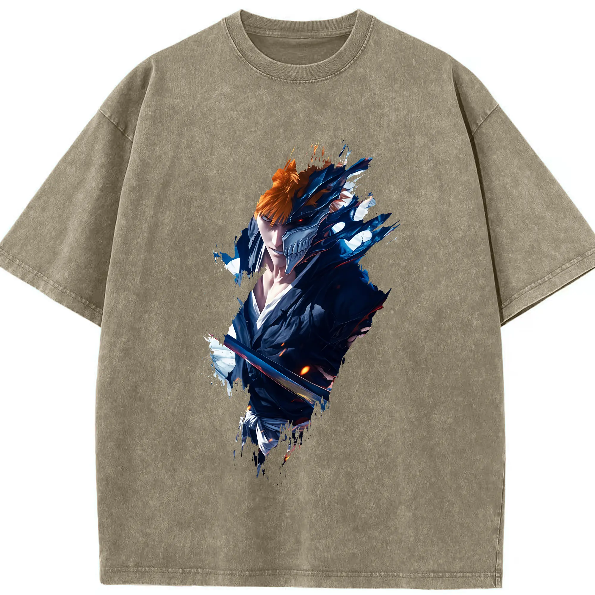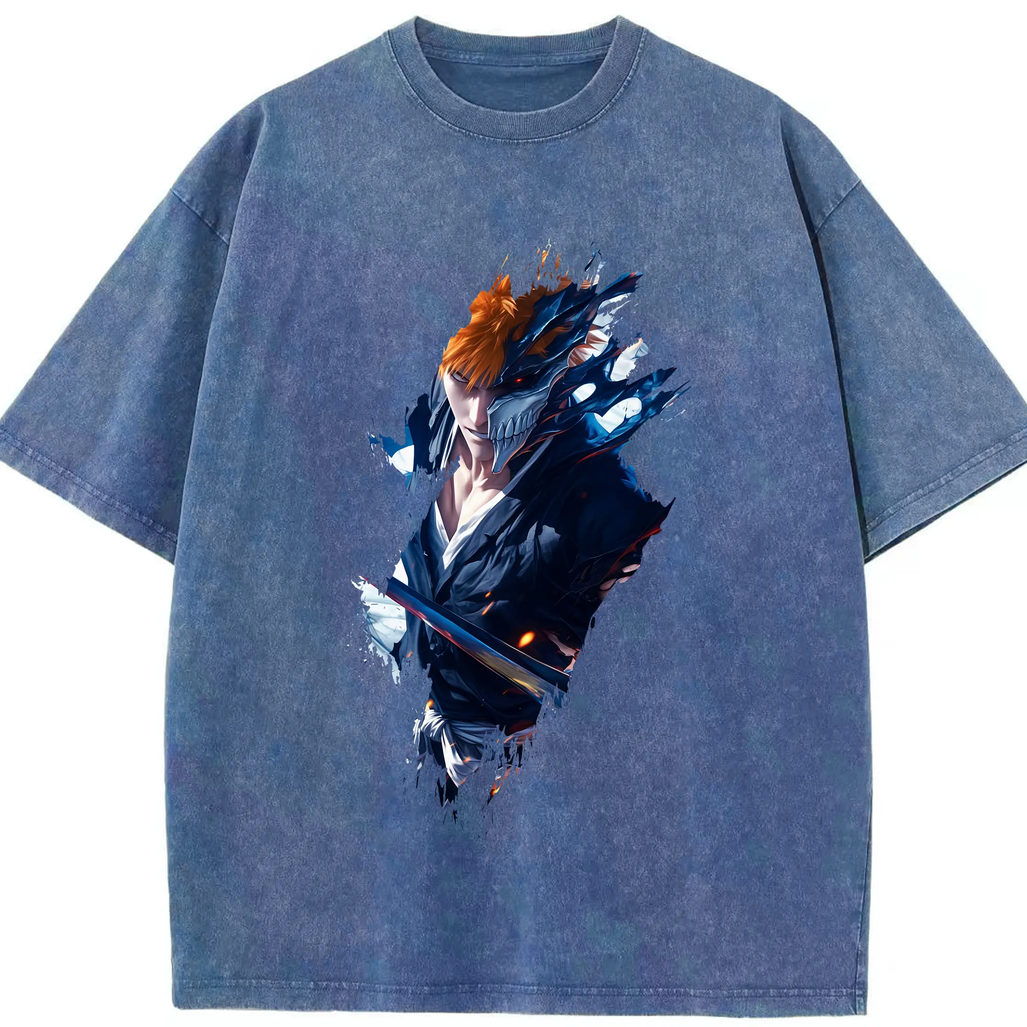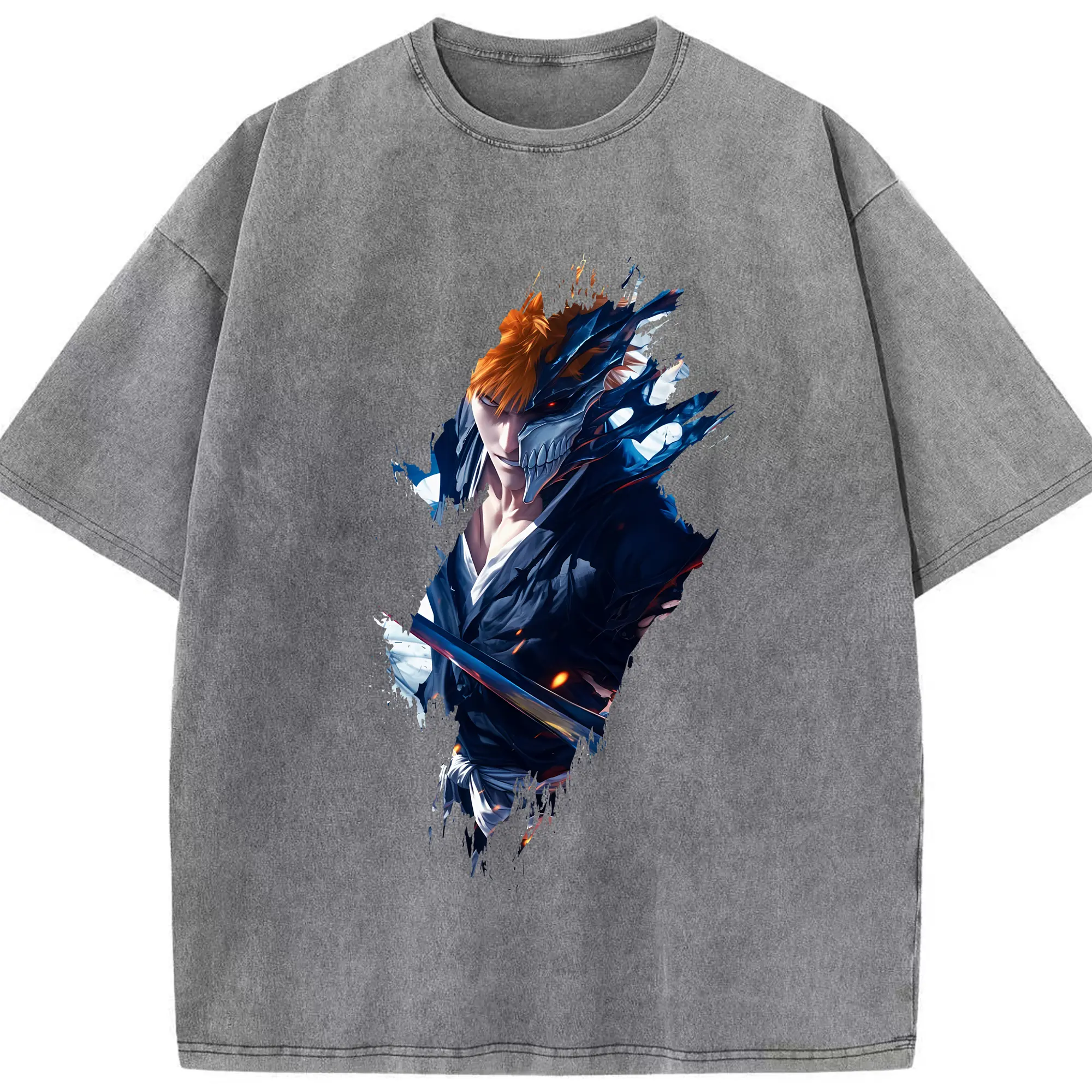 ブリーチ グッズ 黒崎 一護 - 綿100% ヴィンテージ風 半袖Tシャツ ・ フロントプリント ・ 柔らか肌触り ・ 通気性 快適 ・ スポーツ カジュアル 外出用