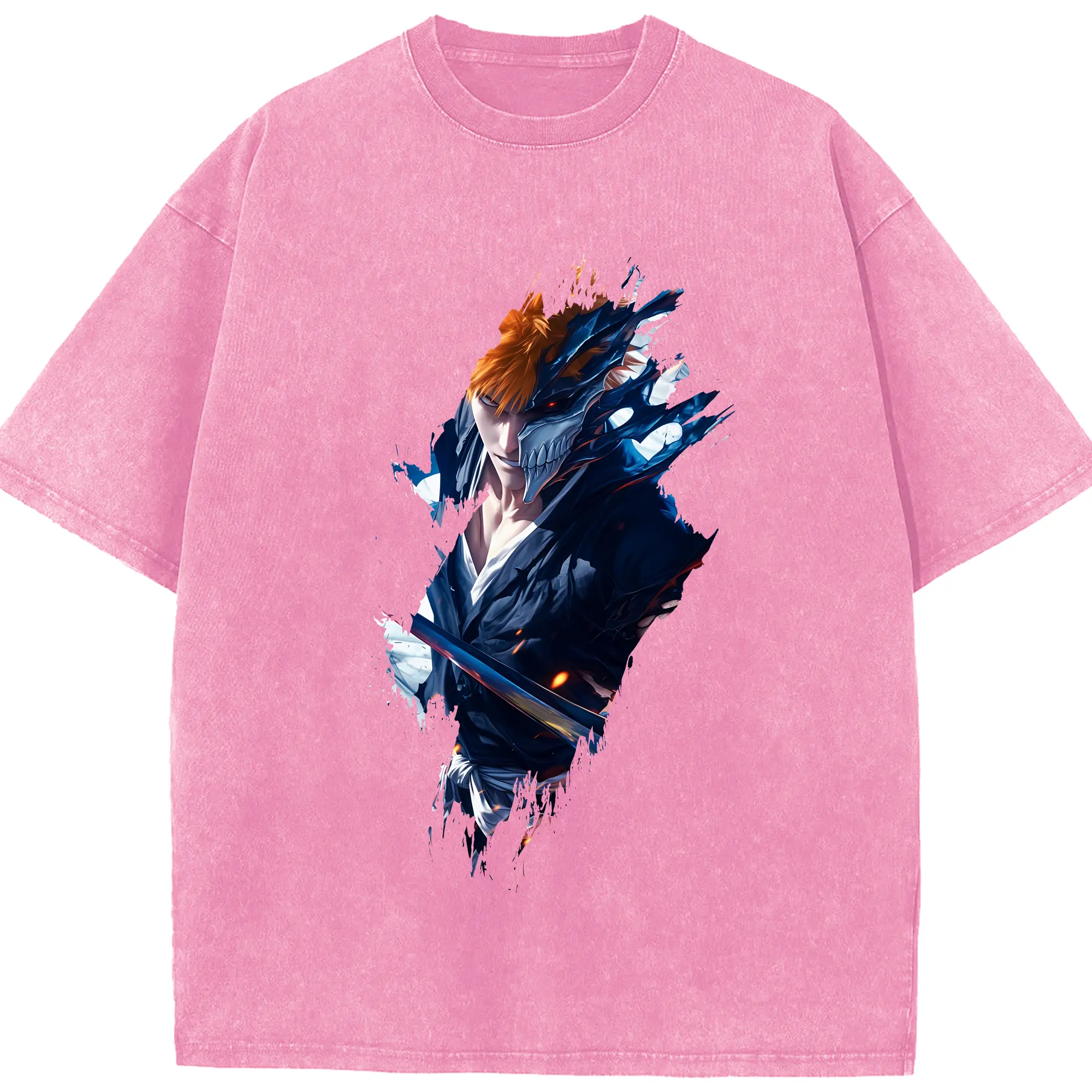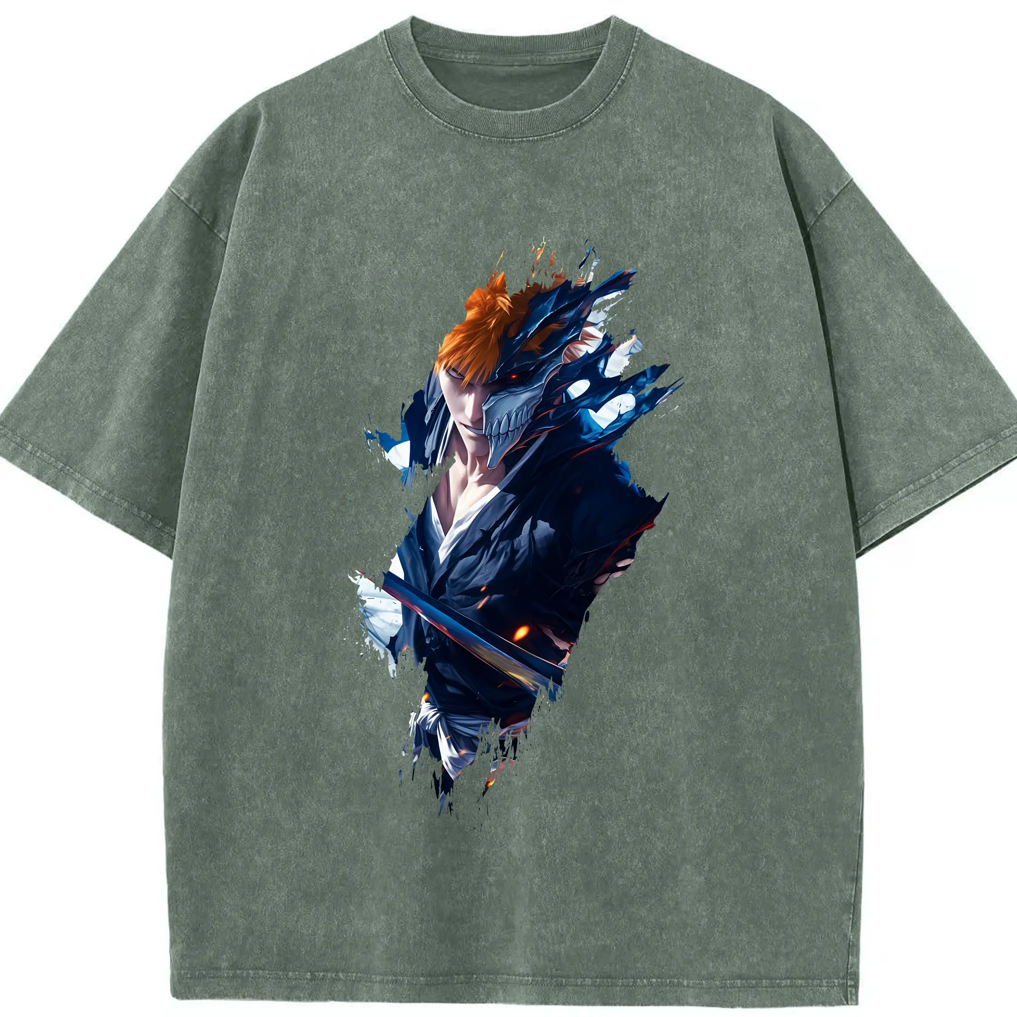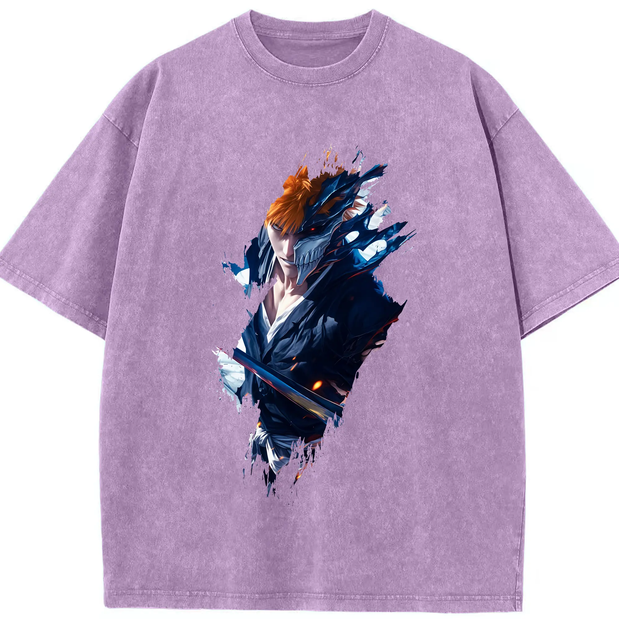 ブリーチ グッズ 黒崎 一護 - 綿100% ヴィンテージ風 半袖Tシャツ ・ フロントプリント ・ 柔らか肌触り ・ 通気性 快適 ・ スポーツ カジュアル 外出用