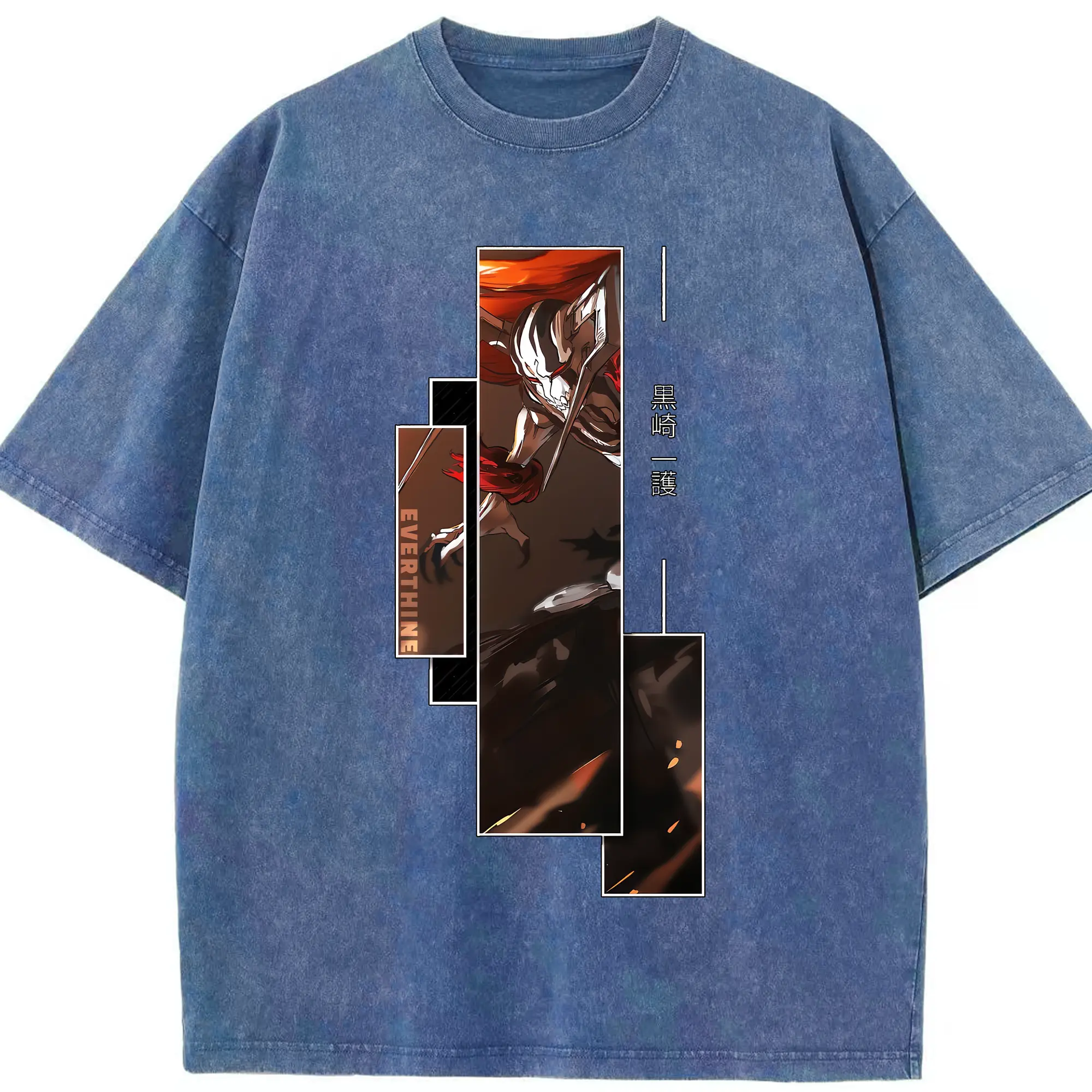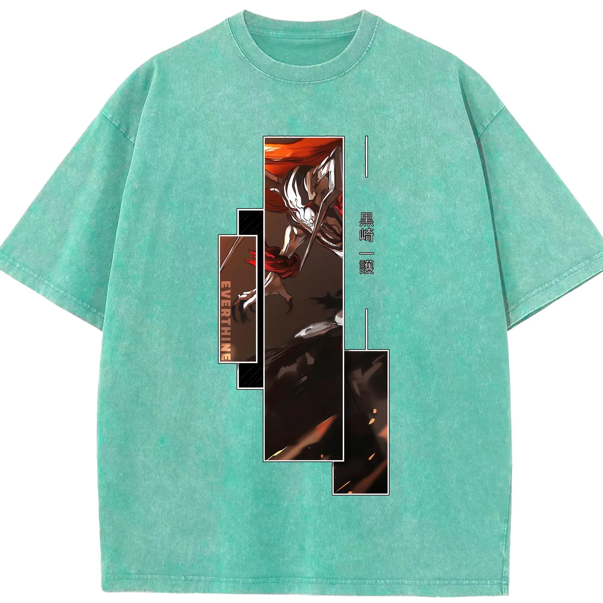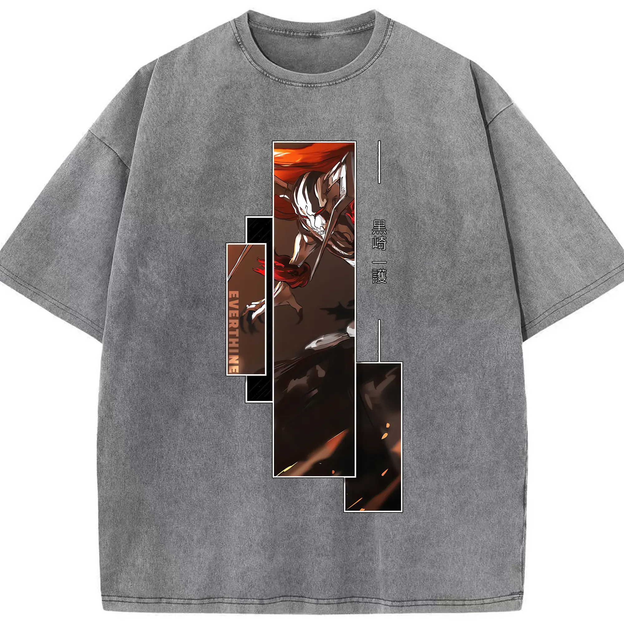 ブリーチ グッズ 黒崎 一護 - 綿100% ヴィンテージ風 半袖Tシャツ ・ 背面プリント ・ 柔らか肌触り ・ 通気性 快適 ・ スポーツ カジュアル 外出用