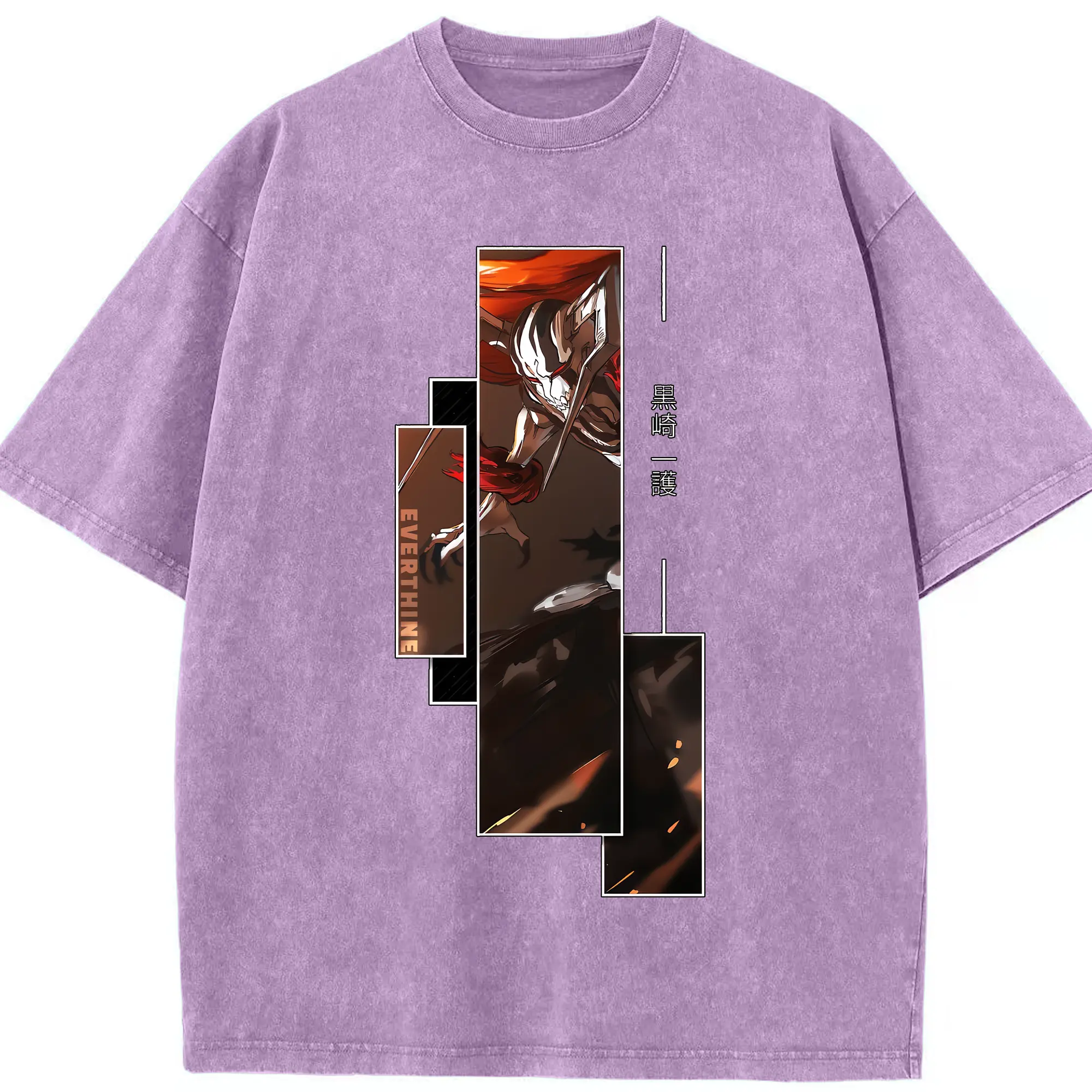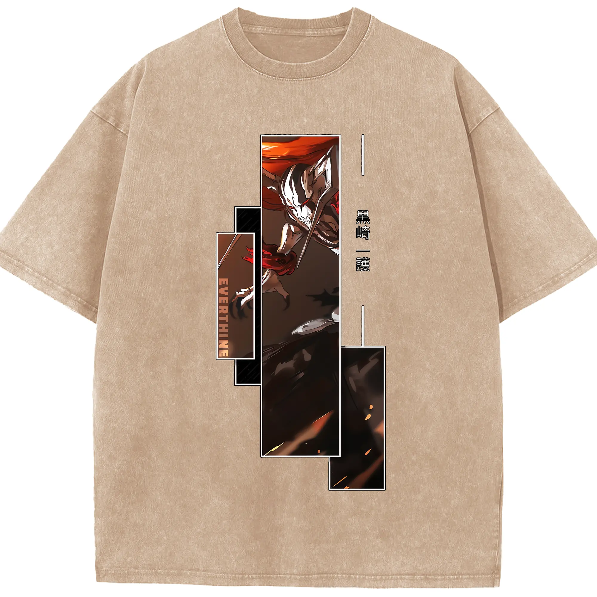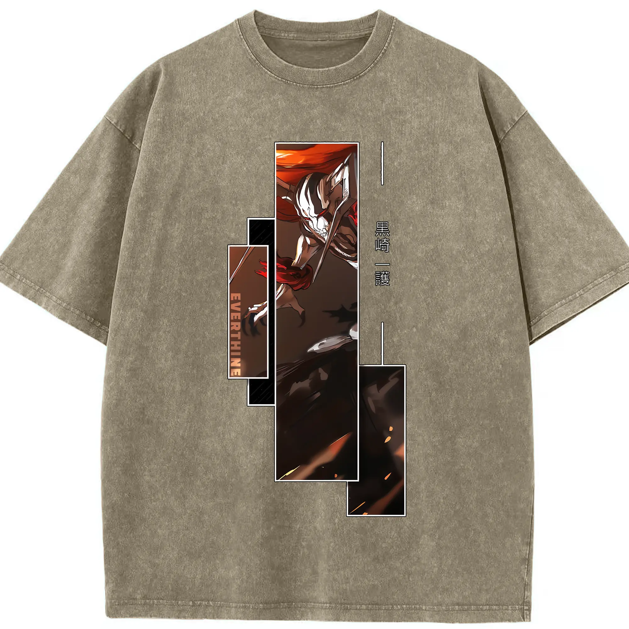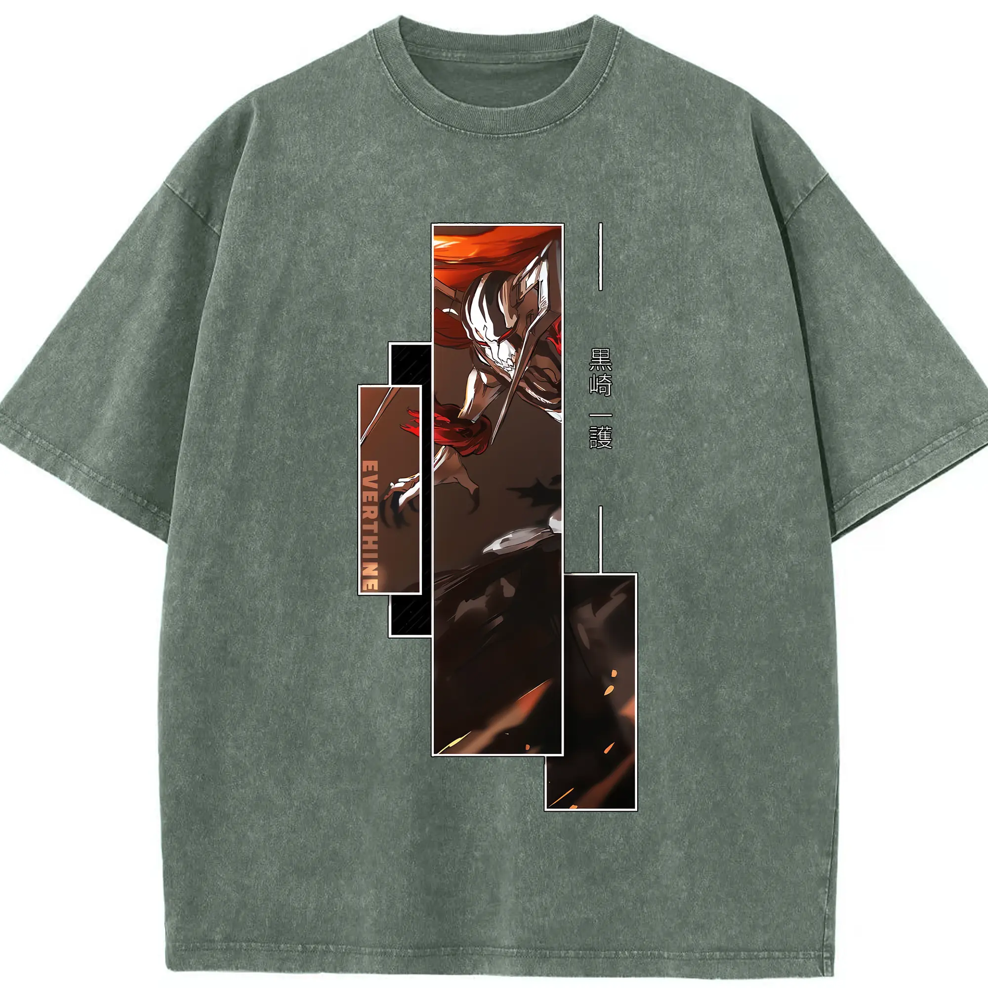 ブリーチ グッズ 黒崎 一護 - 綿100% ヴィンテージ風 半袖Tシャツ ・ 背面プリント ・ 柔らか肌触り ・ 通気性 快適 ・ スポーツ カジュアル 外出用