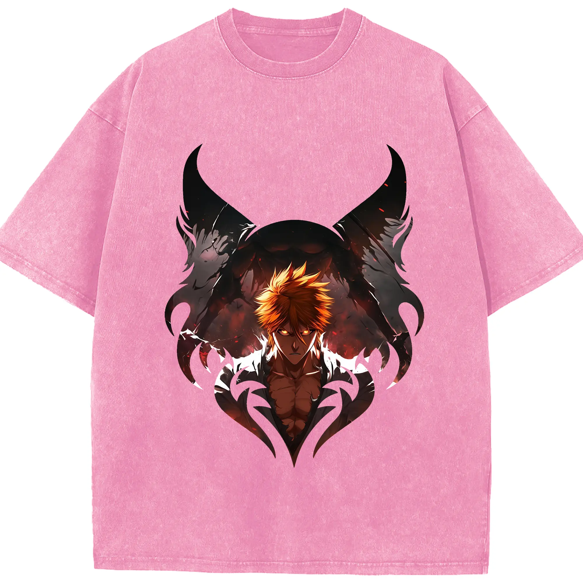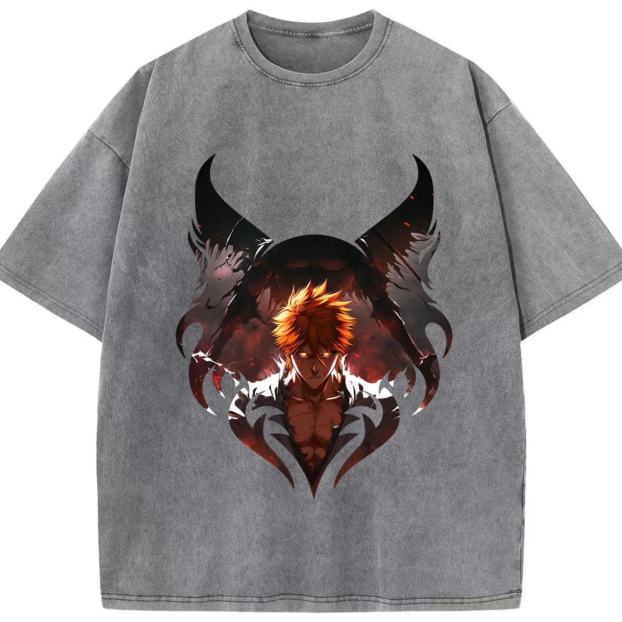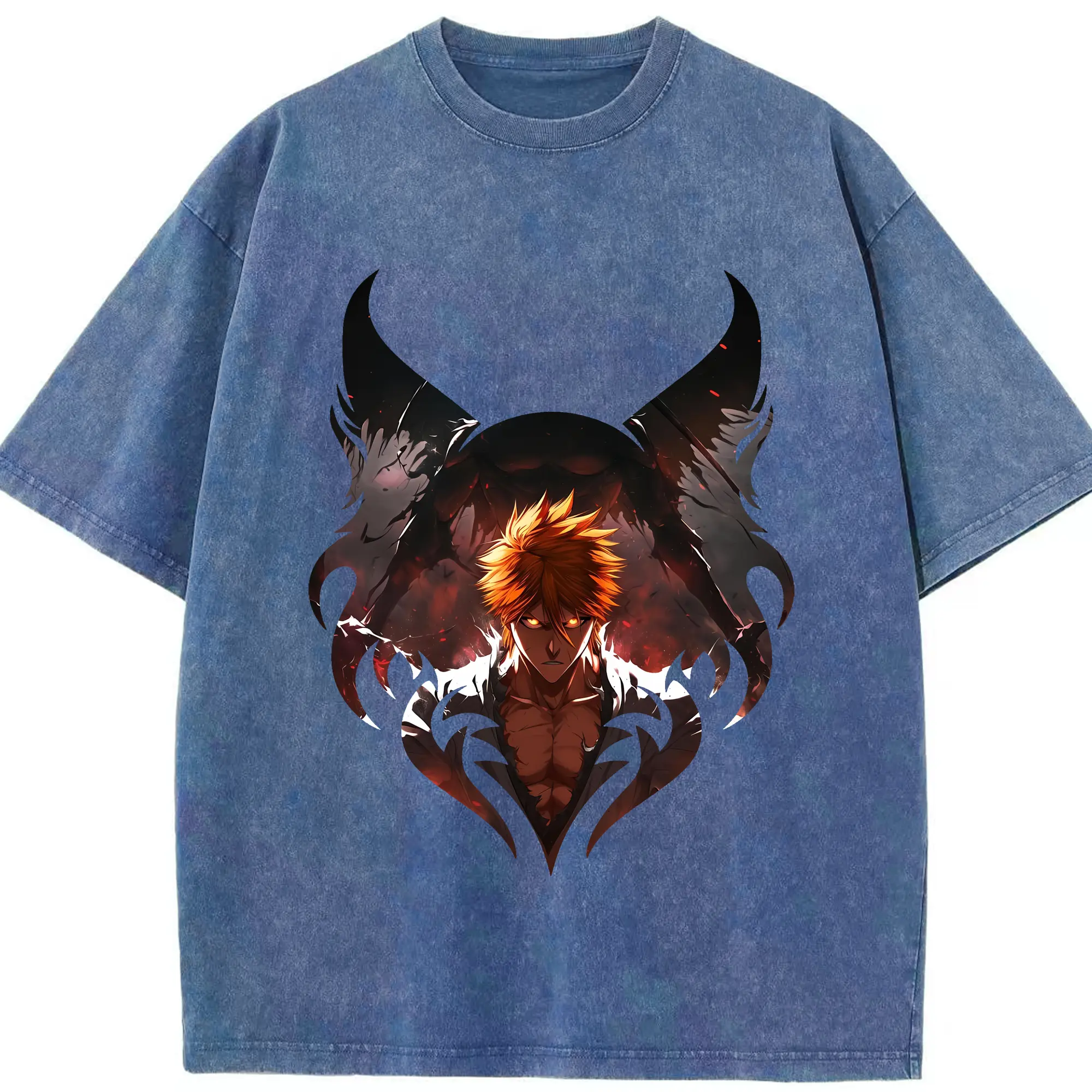 ブリーチ グッズ 黒崎 一護 - 綿100% ヴィンテージ風 半袖Tシャツ ・ フロントプリント ・ 柔らか肌触り ・ 通気性 快適 ・ スポーツ カジュアル 外出用