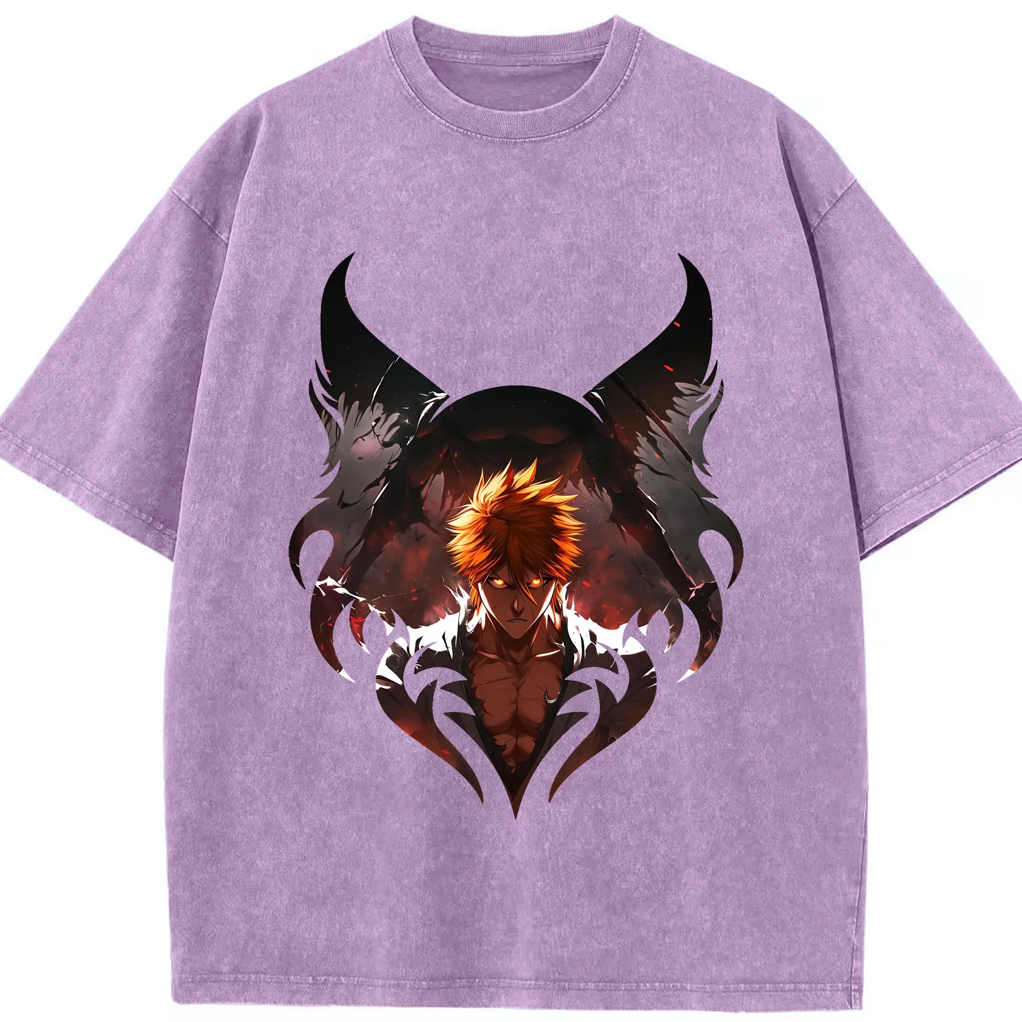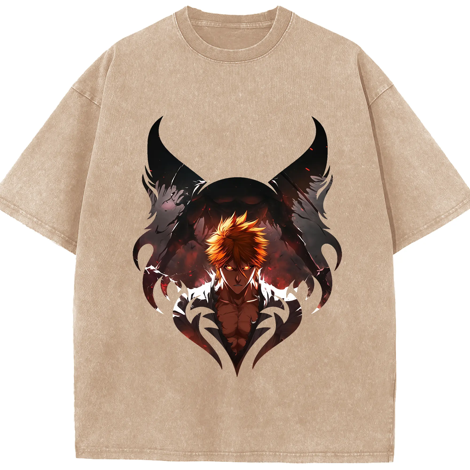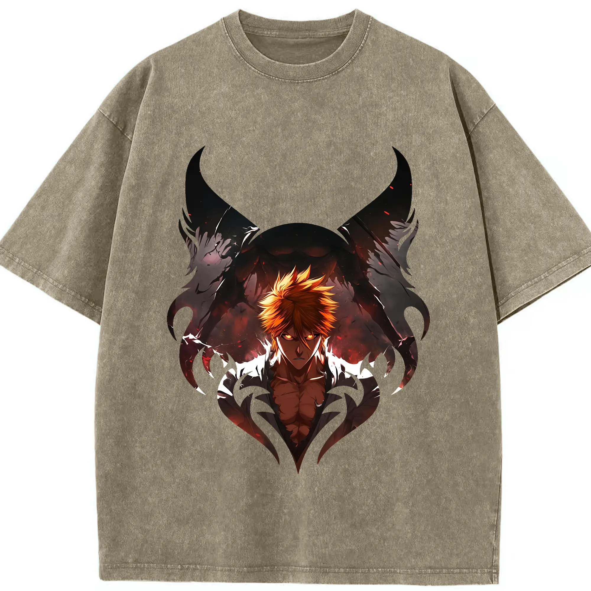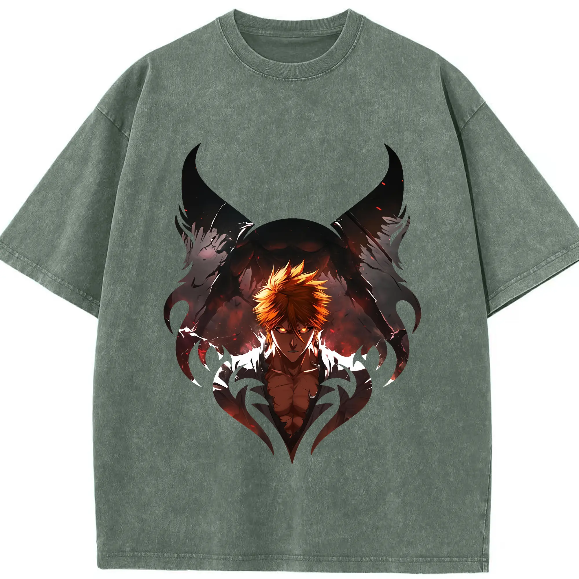 ブリーチ グッズ 黒崎 一護 - 綿100% ヴィンテージ風 半袖Tシャツ ・ フロントプリント ・ 柔らか肌触り ・ 通気性 快適 ・ スポーツ カジュアル 外出用