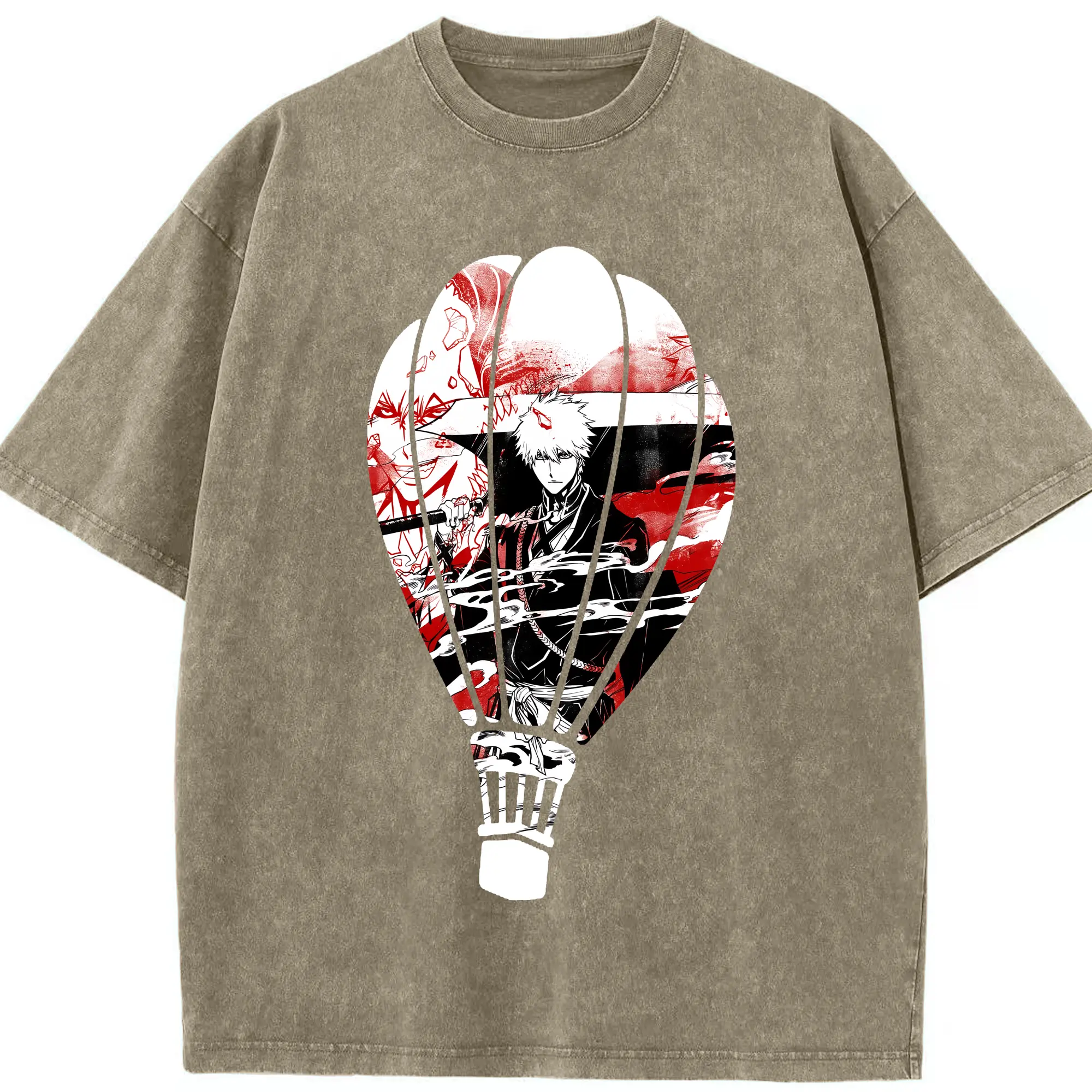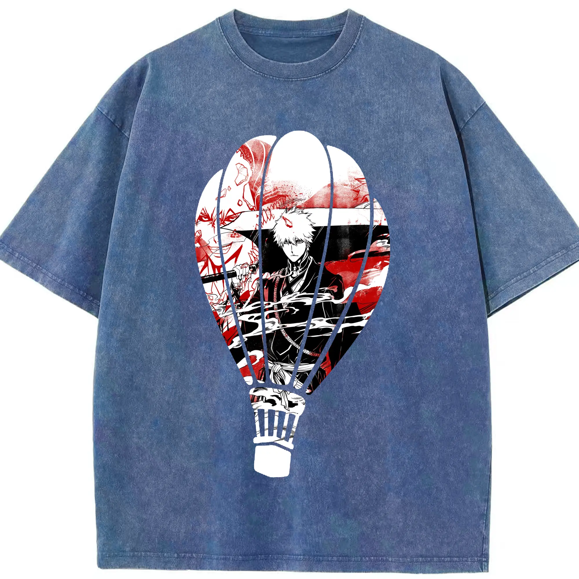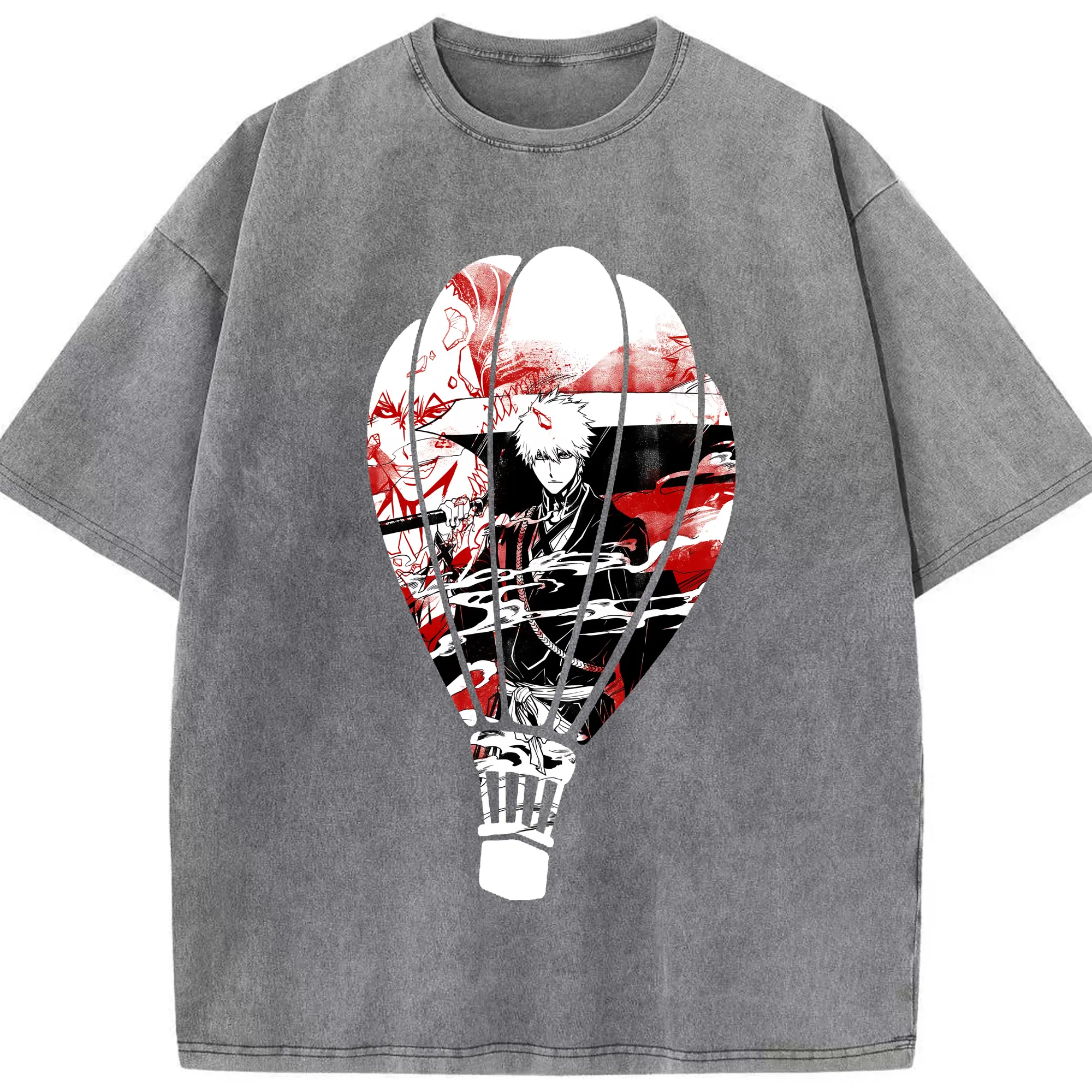 ブリーチ グッズ 黒崎 一護 - 綿100% ヴィンテージ風 半袖Tシャツ ・ 背面プリント ・ 柔らか肌触り ・ 通気性 快適 ・ スポーツ カジュアル 外出用