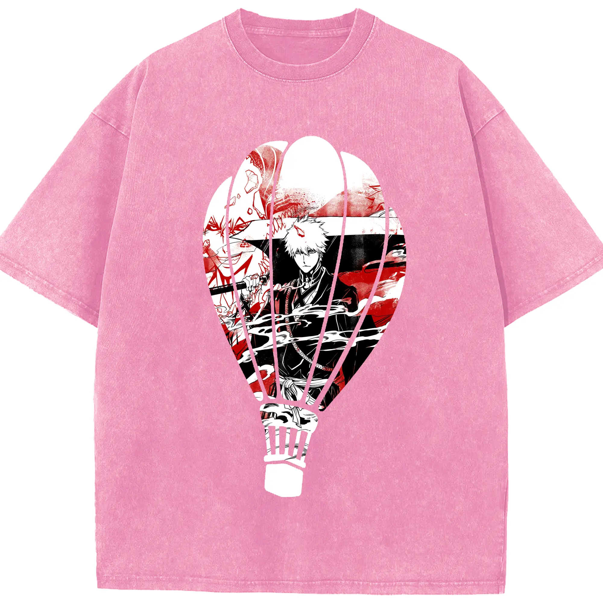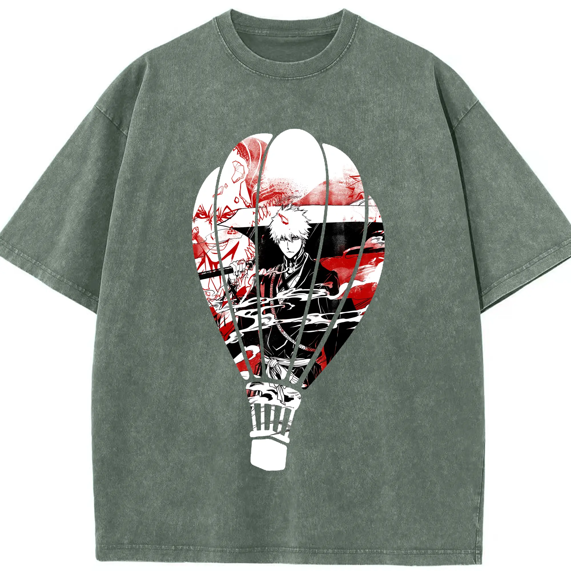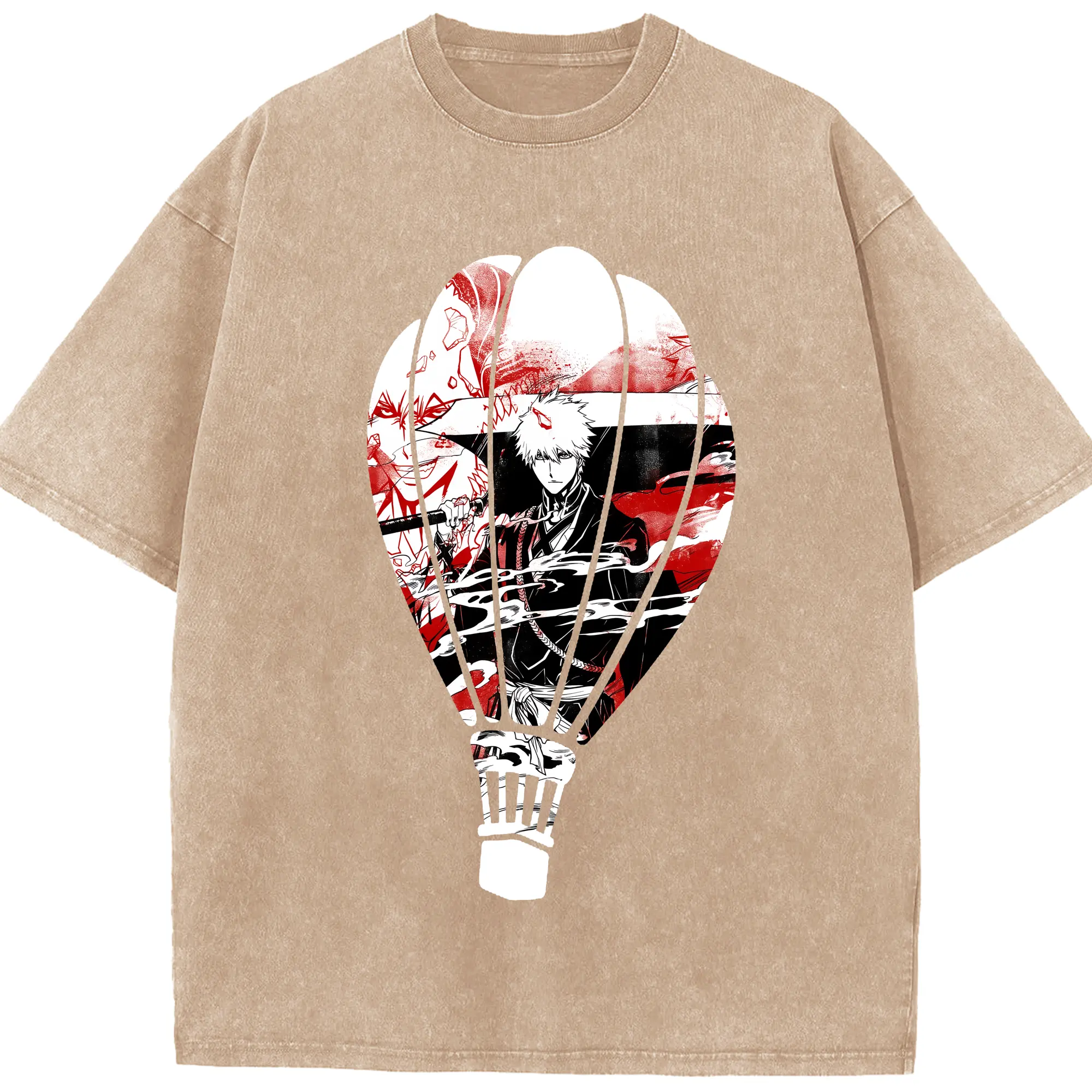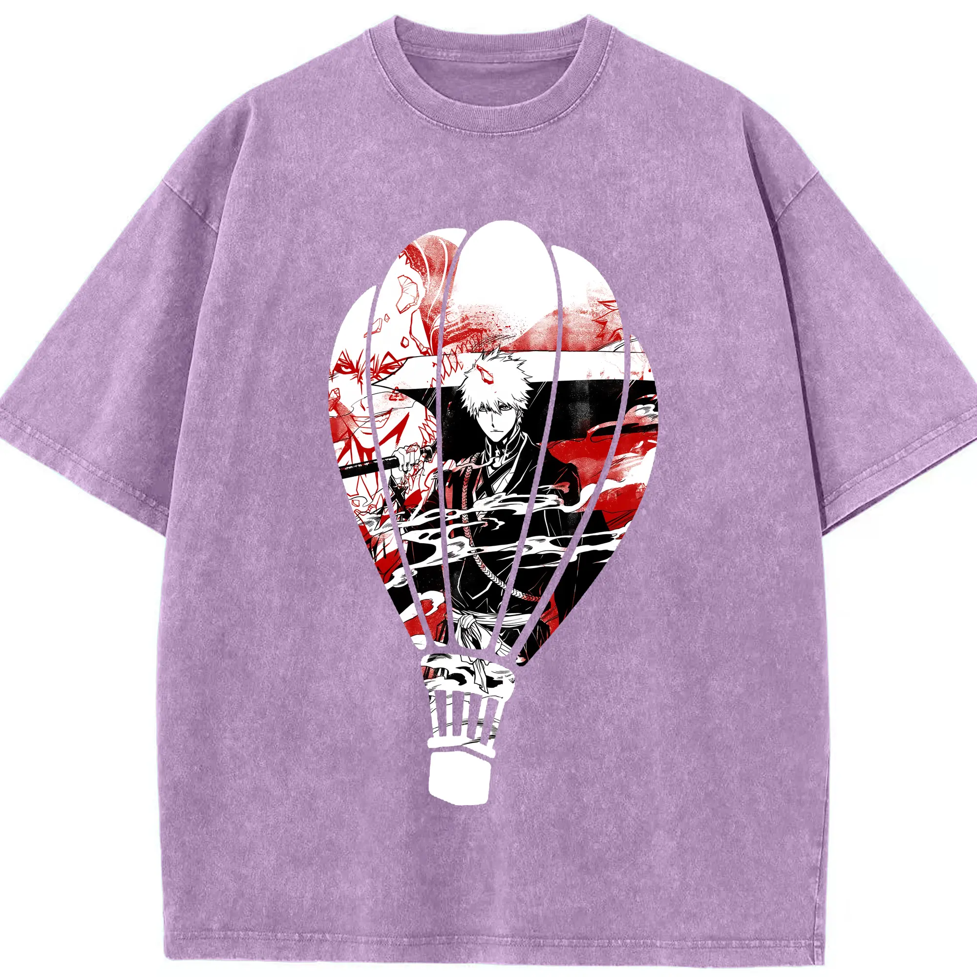 ブリーチ グッズ 黒崎 一護 - 綿100% ヴィンテージ風 半袖Tシャツ ・ 背面プリント ・ 柔らか肌触り ・ 通気性 快適 ・ スポーツ カジュアル 外出用
