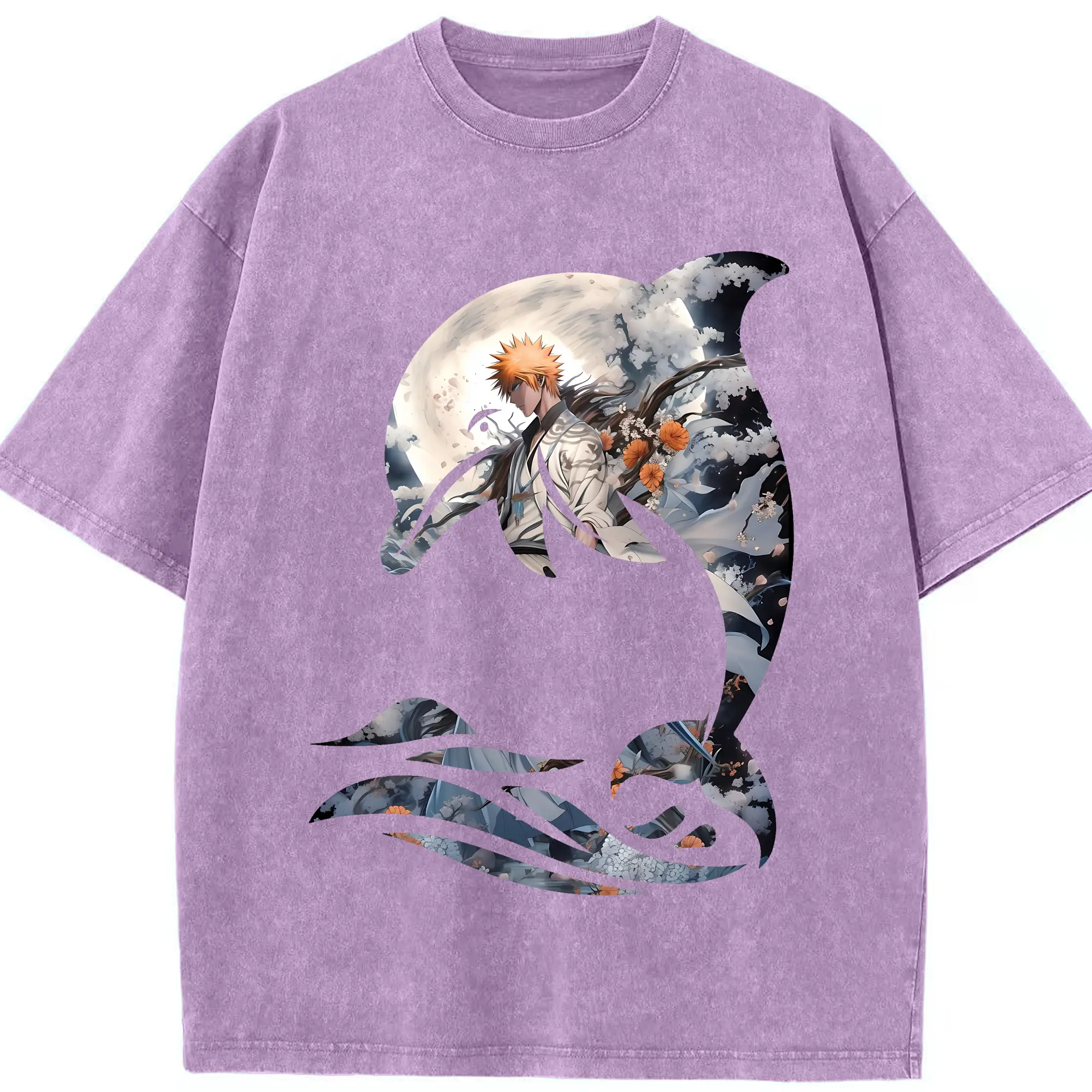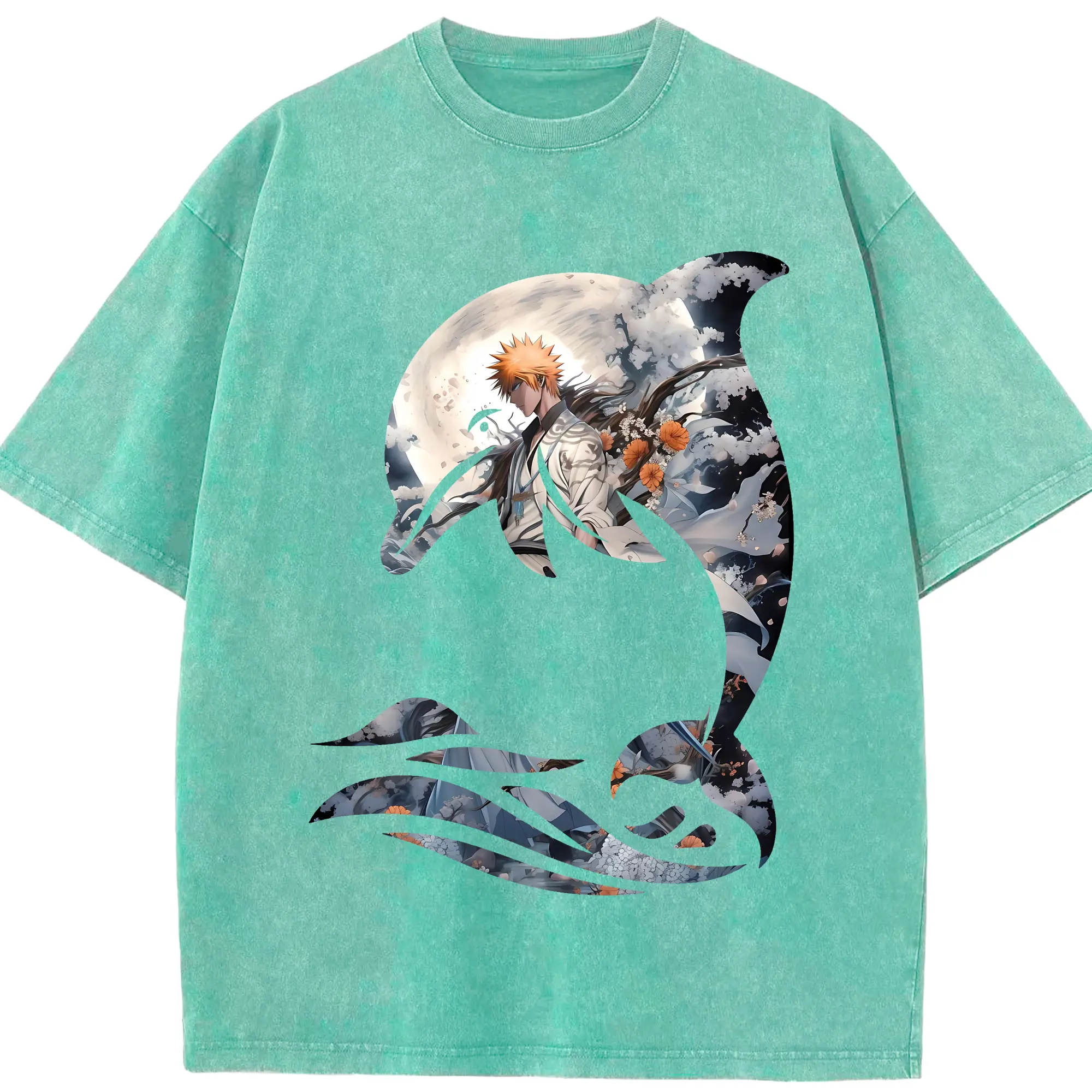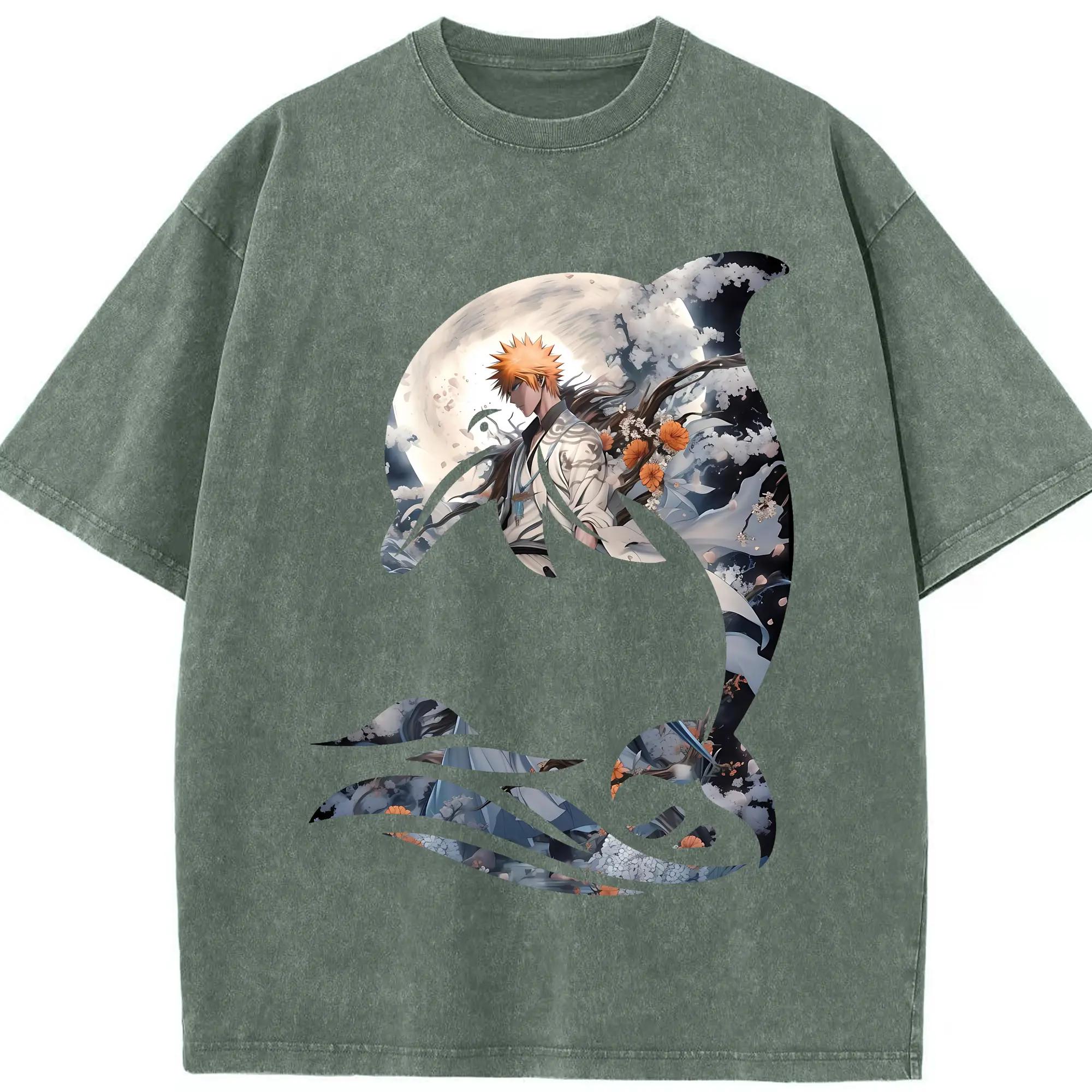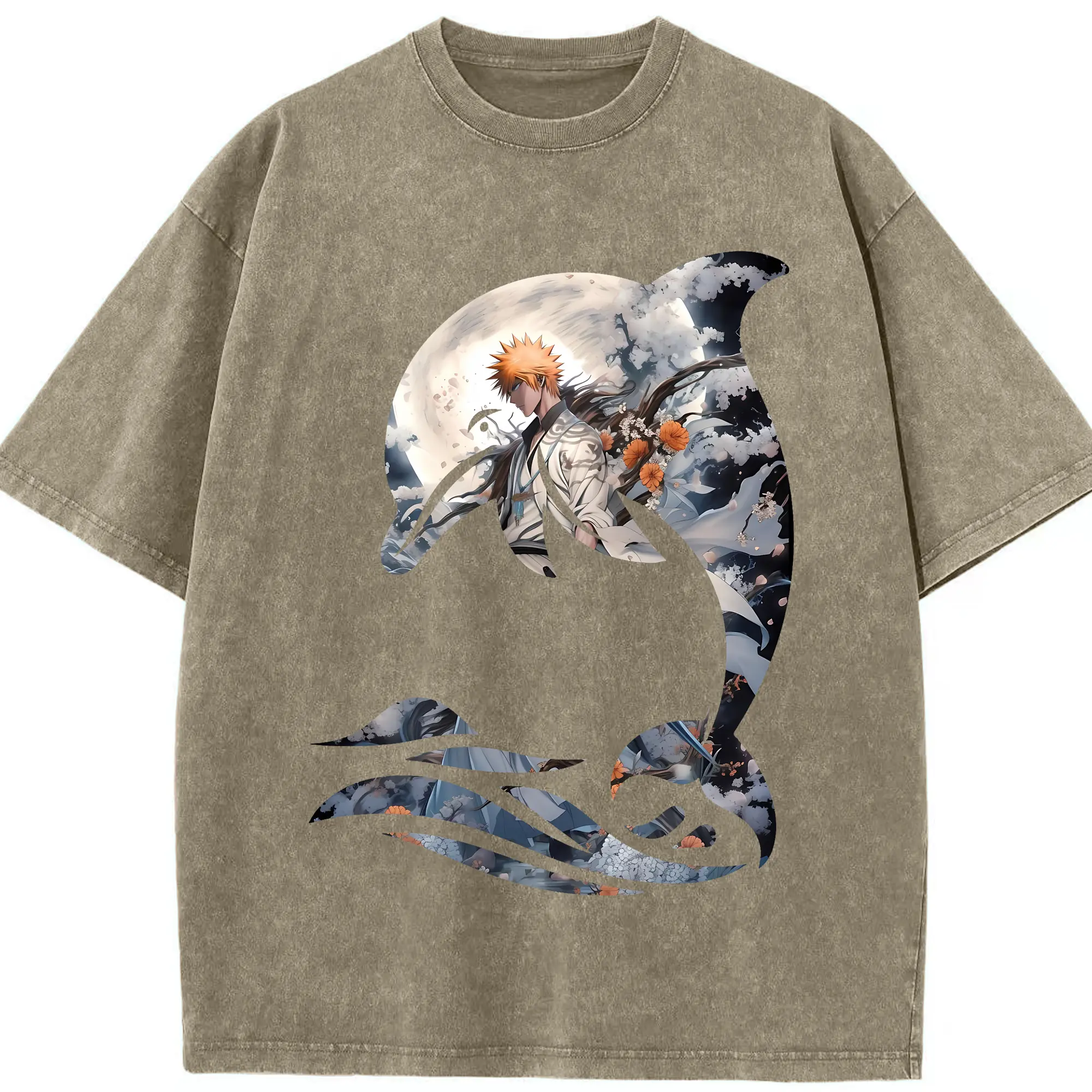 ブリーチ グッズ 黒崎 一護 - 綿100% ヴィンテージ風 半袖Tシャツ ・ 背面プリント ・ 柔らか肌触り ・ 通気性 快適 ・ スポーツ カジュアル 外出用