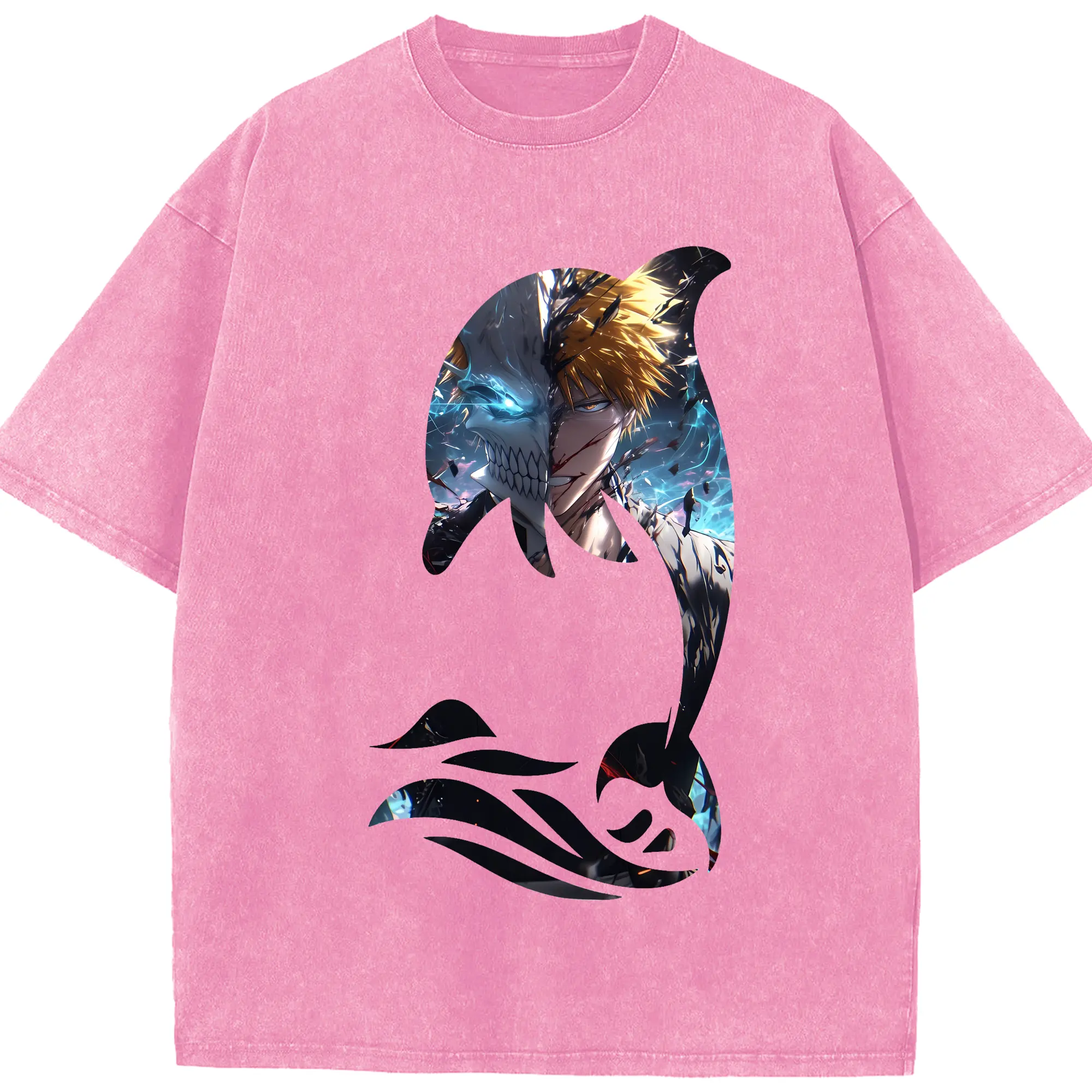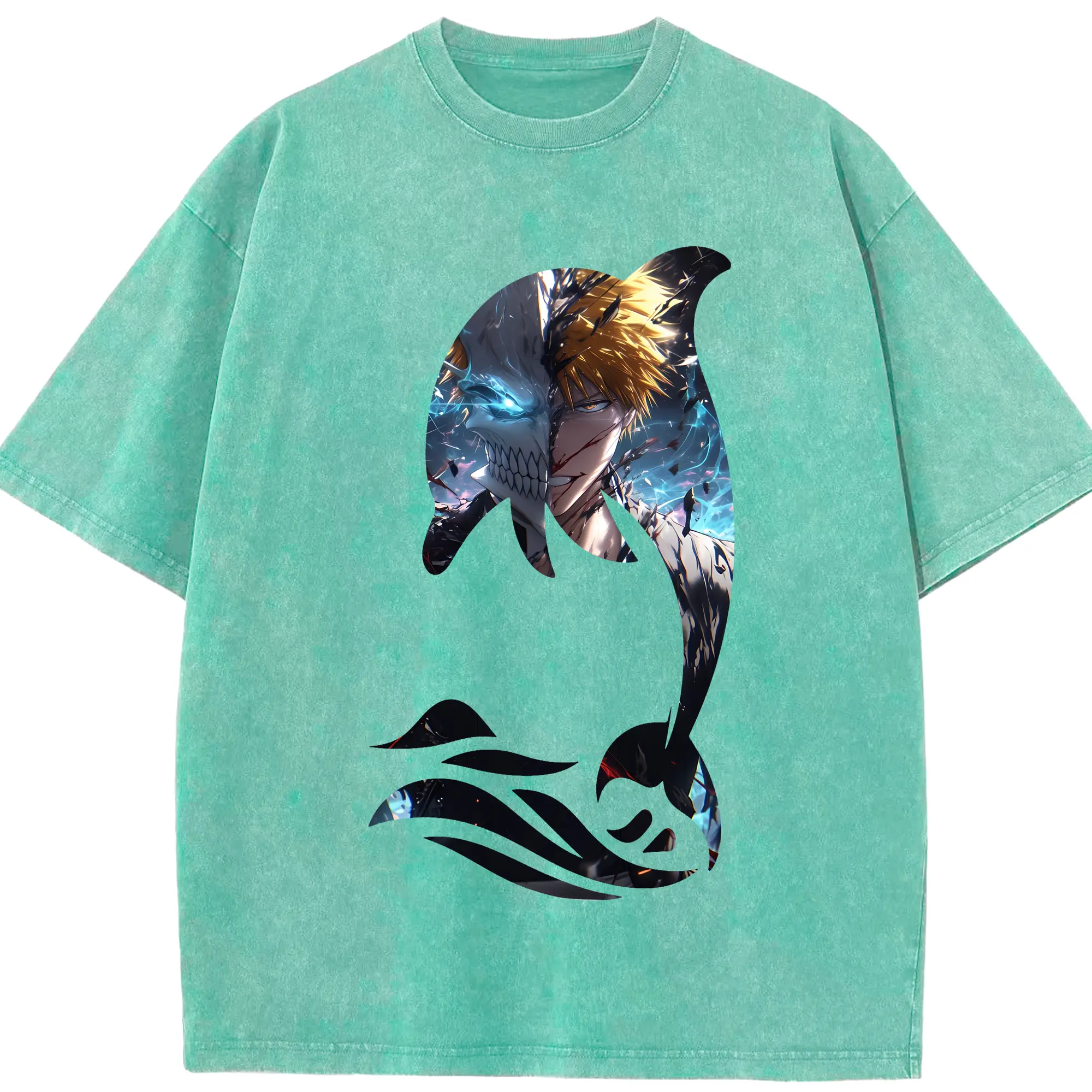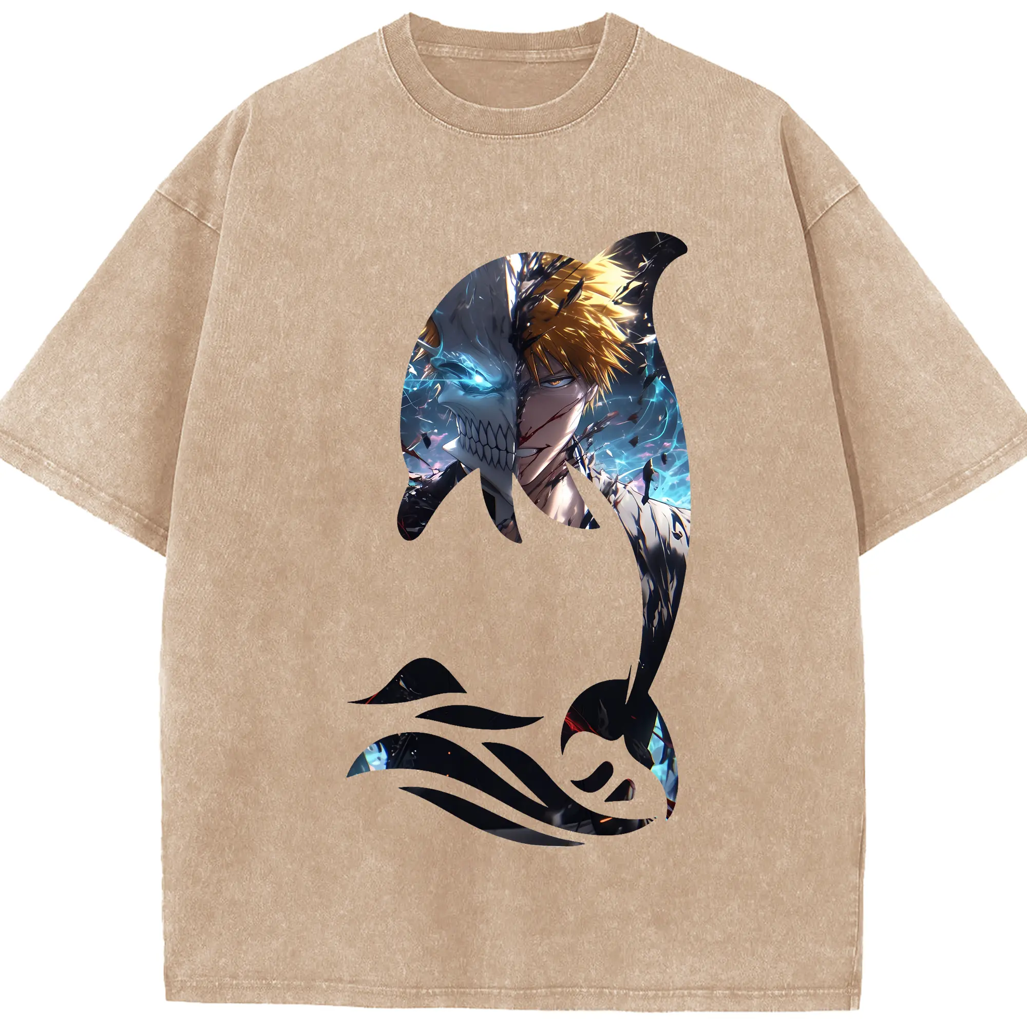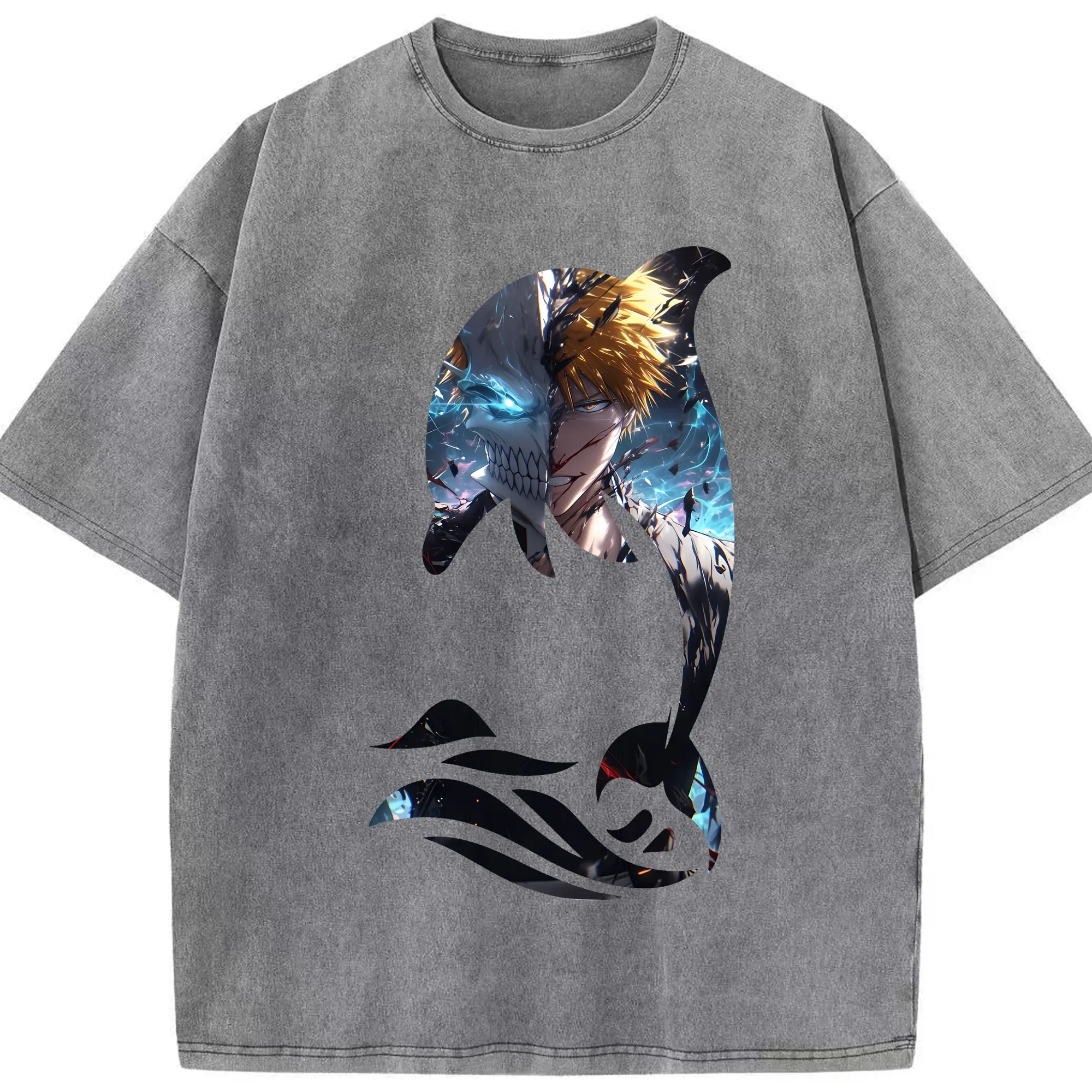 ブリーチ グッズ 黒崎 一護 - 綿100% ヴィンテージ風 半袖Tシャツ ・ 背面プリント ・ 柔らか肌触り ・ 通気性 快適 ・ スポーツ カジュアル 外出用