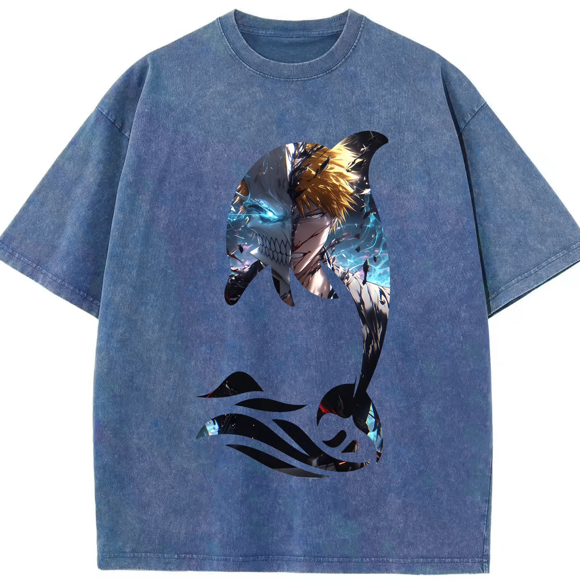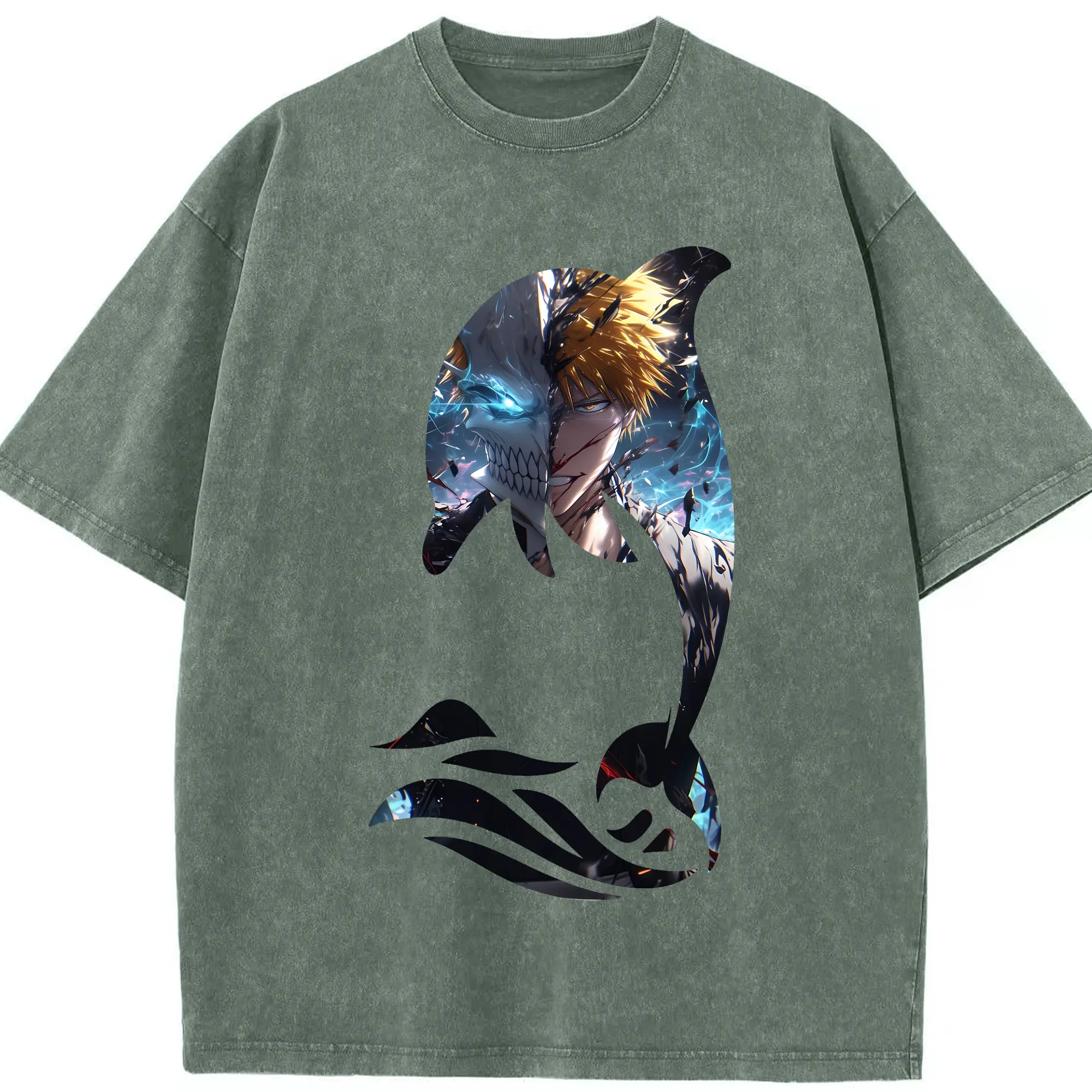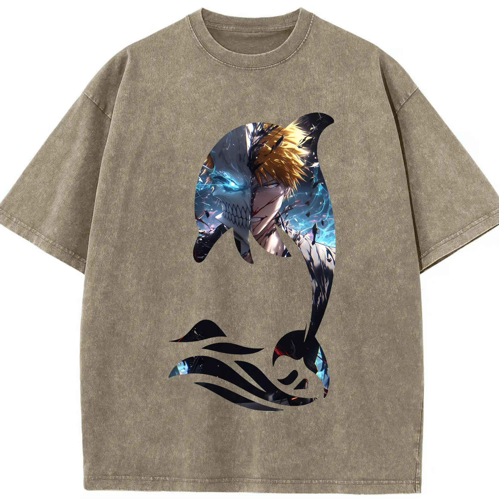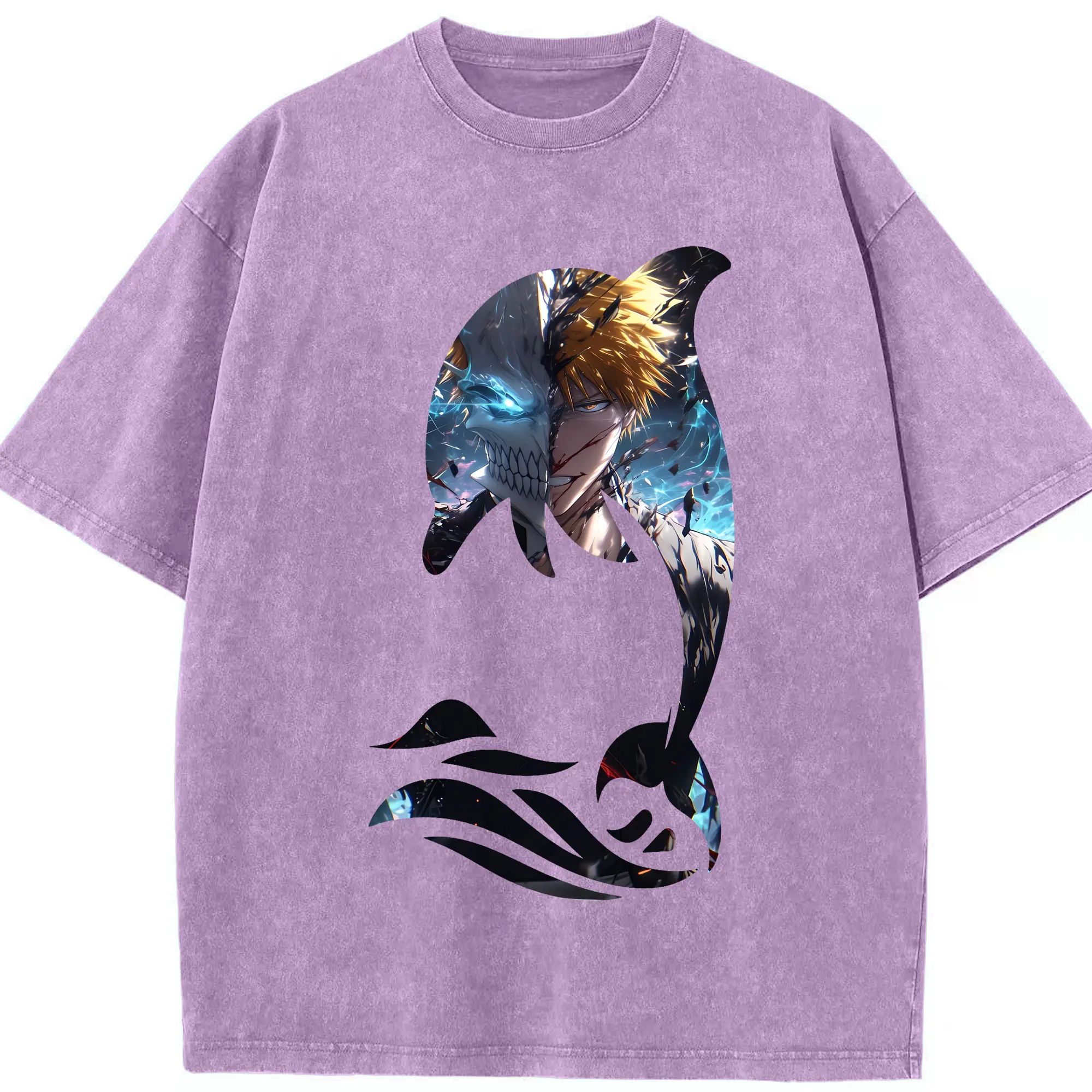 ブリーチ グッズ 黒崎 一護 - 綿100% ヴィンテージ風 半袖Tシャツ ・ 背面プリント ・ 柔らか肌触り ・ 通気性 快適 ・ スポーツ カジュアル 外出用