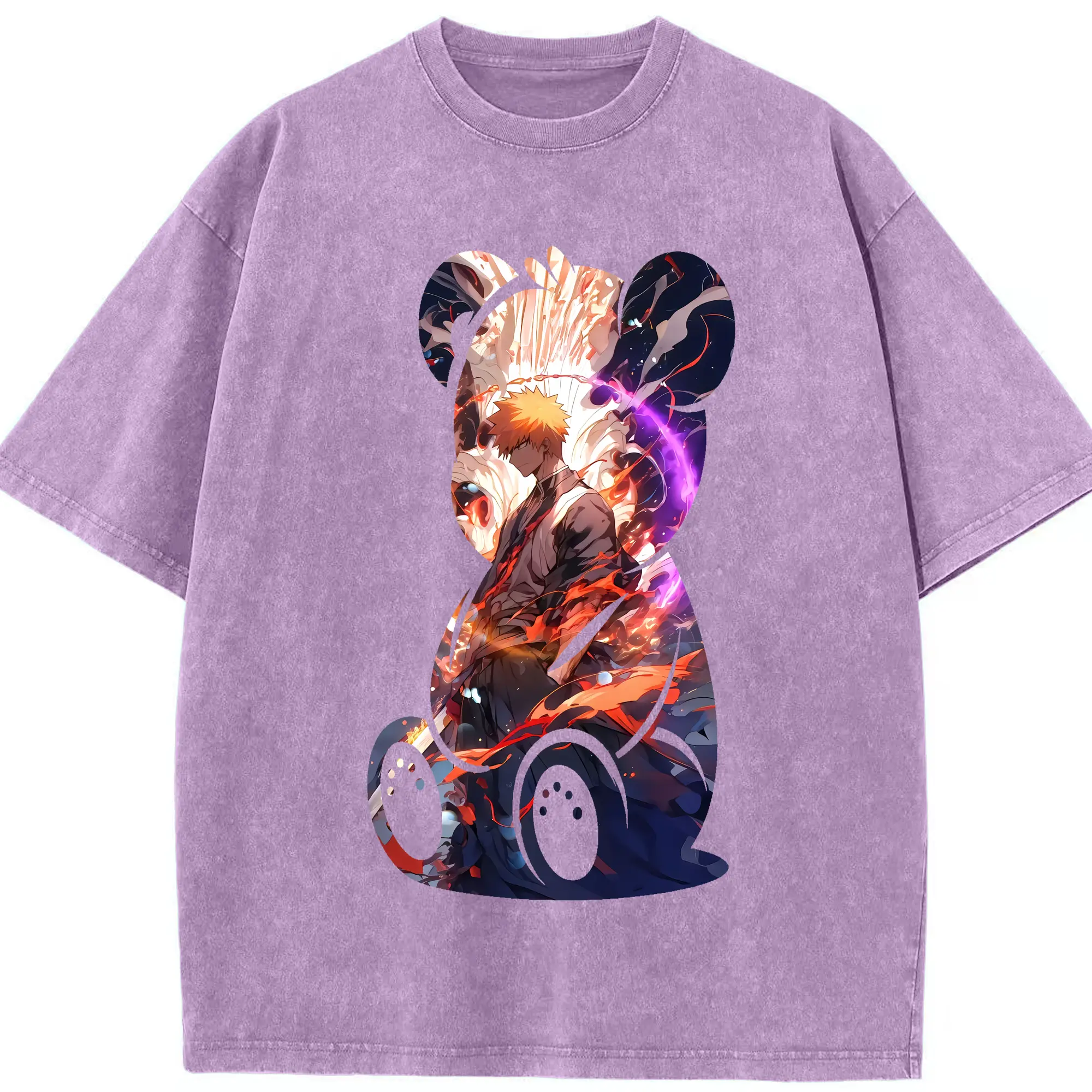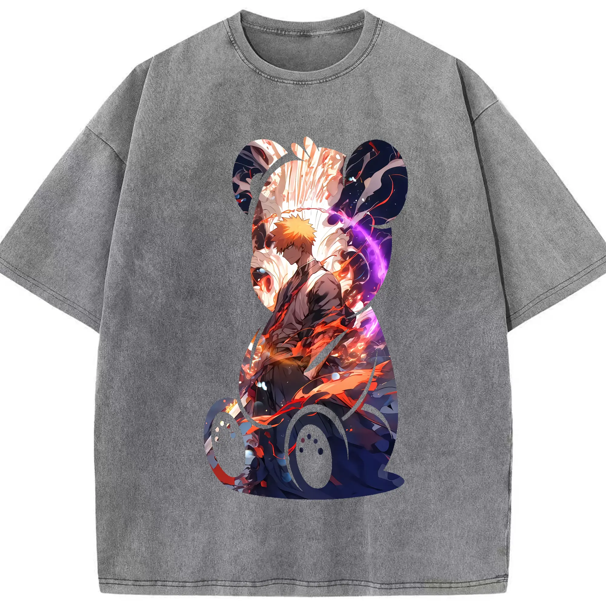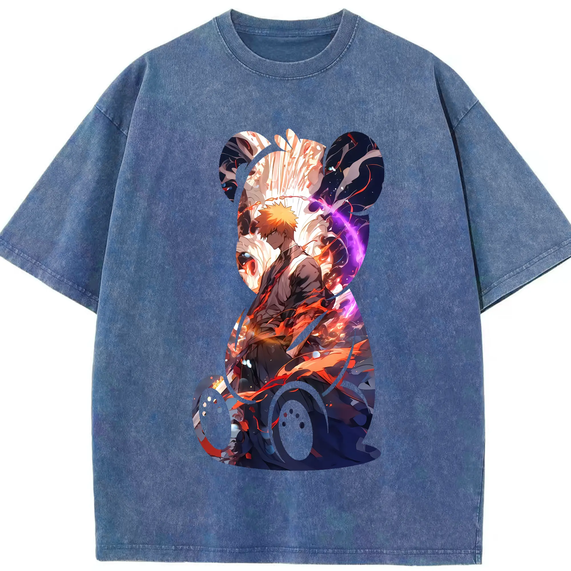 ブリーチ グッズ 黒崎 一護 - 綿100% ヴィンテージ風 半袖Tシャツ ・ 背面プリント ・ 柔らか肌触り ・ 通気性 快適 ・ スポーツ カジュアル 外出用