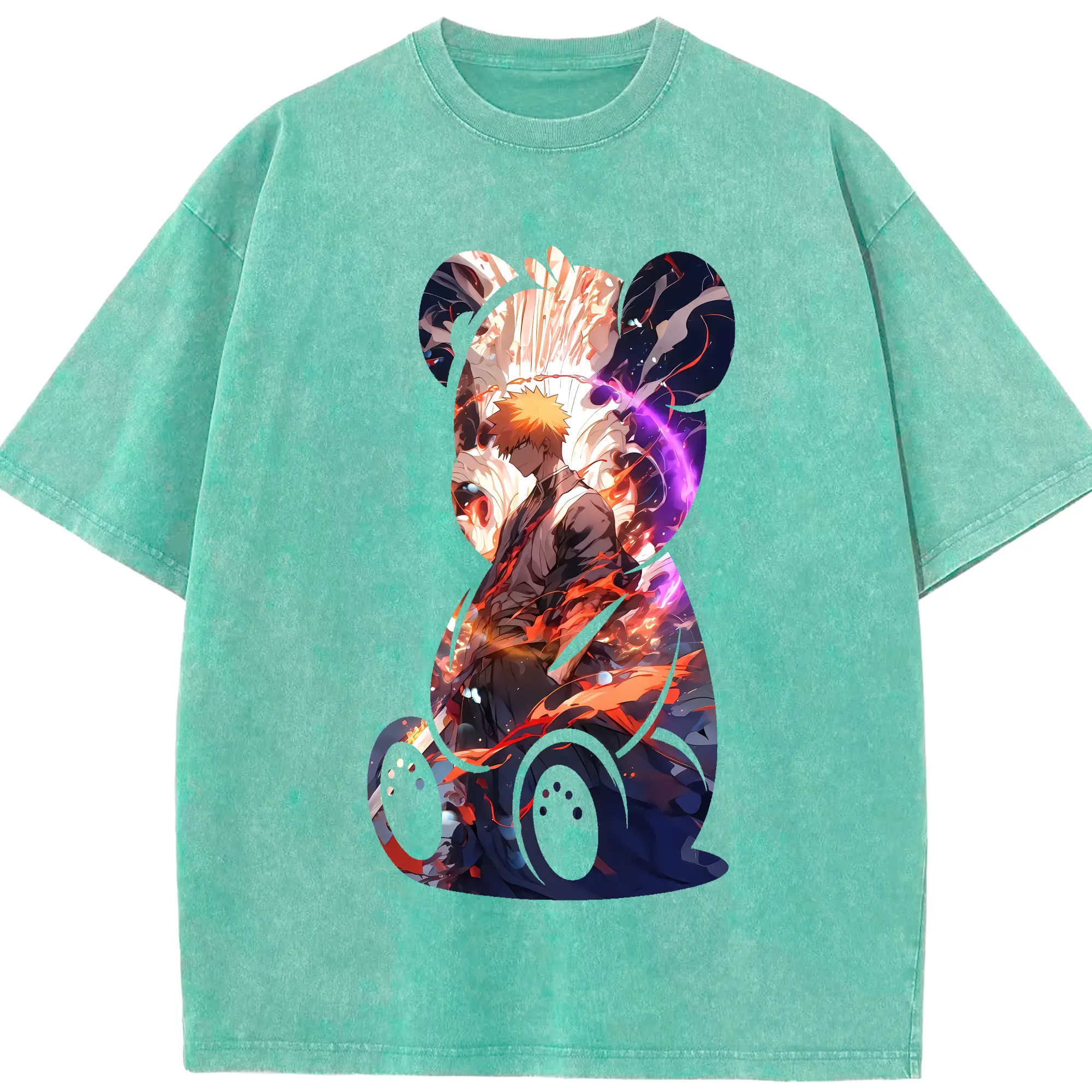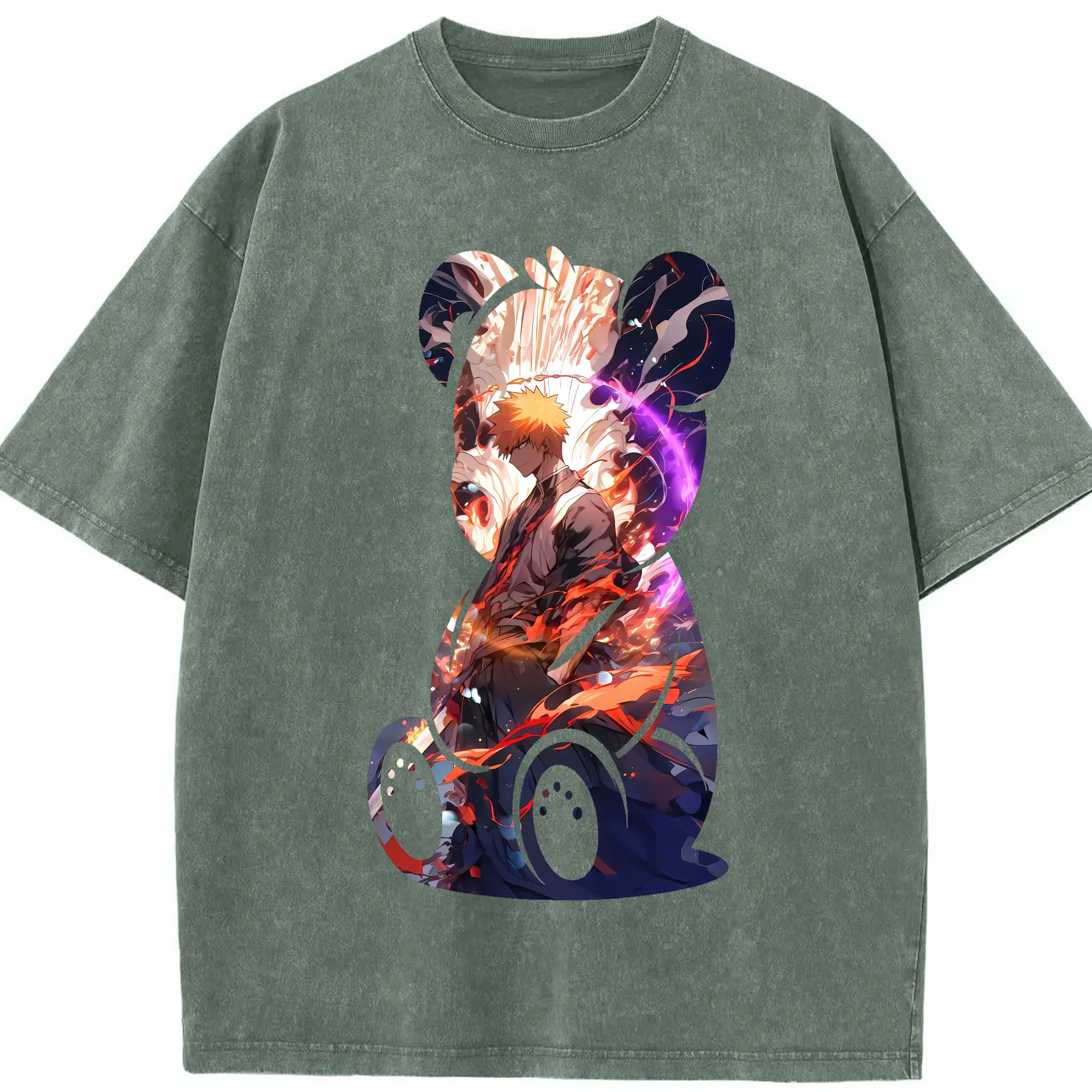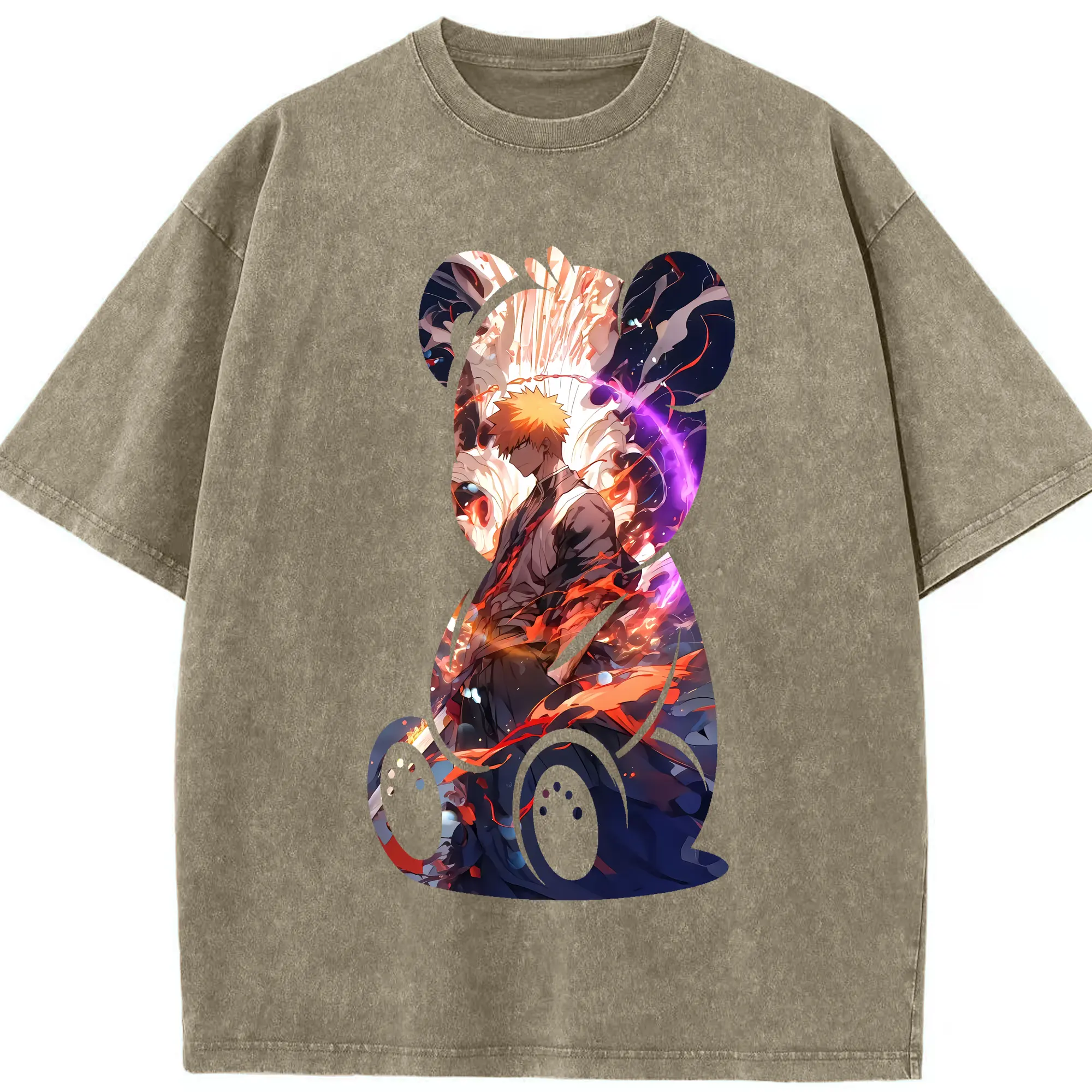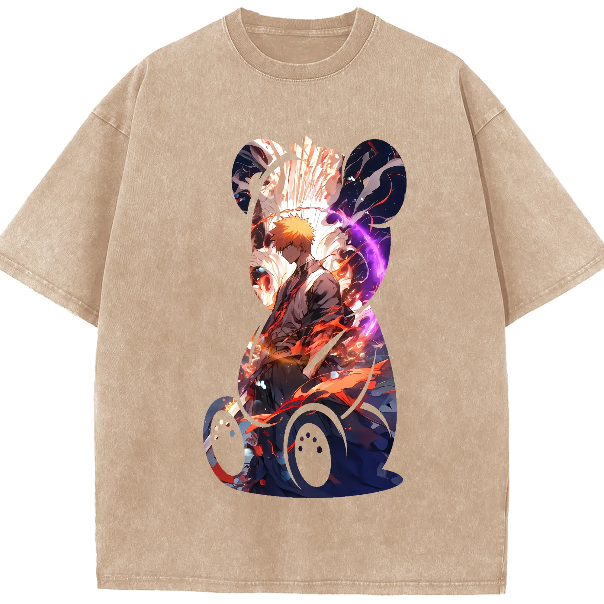 ブリーチ グッズ 黒崎 一護 - 綿100% ヴィンテージ風 半袖Tシャツ ・ 背面プリント ・ 柔らか肌触り ・ 通気性 快適 ・ スポーツ カジュアル 外出用