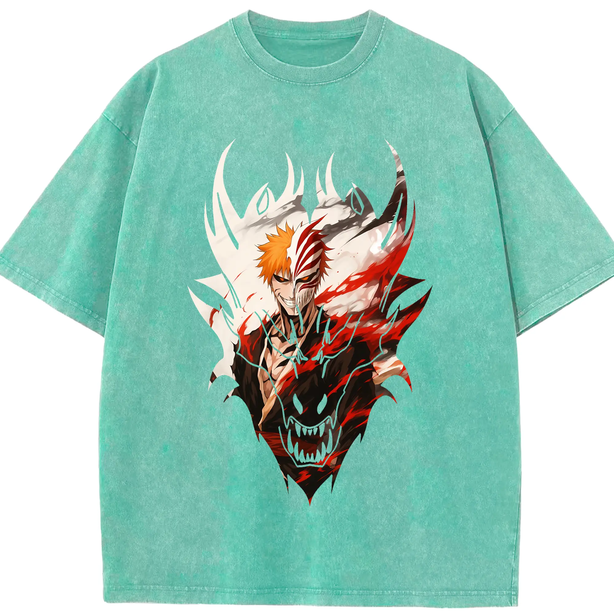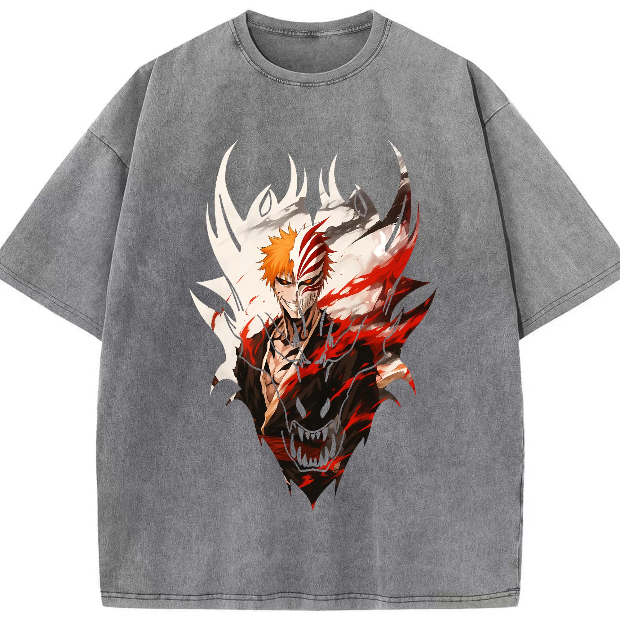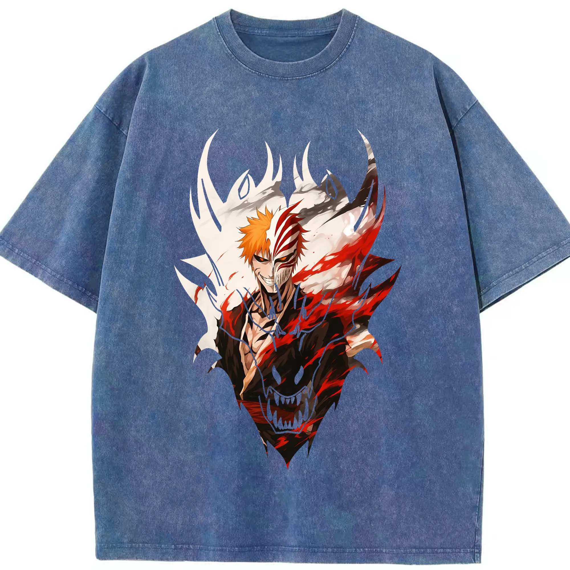 ブリーチ グッズ 黒崎 一護 - 綿100% ヴィンテージ風 半袖Tシャツ ・ 背面プリント ・ 柔らか肌触り ・ 通気性 快適 ・ スポーツ カジュアル 外出用