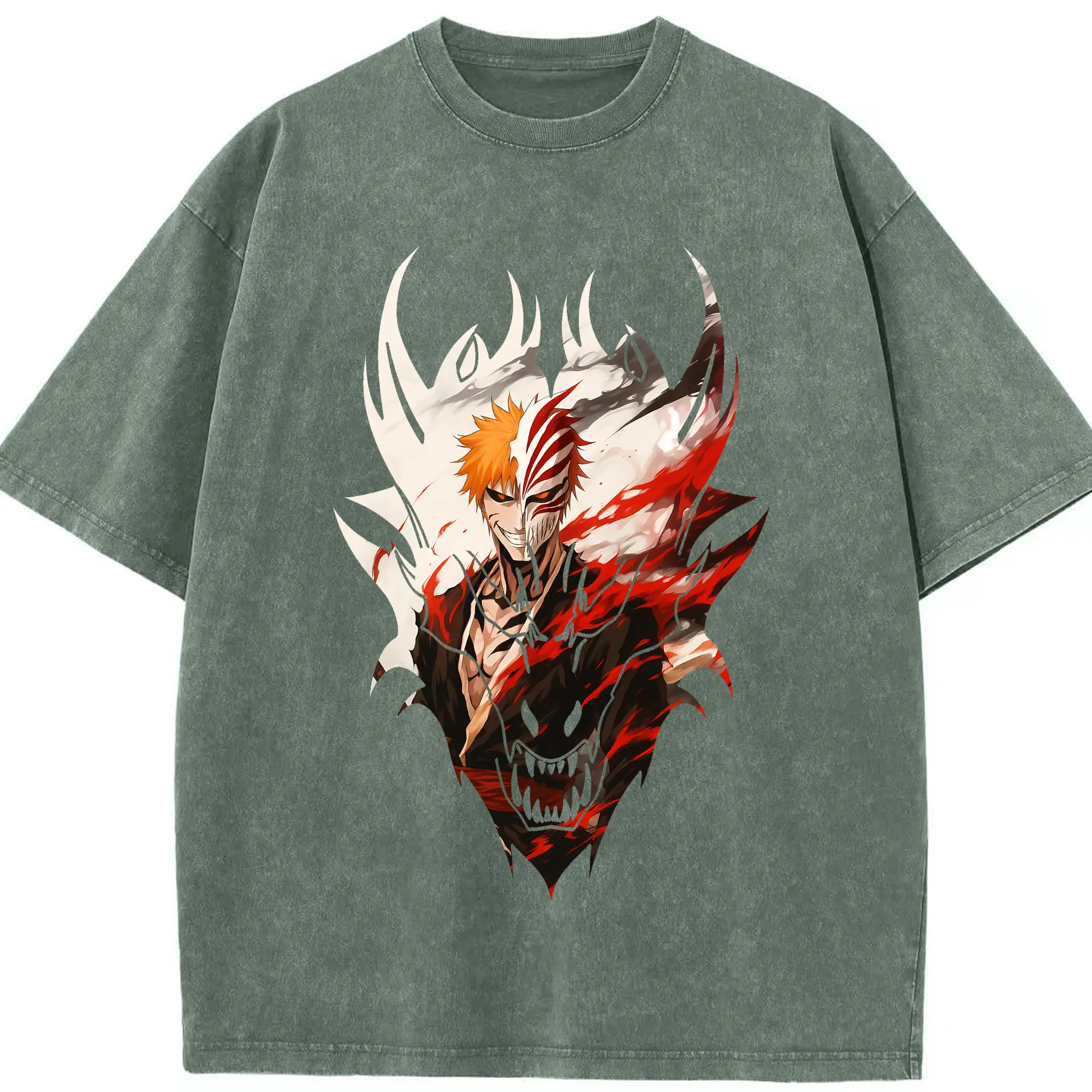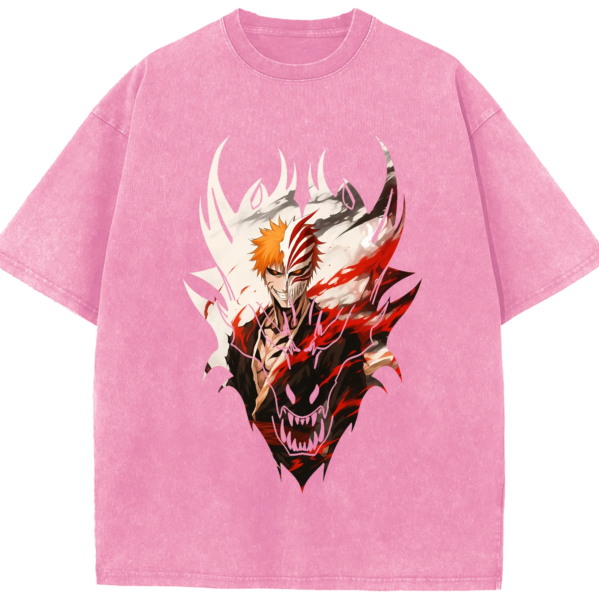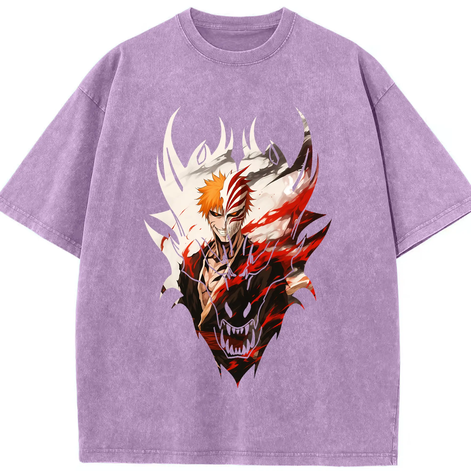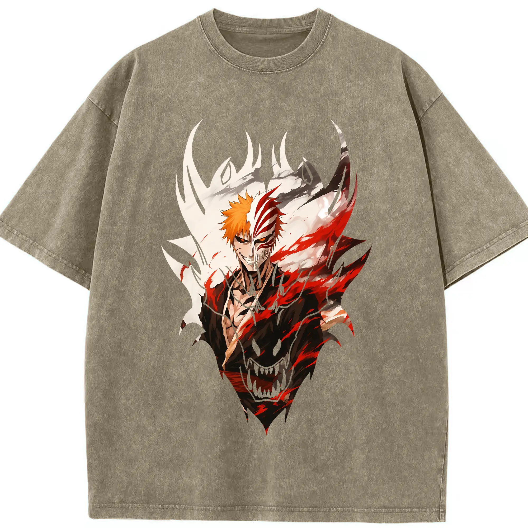 ブリーチ グッズ 黒崎 一護 - 綿100% ヴィンテージ風 半袖Tシャツ ・ 背面プリント ・ 柔らか肌触り ・ 通気性 快適 ・ スポーツ カジュアル 外出用