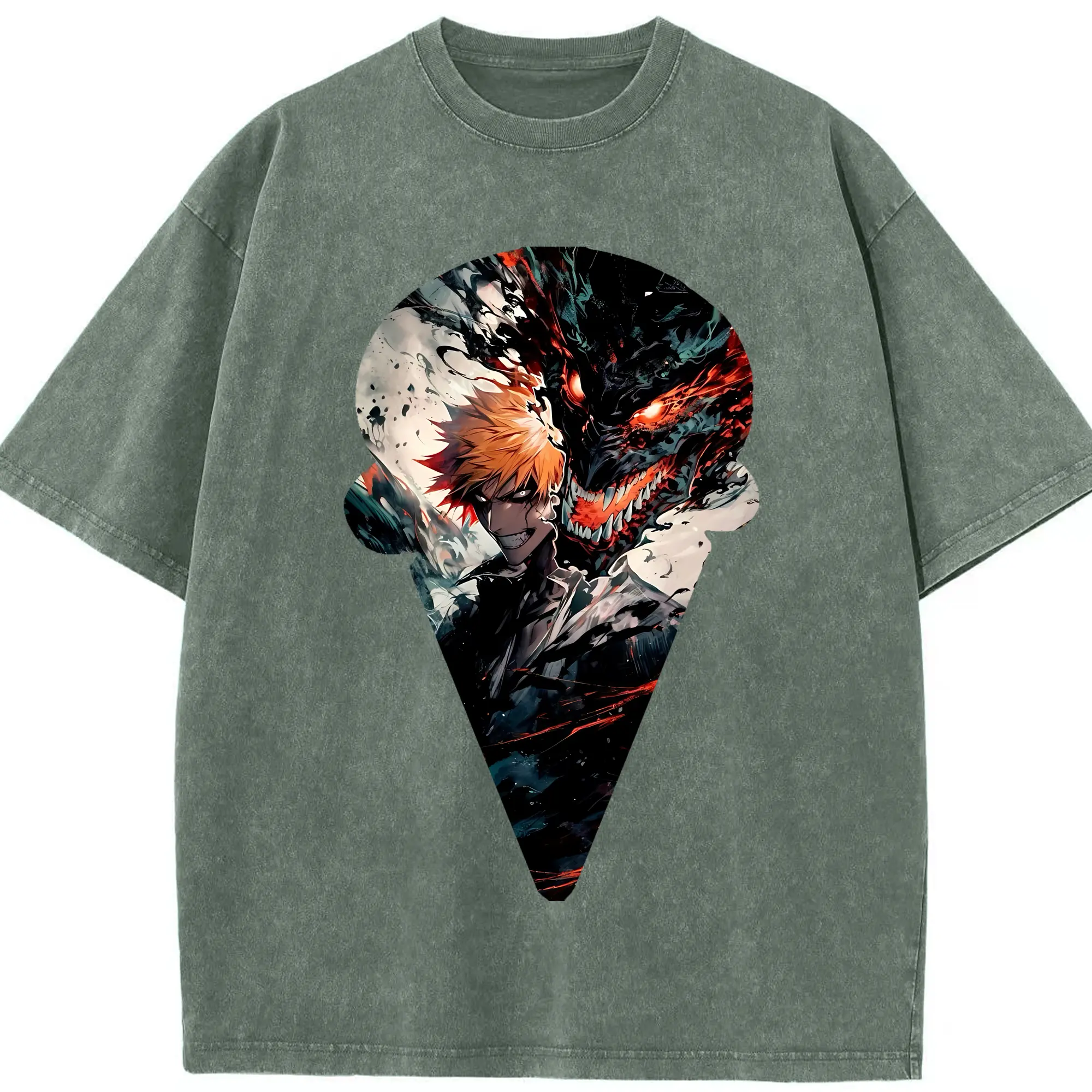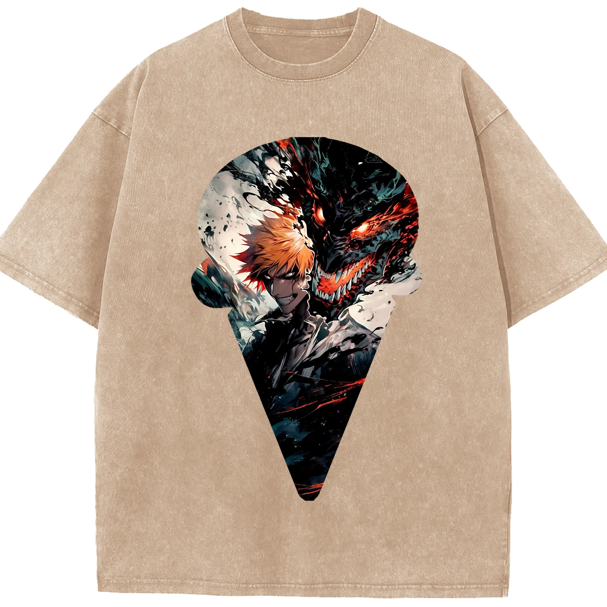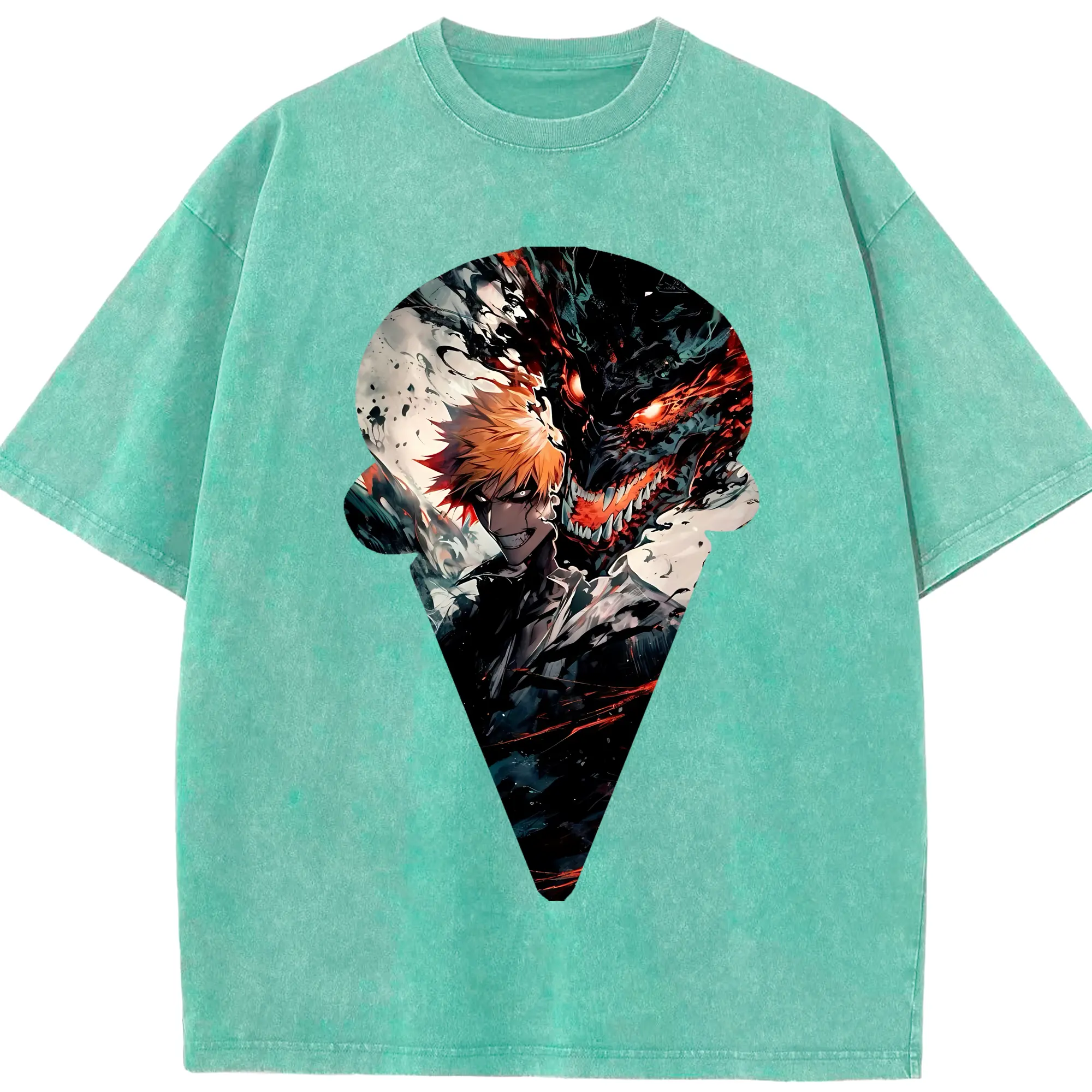 ブリーチ グッズ 黒崎 一護 - 綿100% ヴィンテージ風 半袖Tシャツ ・ 背面プリント ・ 柔らか肌触り ・ 通気性 快適 ・ スポーツ カジュアル 外出用