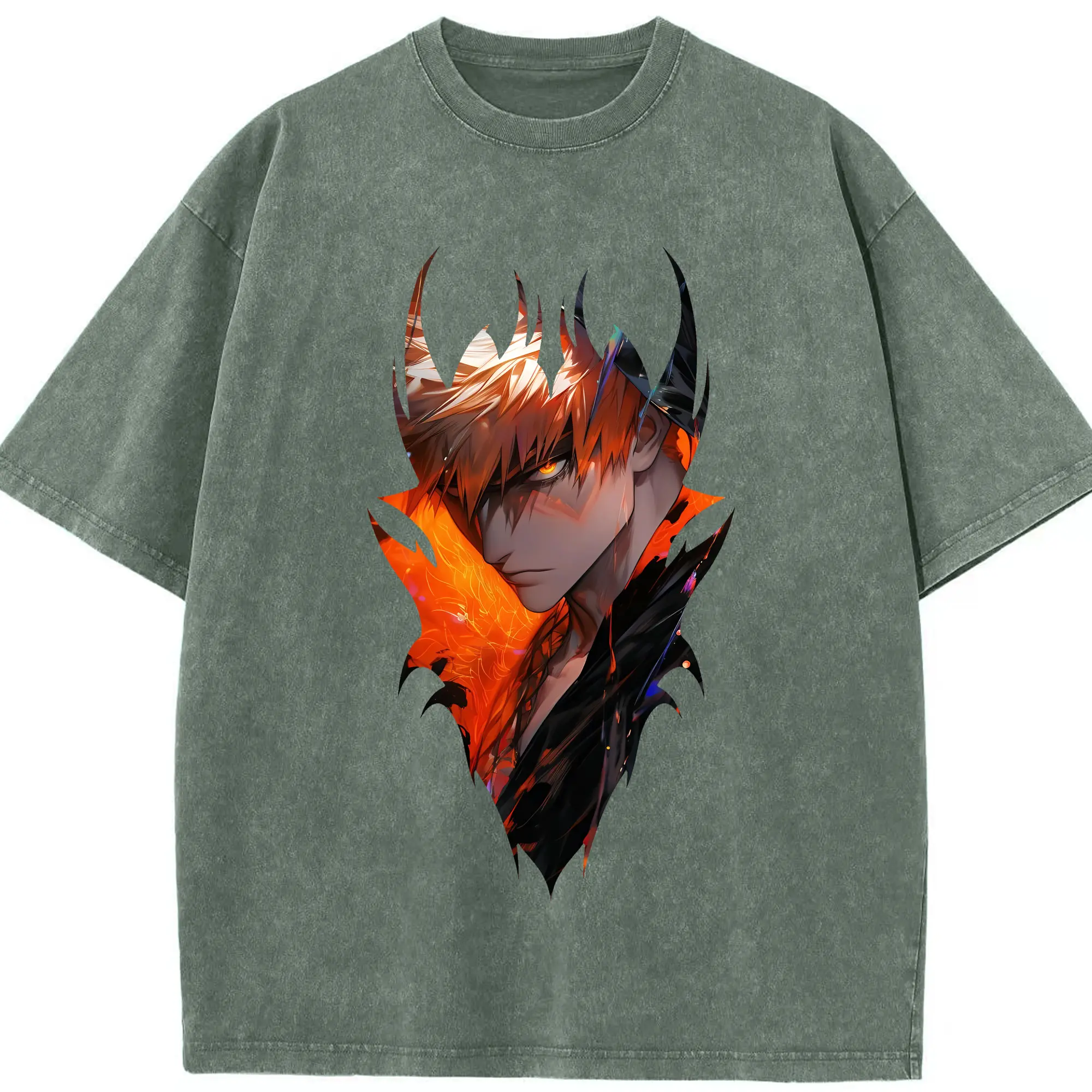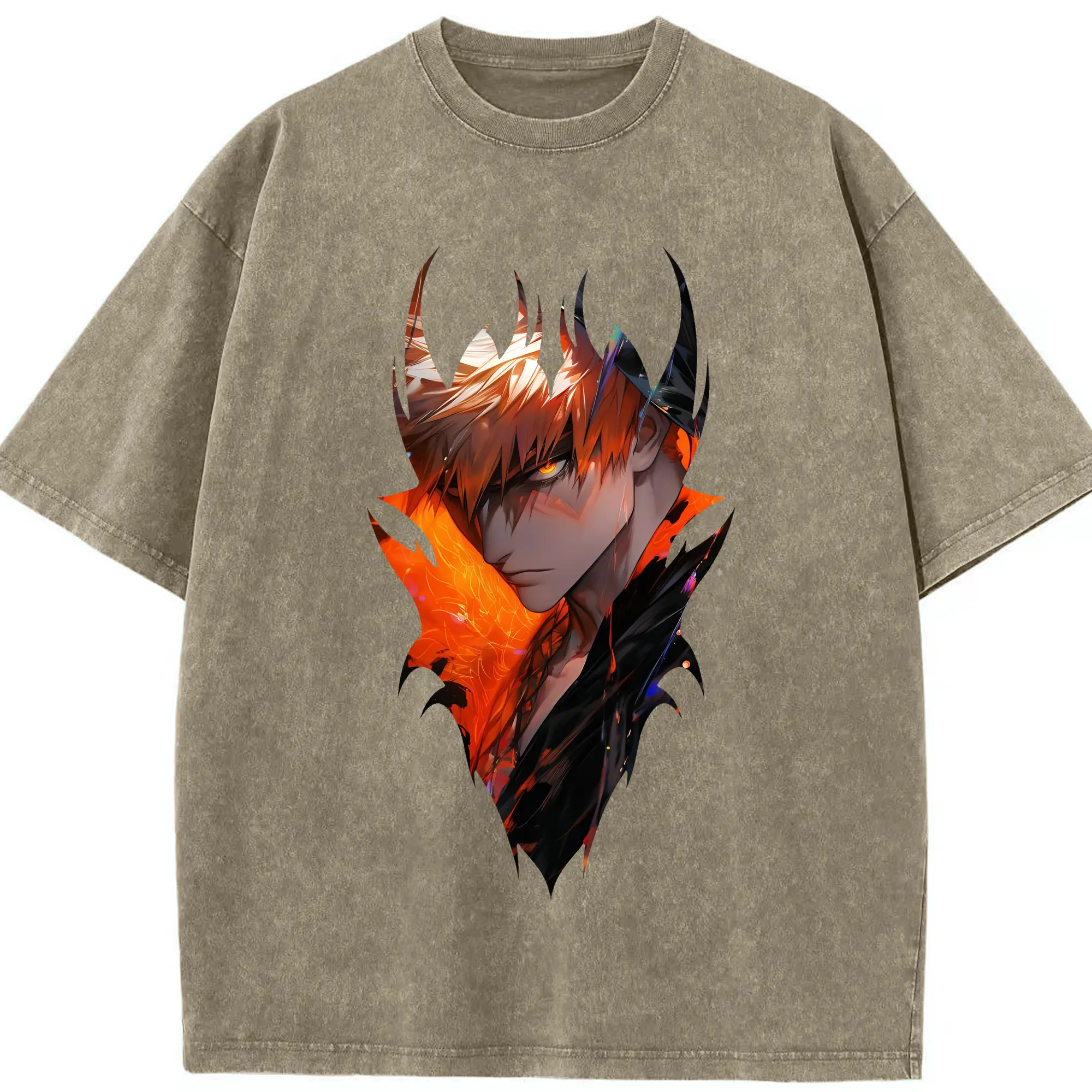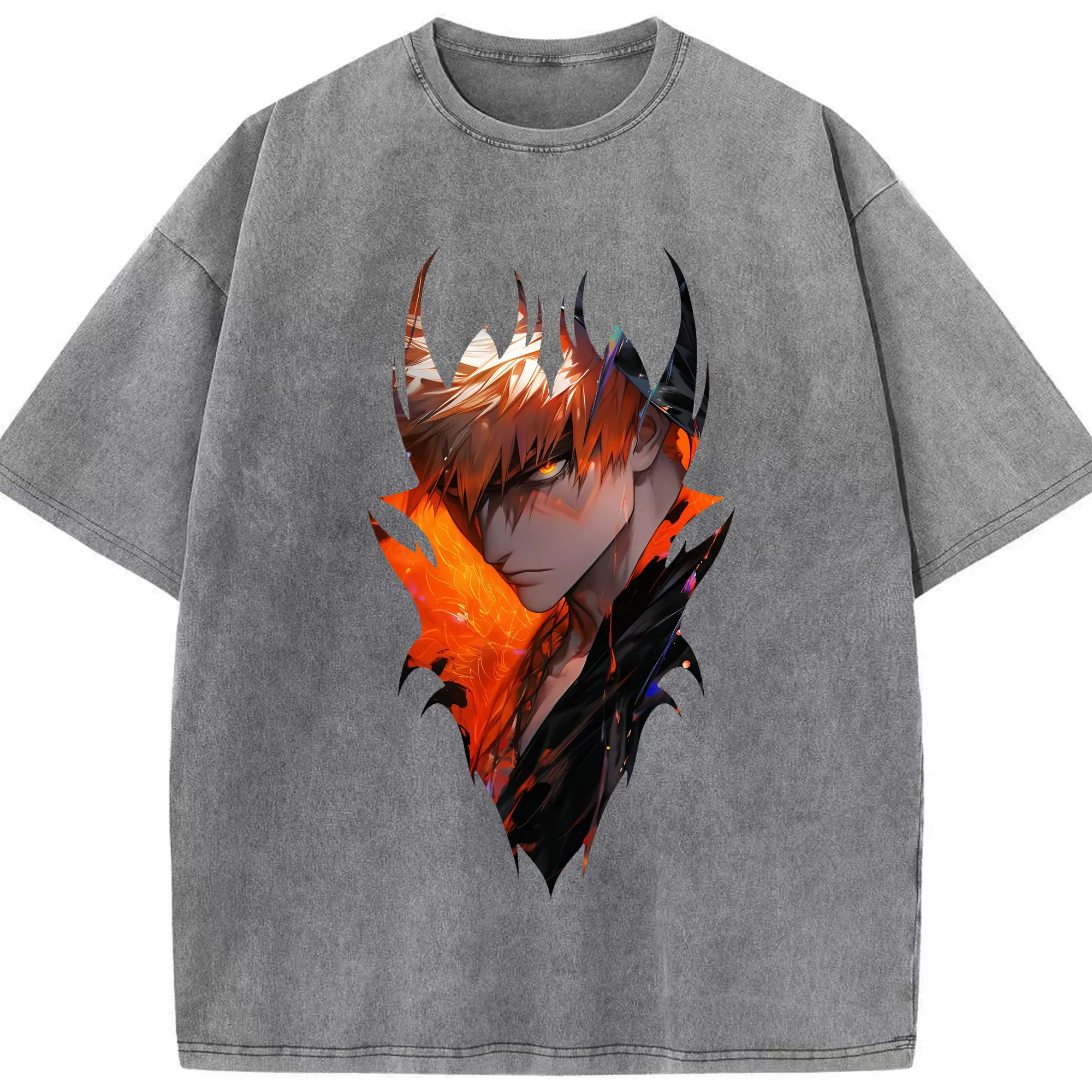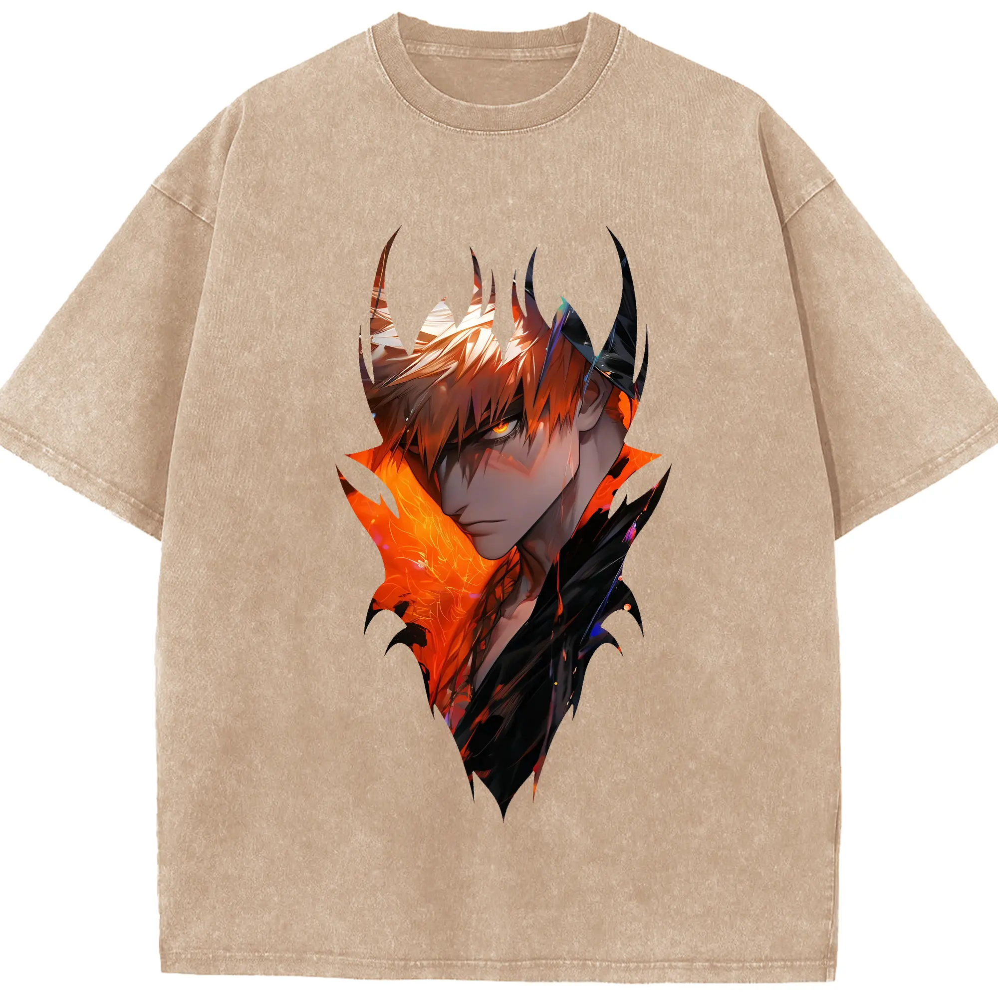 ブリーチ グッズ 黒崎 一護 - 綿100% ヴィンテージ風 半袖Tシャツ ・ 背面プリント ・ 柔らか肌触り ・ 通気性 快適 ・ スポーツ カジュアル 外出用