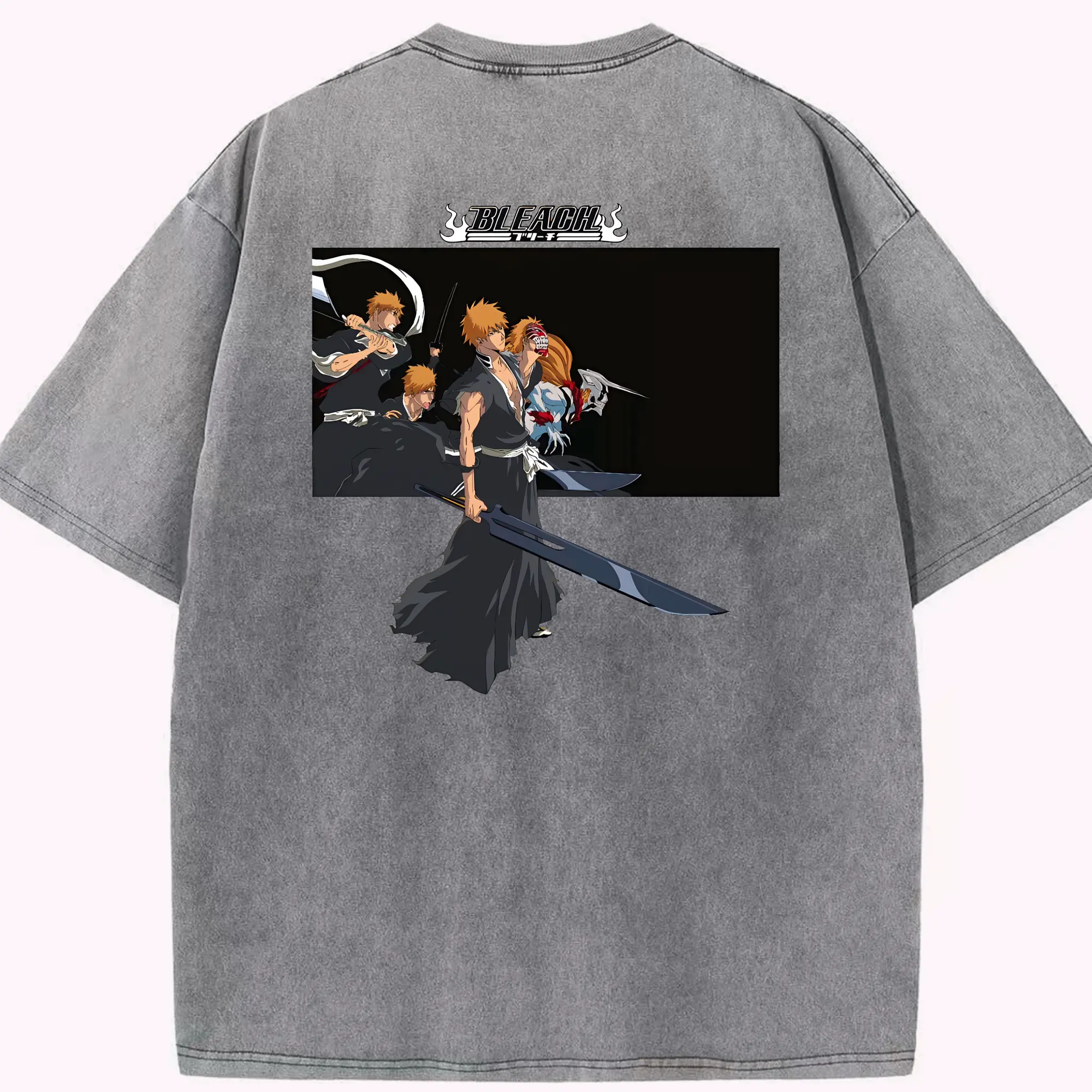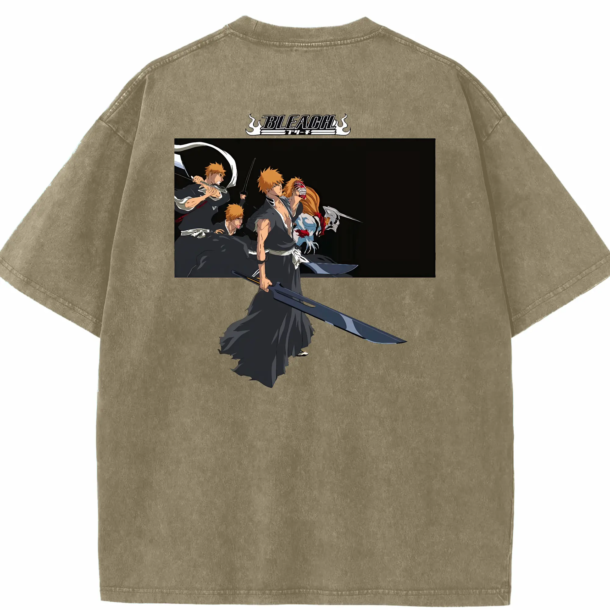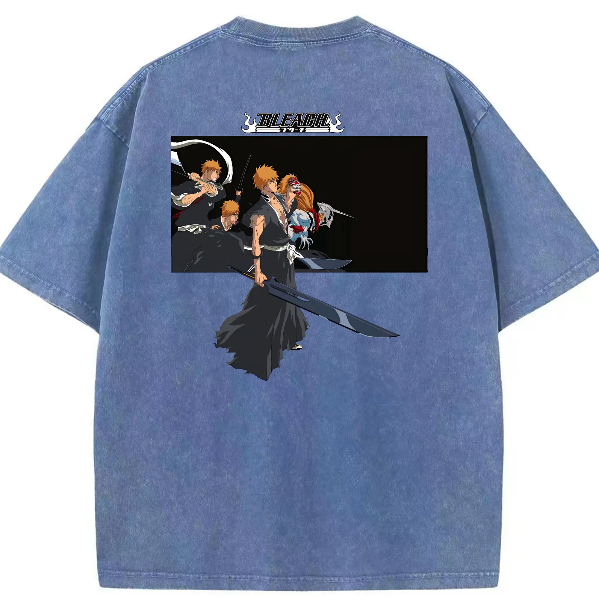 ブリーチ グッズ 黒崎 一護 - 綿100% ヴィンテージ風 半袖Tシャツ ・ フロントプリント ・ 柔らか肌触り ・ 通気性 快適 ・ スポーツ カジュアル 外出用
