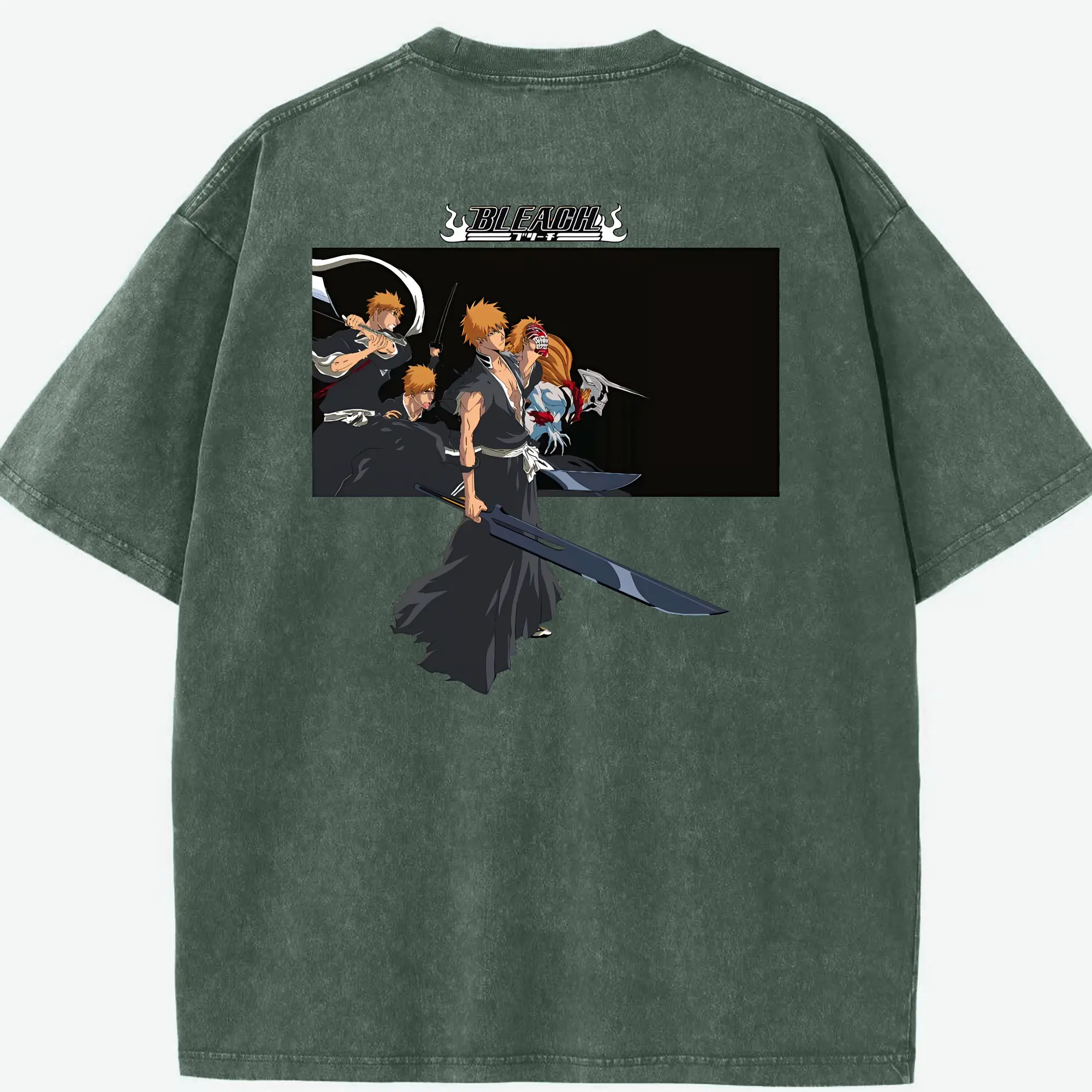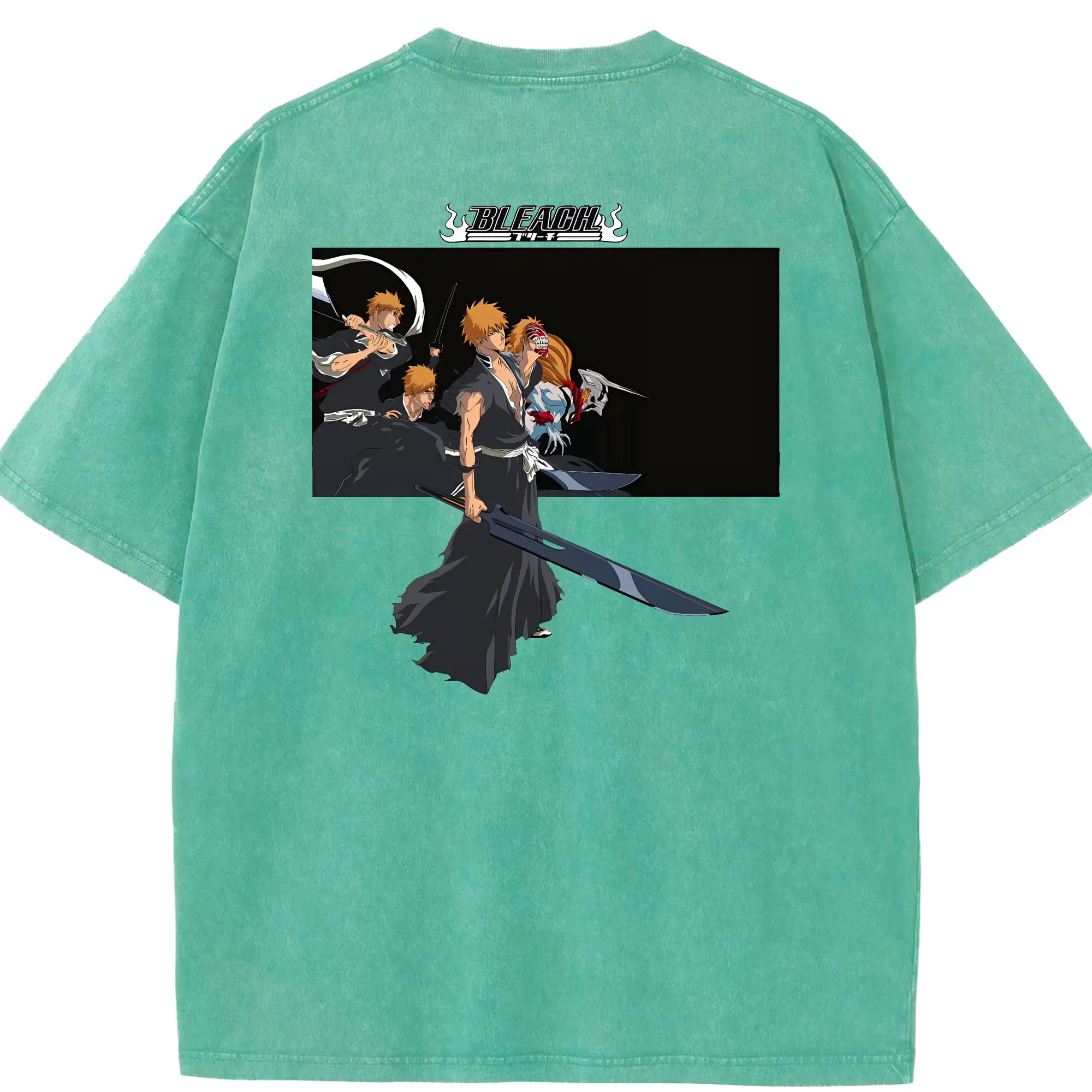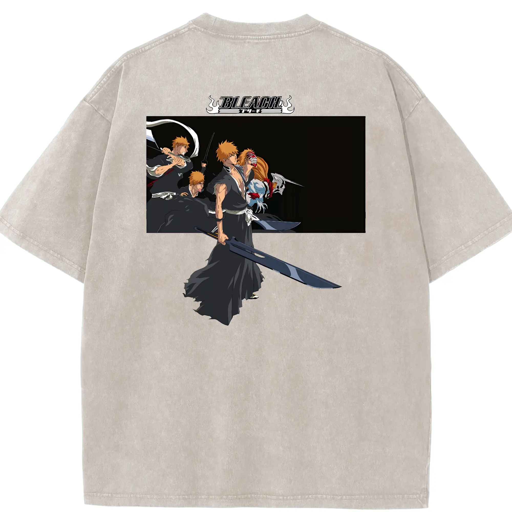 ブリーチ グッズ 黒崎 一護 - 綿100% ヴィンテージ風 半袖Tシャツ ・ フロントプリント ・ 柔らか肌触り ・ 通気性 快適 ・ スポーツ カジュアル 外出用