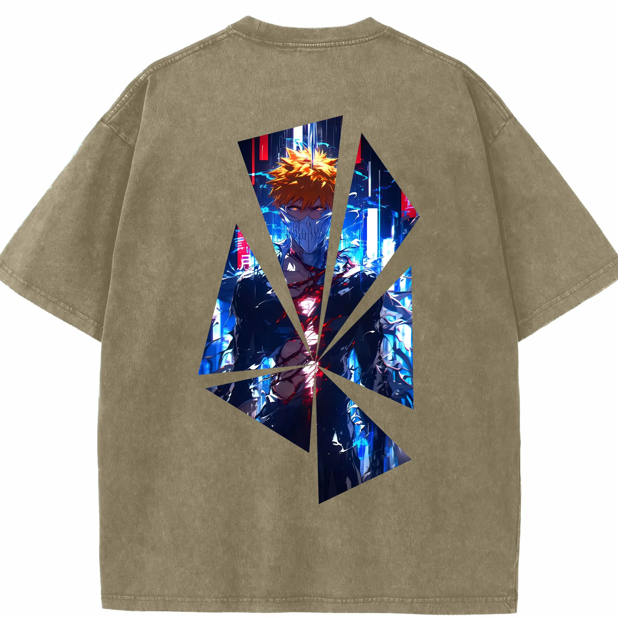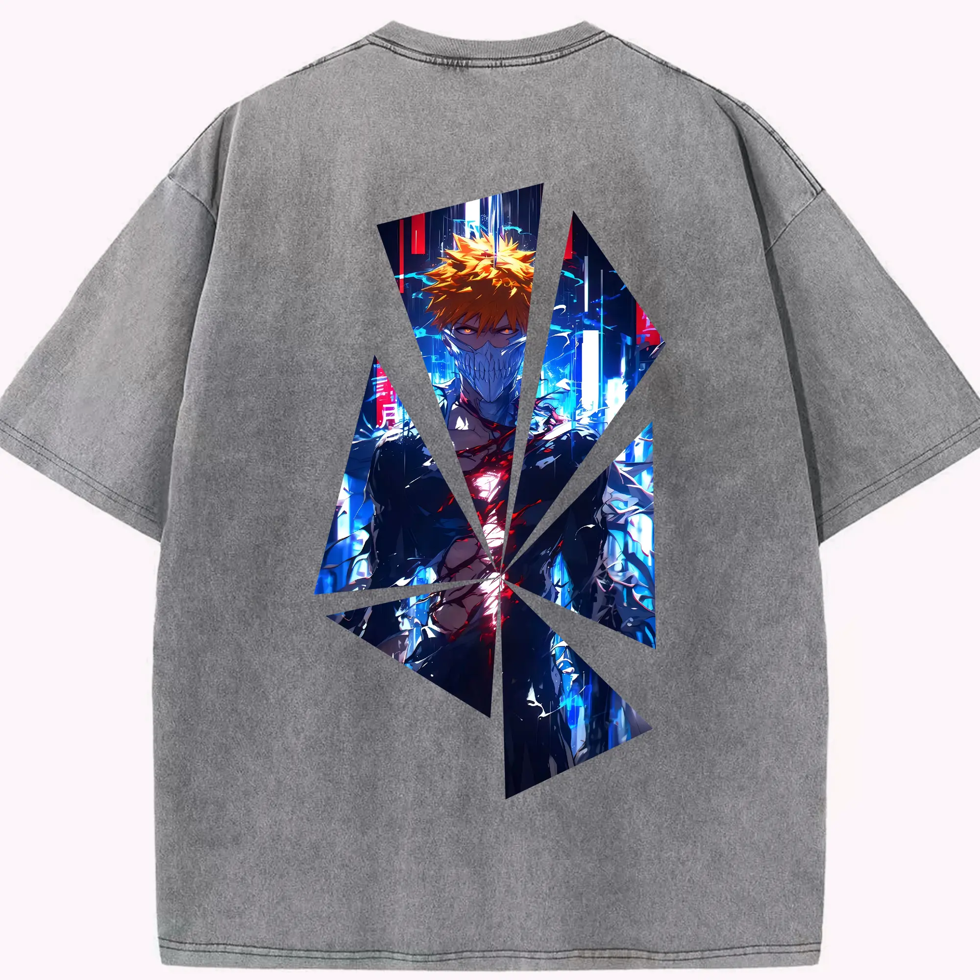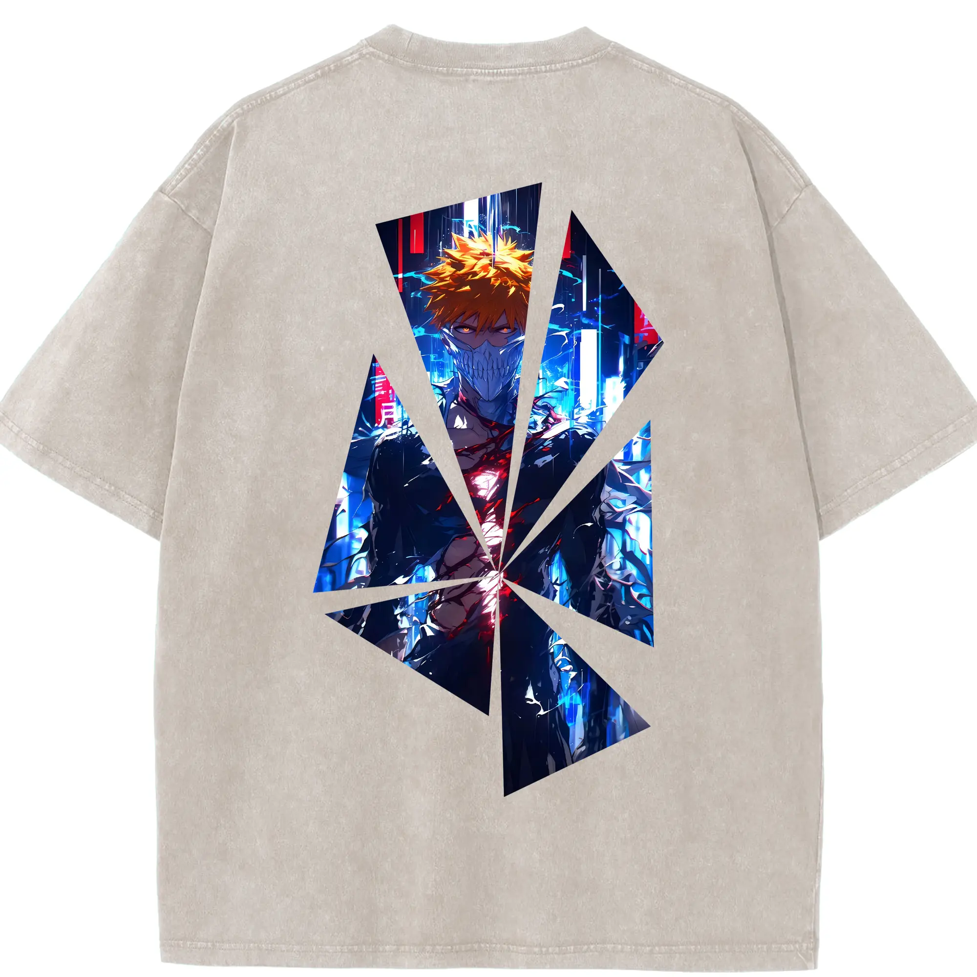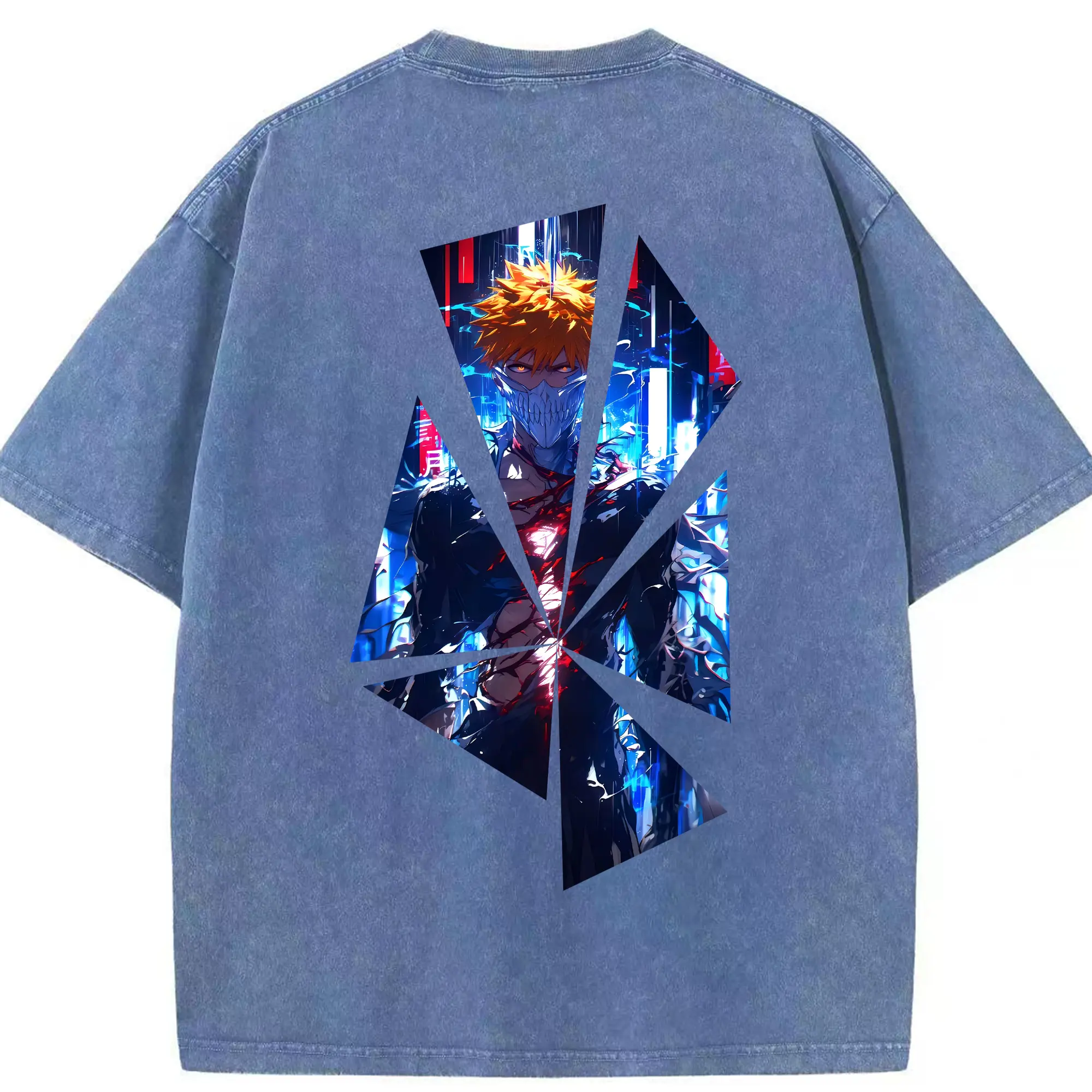 ブリーチ グッズ 黒崎 一護 - 綿100% ヴィンテージ風 半袖Tシャツ ・ フロントプリント ・ 柔らか肌触り ・ 通気性 快適 ・ スポーツ カジュアル 外出用