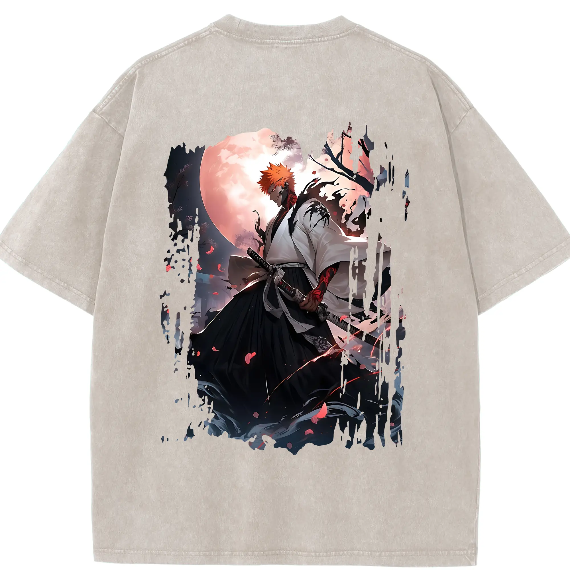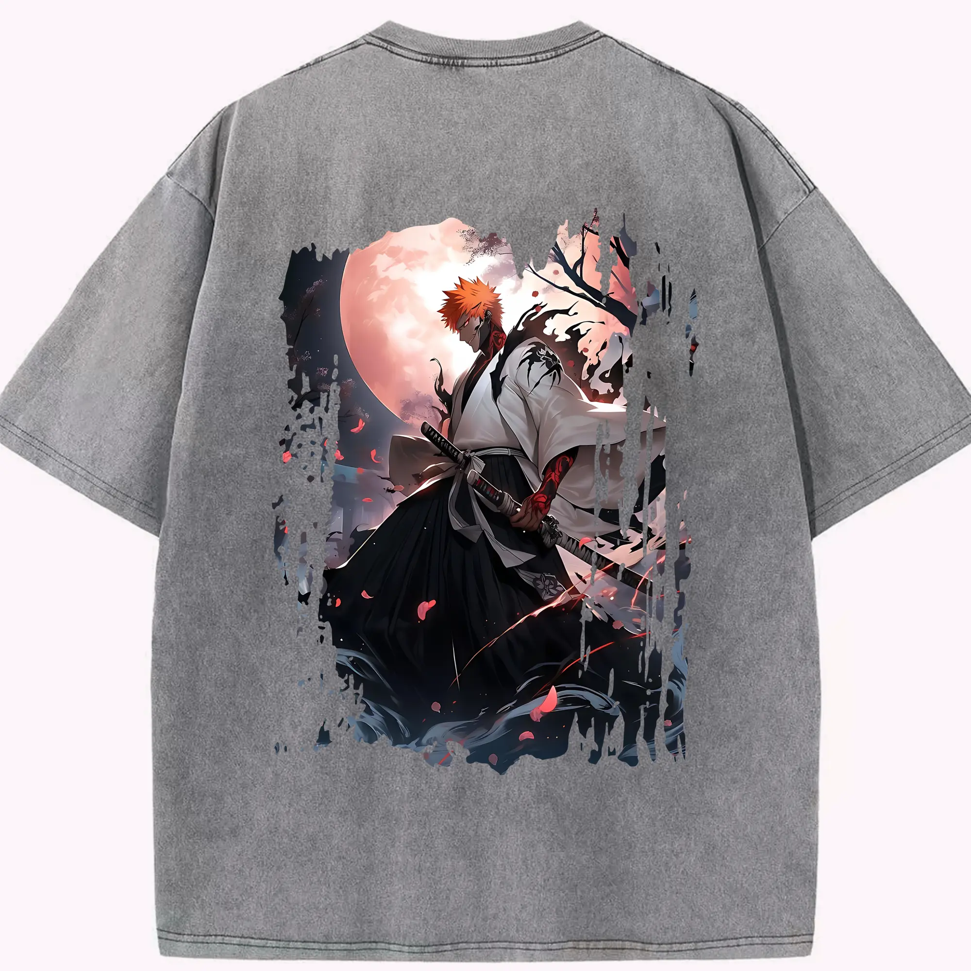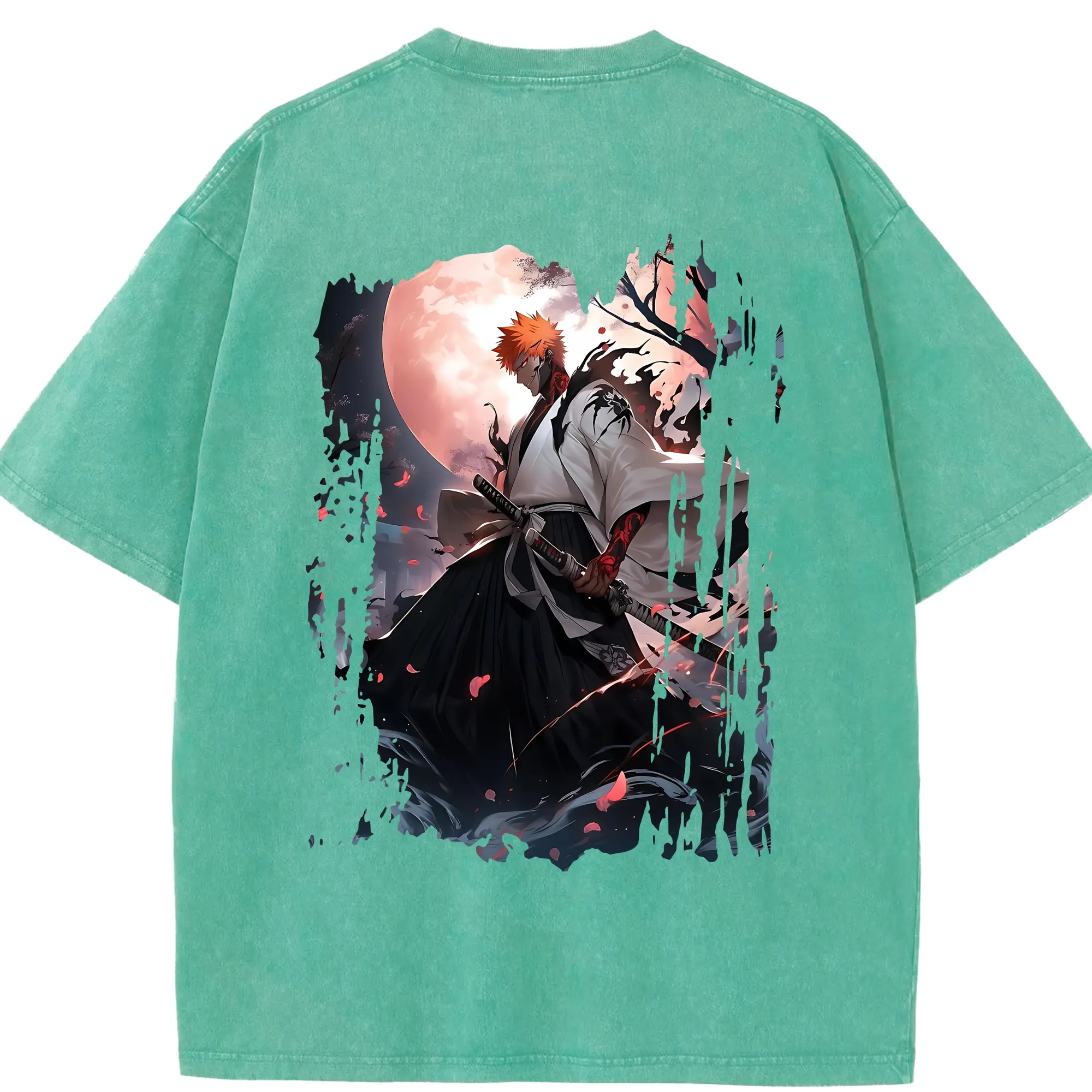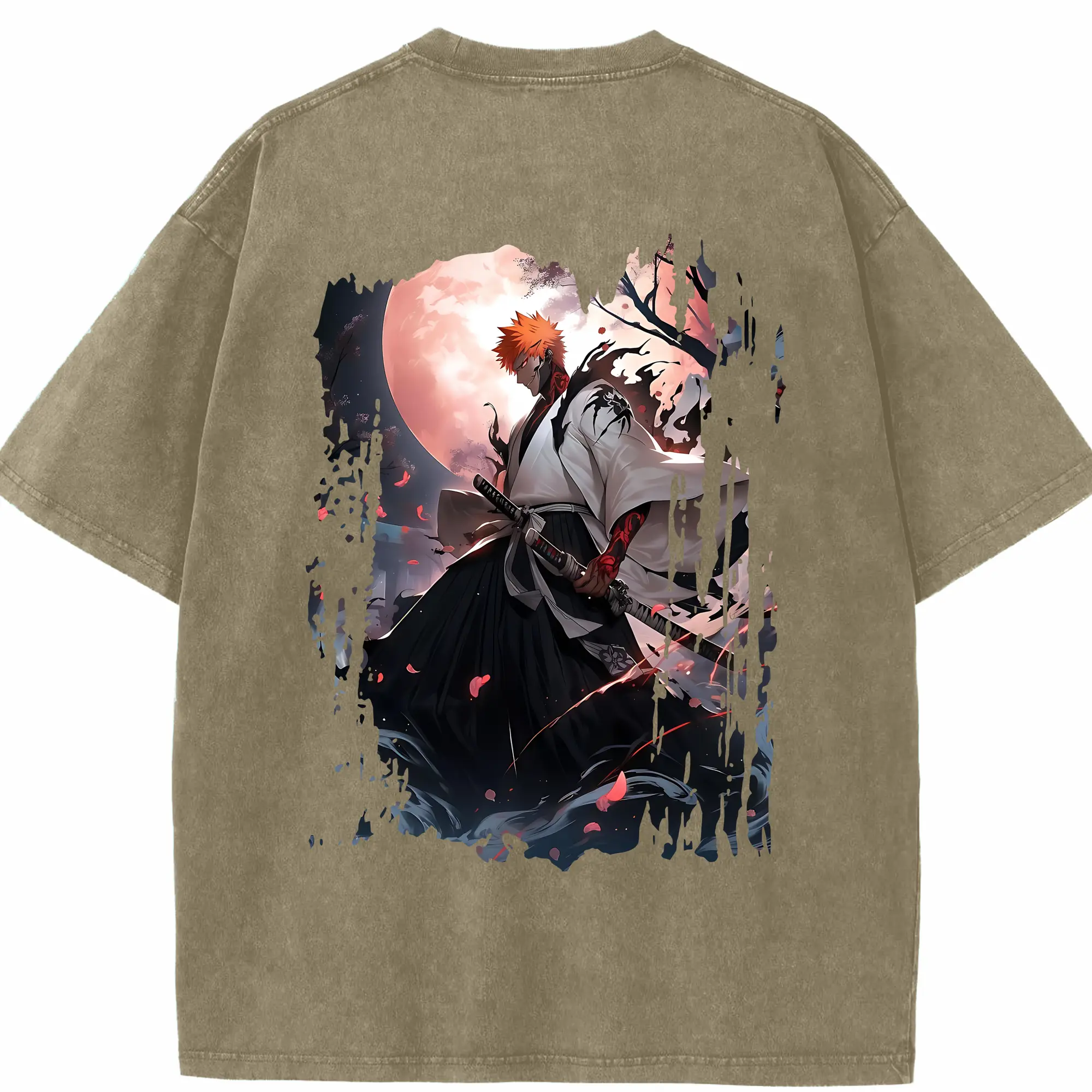 ブリーチ グッズ 黒崎 一護 - 綿100% ヴィンテージ風 半袖Tシャツ ・ フロントプリント ・ 柔らか肌触り ・ 通気性 快適 ・ スポーツ カジュアル 外出用