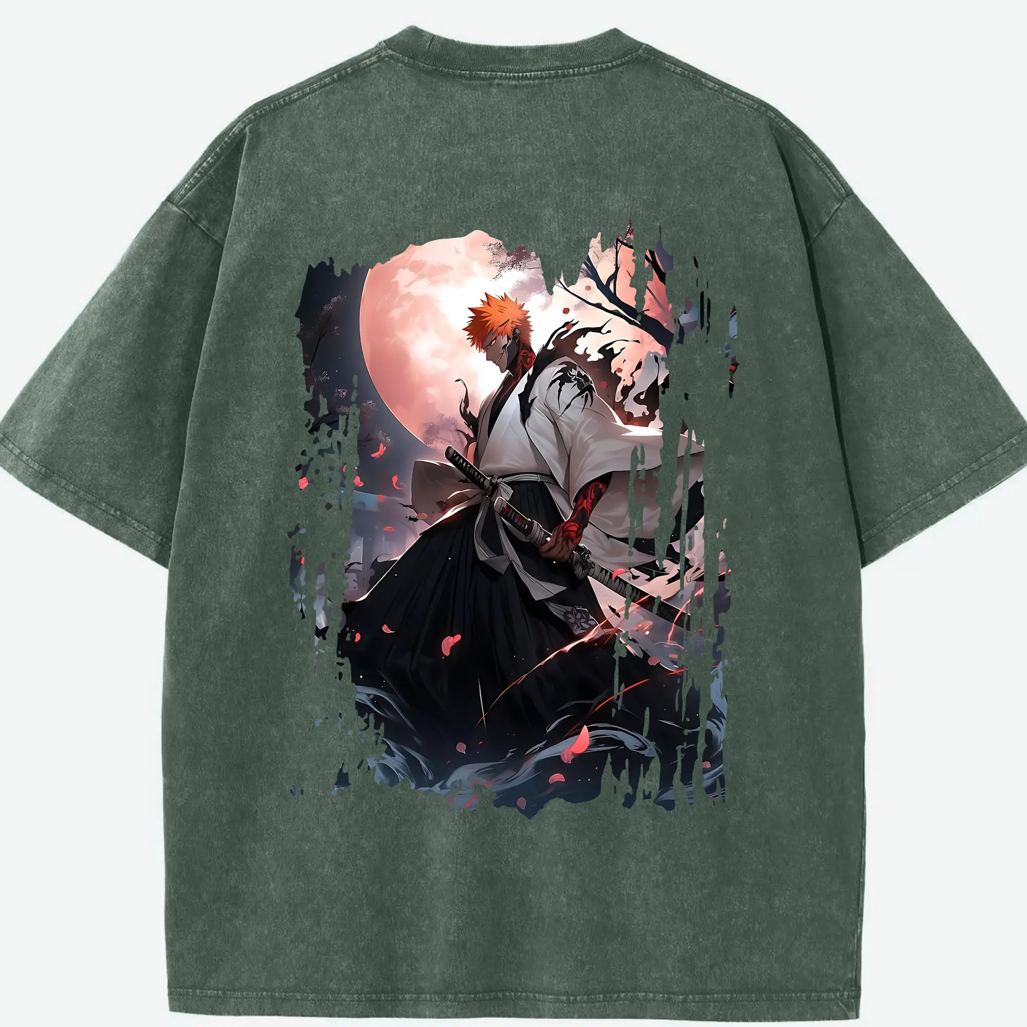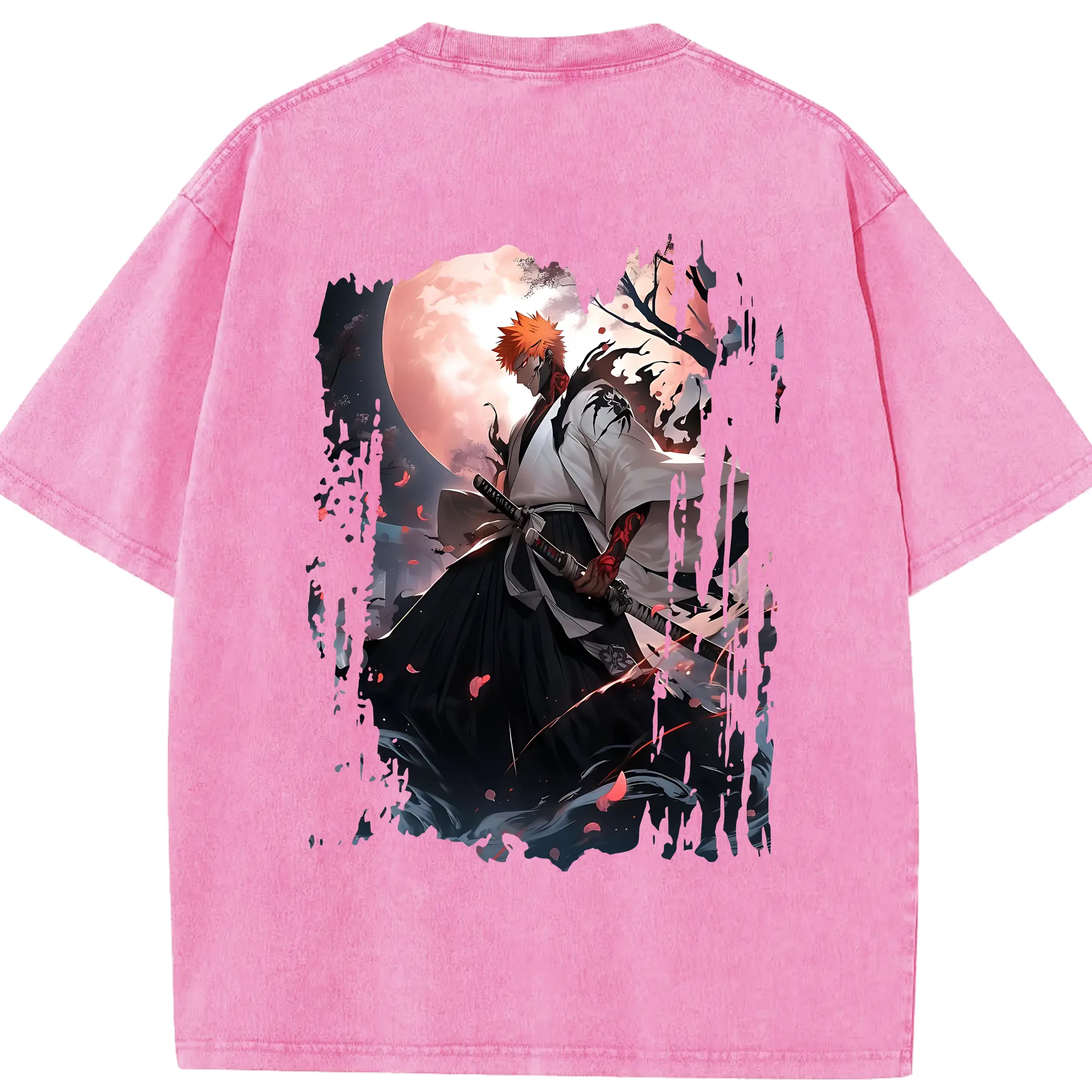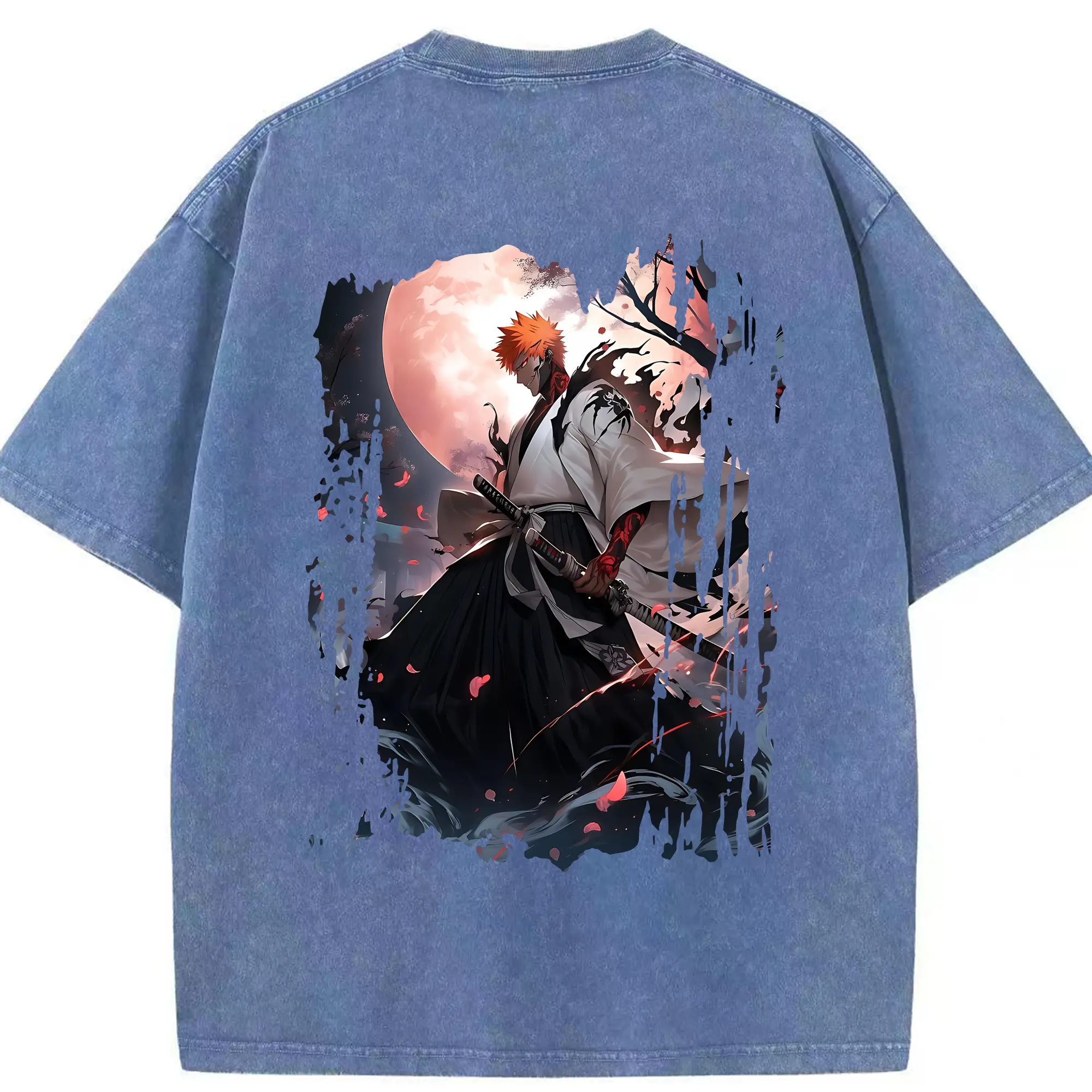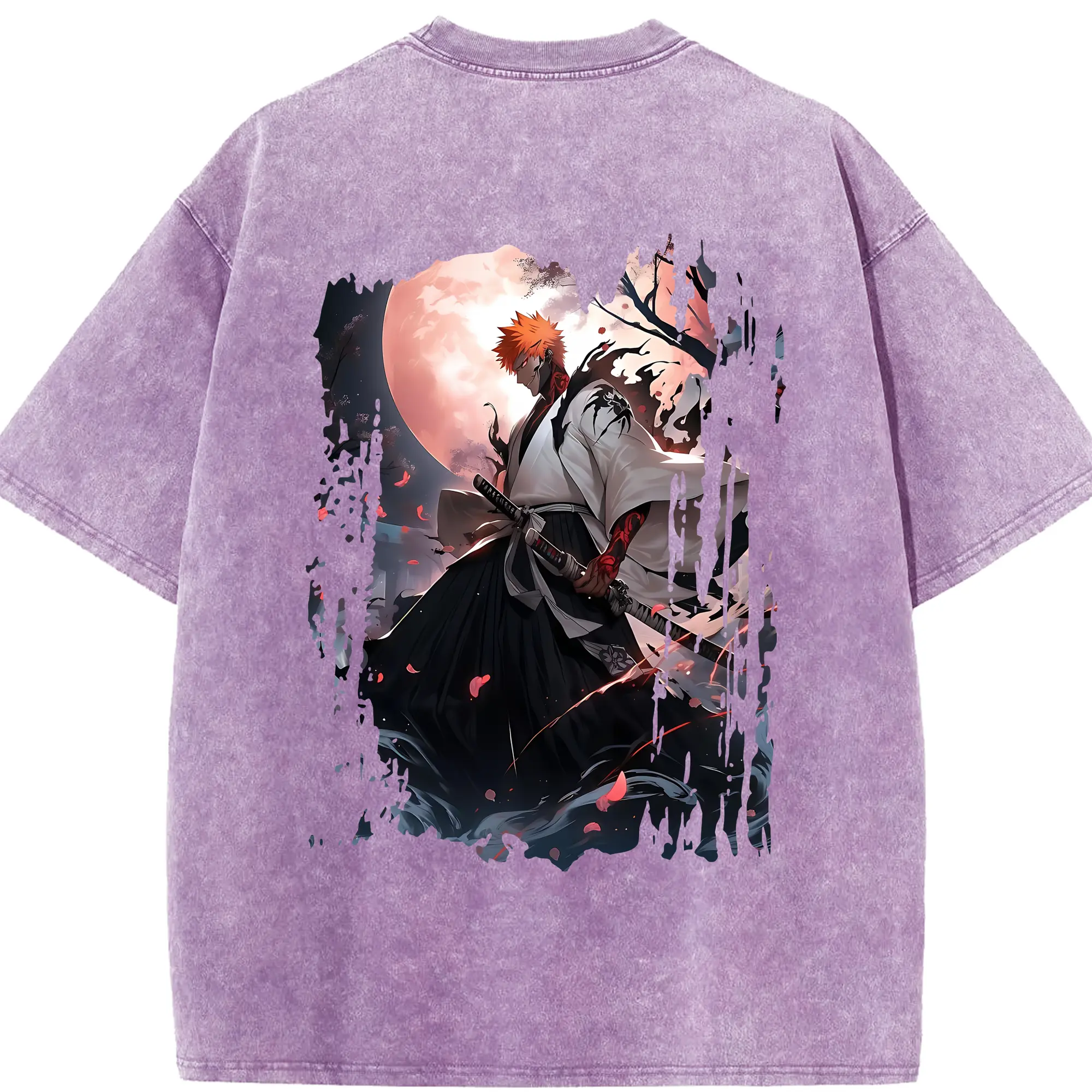 ブリーチ グッズ 黒崎 一護 - 綿100% ヴィンテージ風 半袖Tシャツ ・ フロントプリント ・ 柔らか肌触り ・ 通気性 快適 ・ スポーツ カジュアル 外出用