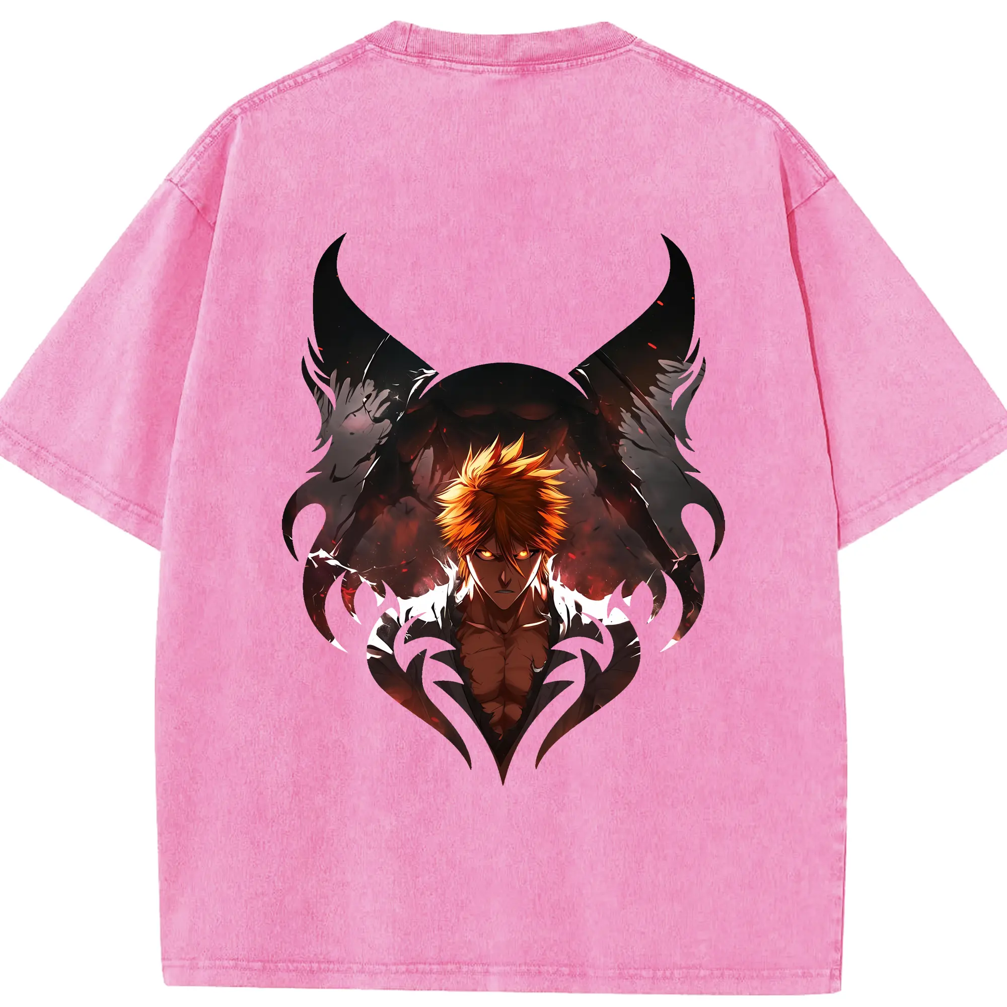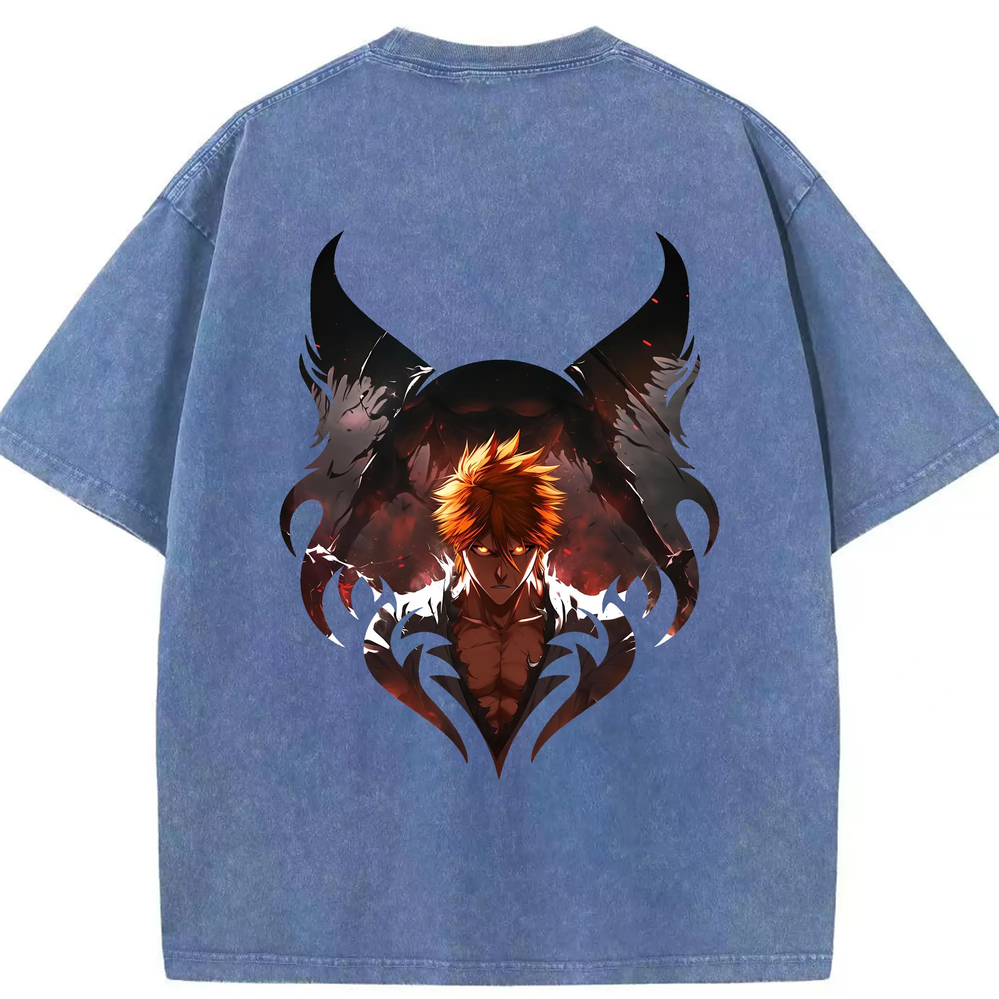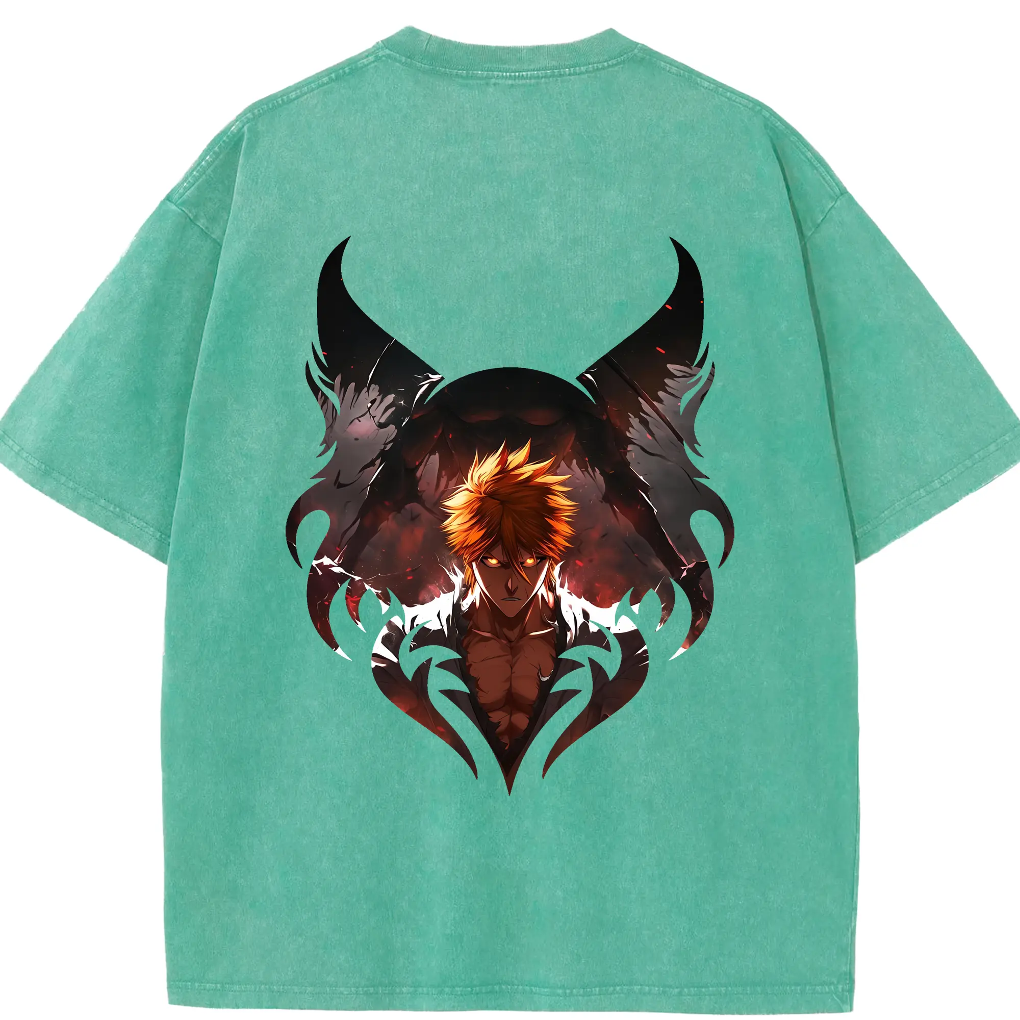 ブリーチ グッズ 黒崎 一護 - 綿100% ヴィンテージ風 半袖Tシャツ ・ フロントプリント ・ 柔らか肌触り ・ 通気性 快適 ・ スポーツ カジュアル 外出用