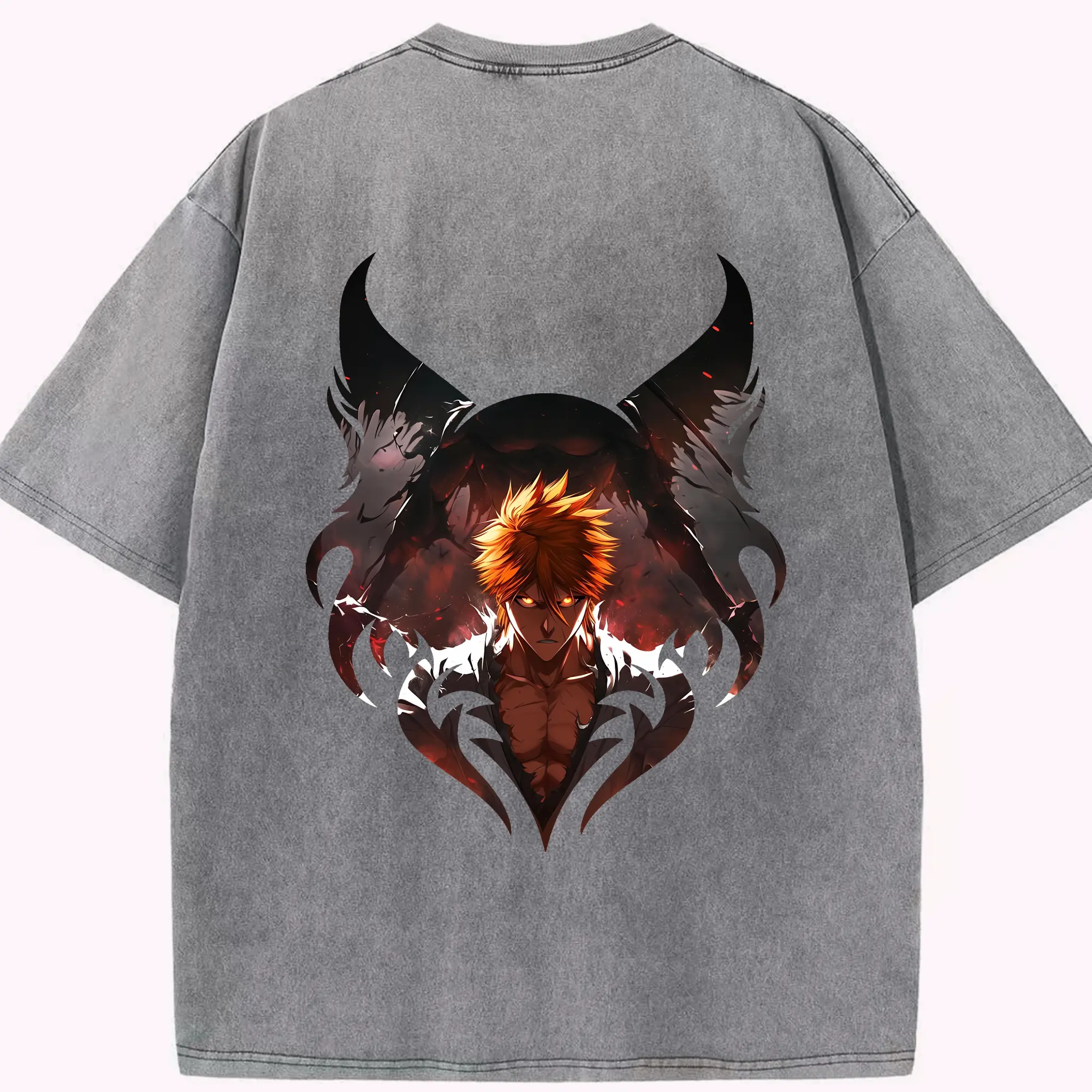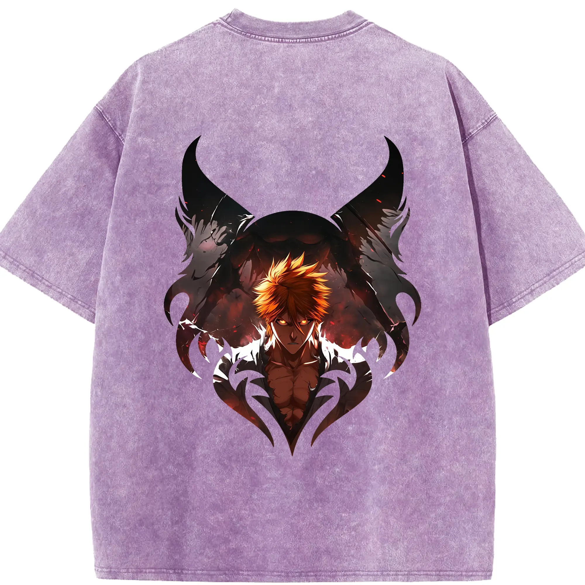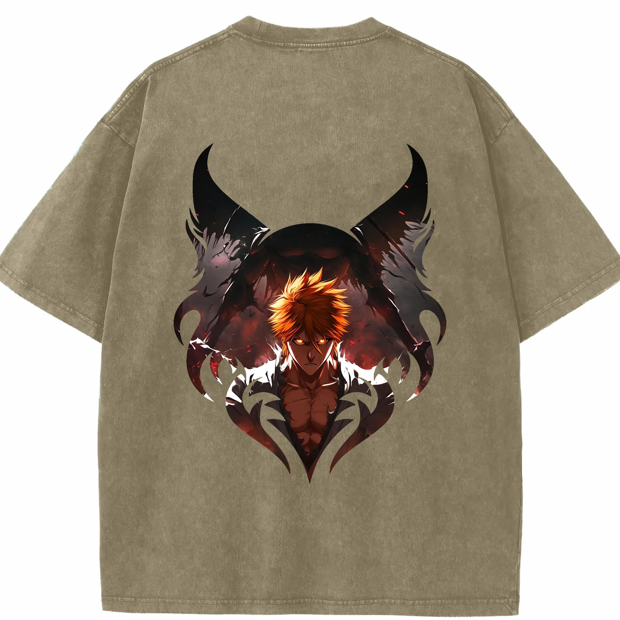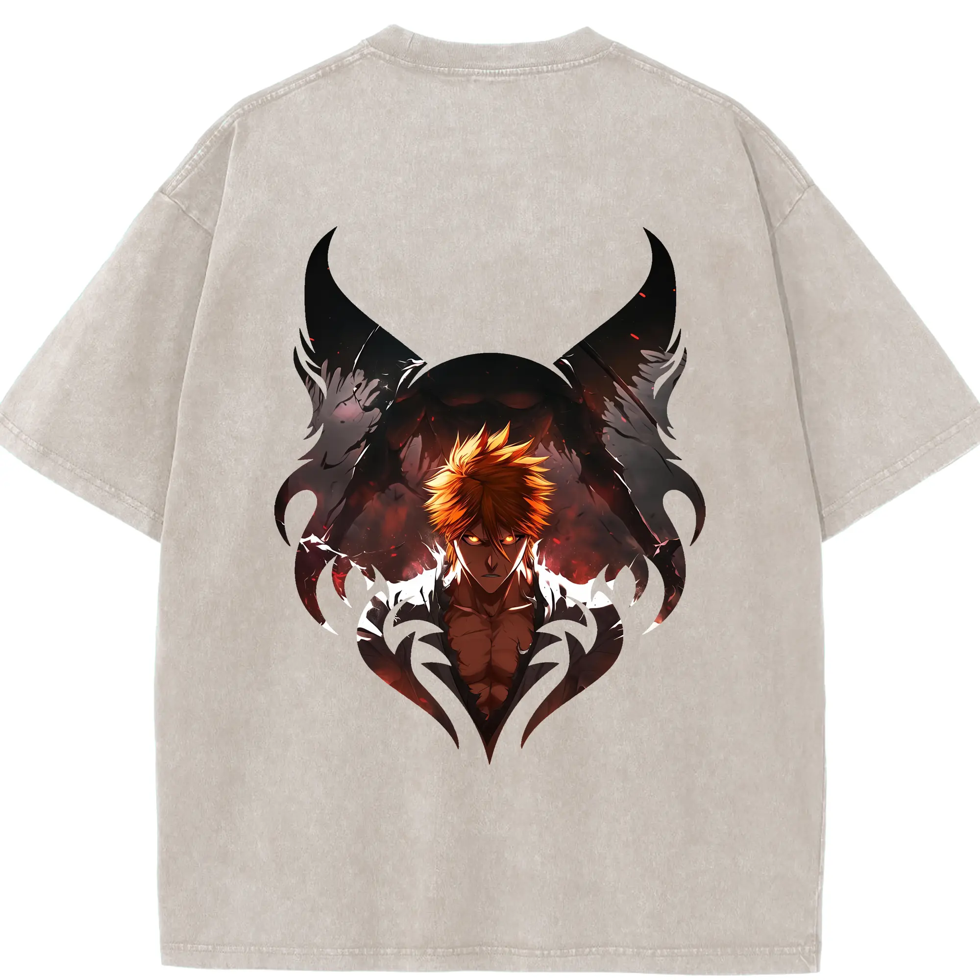 ブリーチ グッズ 黒崎 一護 - 綿100% ヴィンテージ風 半袖Tシャツ ・ フロントプリント ・ 柔らか肌触り ・ 通気性 快適 ・ スポーツ カジュアル 外出用