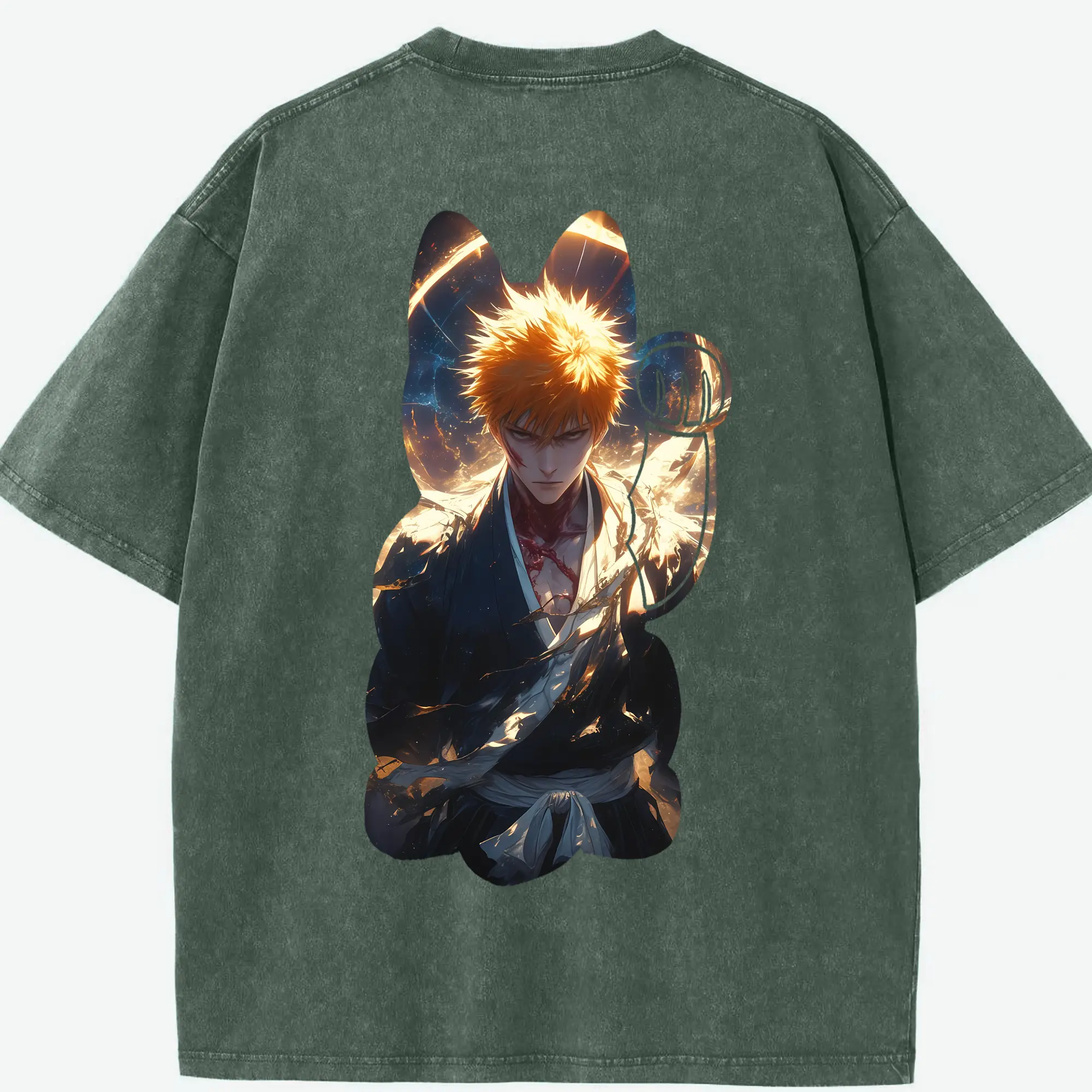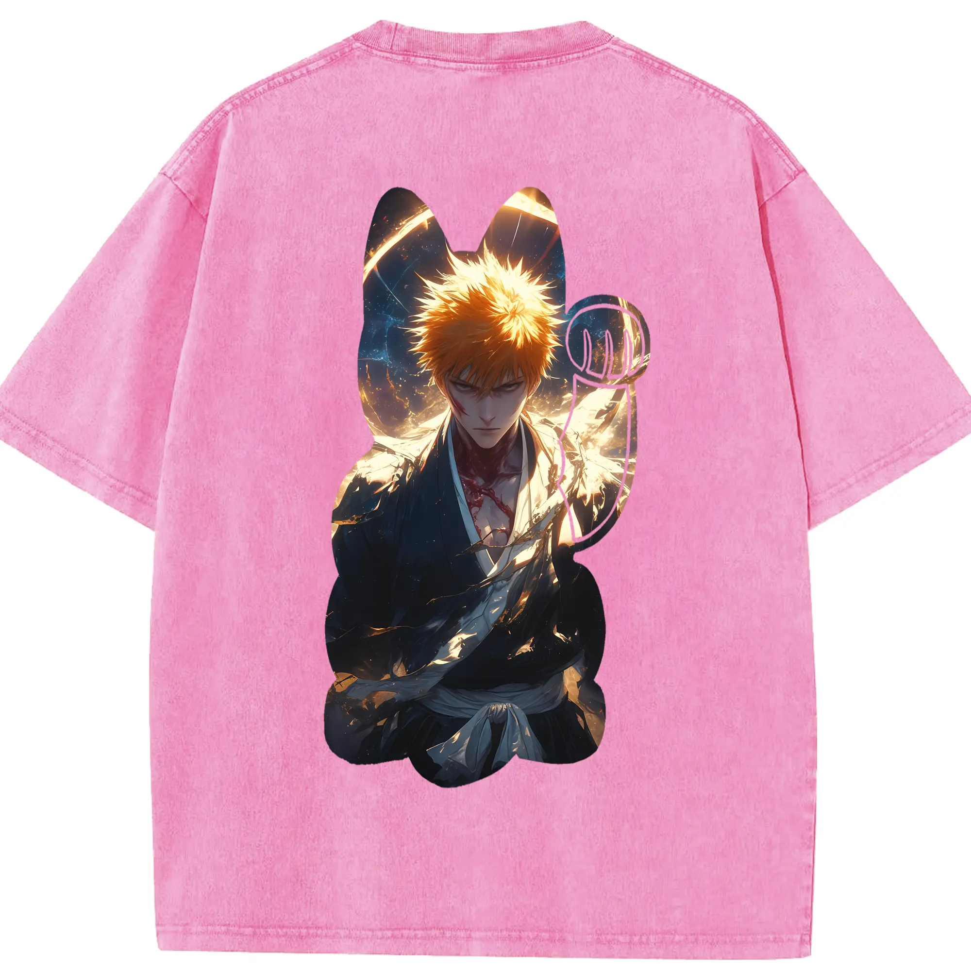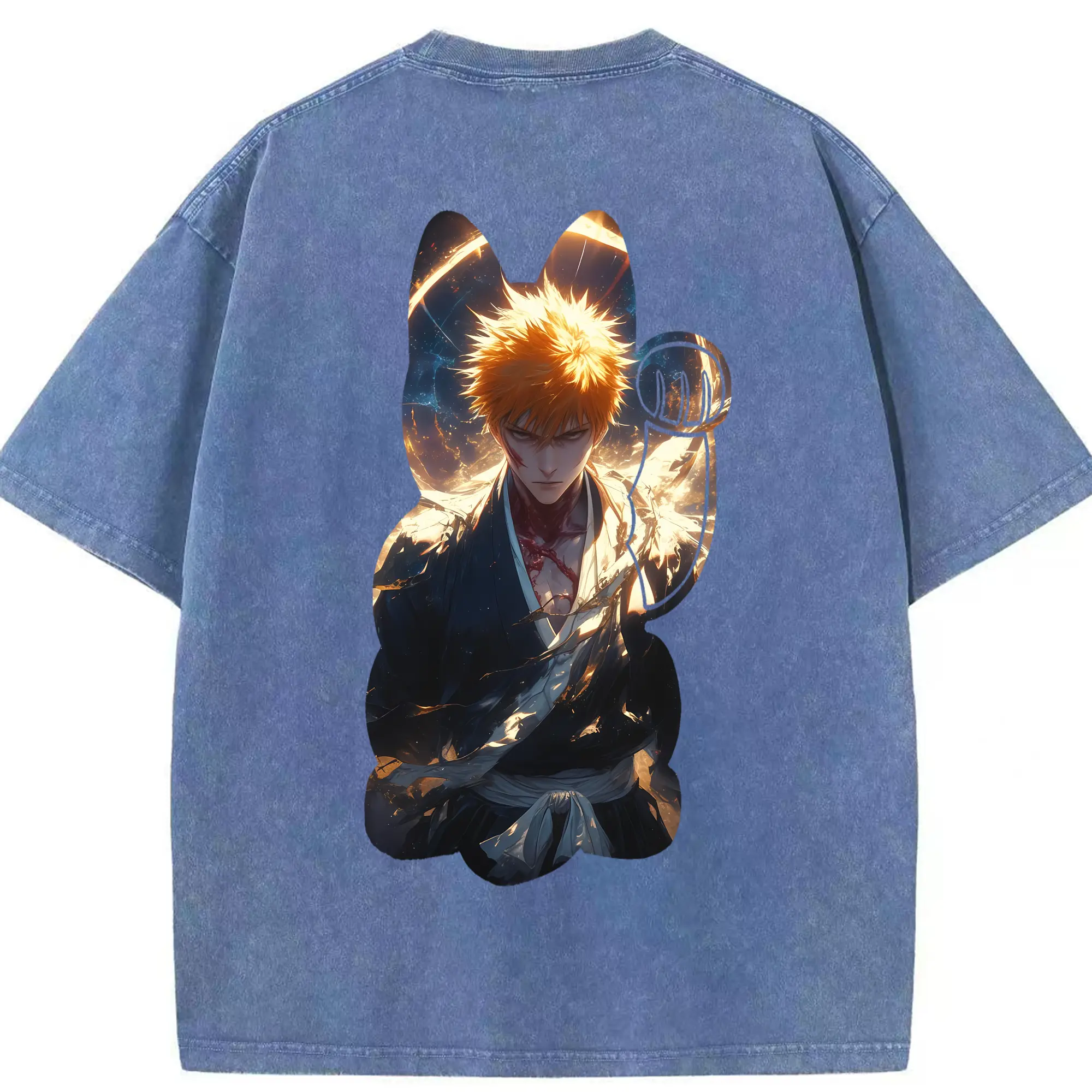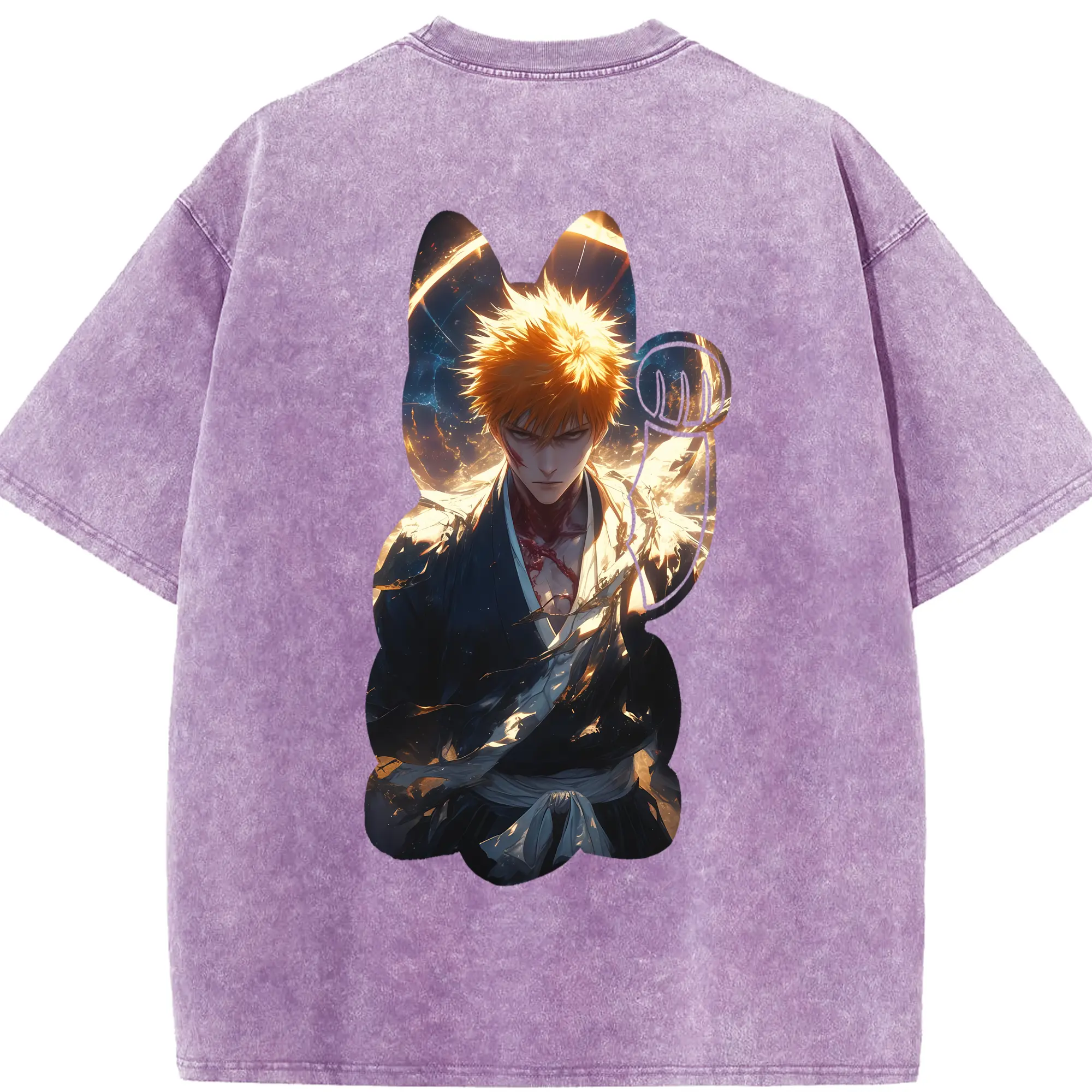 ブリーチ グッズ 黒崎 一護 - 綿100% ヴィンテージ風 半袖Tシャツ ・ フロントプリント ・ 柔らか肌触り ・ 通気性 快適 ・ スポーツ カジュアル 外出用