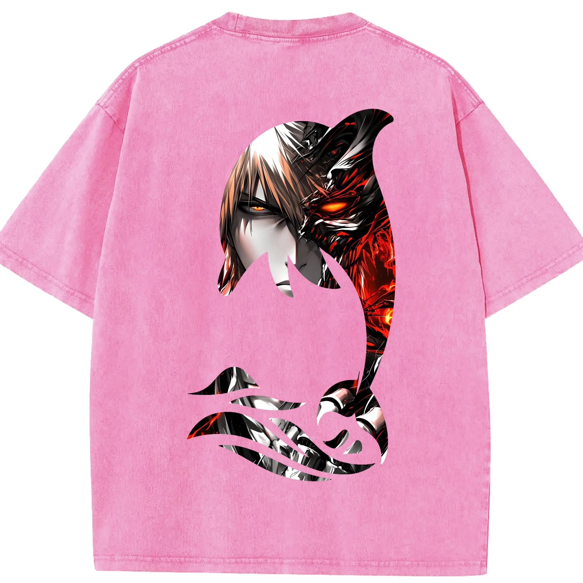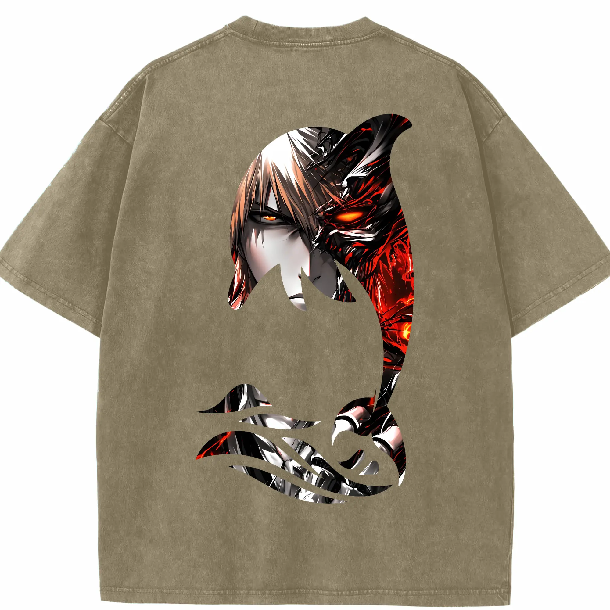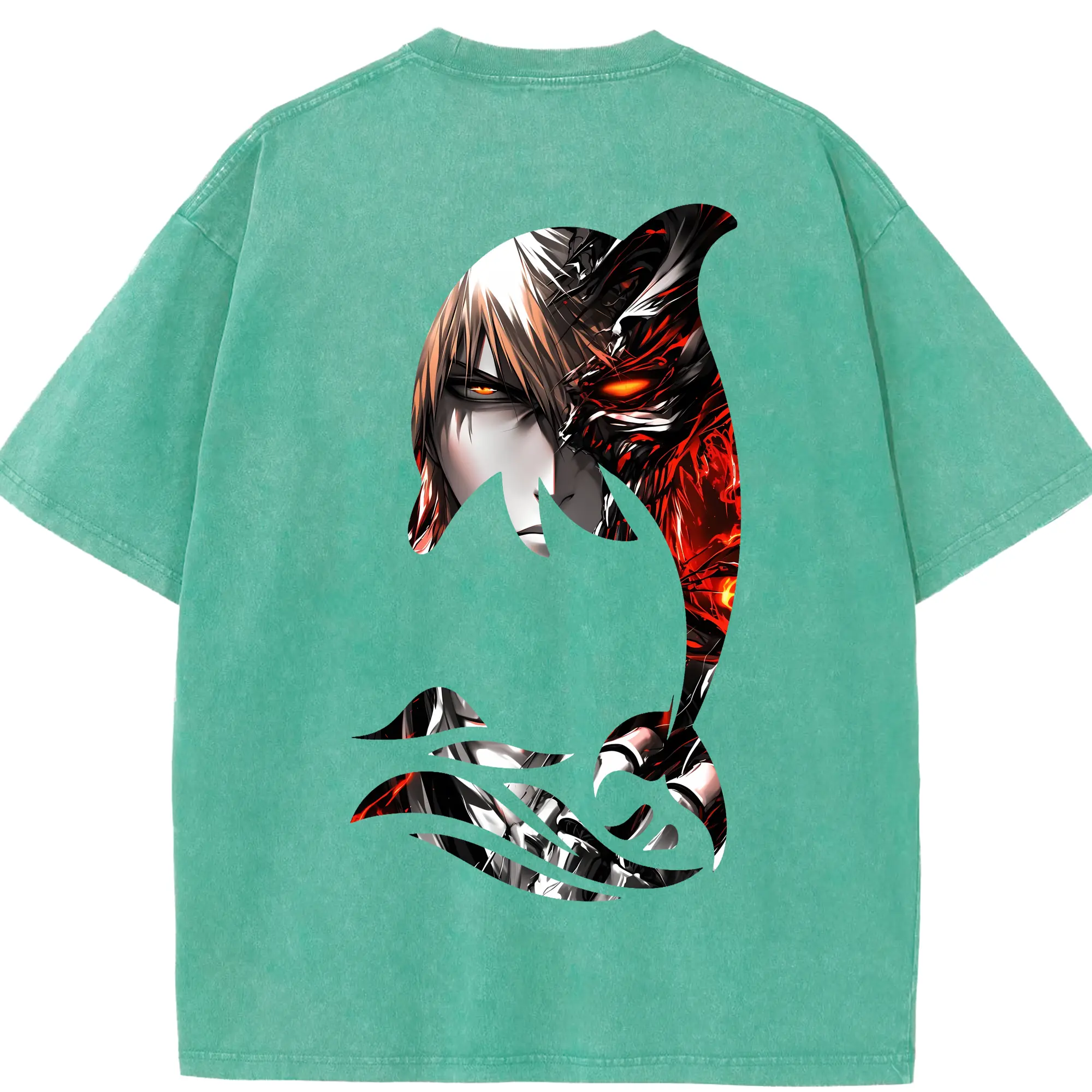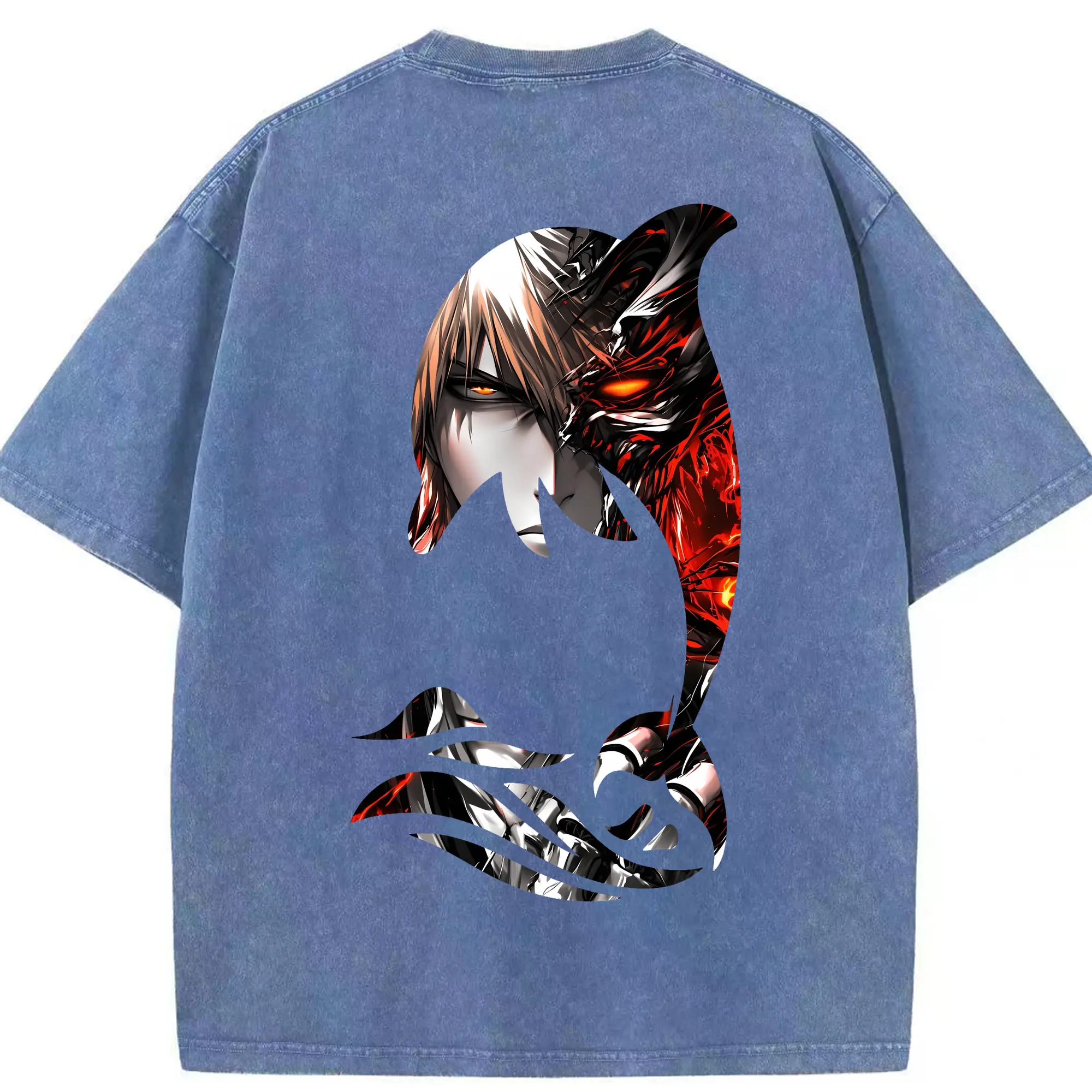ブリーチ グッズ 黒崎 一護 - 綿100% ヴィンテージ風 半袖Tシャツ ・ フロントプリント ・ 柔らか肌触り ・ 通気性 快適 ・ スポーツ カジュアル 外出用