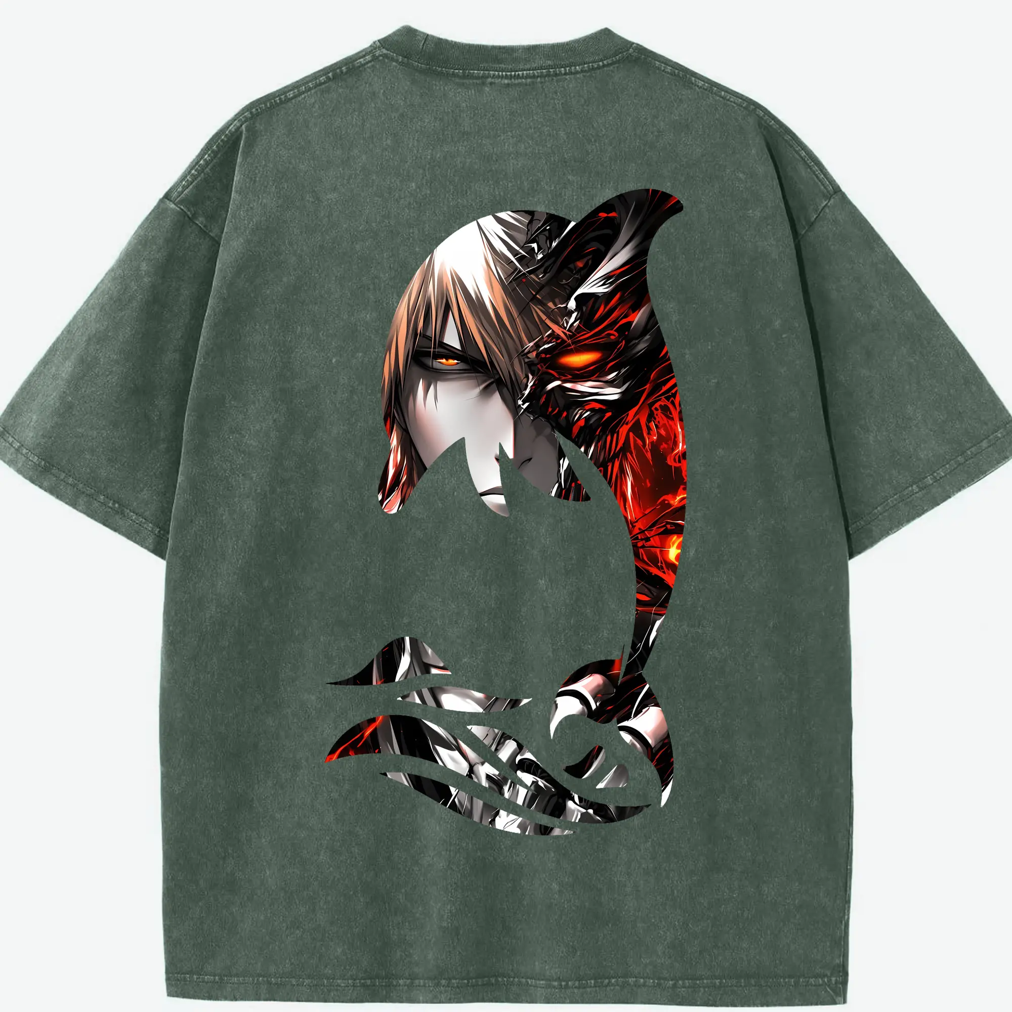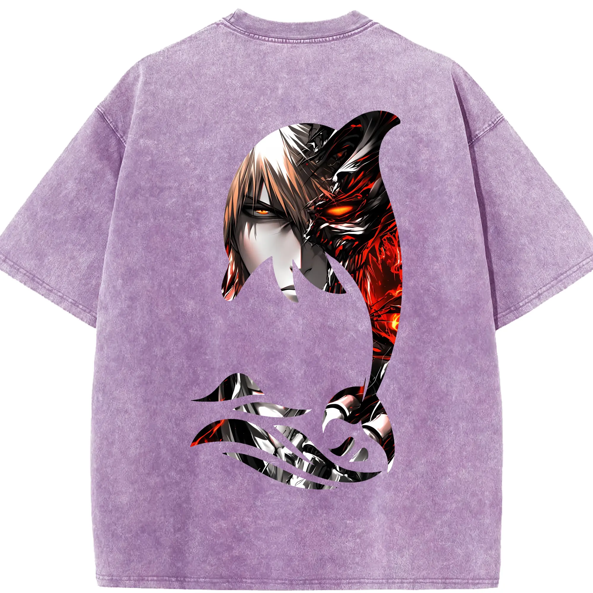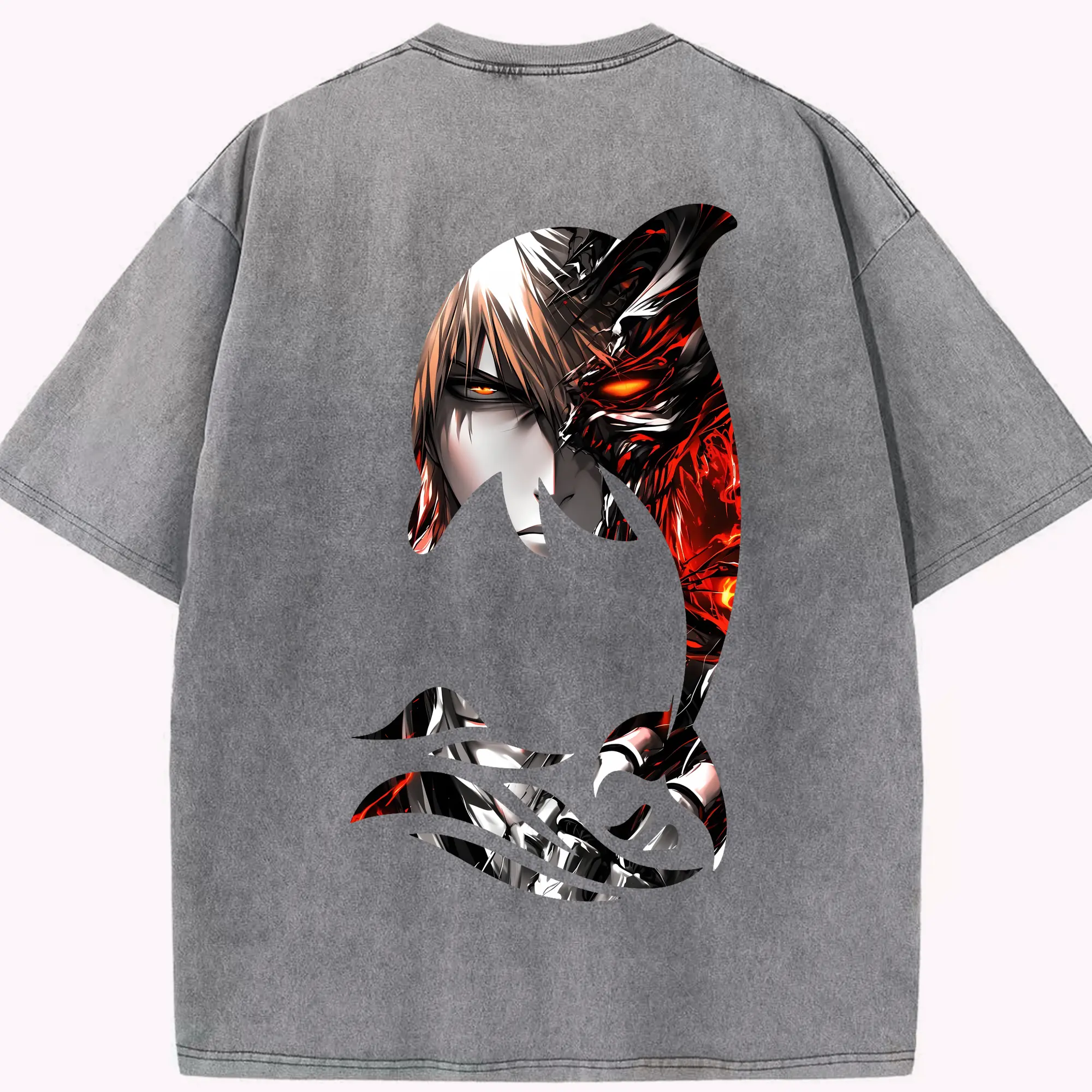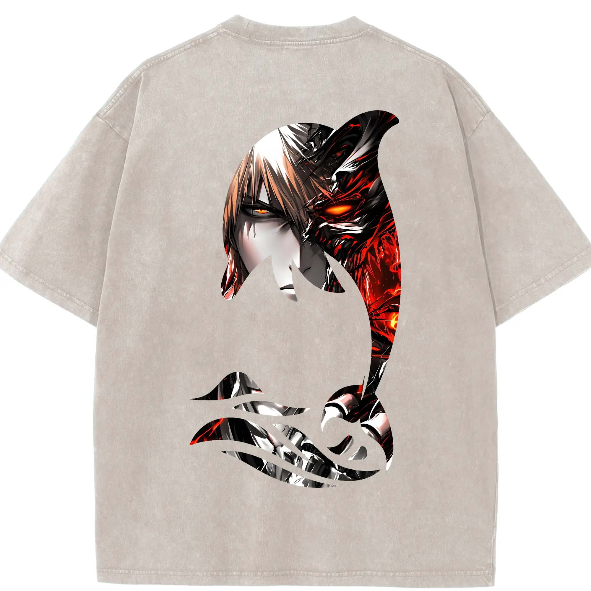 ブリーチ グッズ 黒崎 一護 - 綿100% ヴィンテージ風 半袖Tシャツ ・ フロントプリント ・ 柔らか肌触り ・ 通気性 快適 ・ スポーツ カジュアル 外出用