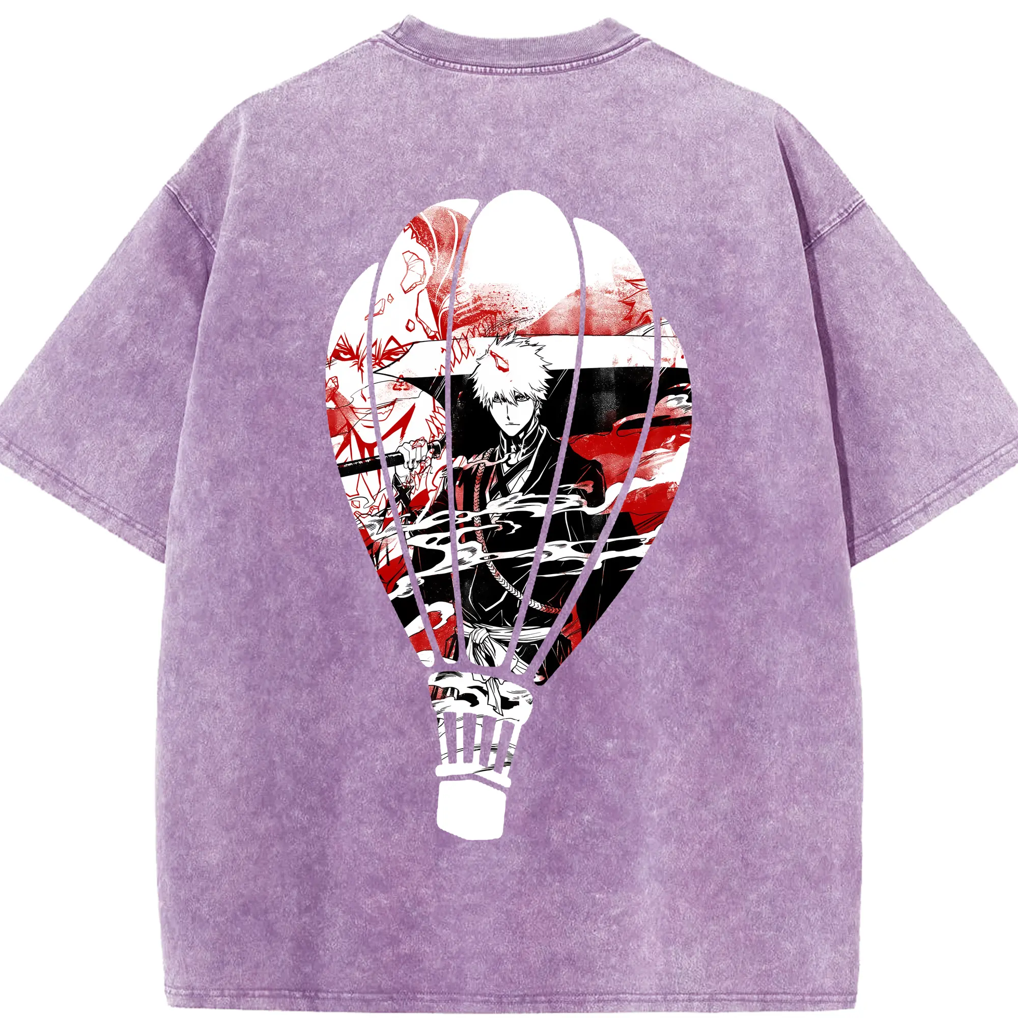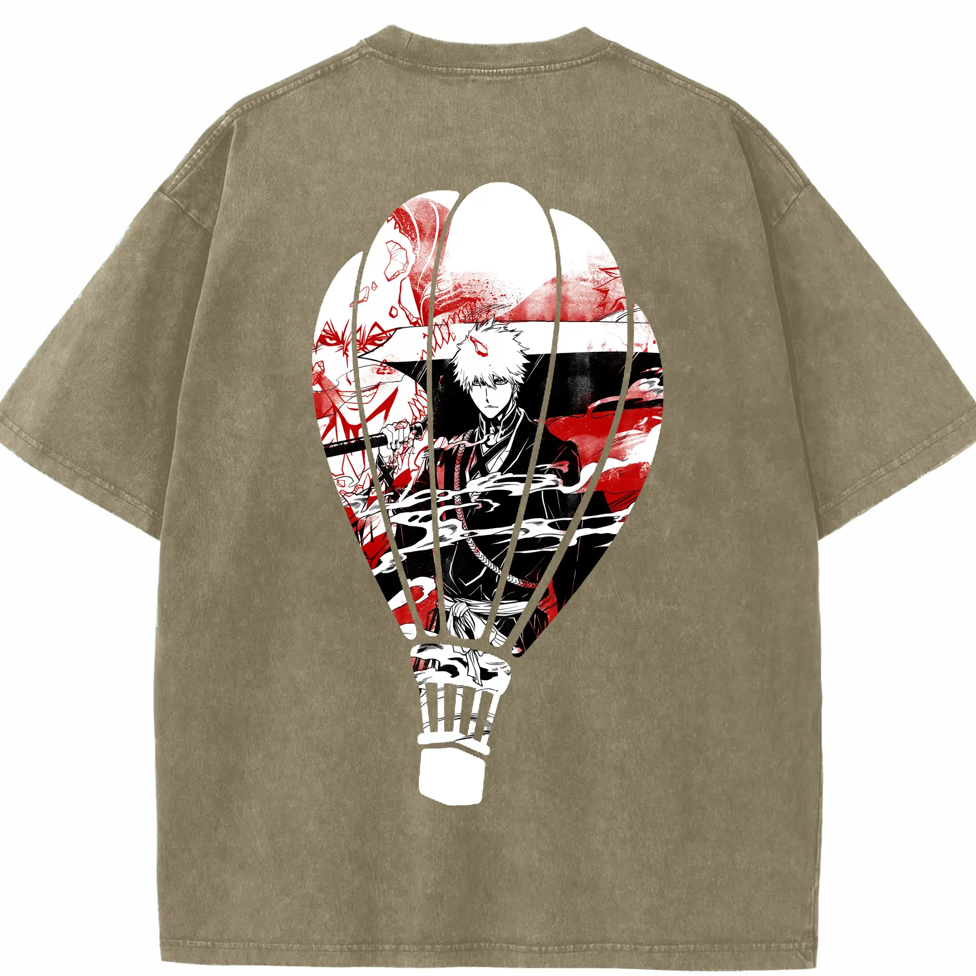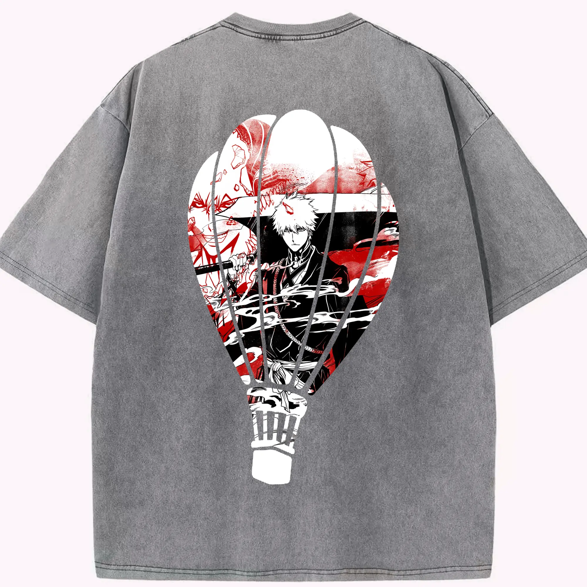 ブリーチ グッズ 黒崎 一護 - 綿100% ヴィンテージ風 半袖Tシャツ ・ フロントプリント ・ 柔らか肌触り ・ 通気性 快適 ・ スポーツ カジュアル 外出用