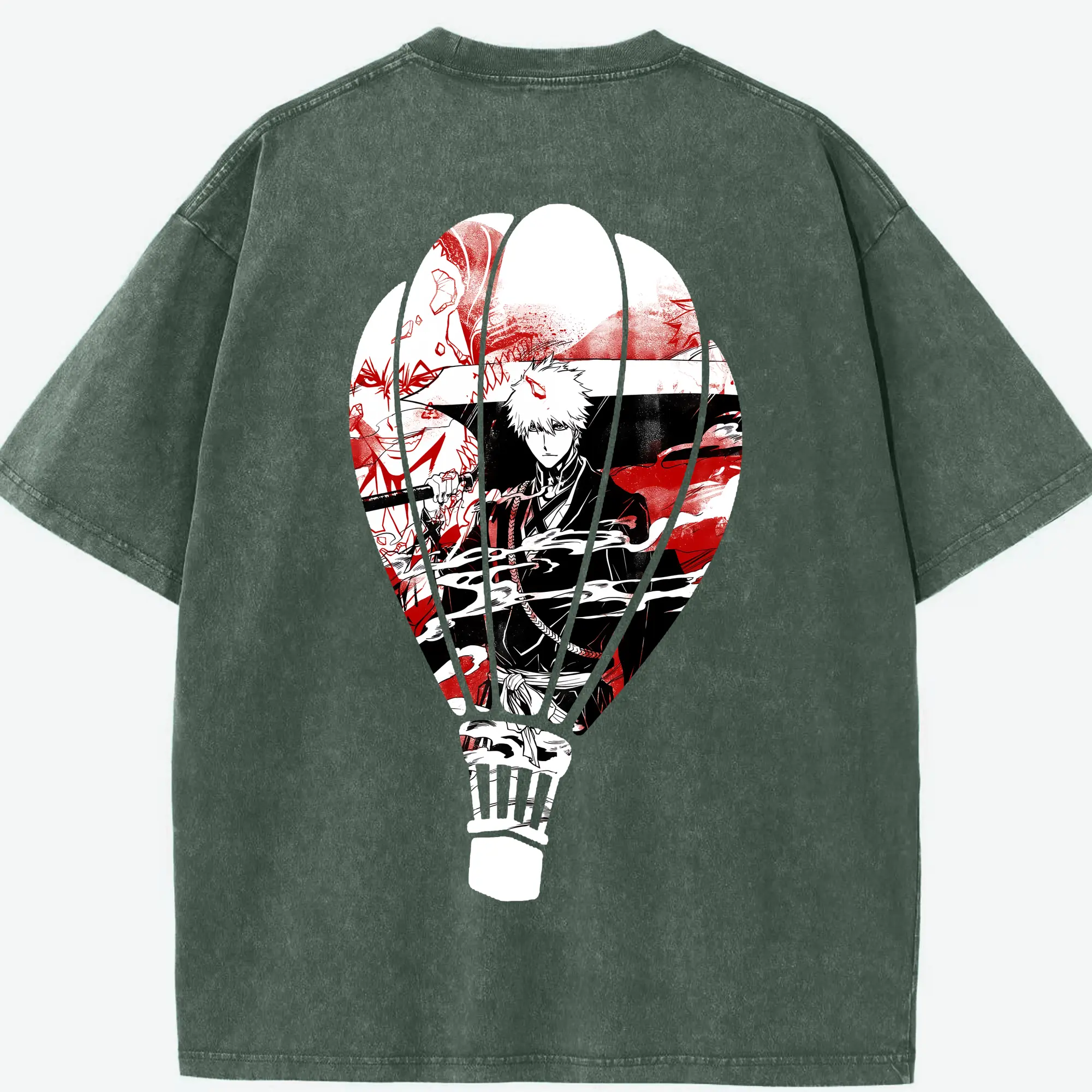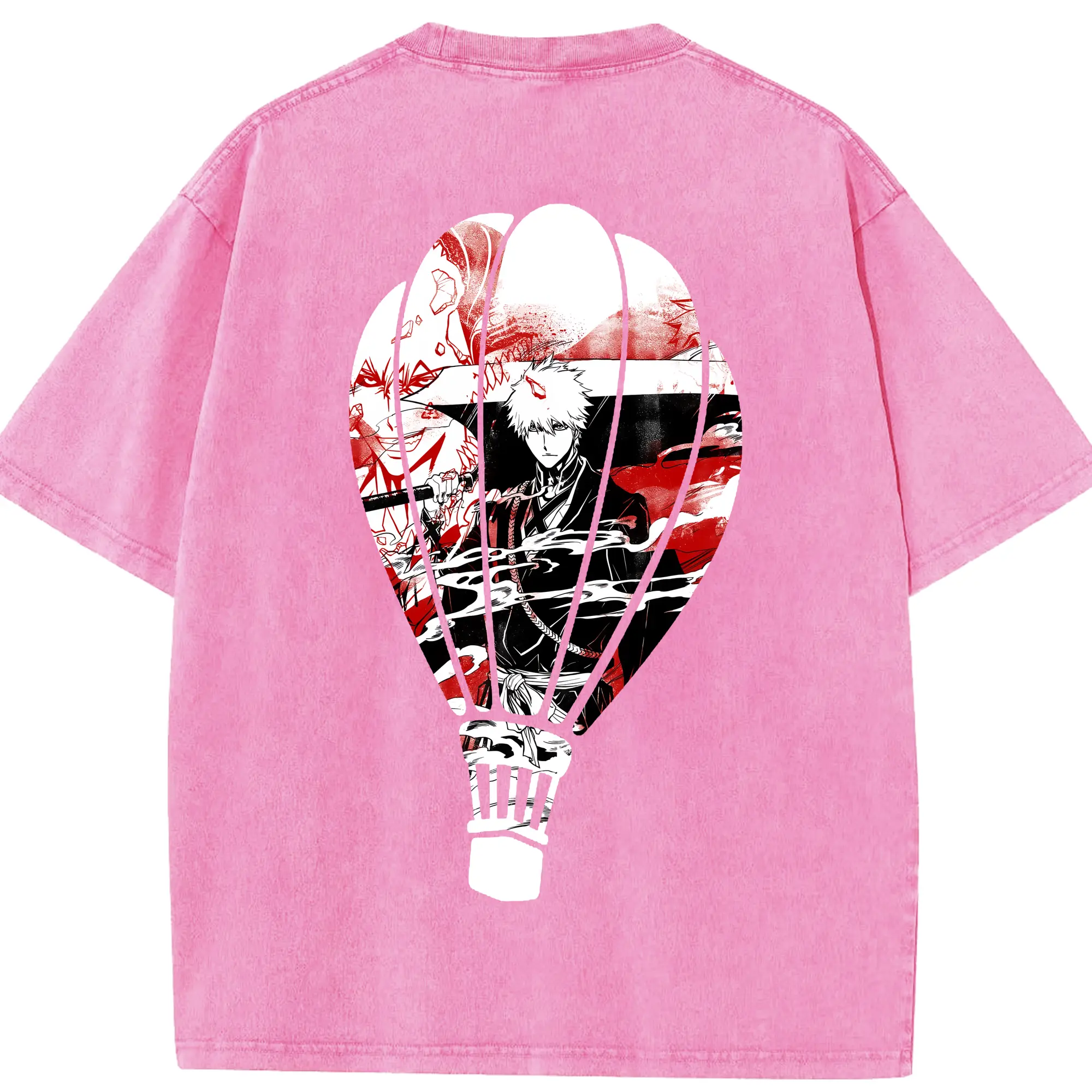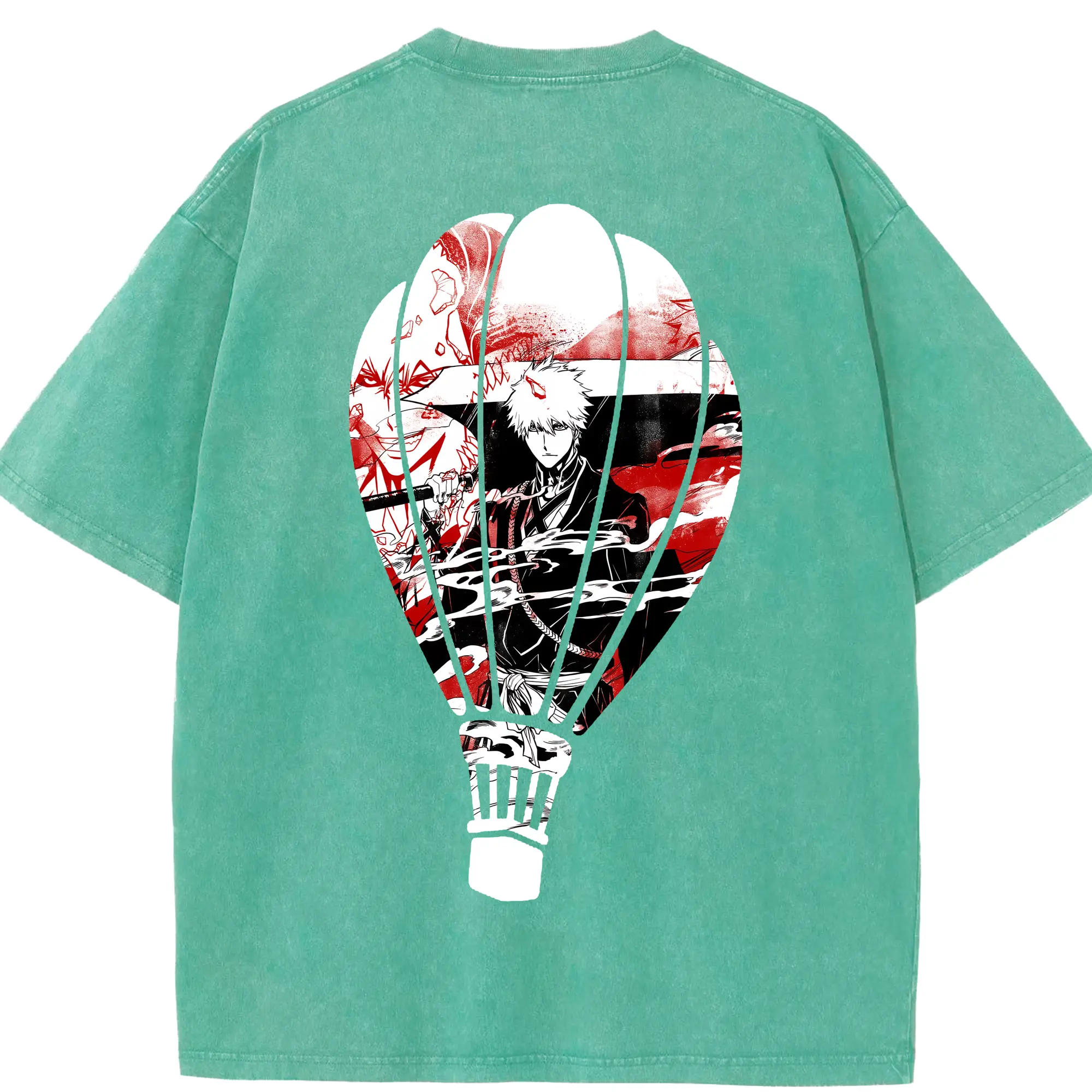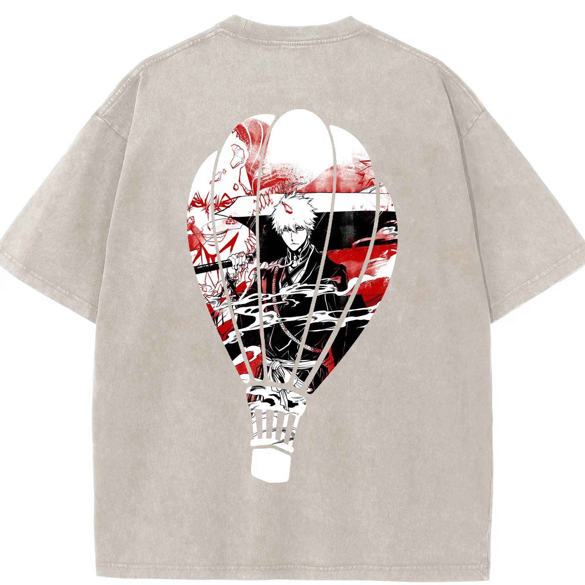 ブリーチ グッズ 黒崎 一護 - 綿100% ヴィンテージ風 半袖Tシャツ ・ フロントプリント ・ 柔らか肌触り ・ 通気性 快適 ・ スポーツ カジュアル 外出用