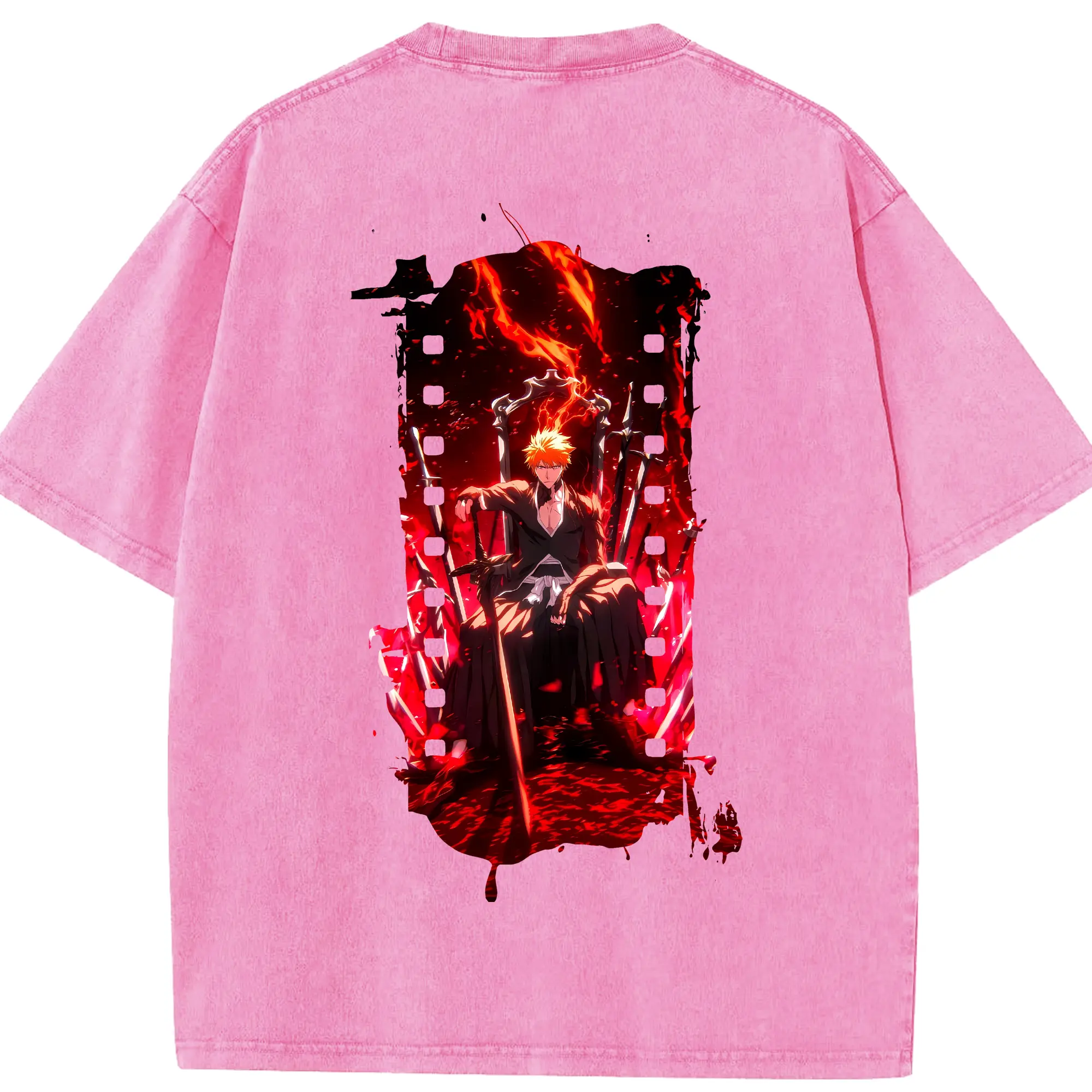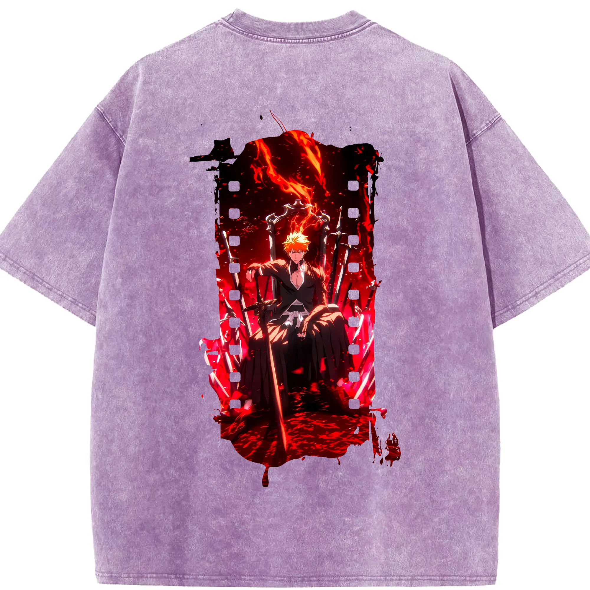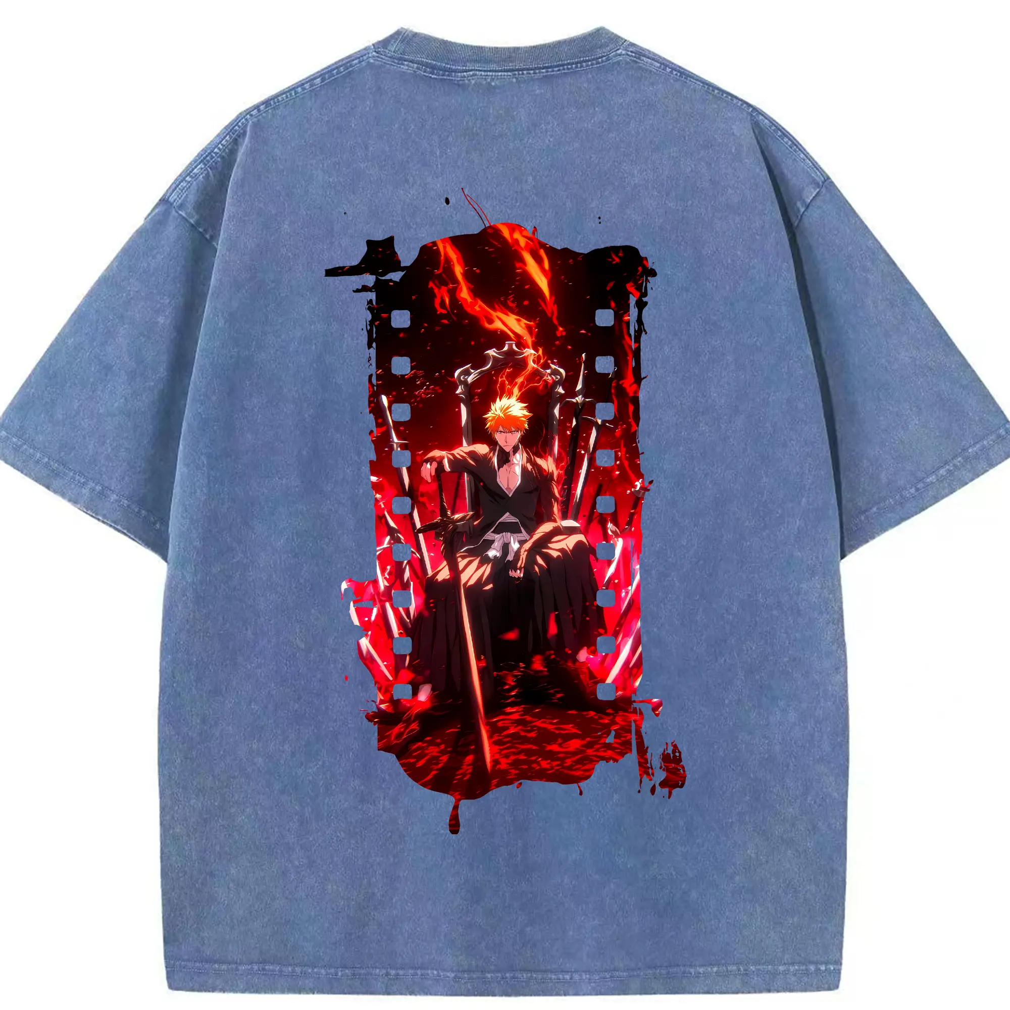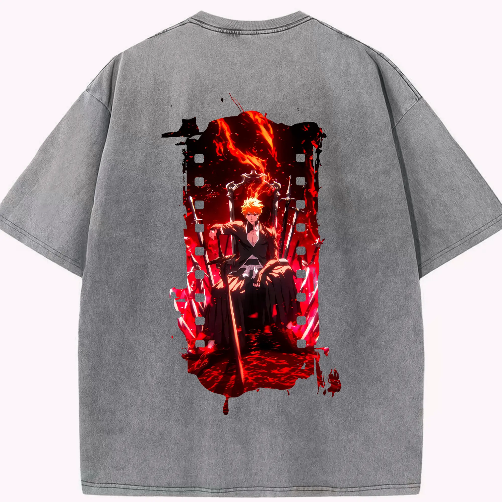 ブリーチ グッズ 黒崎 一護 - 綿100% ヴィンテージ風 半袖Tシャツ ・ フロントプリント ・ 柔らか肌触り ・ 通気性 快適 ・ スポーツ カジュアル 外出用