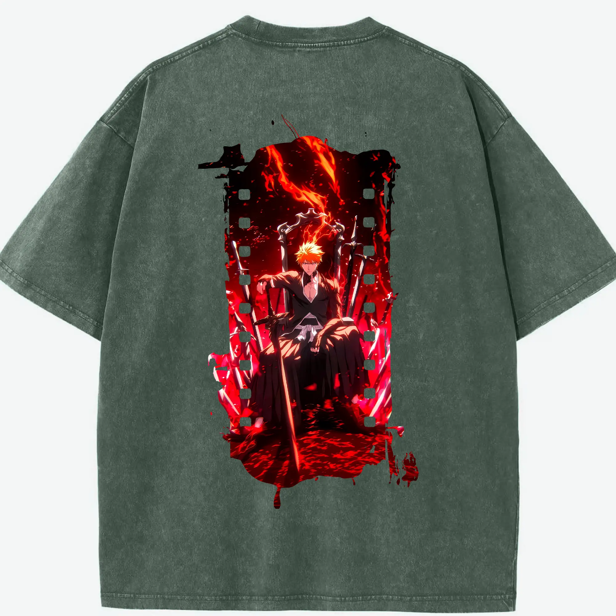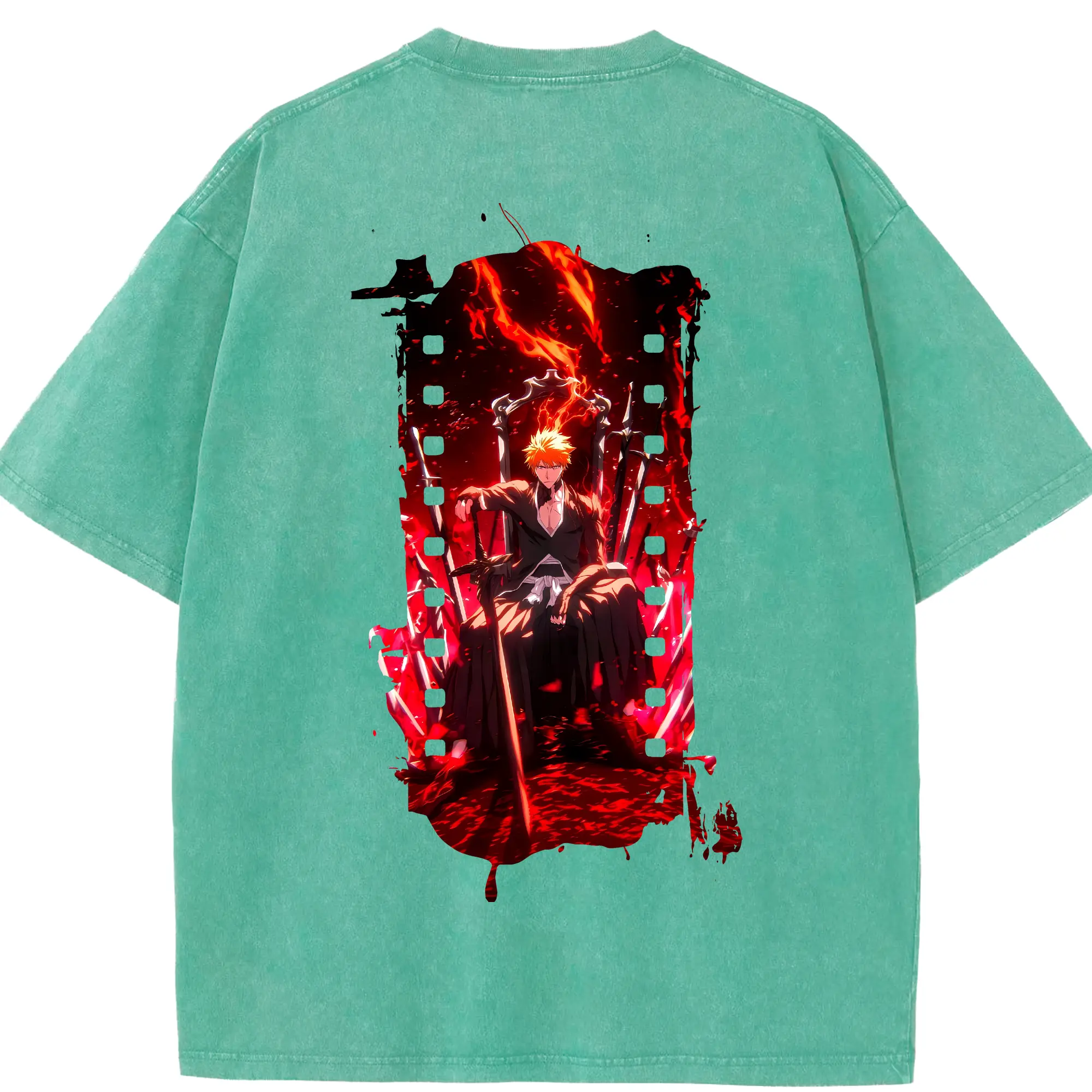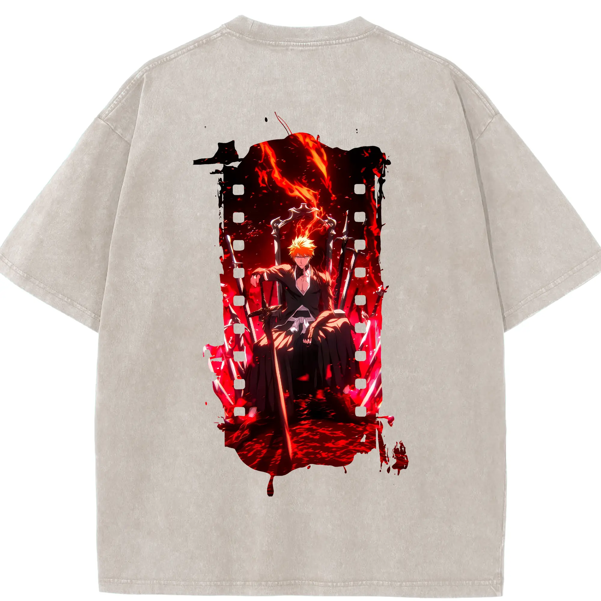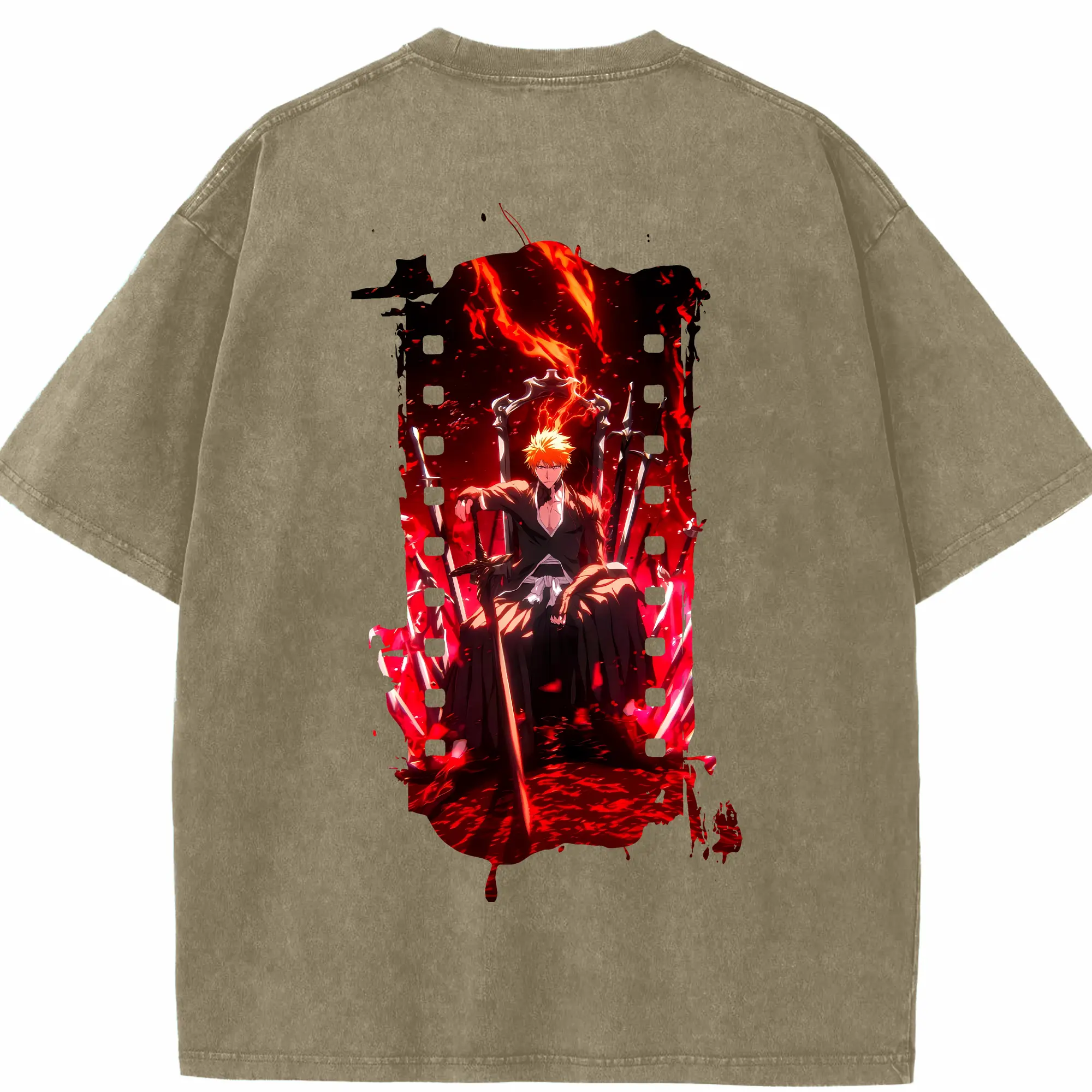 ブリーチ グッズ 黒崎 一護 - 綿100% ヴィンテージ風 半袖Tシャツ ・ フロントプリント ・ 柔らか肌触り ・ 通気性 快適 ・ スポーツ カジュアル 外出用