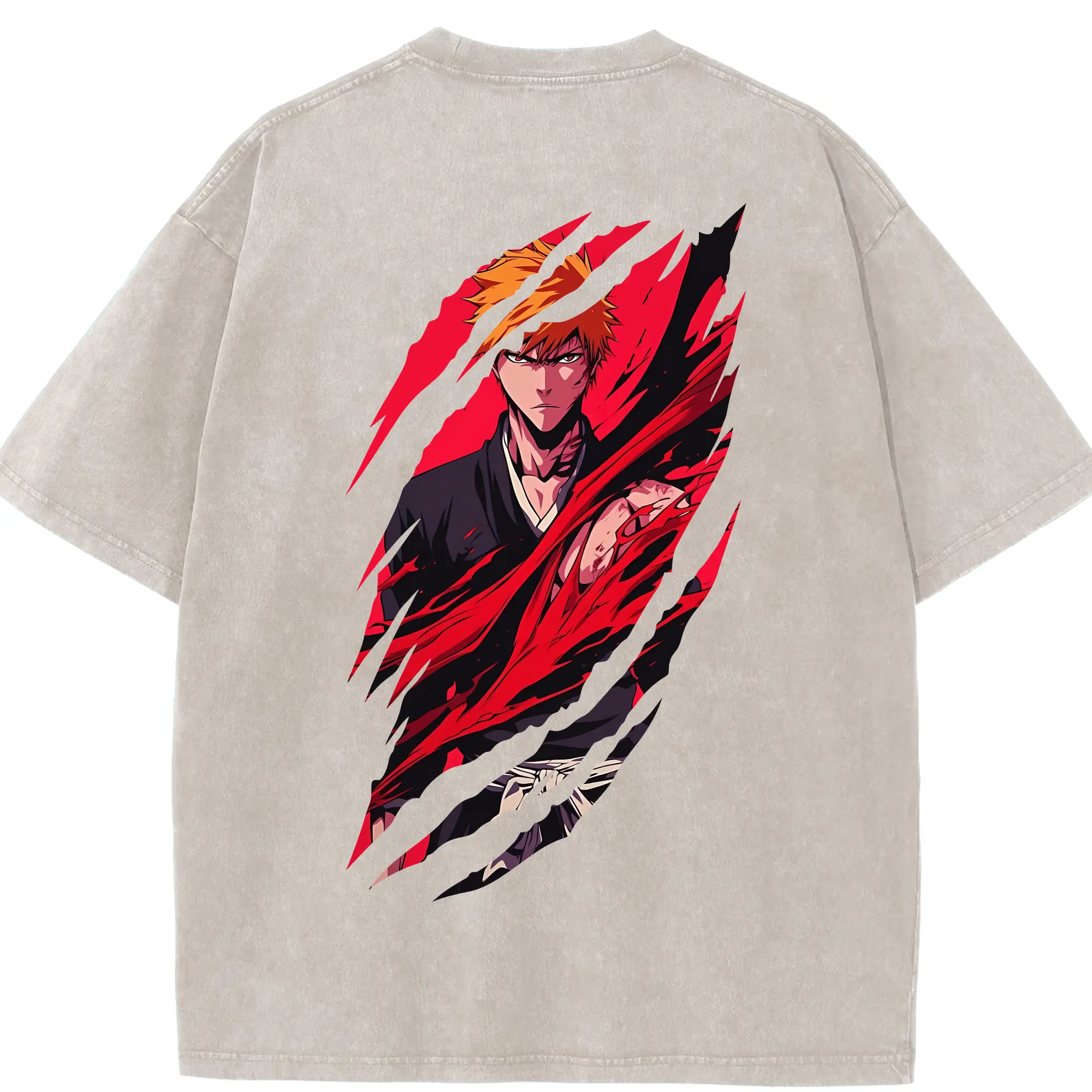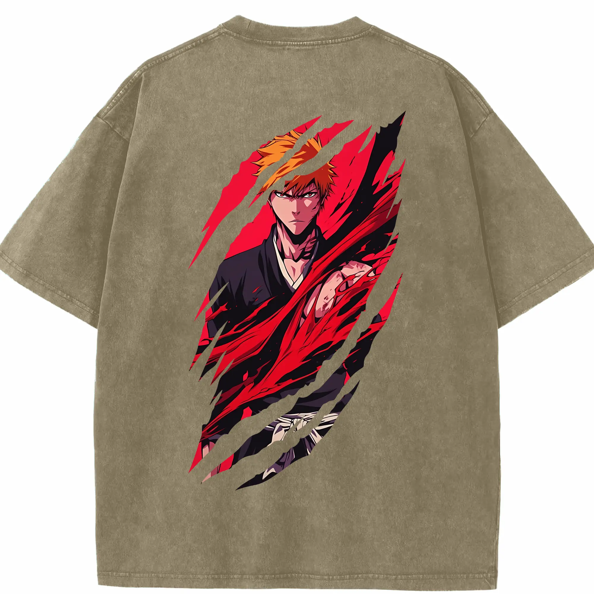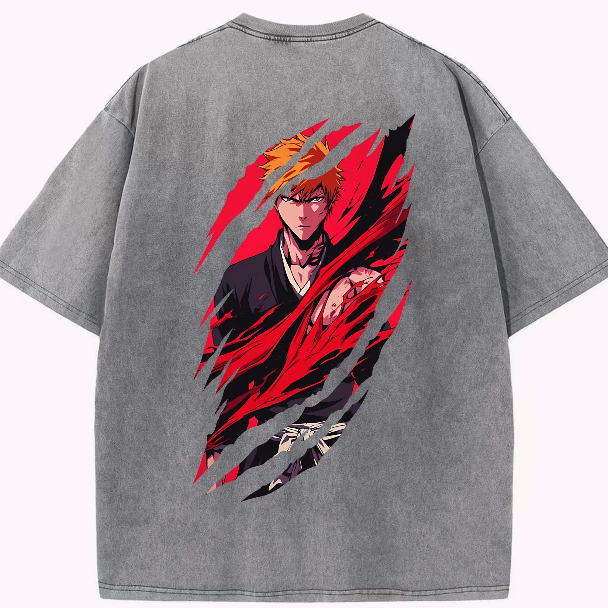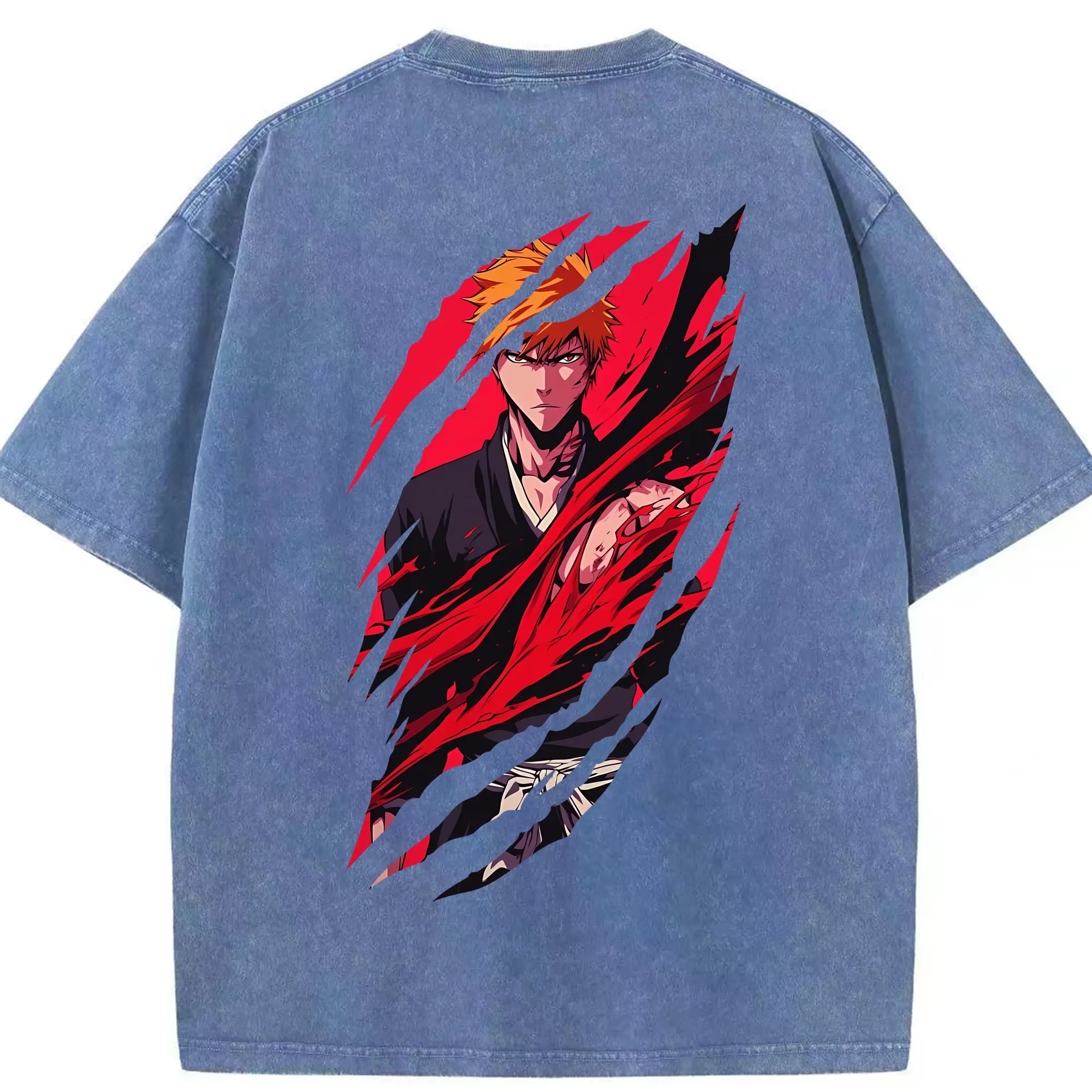 ブリーチ グッズ 黒崎 一護 - 綿100% ヴィンテージ風 半袖Tシャツ ・ フロントプリント ・ 柔らか肌触り ・ 通気性 快適 ・ スポーツ カジュアル 外出用