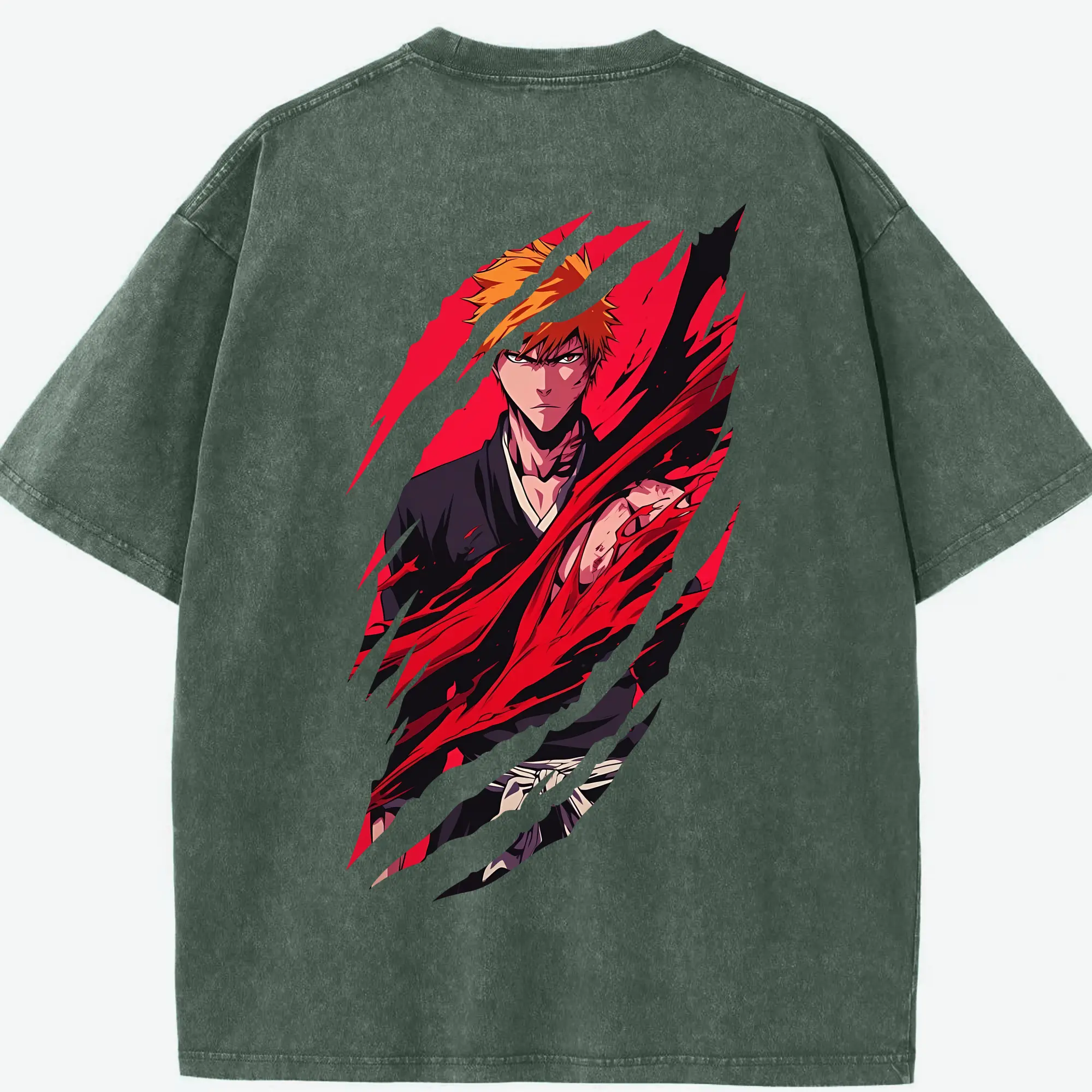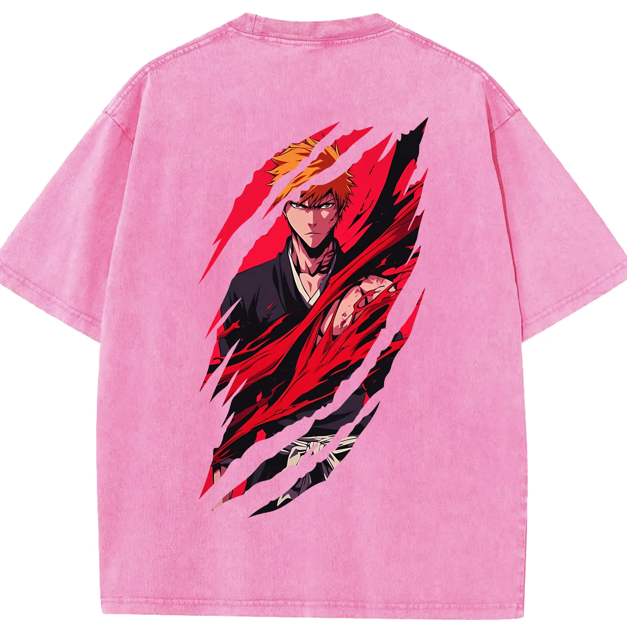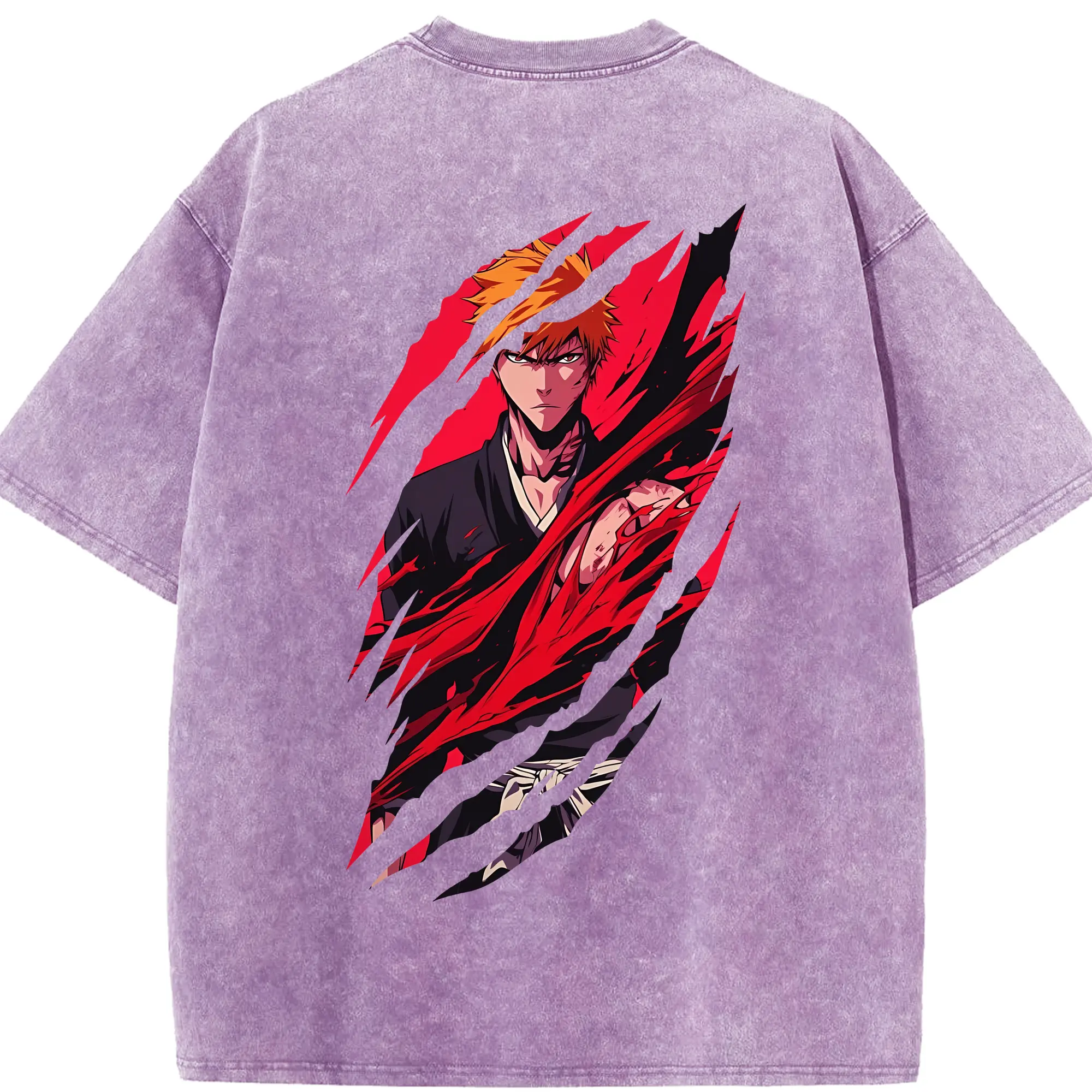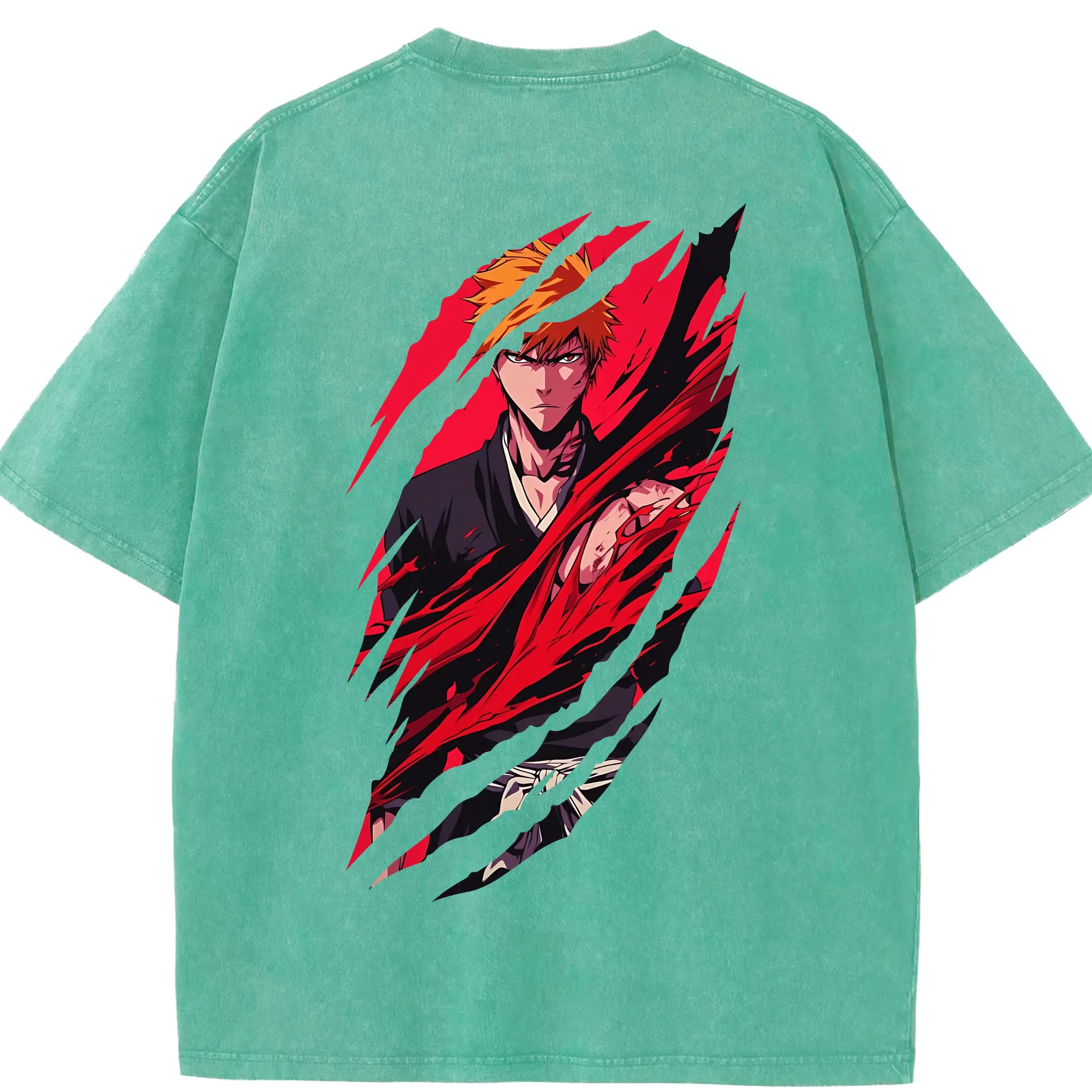 ブリーチ グッズ 黒崎 一護 - 綿100% ヴィンテージ風 半袖Tシャツ ・ フロントプリント ・ 柔らか肌触り ・ 通気性 快適 ・ スポーツ カジュアル 外出用