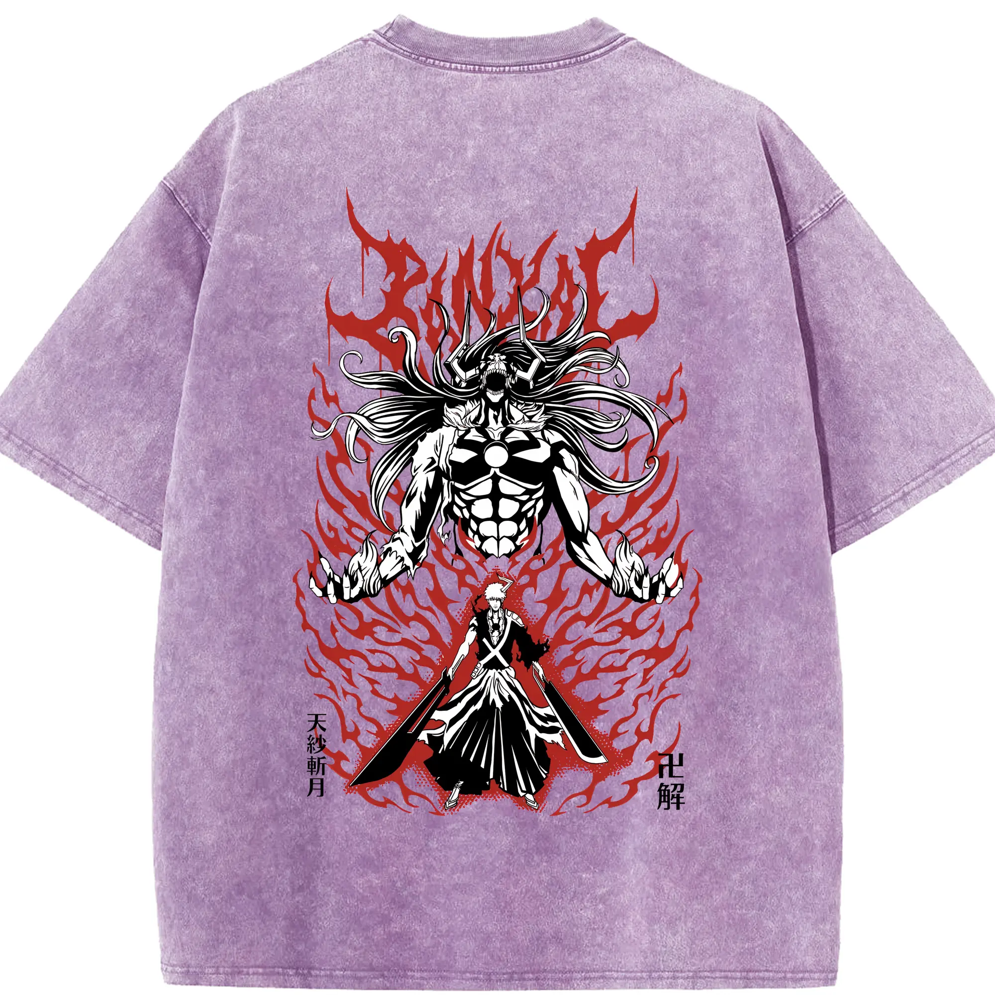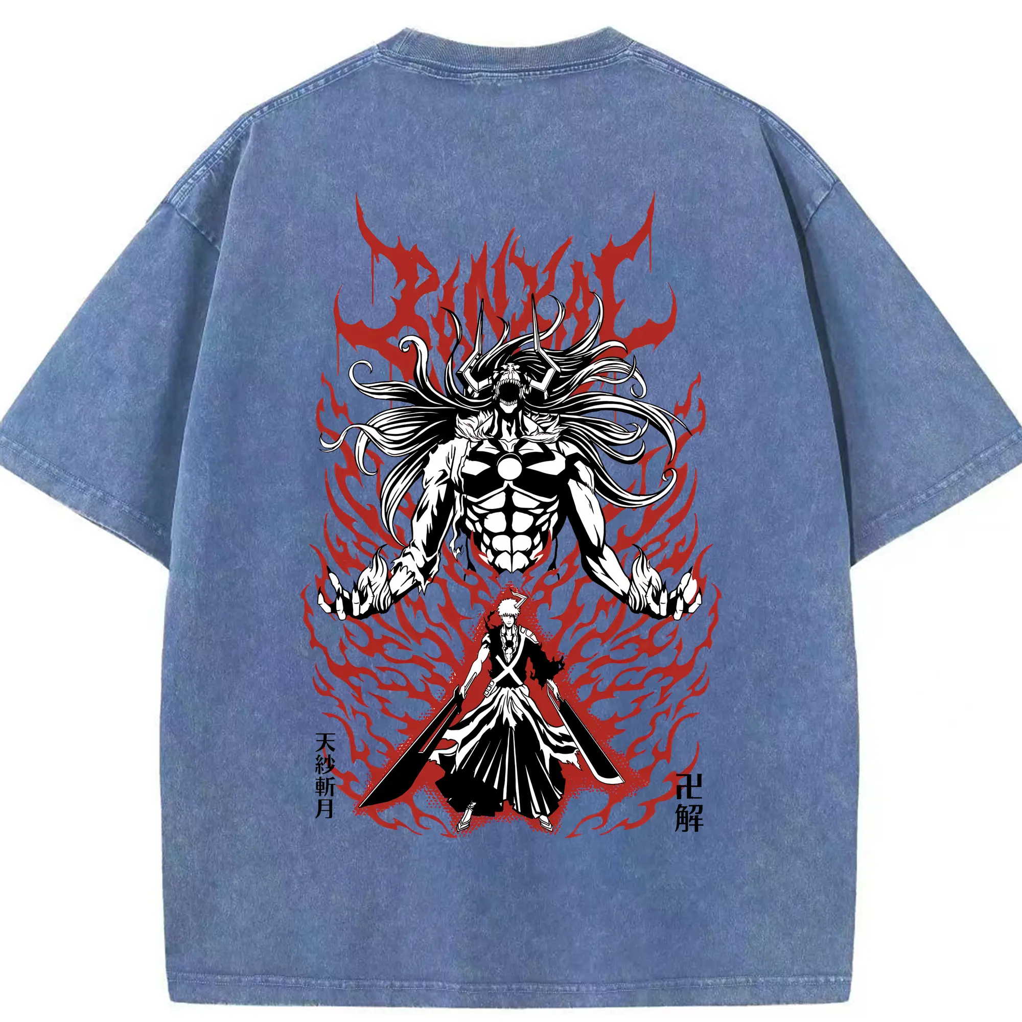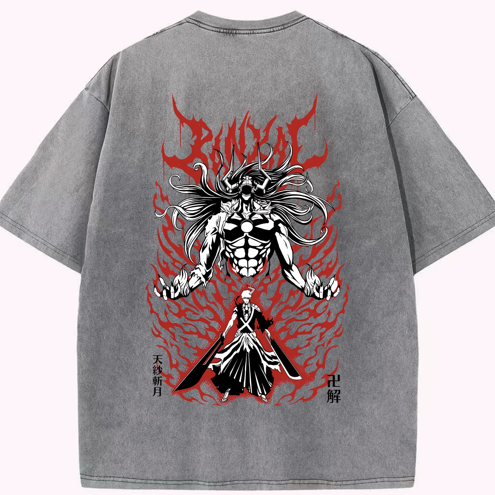 ブリーチ グッズ 黒崎 一護 - 綿100% ヴィンテージ風 半袖Tシャツ ・ フロントプリント ・ 柔らか肌触り ・ 通気性 快適 ・ スポーツ カジュアル 外出用