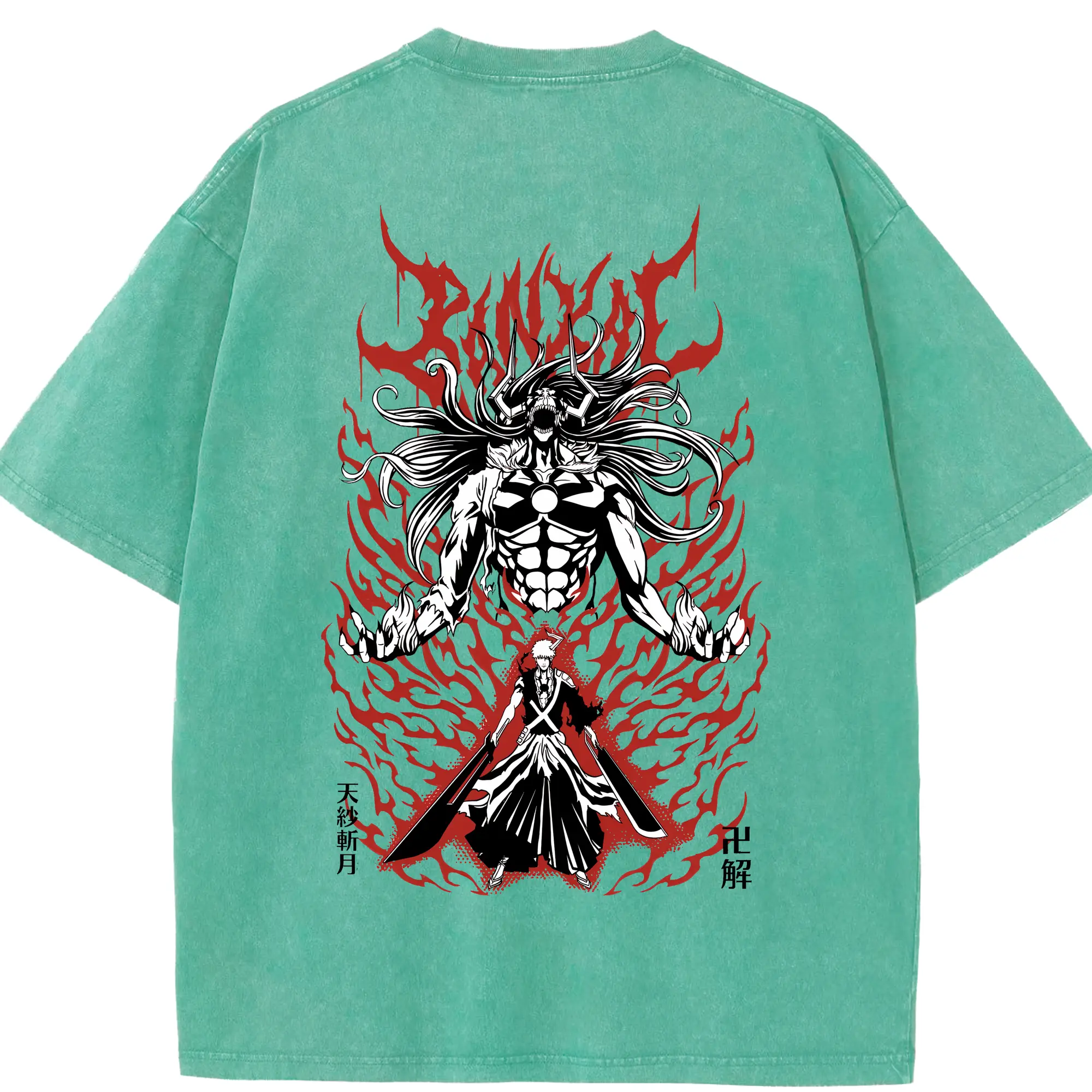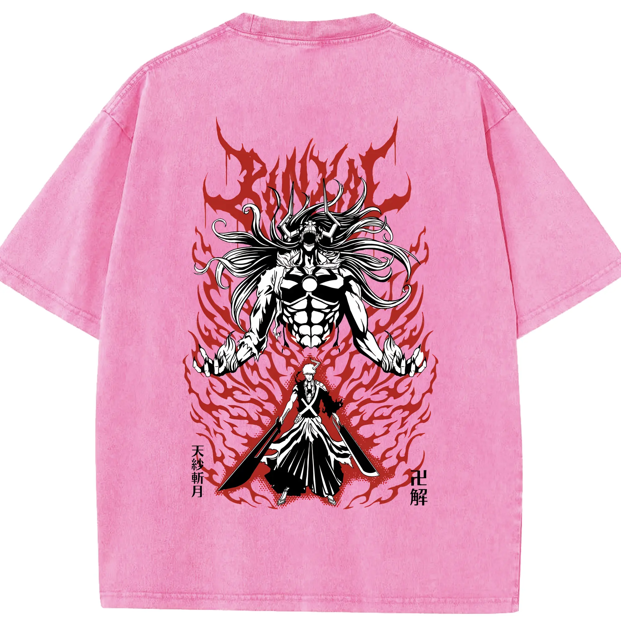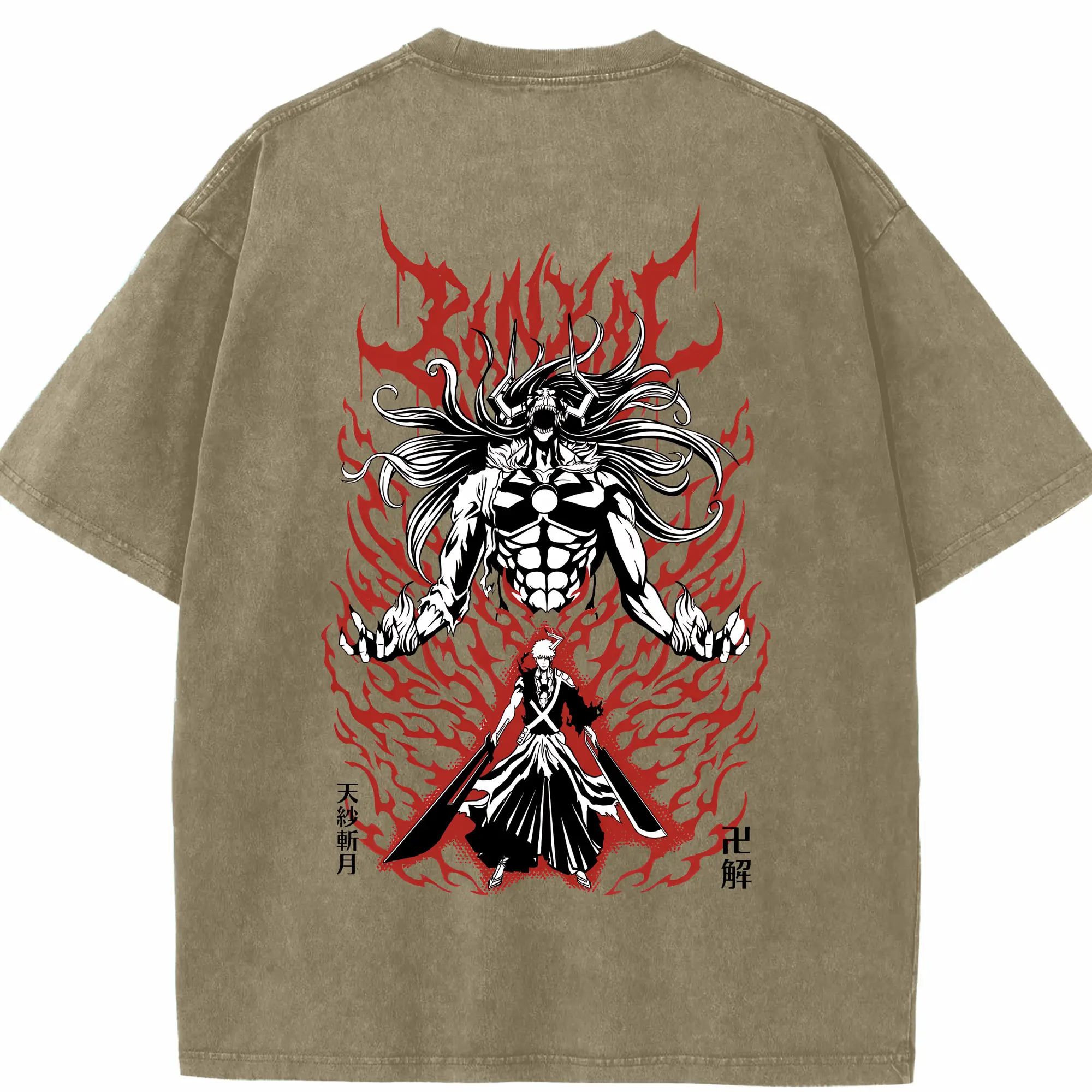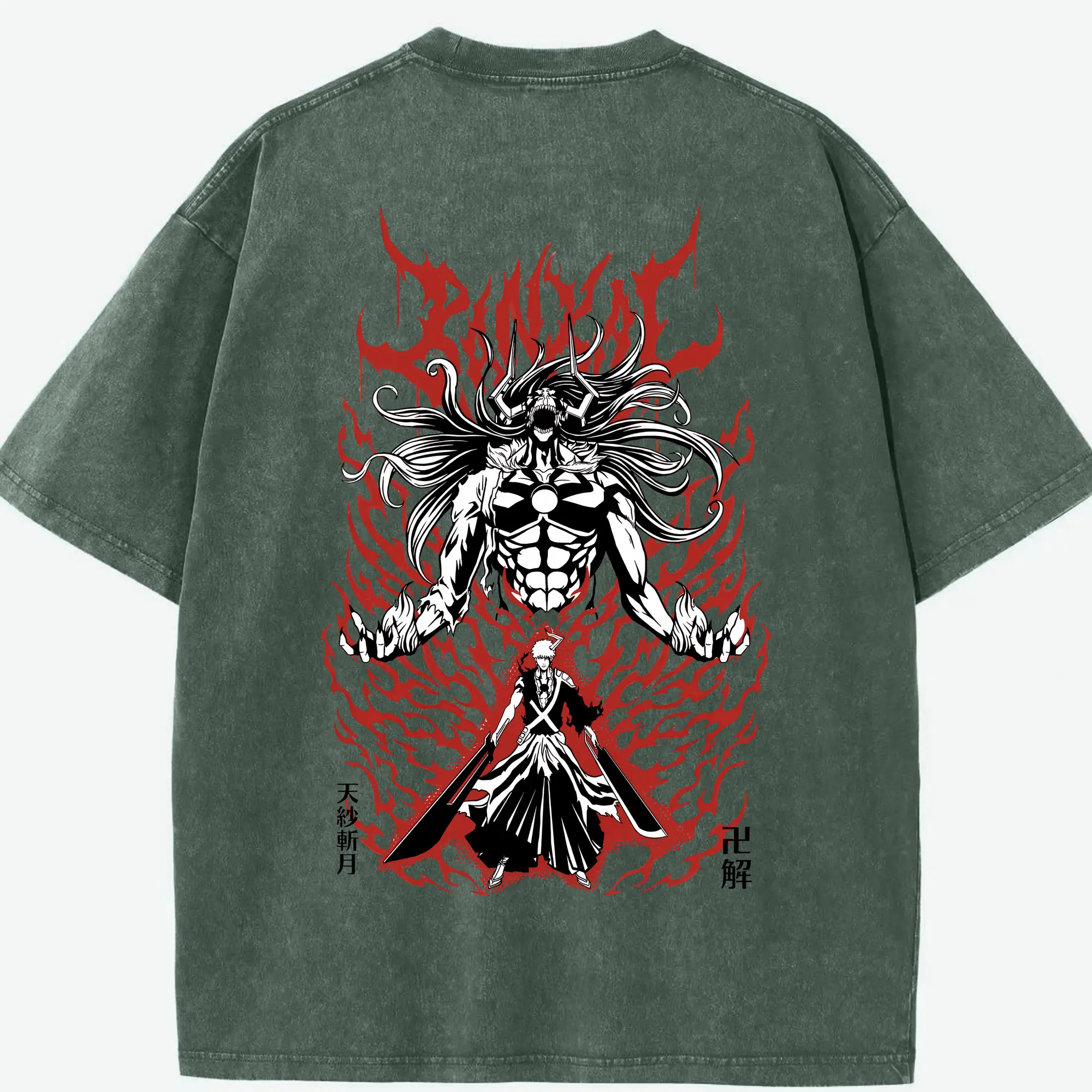 ブリーチ グッズ 黒崎 一護 - 綿100% ヴィンテージ風 半袖Tシャツ ・ フロントプリント ・ 柔らか肌触り ・ 通気性 快適 ・ スポーツ カジュアル 外出用