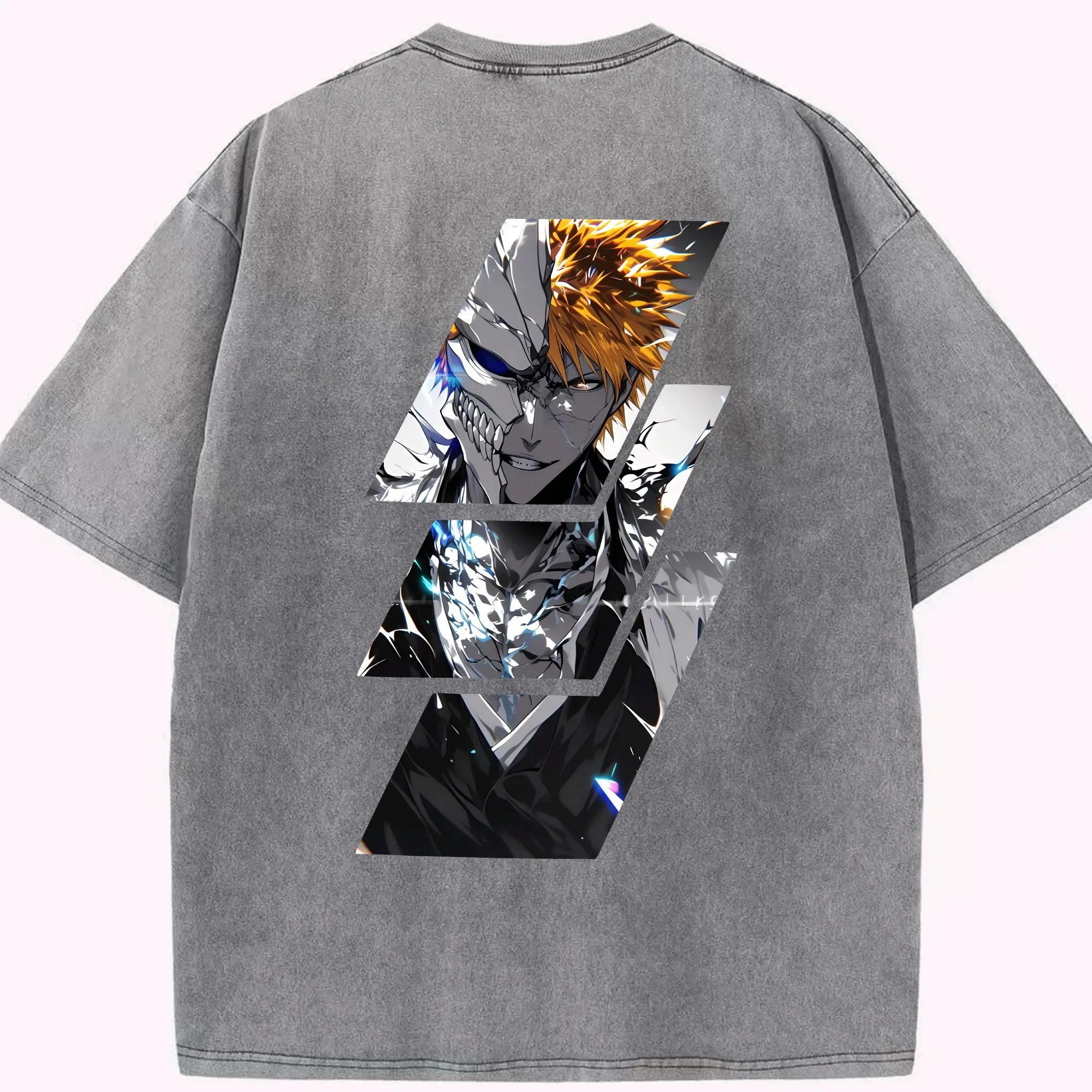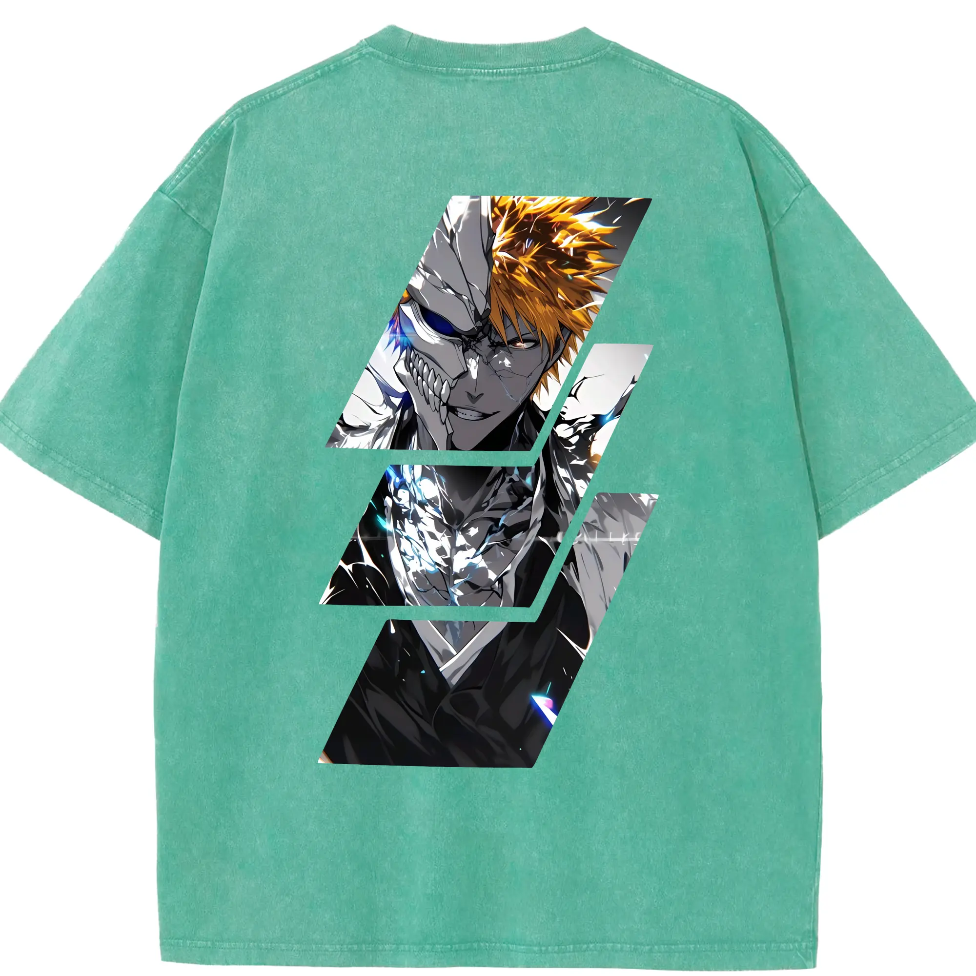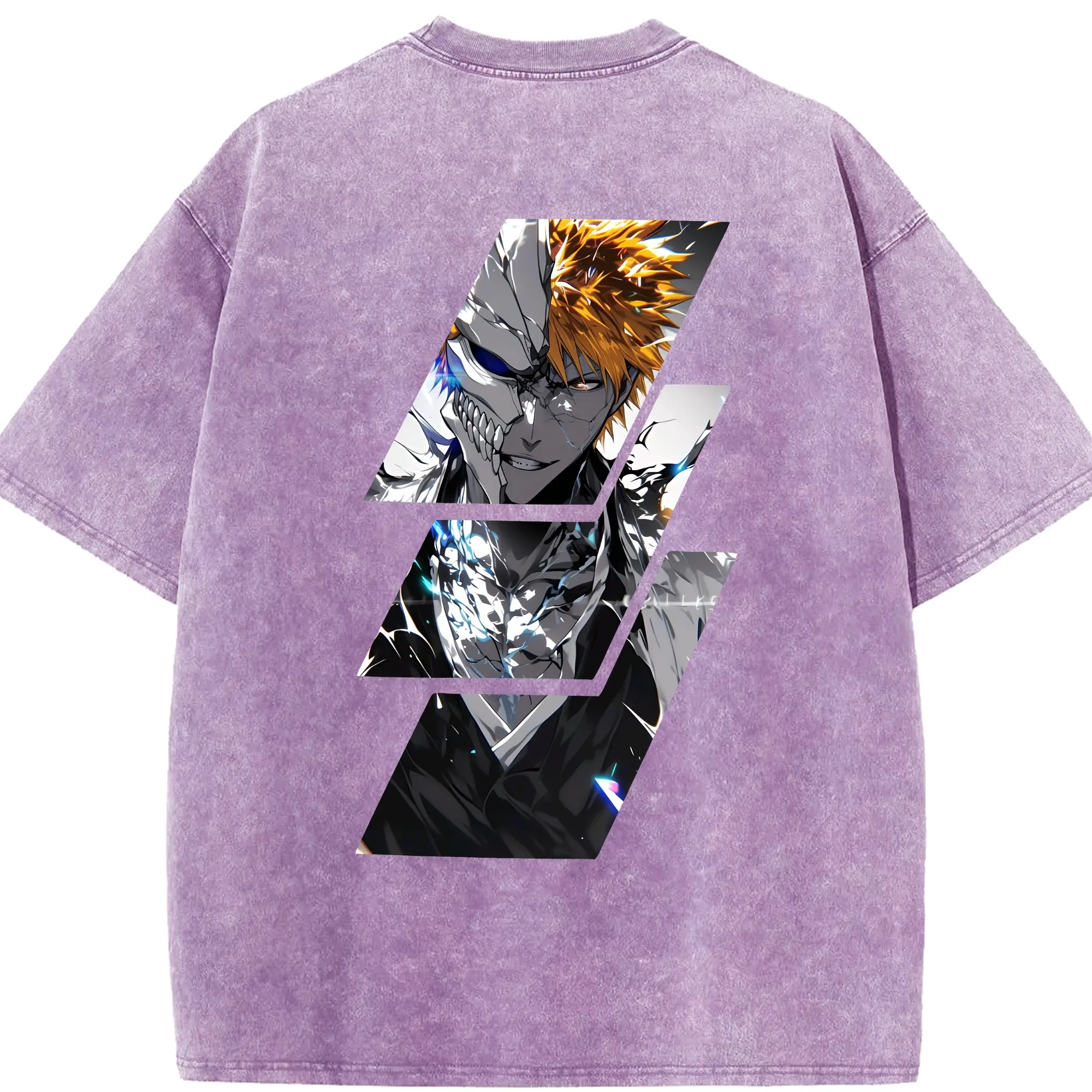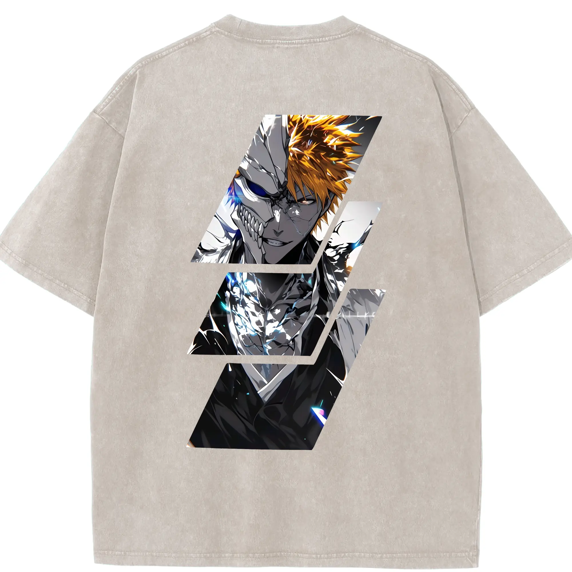 ブリーチ グッズ 黒崎 一護 - 綿100% ヴィンテージ風 半袖Tシャツ ・ フロントプリント ・ 柔らか肌触り ・ 通気性 快適 ・ スポーツ カジュアル 外出用
