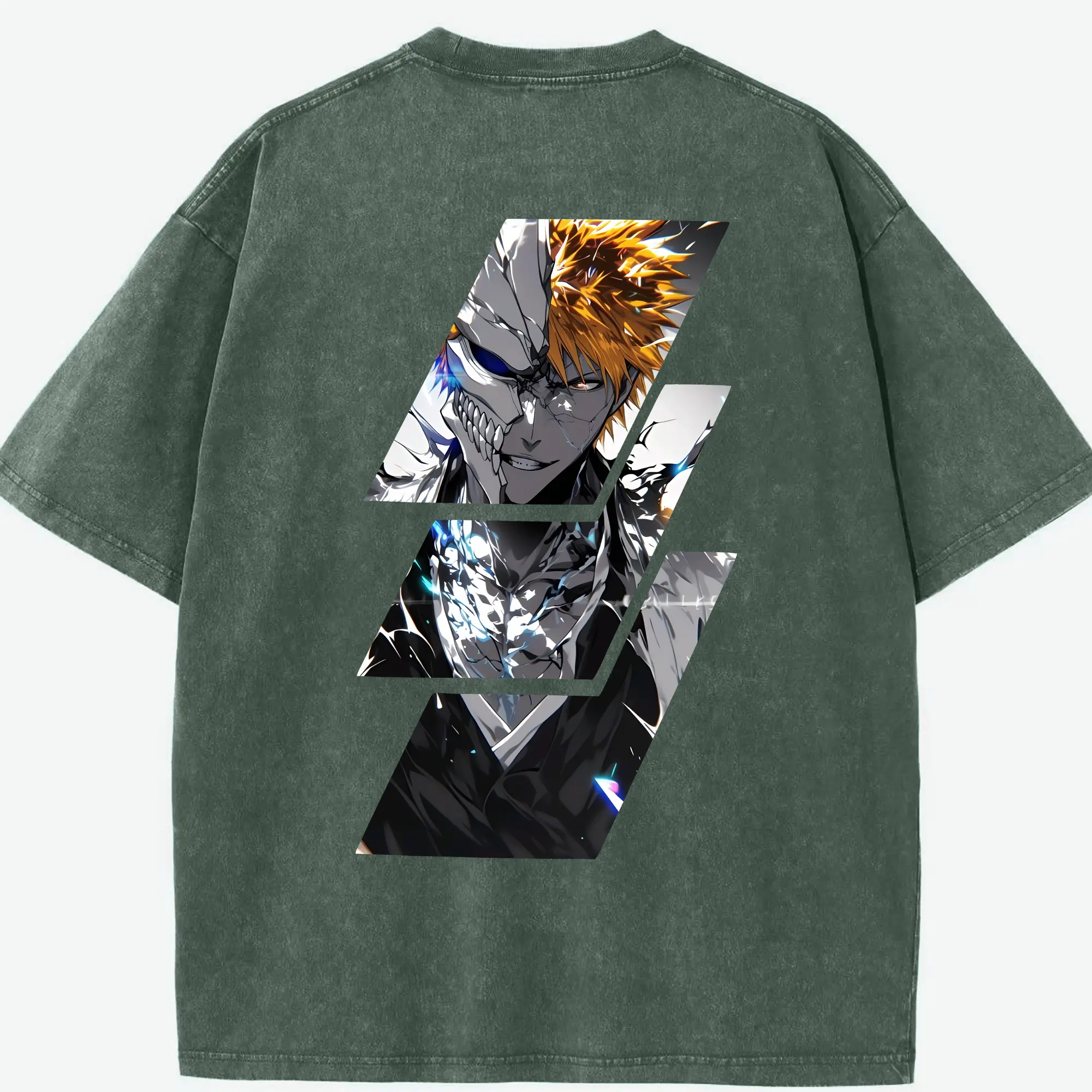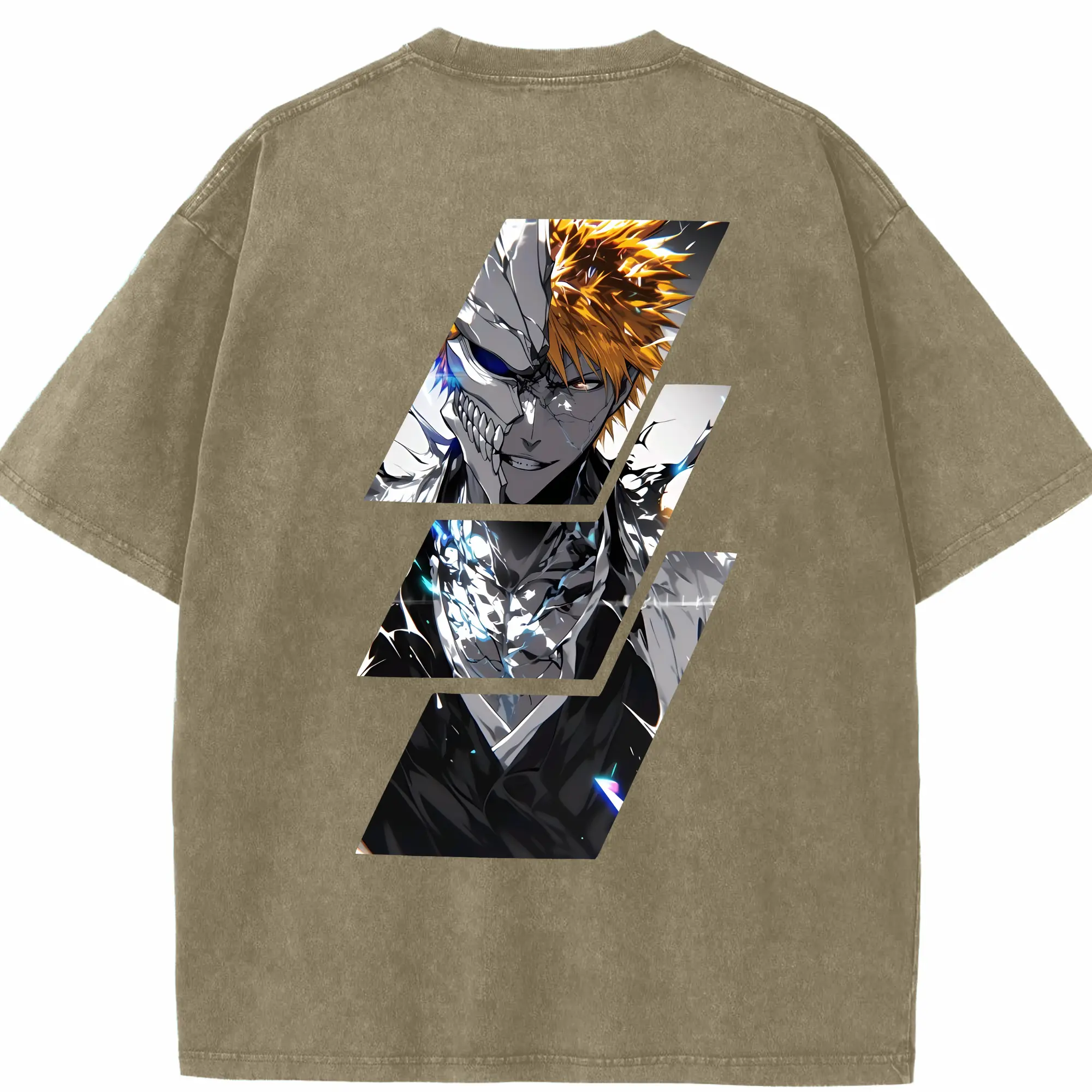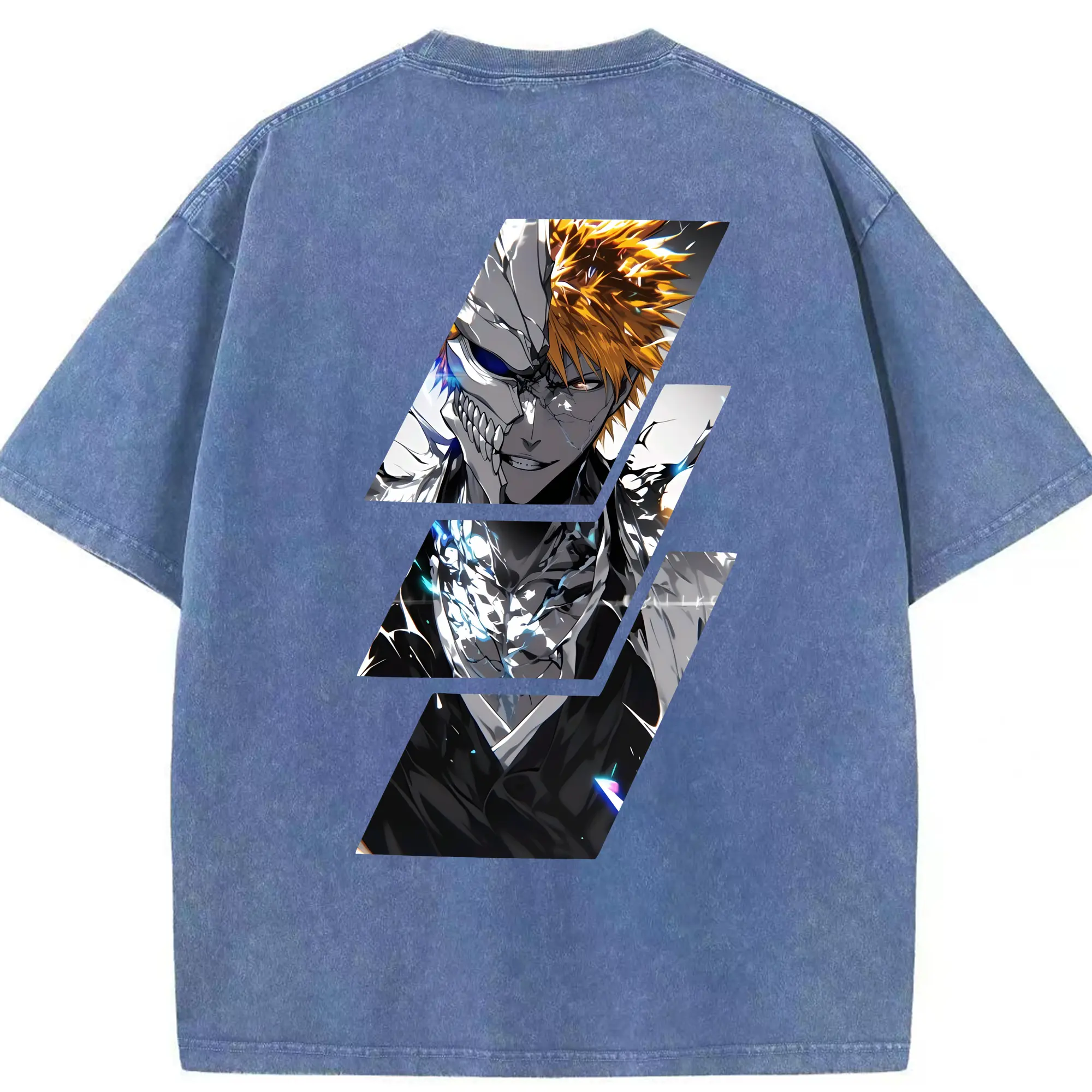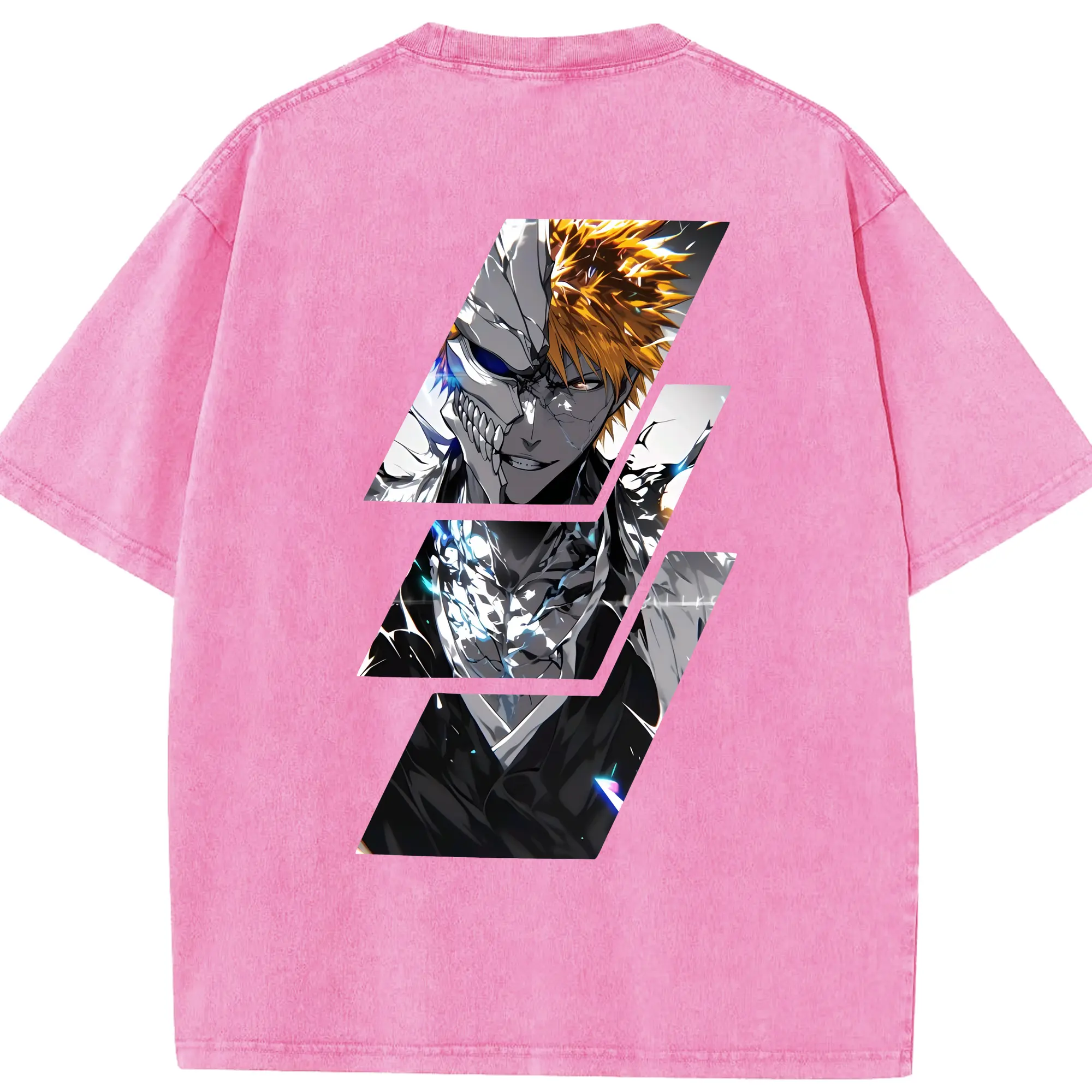 ブリーチ グッズ 黒崎 一護 - 綿100% ヴィンテージ風 半袖Tシャツ ・ フロントプリント ・ 柔らか肌触り ・ 通気性 快適 ・ スポーツ カジュアル 外出用