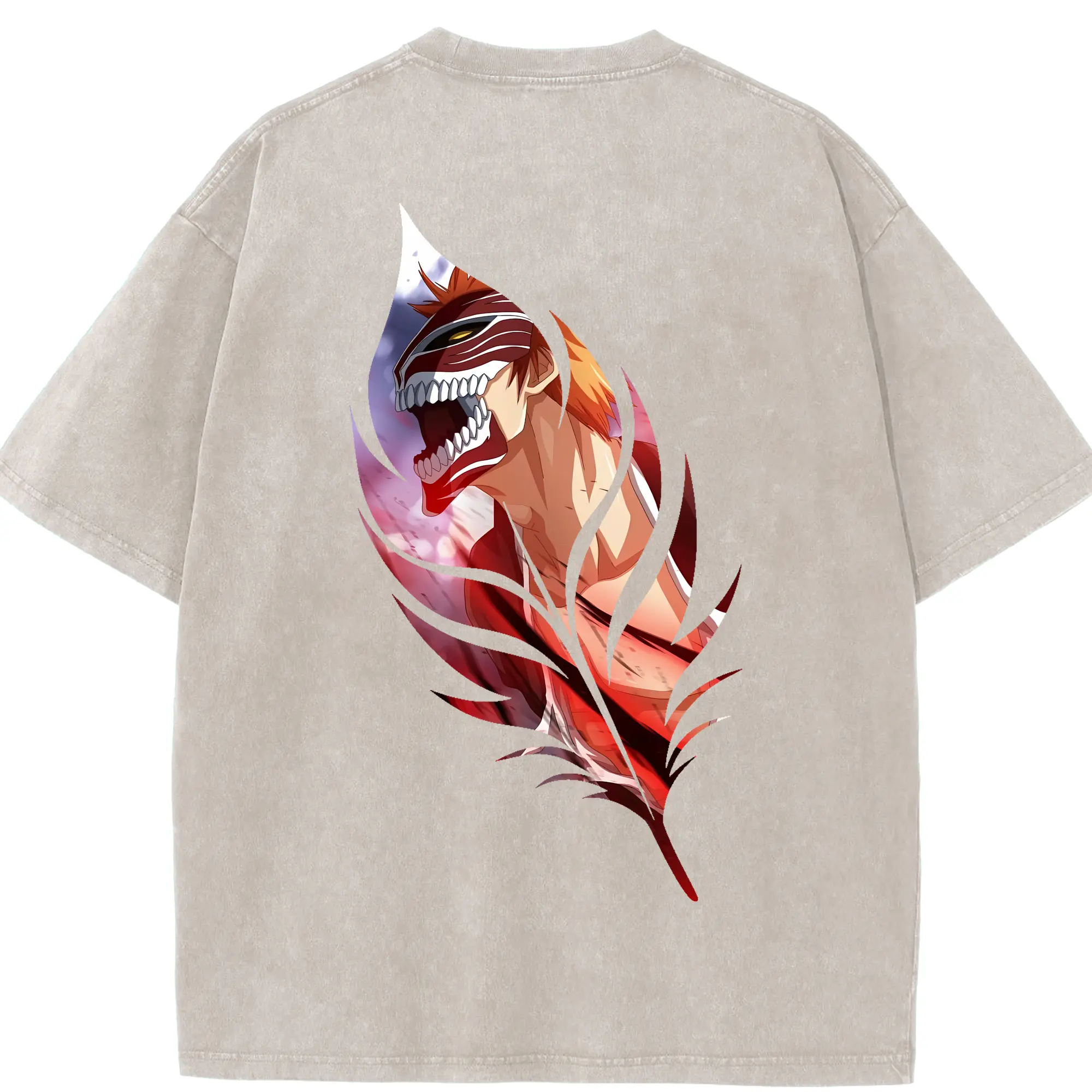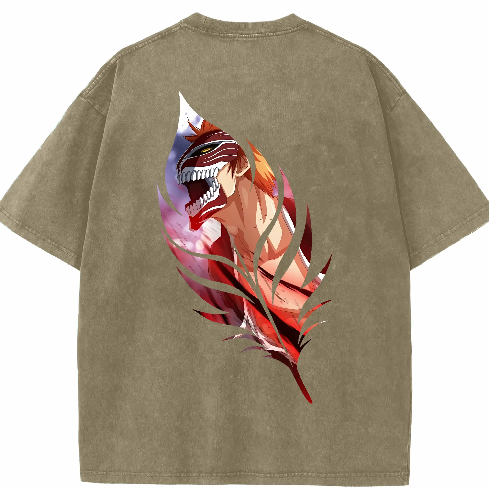 ブリーチ グッズ 黒崎 一護 - 綿100% ヴィンテージ風 半袖Tシャツ ・ フロントプリント ・ 柔らか肌触り ・ 通気性 快適 ・ スポーツ カジュアル 外出用