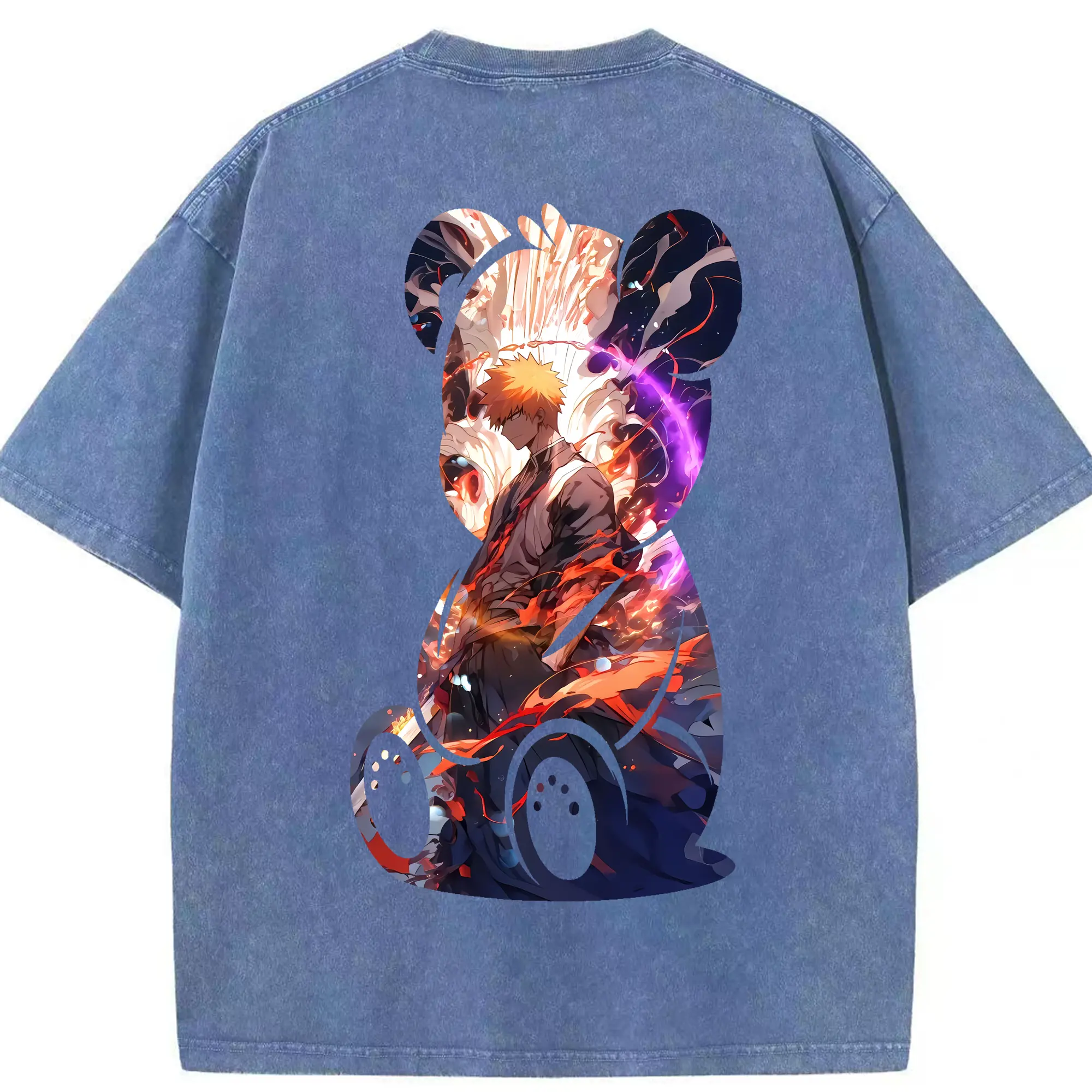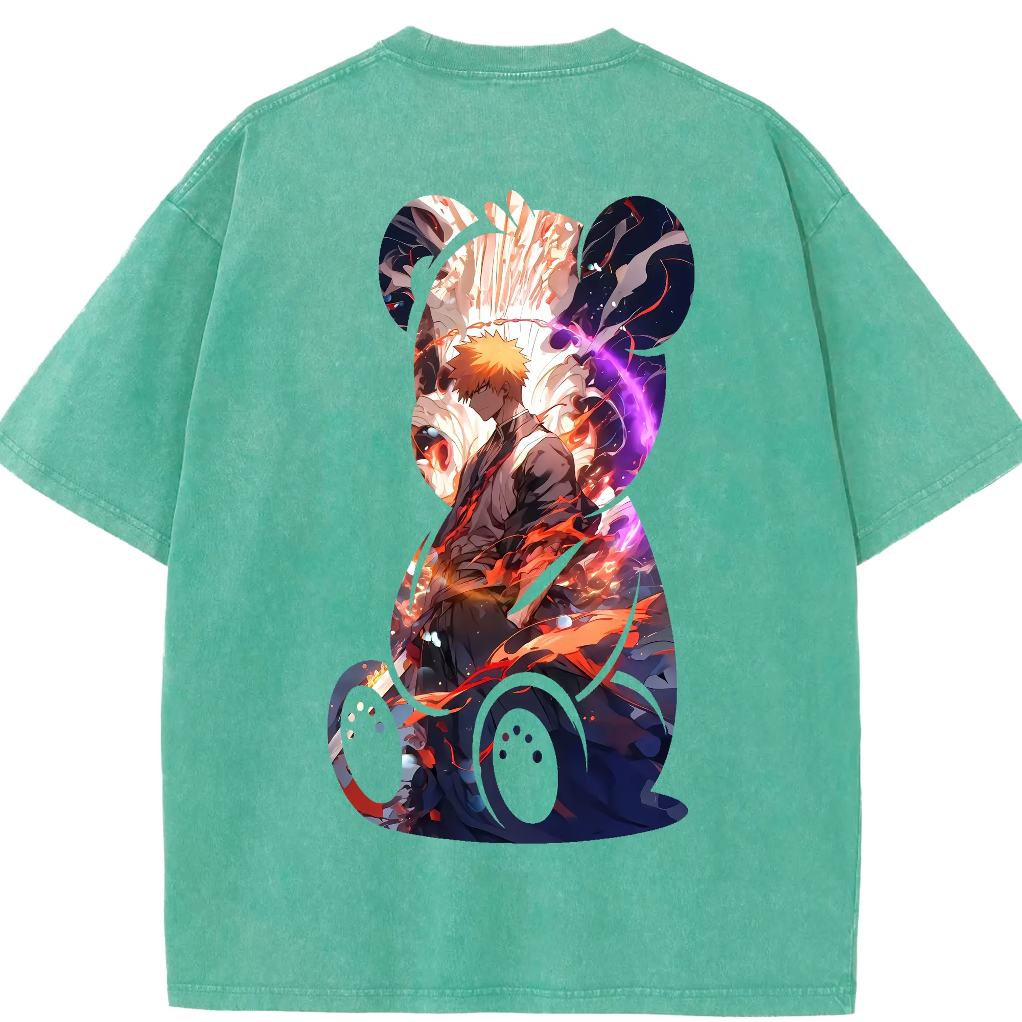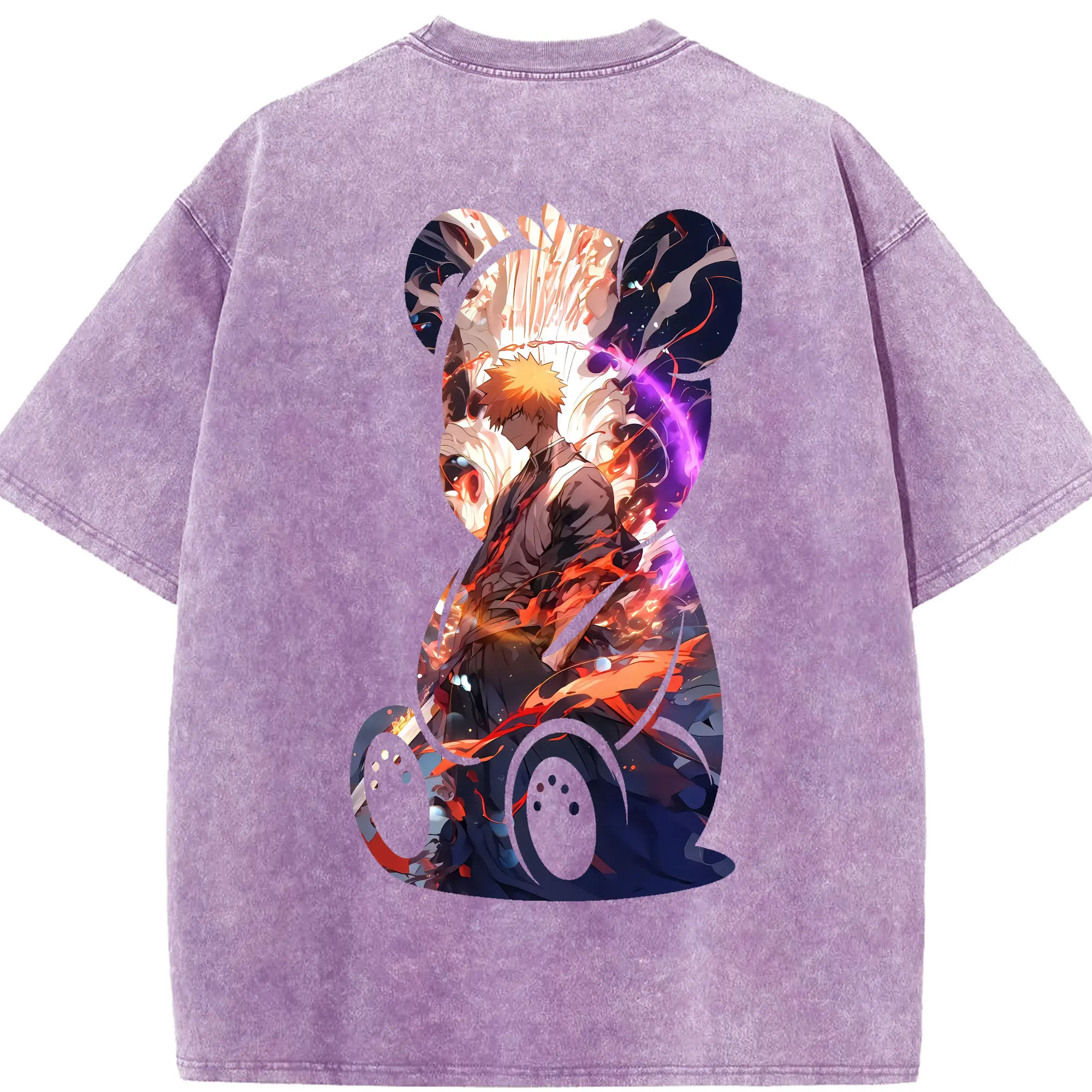 ブリーチ グッズ 黒崎 一護 - 綿100% ヴィンテージ風 半袖Tシャツ ・ フロントプリント ・ 柔らか肌触り ・ 通気性 快適 ・ スポーツ カジュアル 外出用