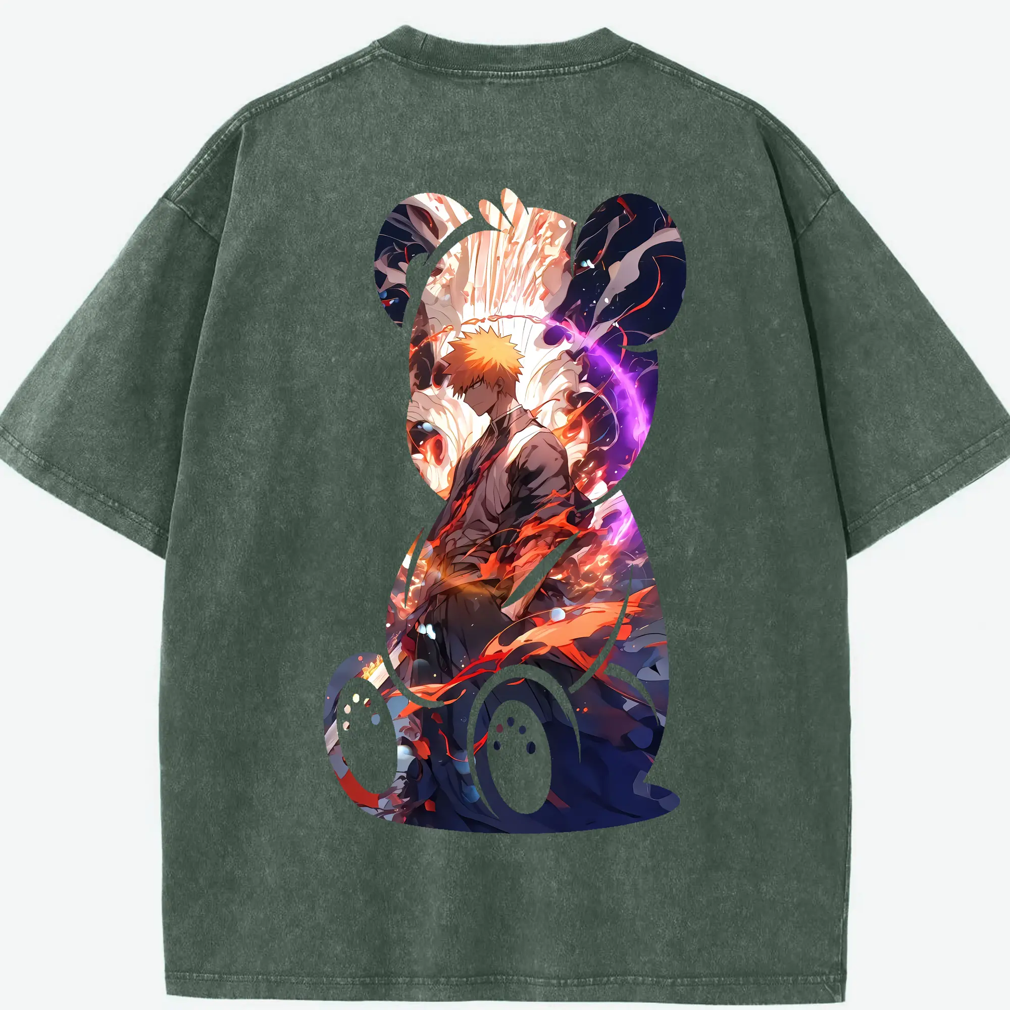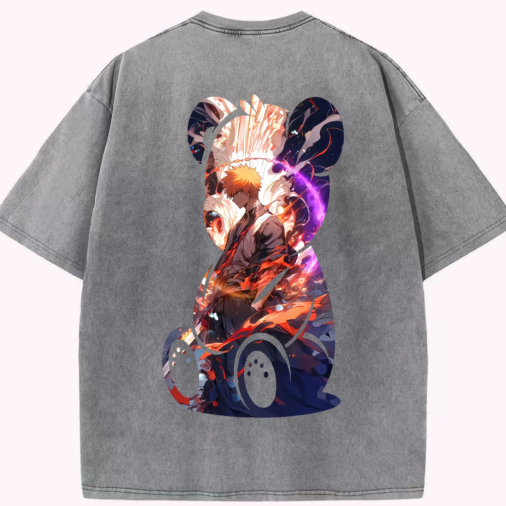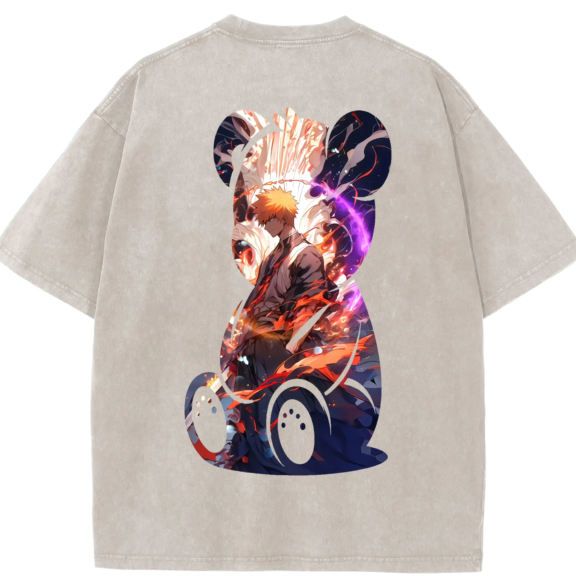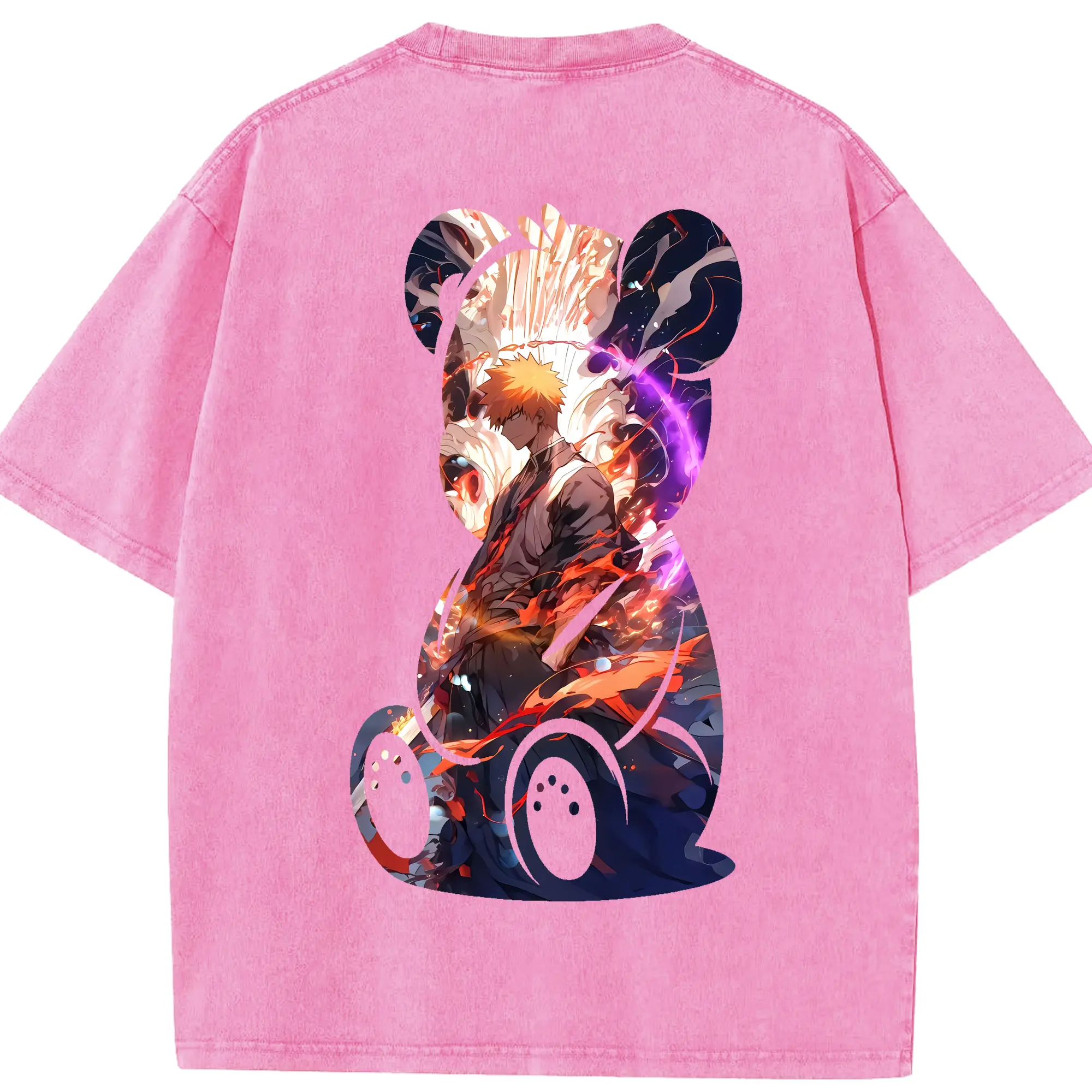 ブリーチ グッズ 黒崎 一護 - 綿100% ヴィンテージ風 半袖Tシャツ ・ フロントプリント ・ 柔らか肌触り ・ 通気性 快適 ・ スポーツ カジュアル 外出用