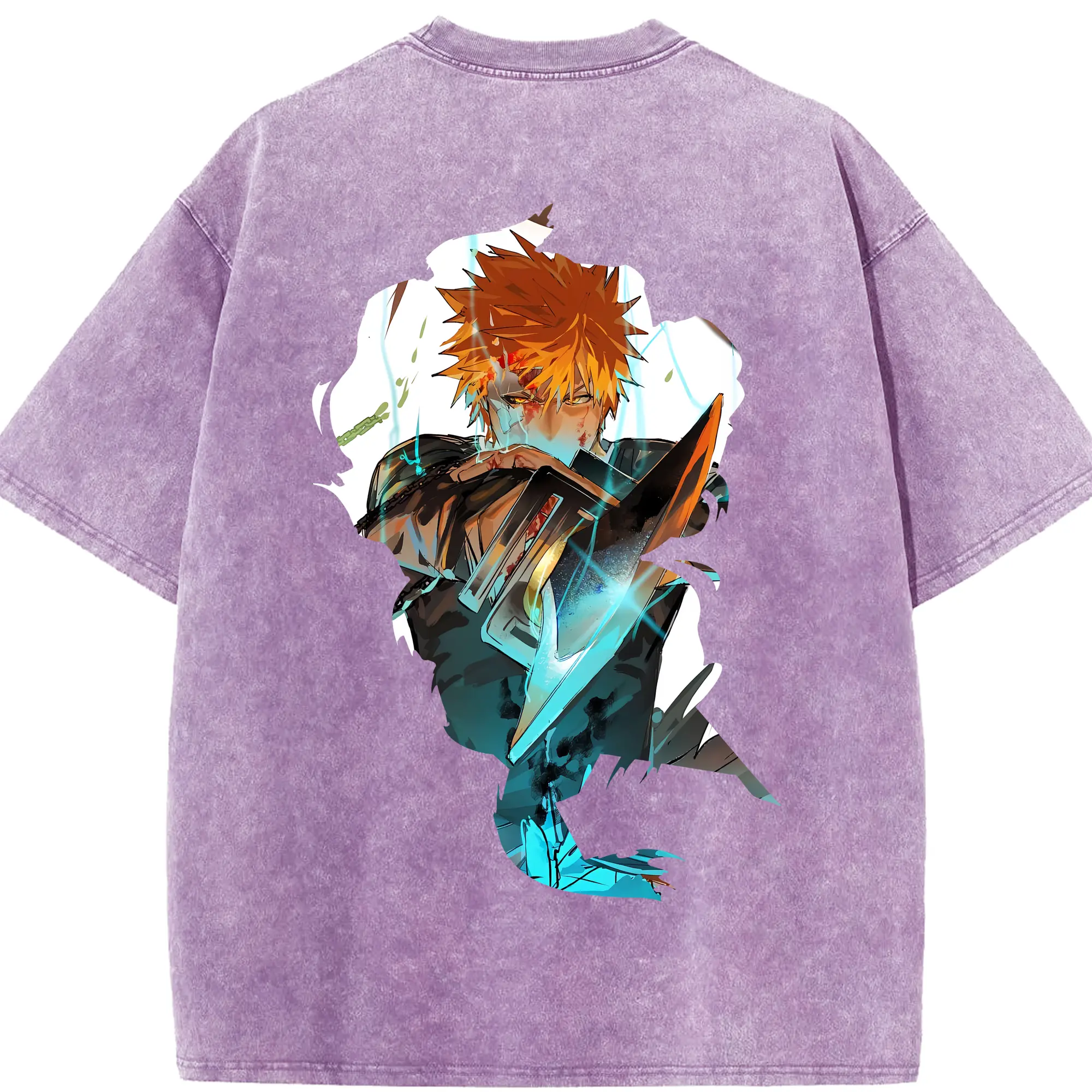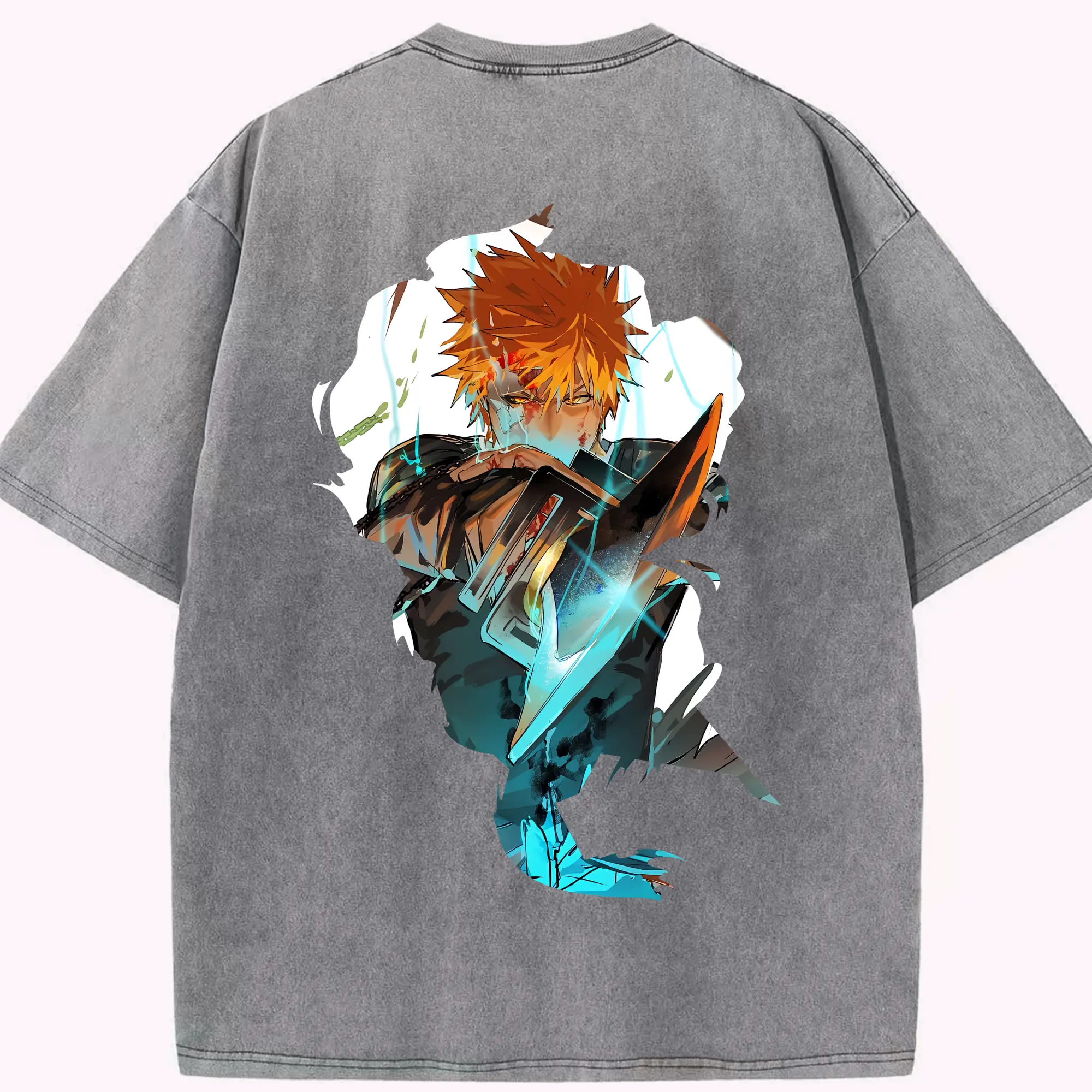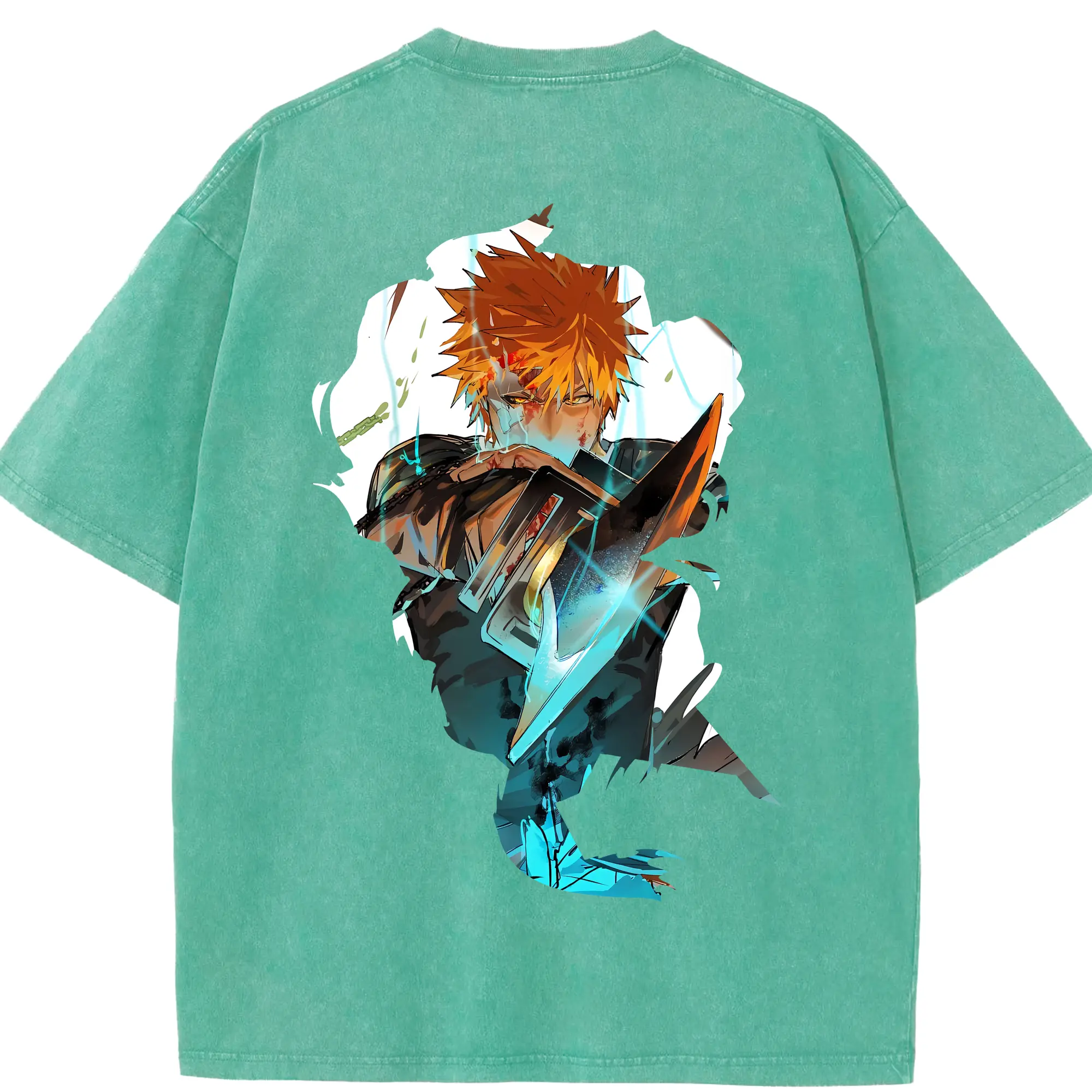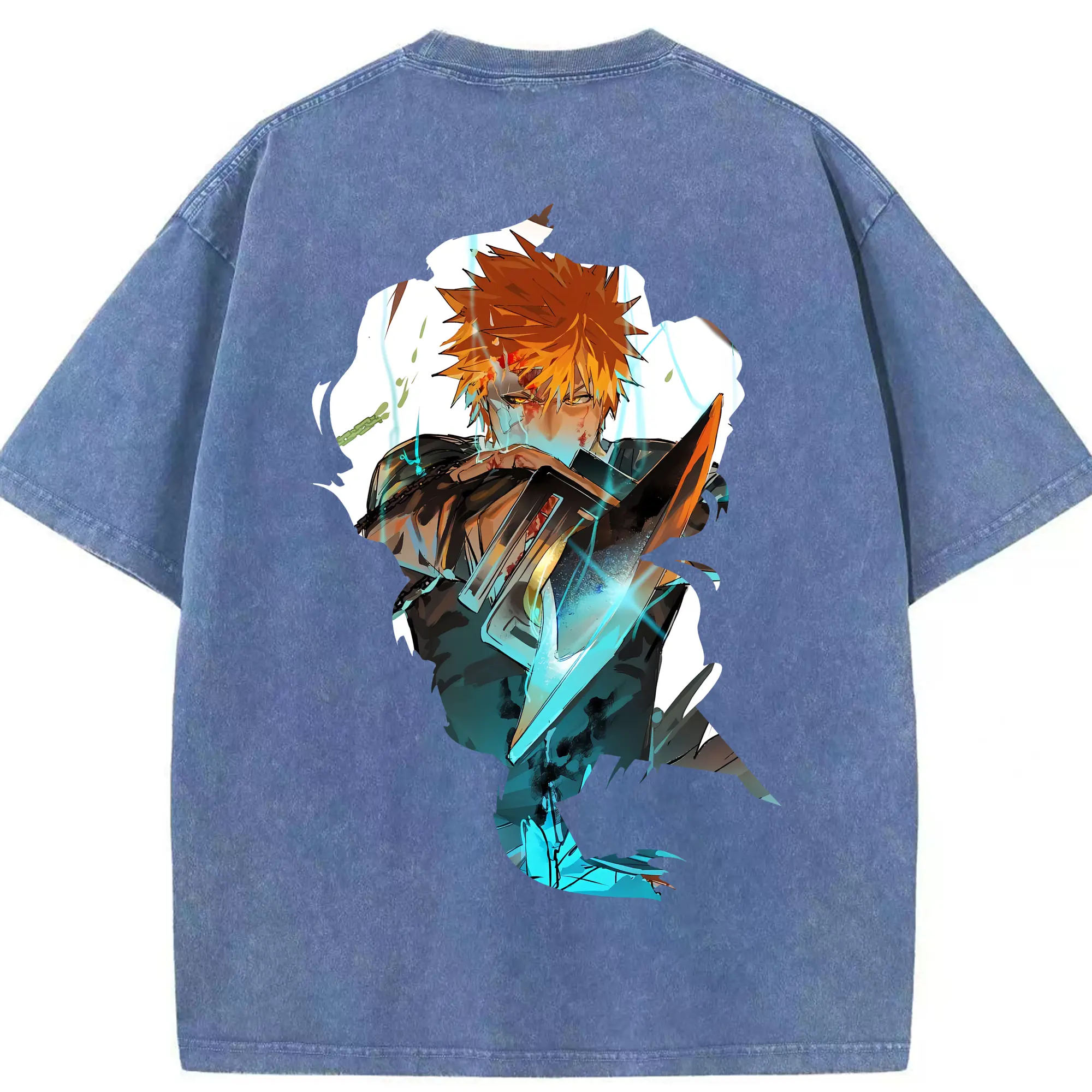 ブリーチ グッズ 黒崎 一護 - 綿100% ヴィンテージ風 半袖Tシャツ ・ フロントプリント ・ 柔らか肌触り ・ 通気性 快適 ・ スポーツ カジュアル 外出用