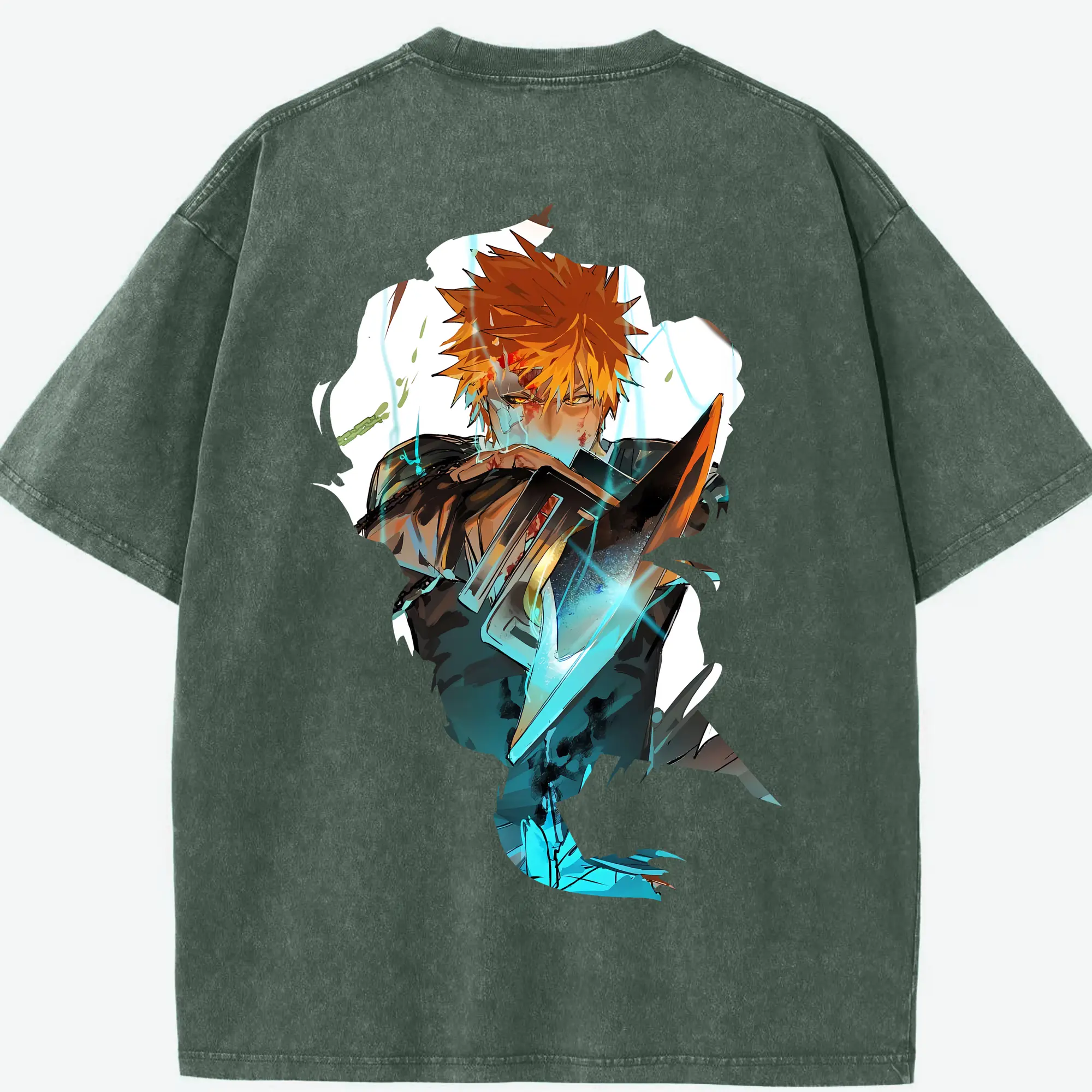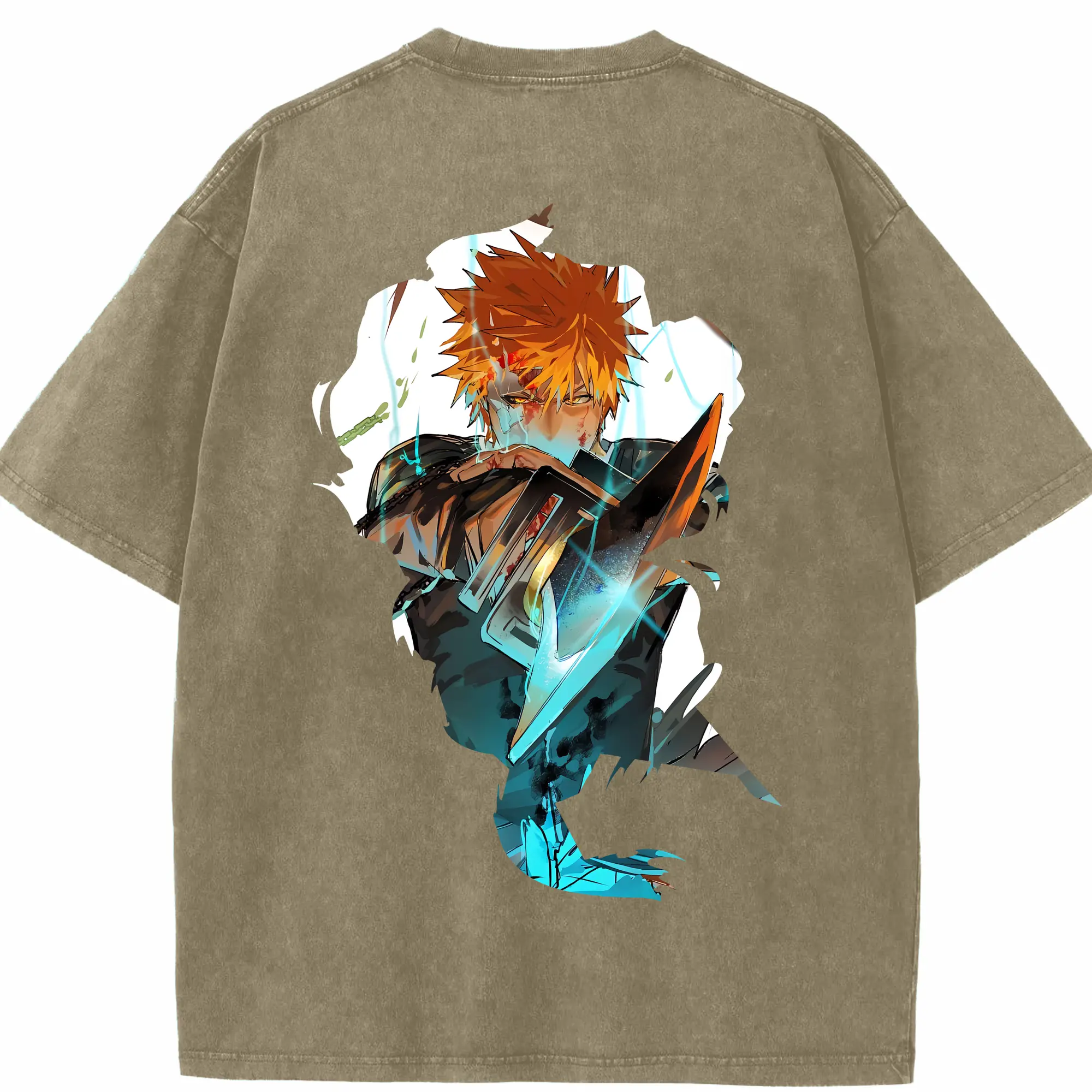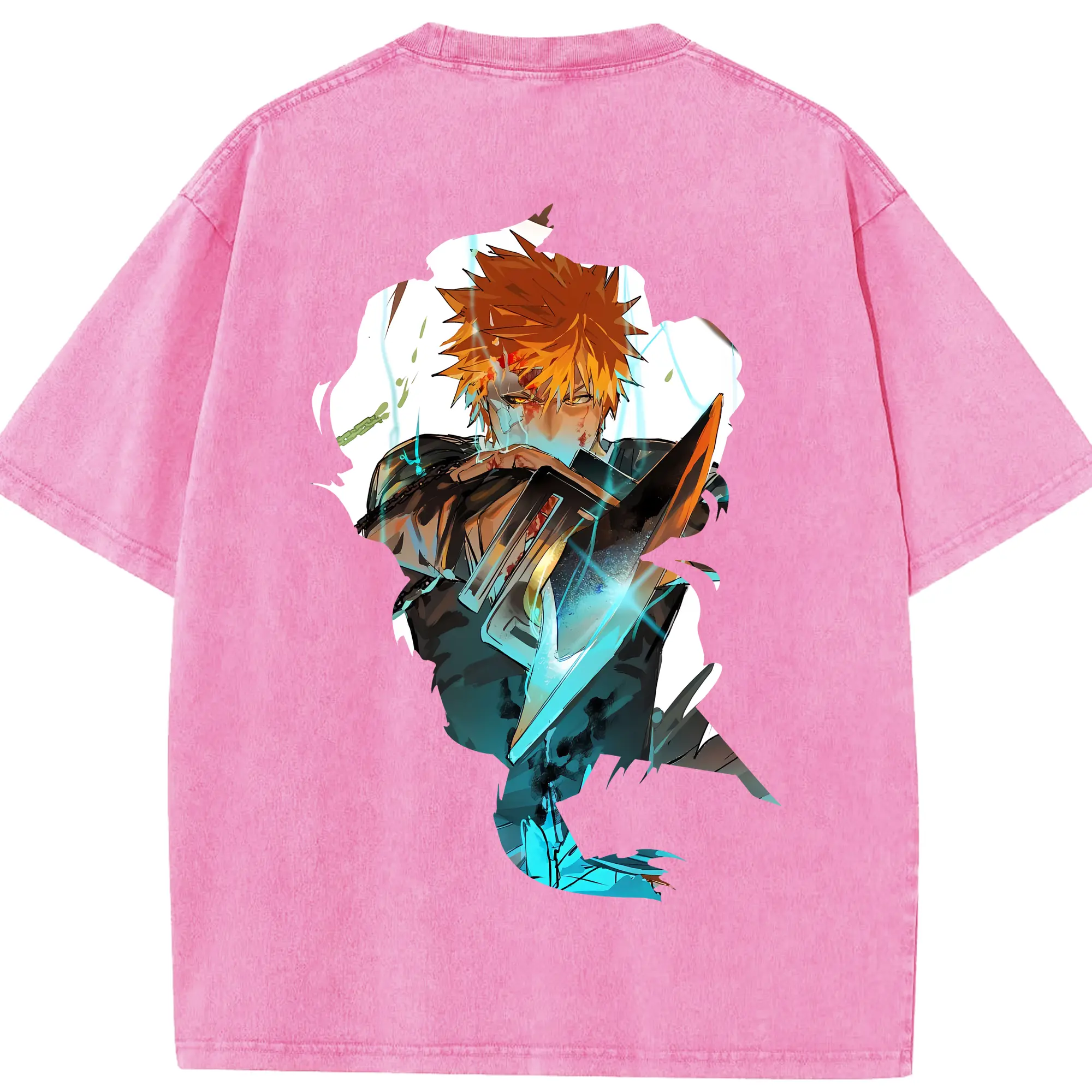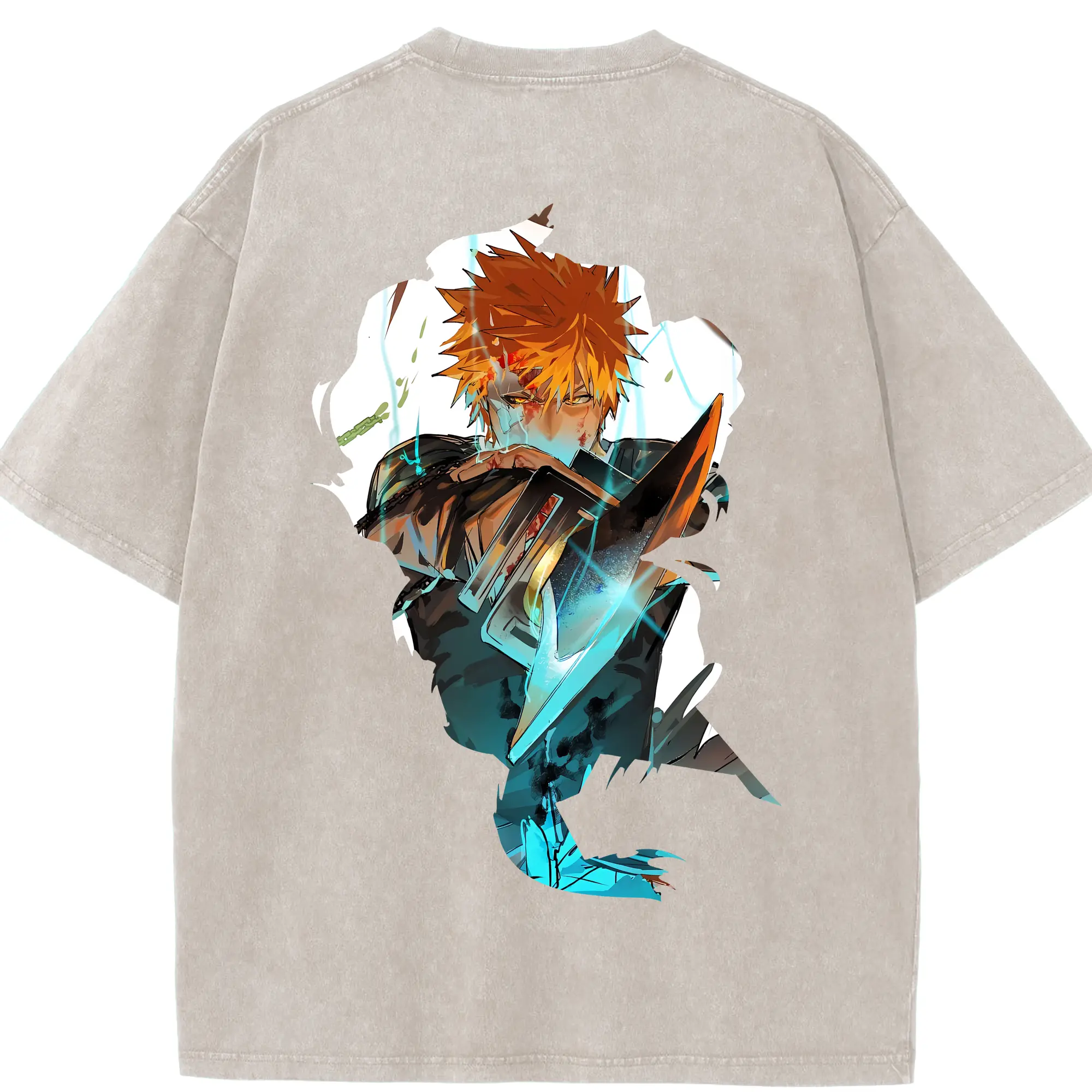 ブリーチ グッズ 黒崎 一護 - 綿100% ヴィンテージ風 半袖Tシャツ ・ フロントプリント ・ 柔らか肌触り ・ 通気性 快適 ・ スポーツ カジュアル 外出用